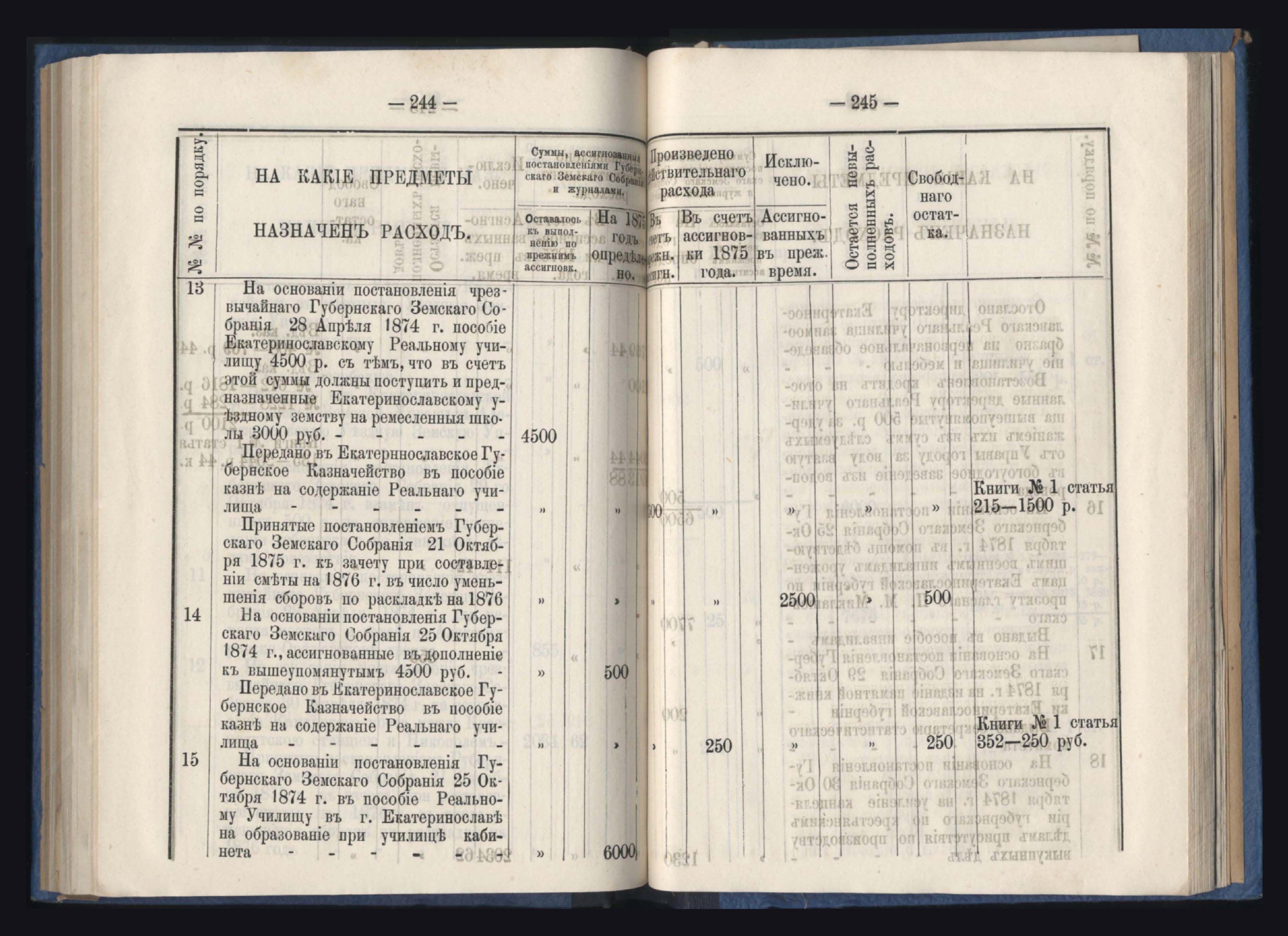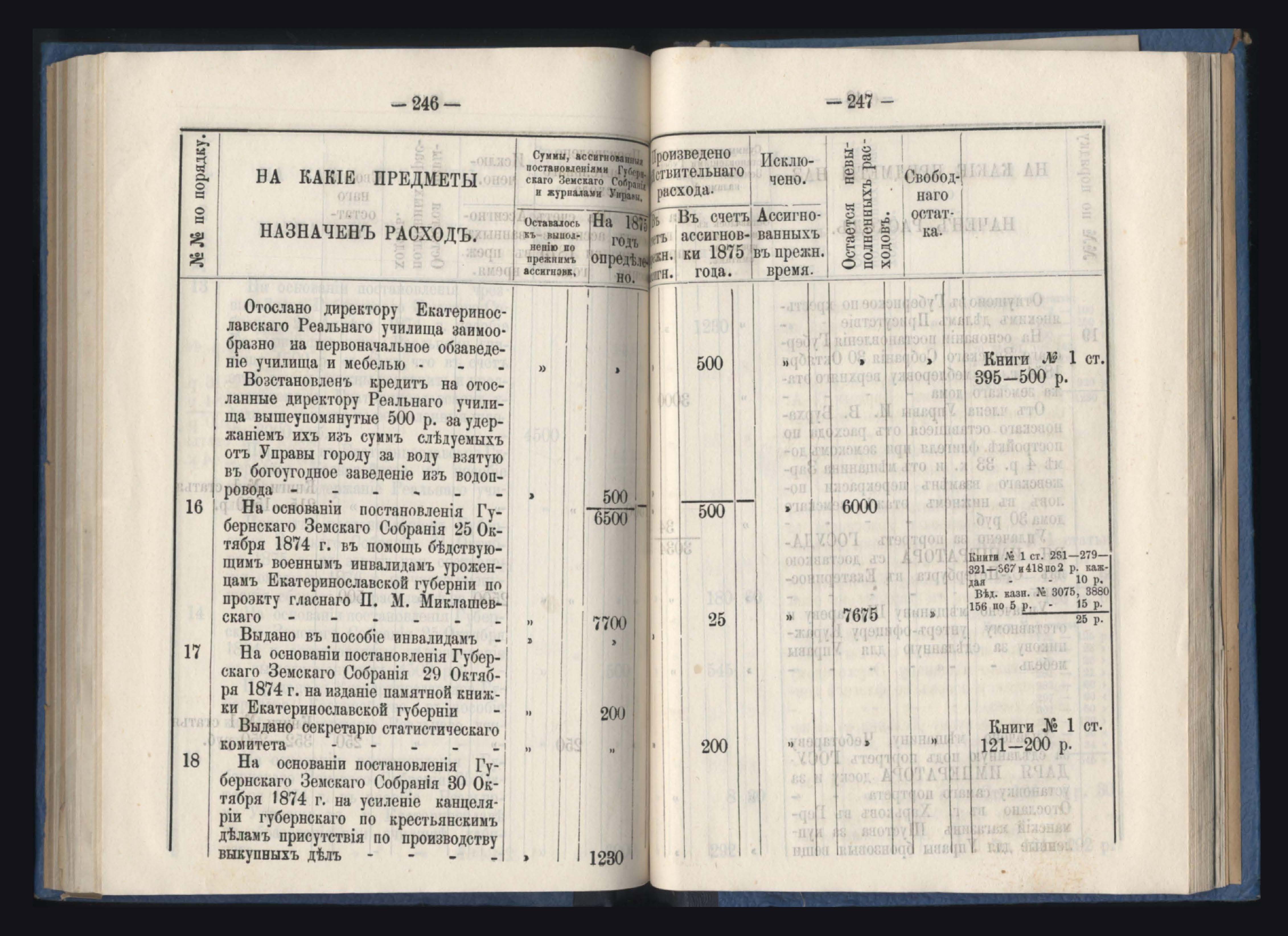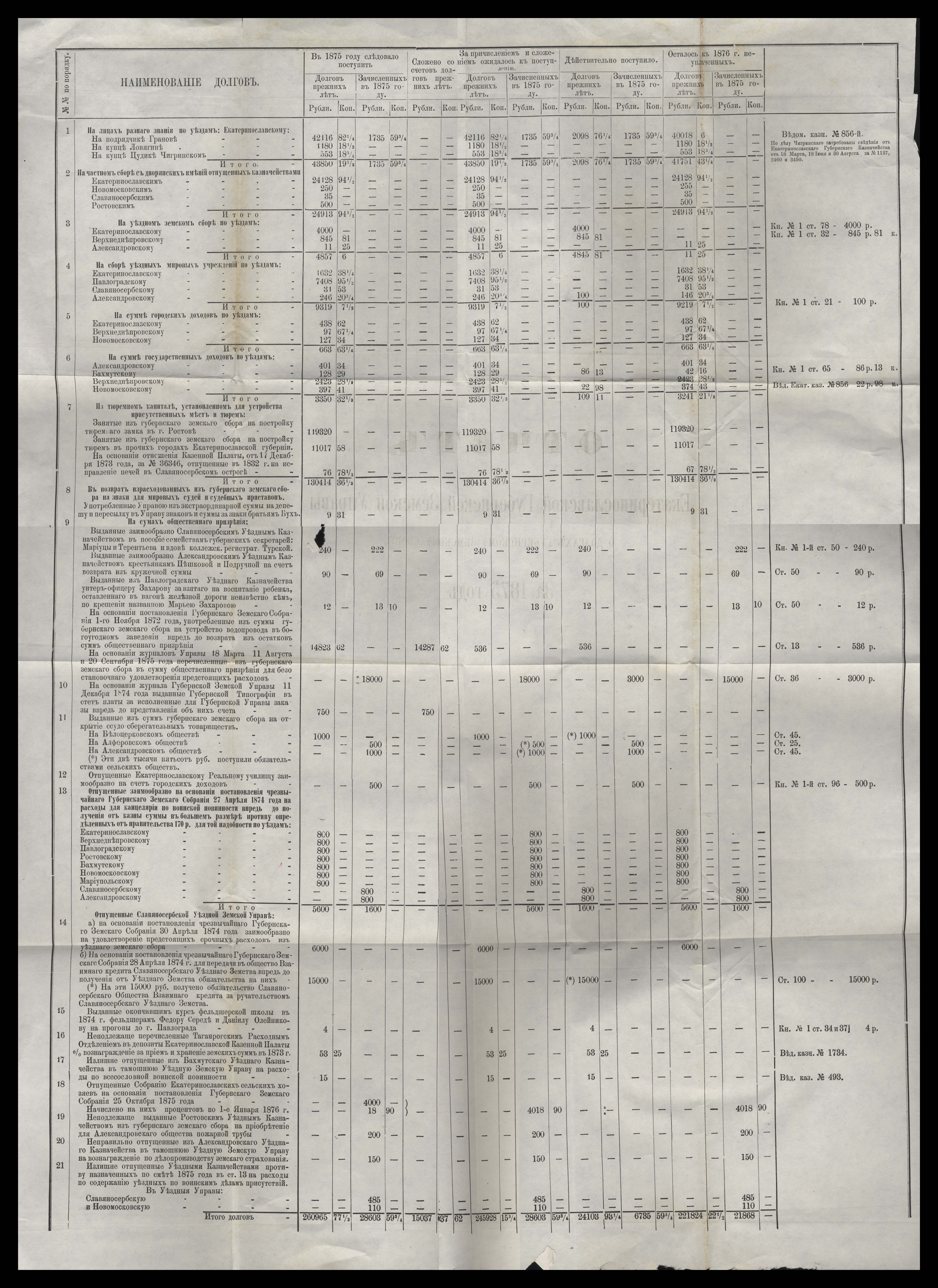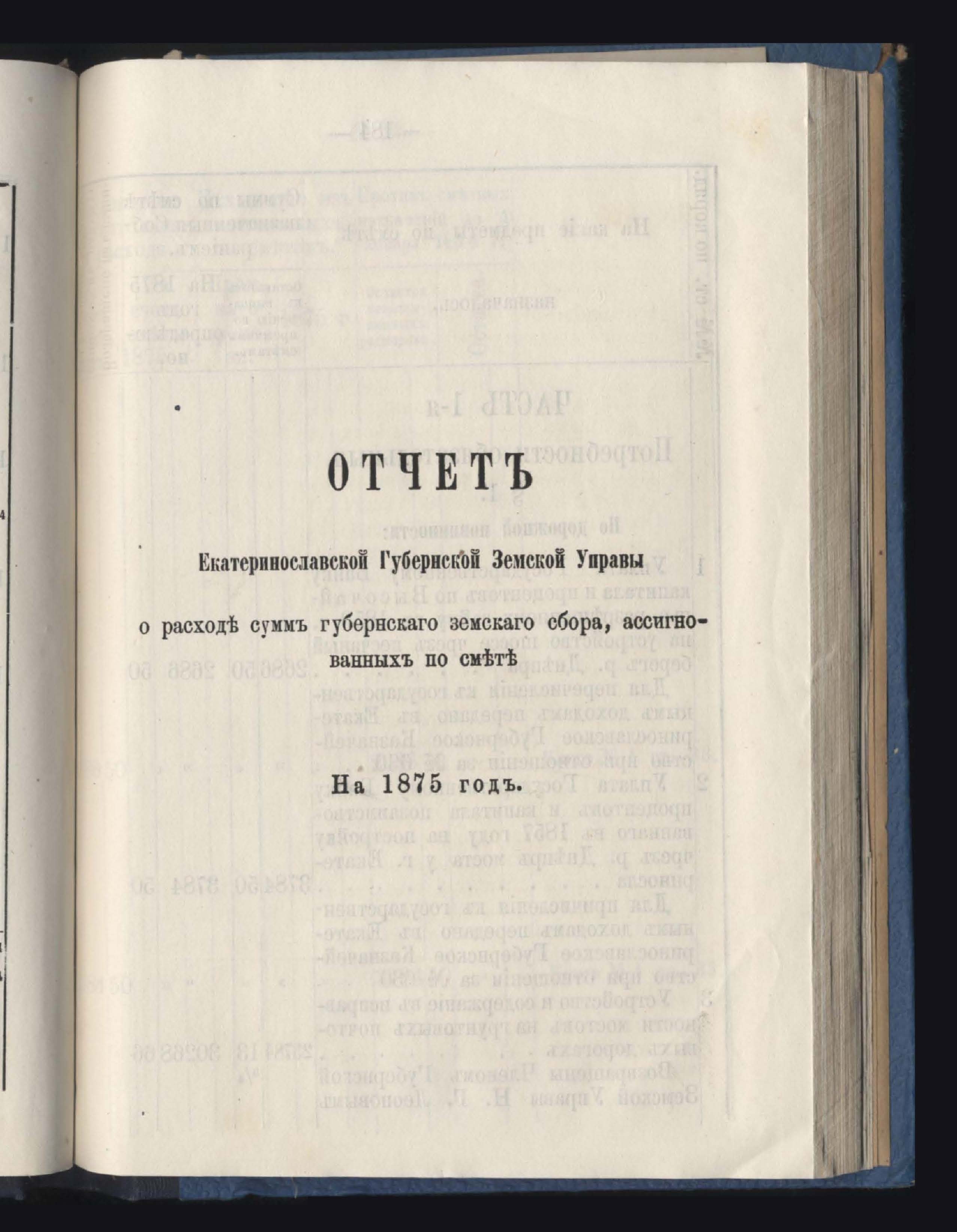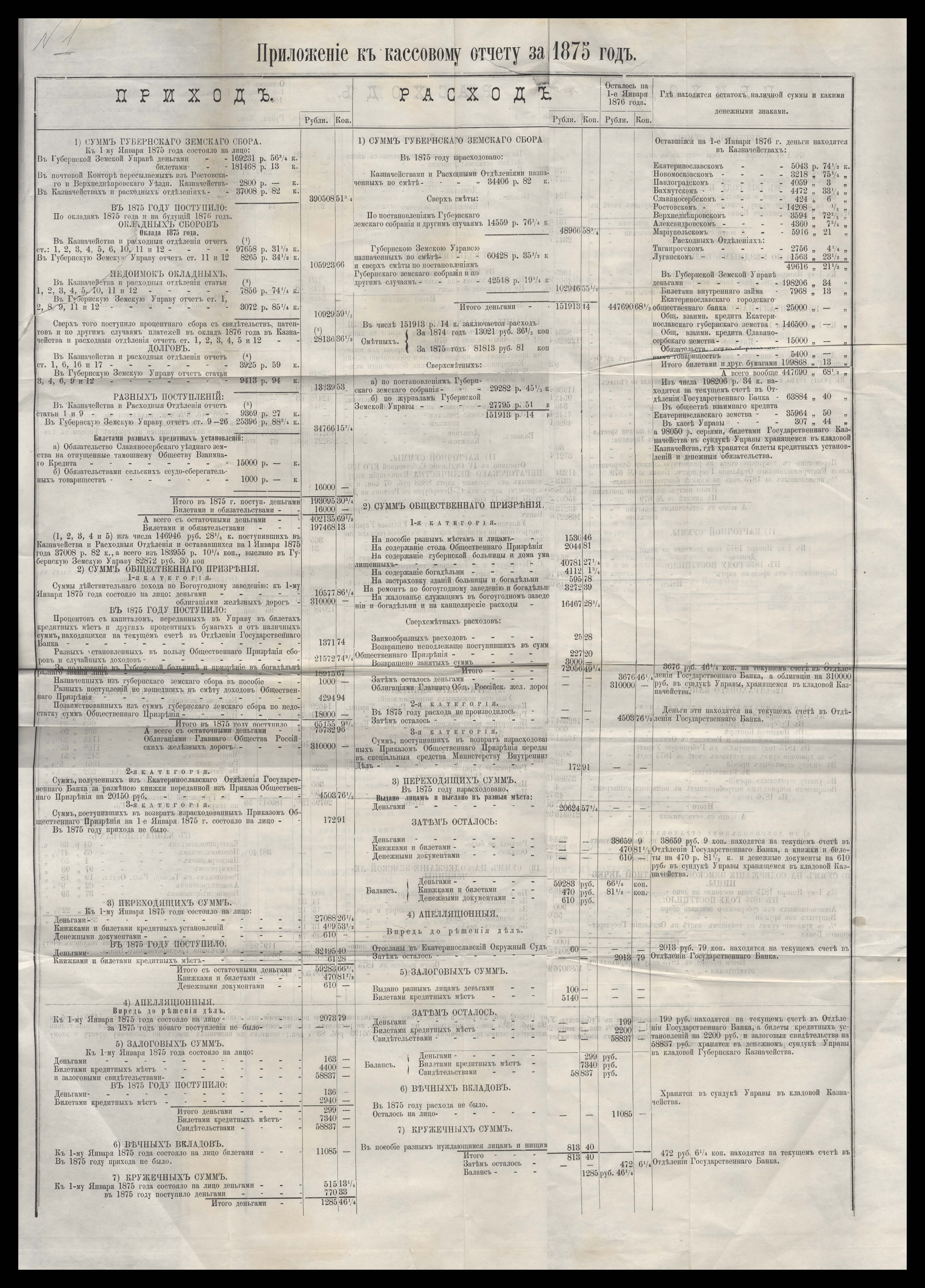 Отчетъ Екатеринославской Губернской Земской Управы о расходъ суммъ губернскаго земскаго сбора, по постановленіямъ Губернскаго Земскаго Собранія, по журналамъ Управы и другимъ случаямъ за 1875 годъ