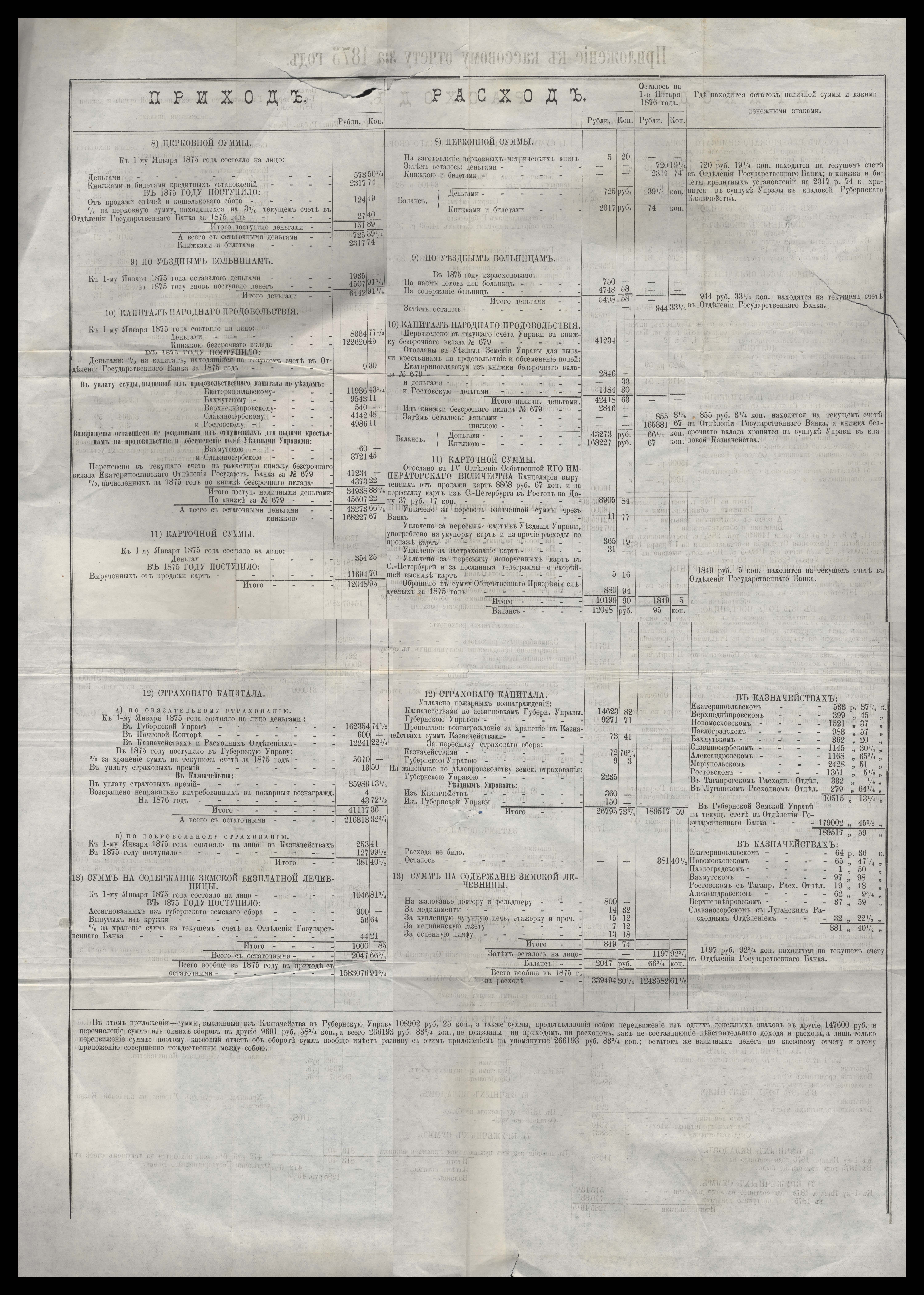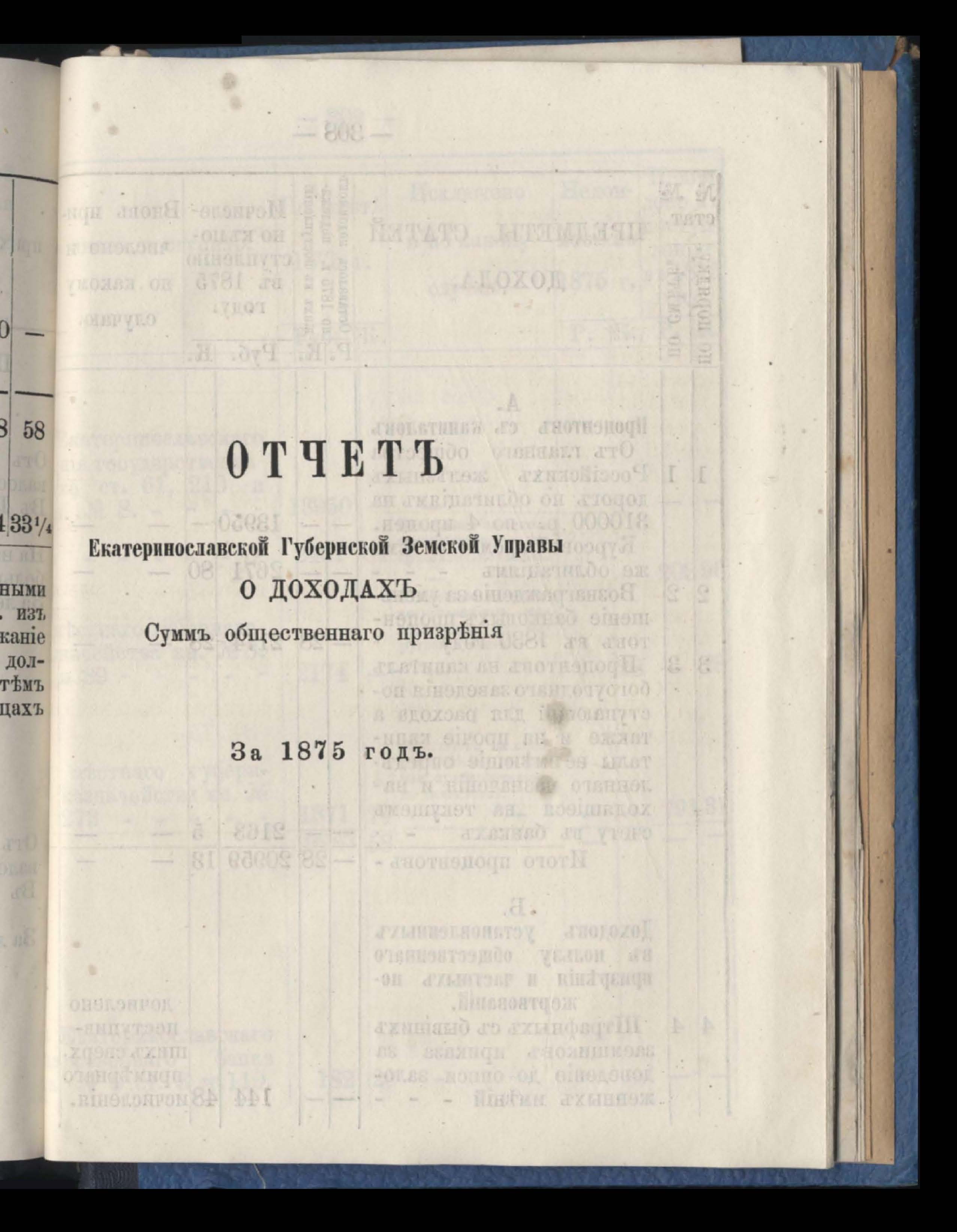 Отчетъ Екатеринославской Губернской Земской Управы о доходахъ суммъ общественнаго призренія за 1875 годъ