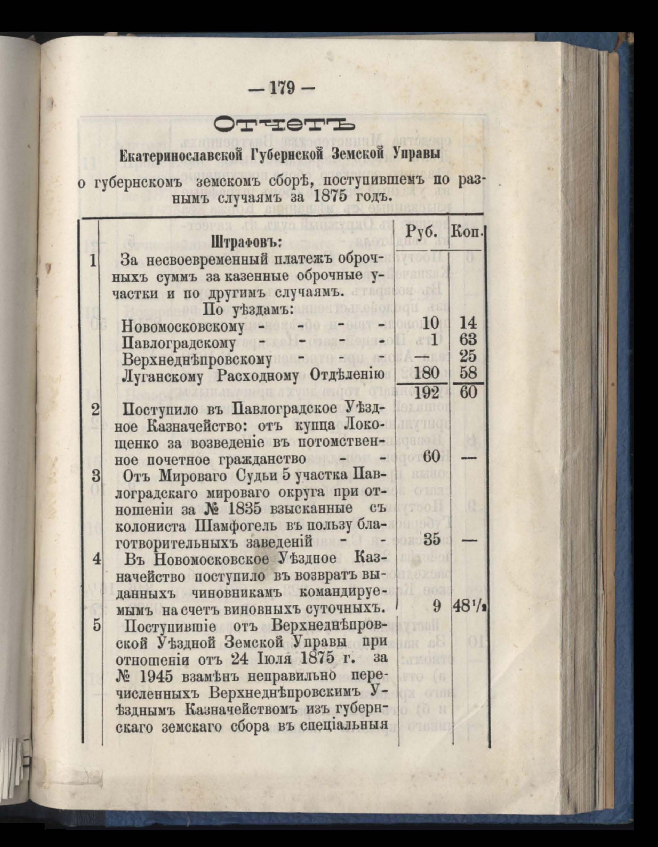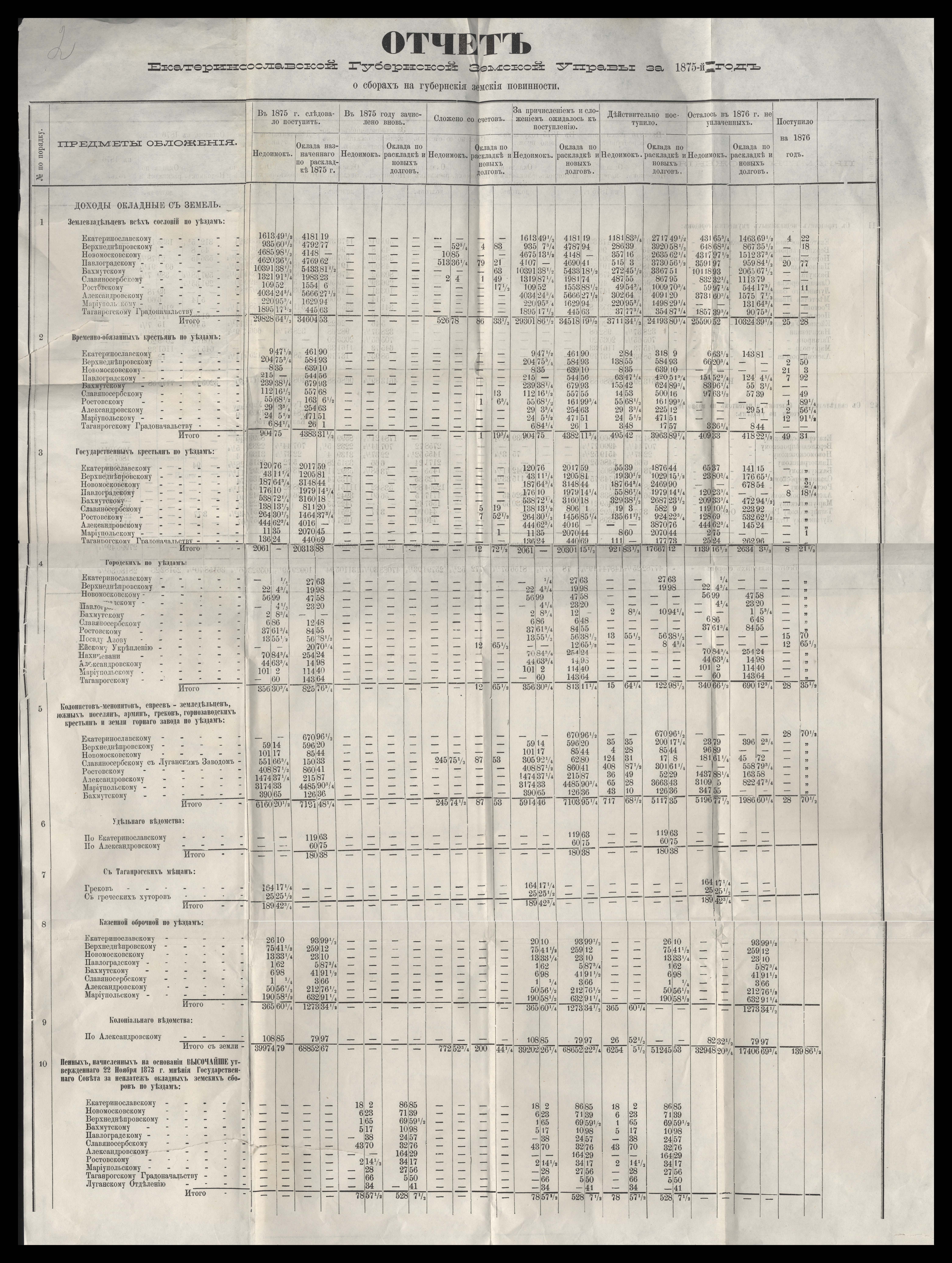 Отчетъ Екатеринославской Губернской Земской Управы о губернскомъ сборъ, поступившемъ по разнымъ случаямъ за 1875 годъ