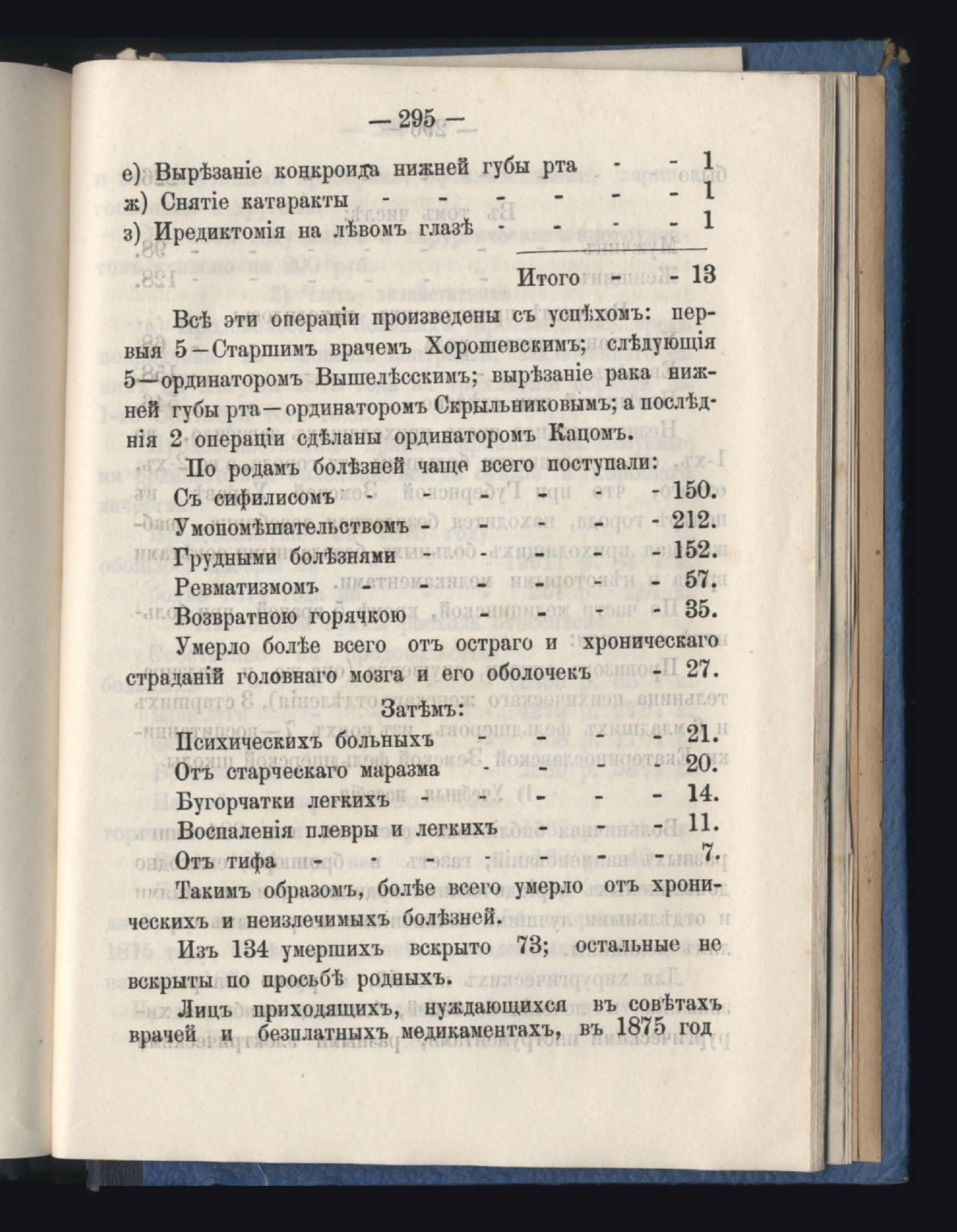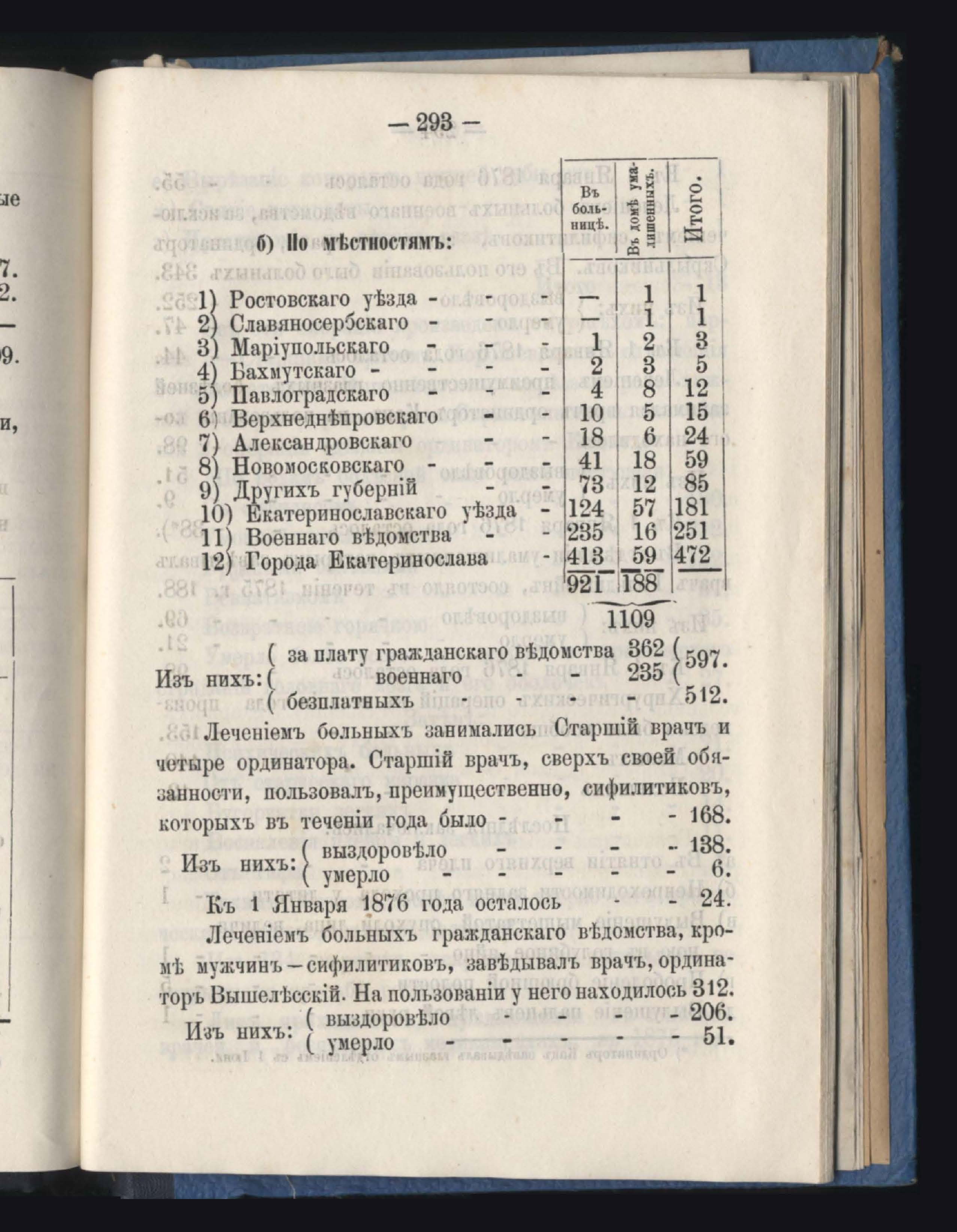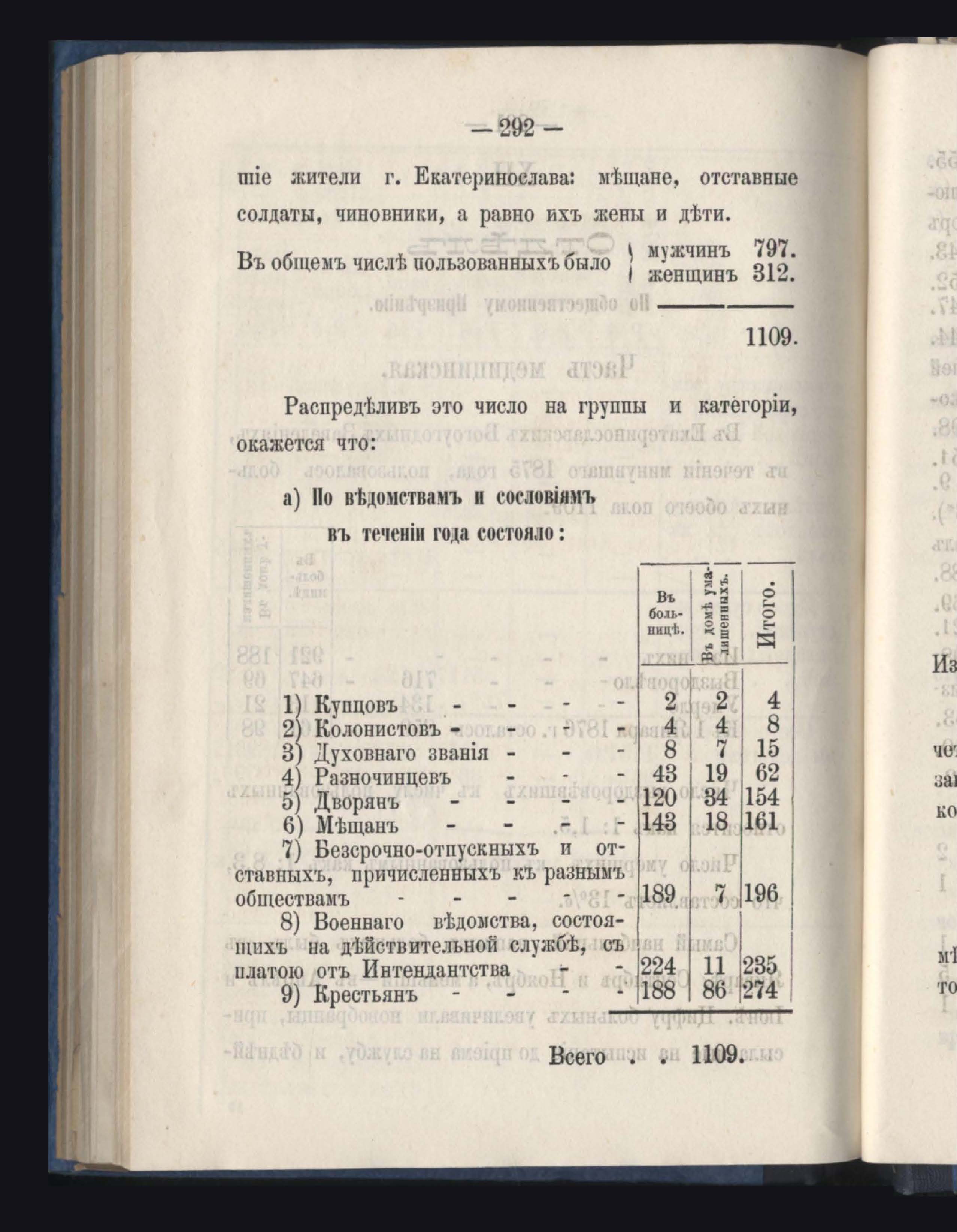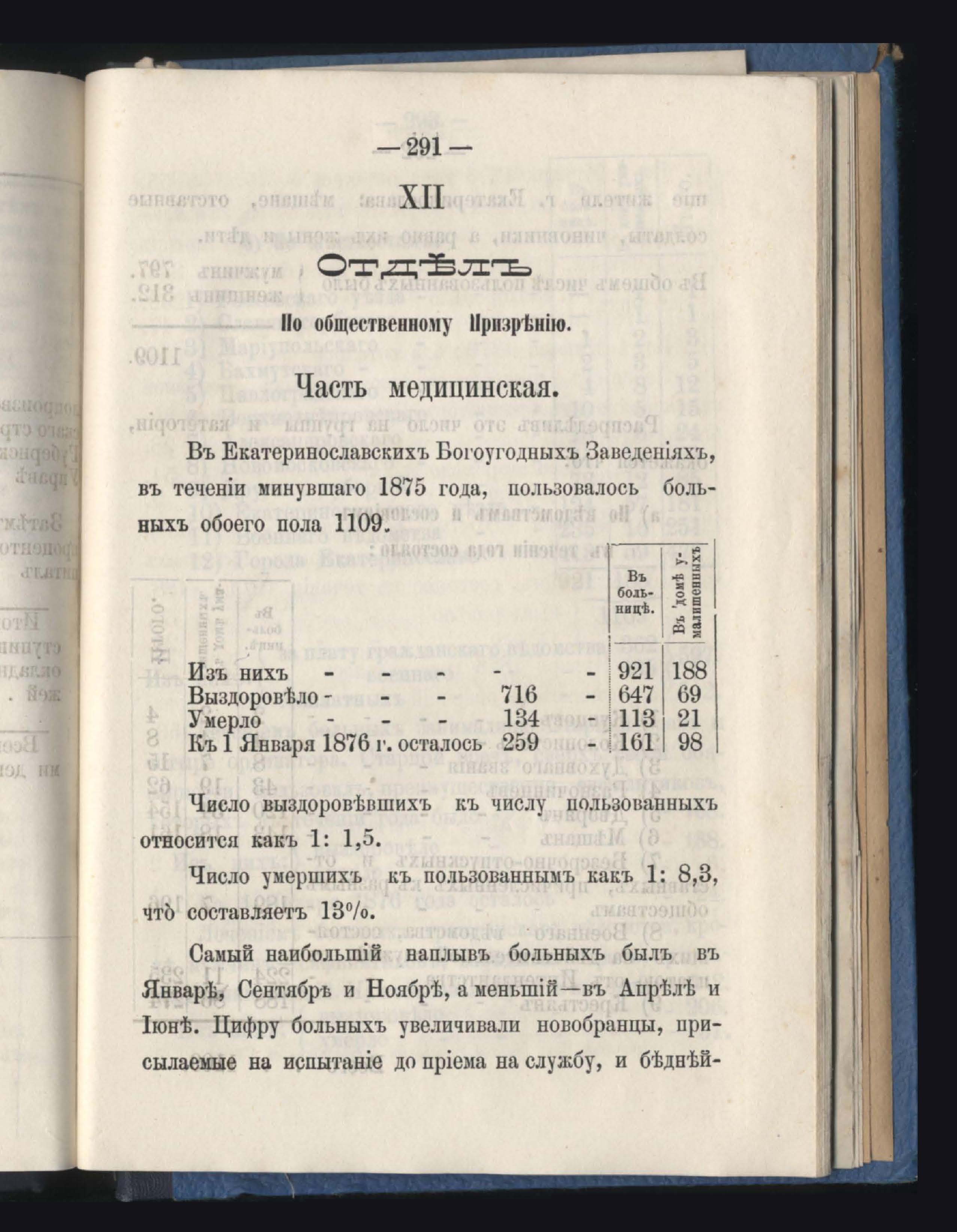 Отделъ по общественному призренію. Часть медицинская
