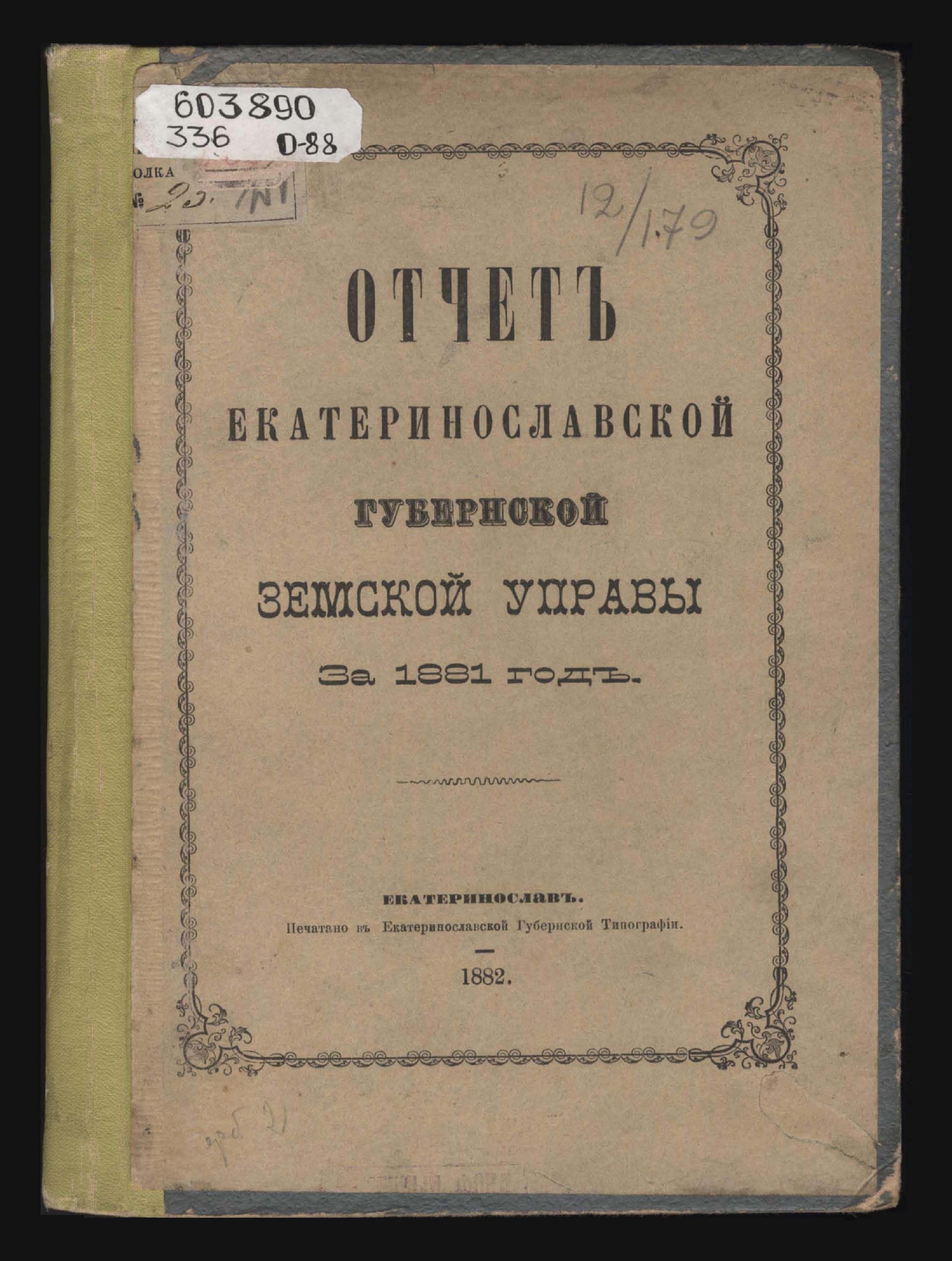 Отчетъ Екатеринославской Губернской Земской Управы за 1881 годъ