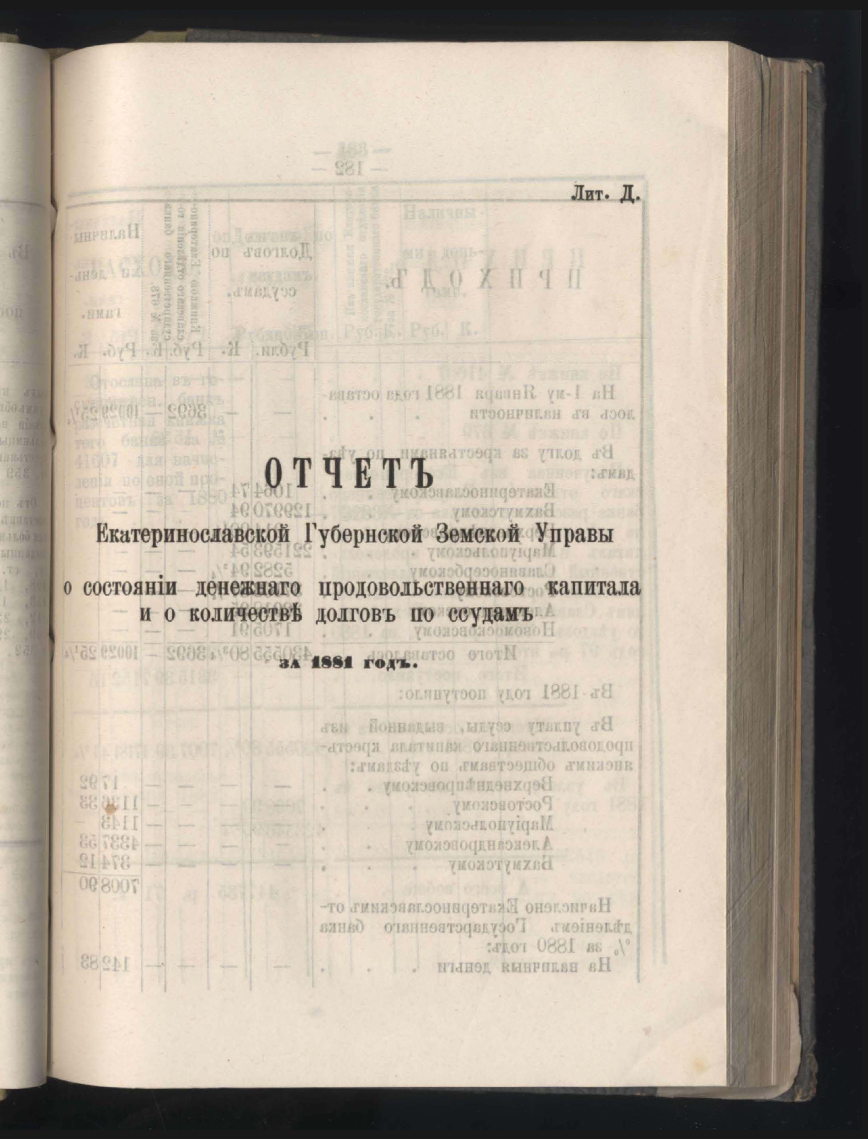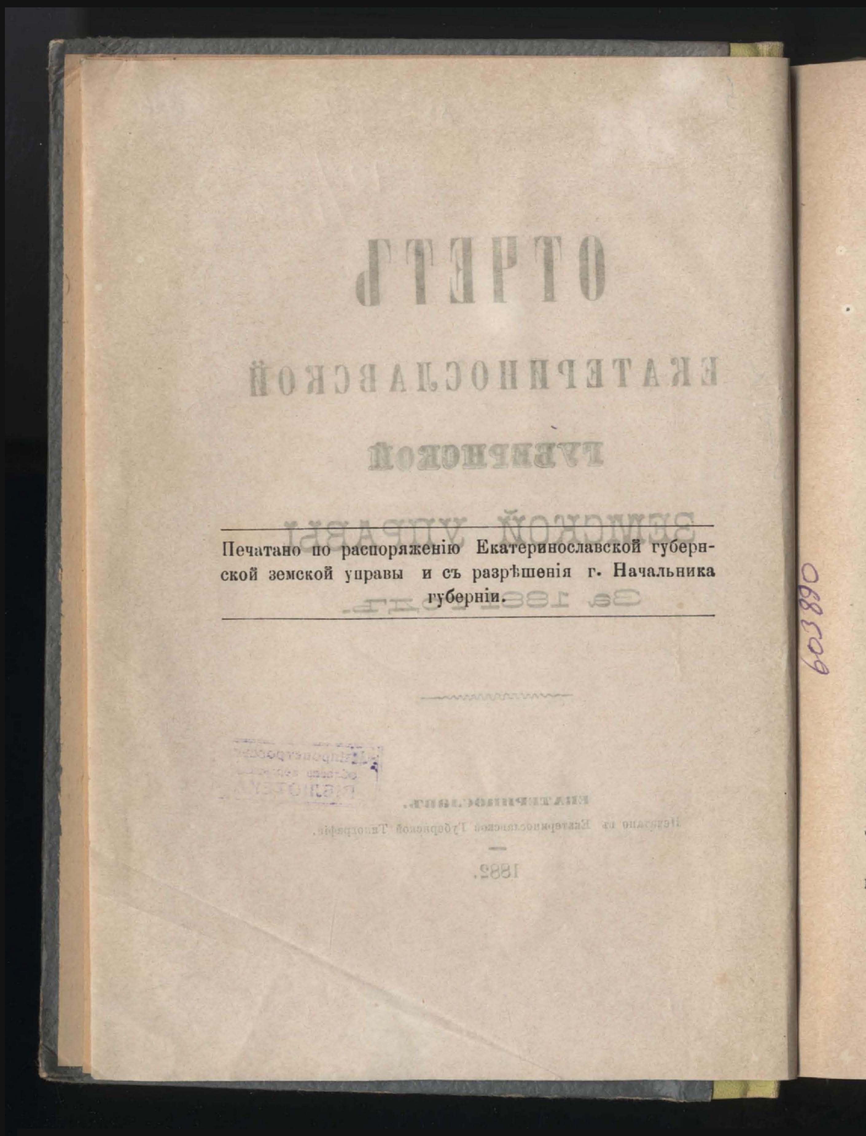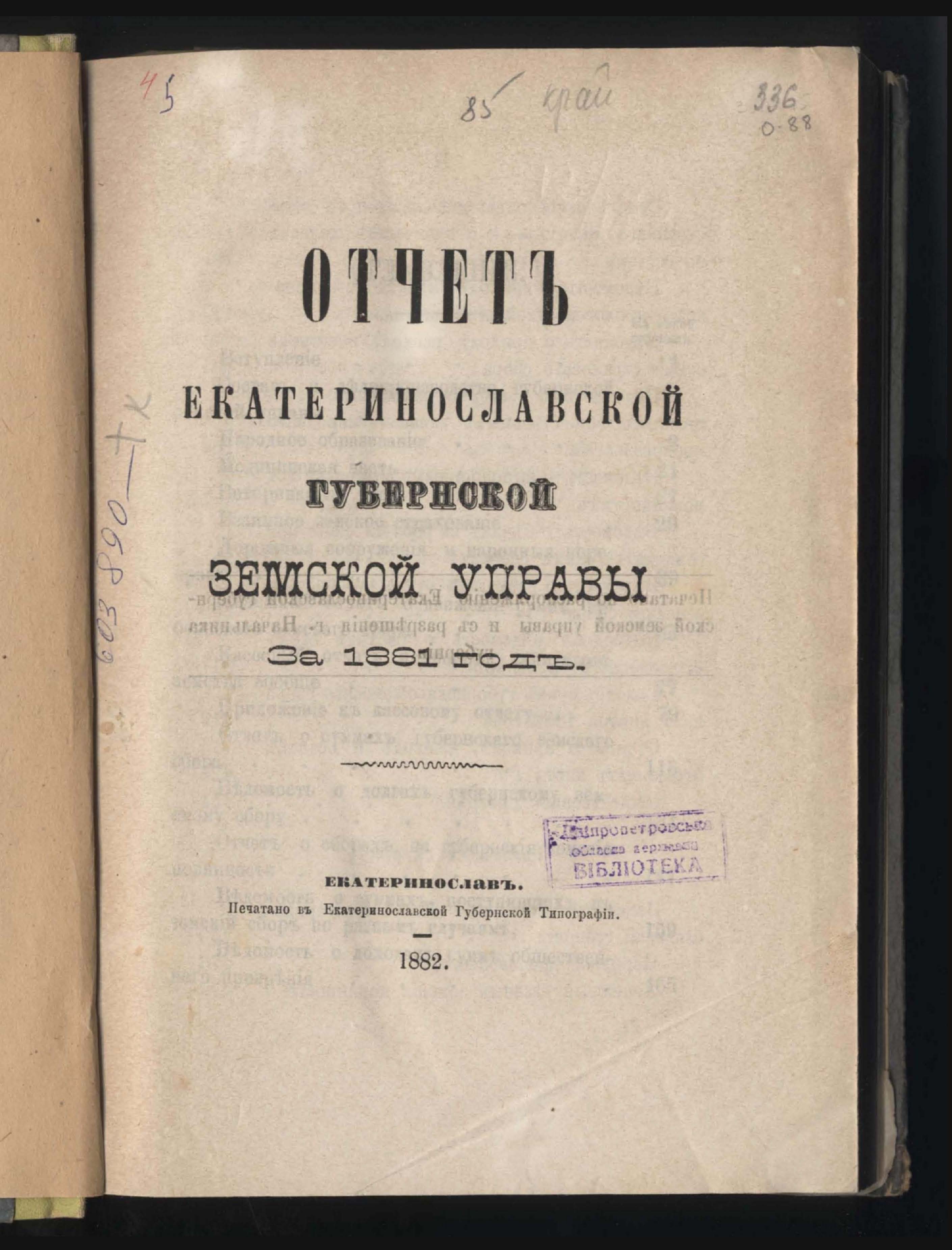 5. Отчетъ Екатеринославской Губернской Земской Управы за 1881 годъ