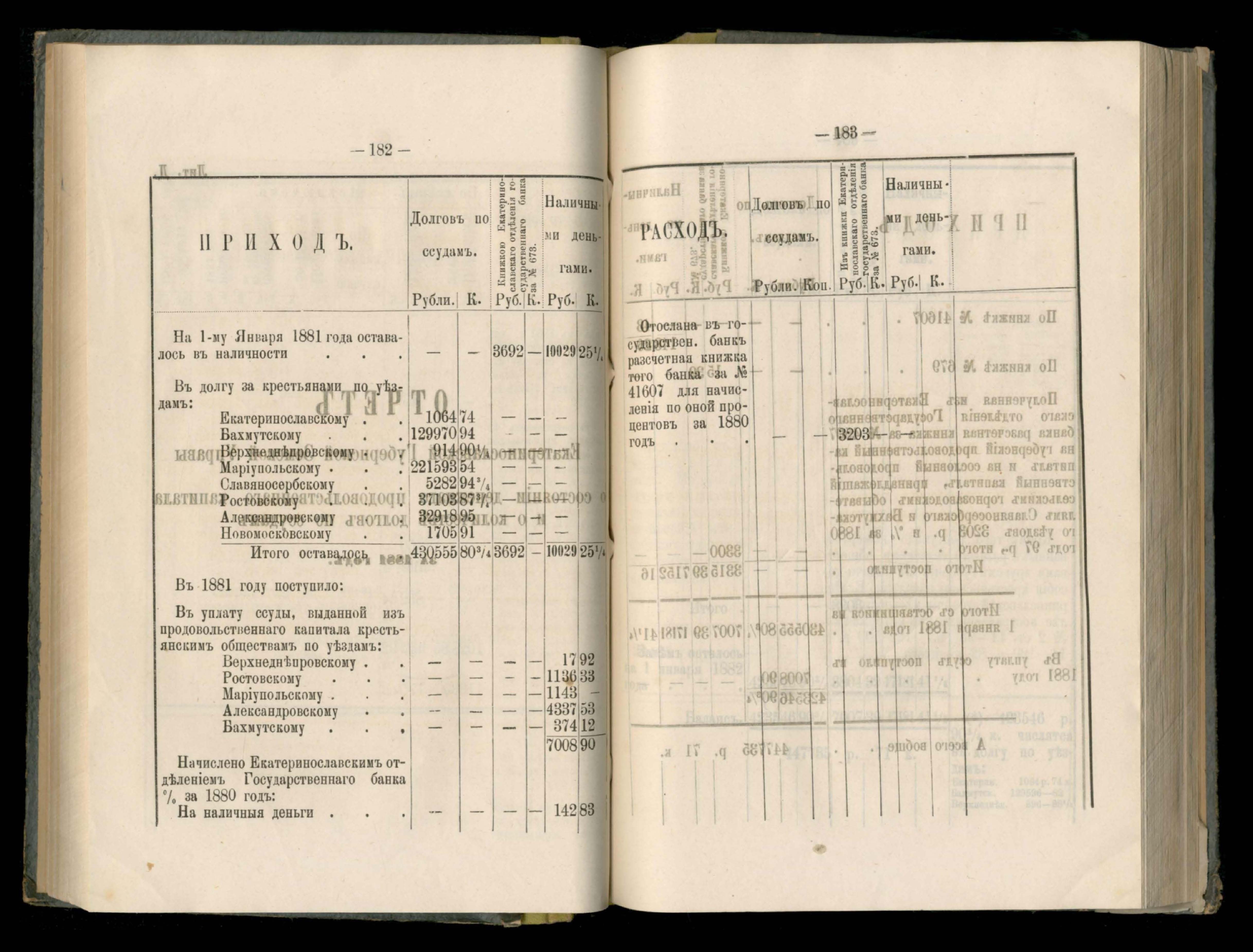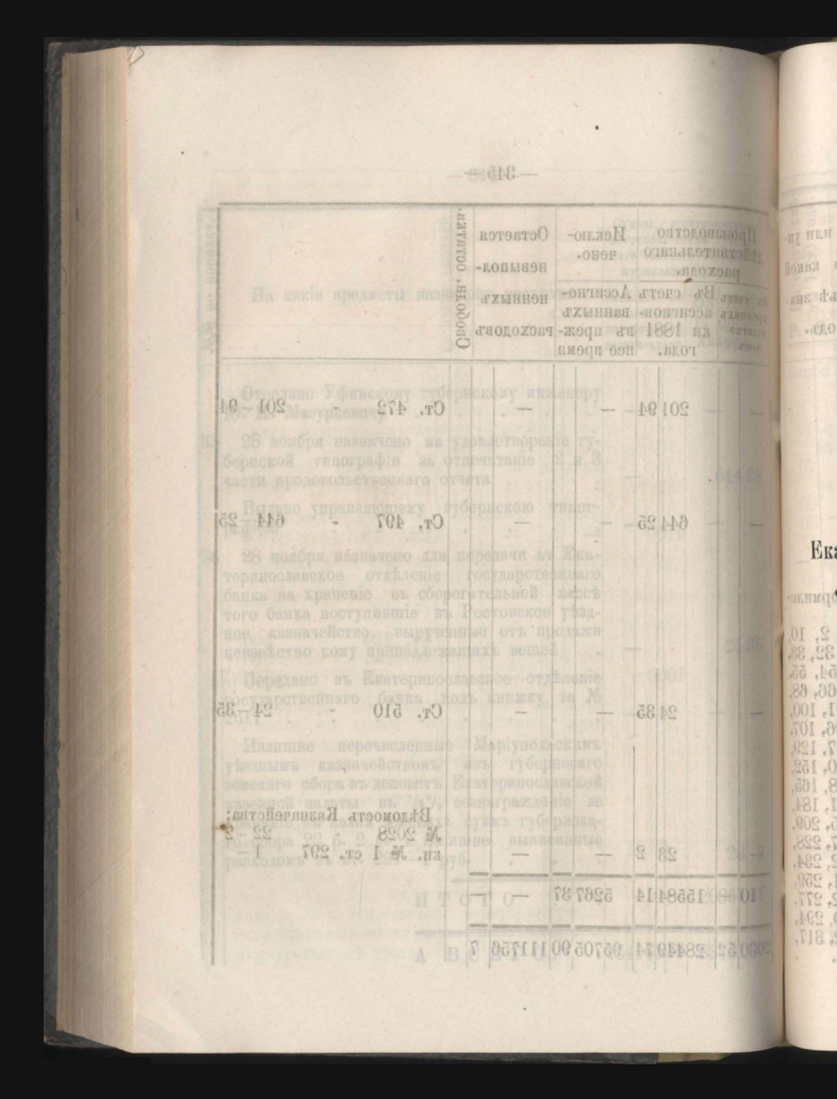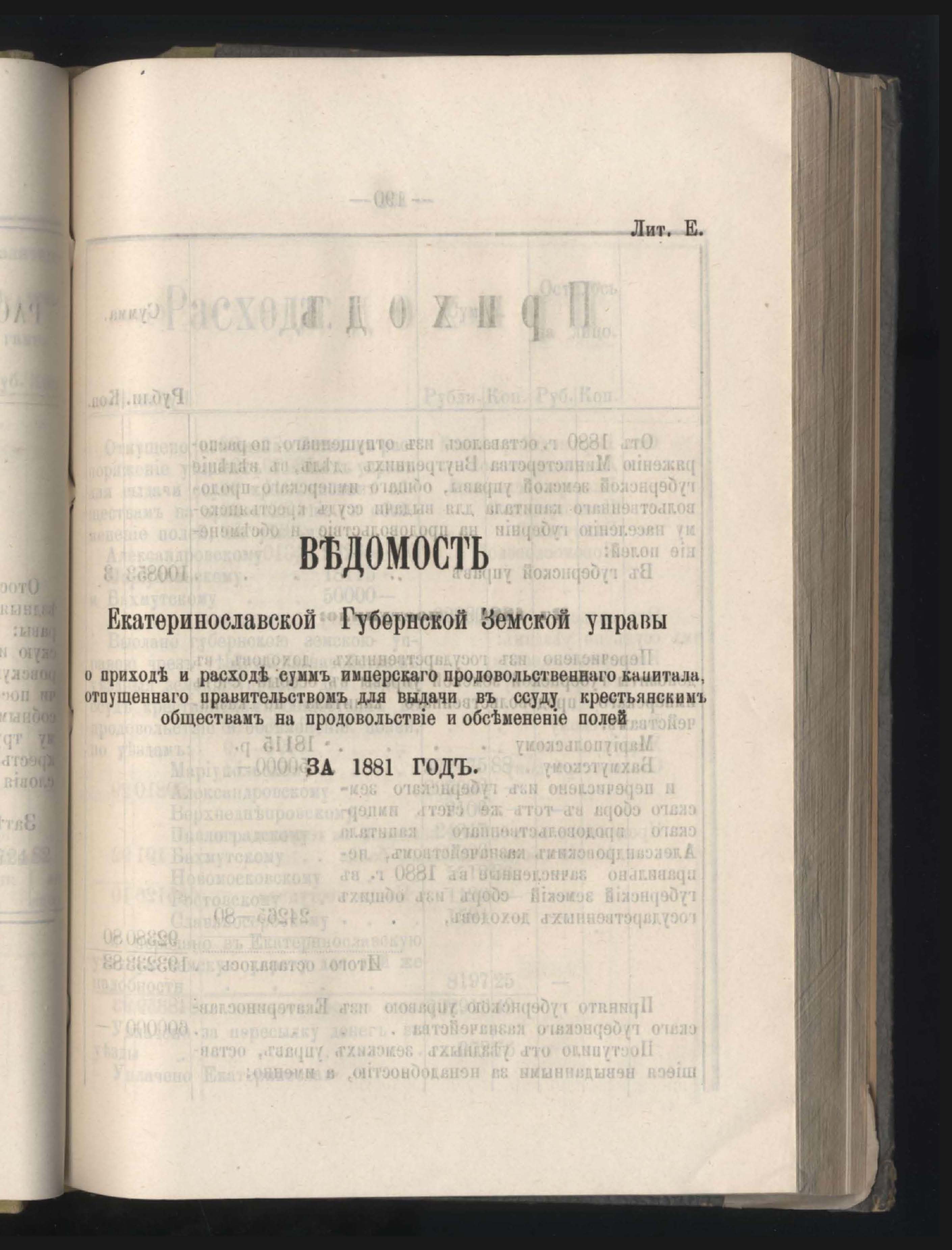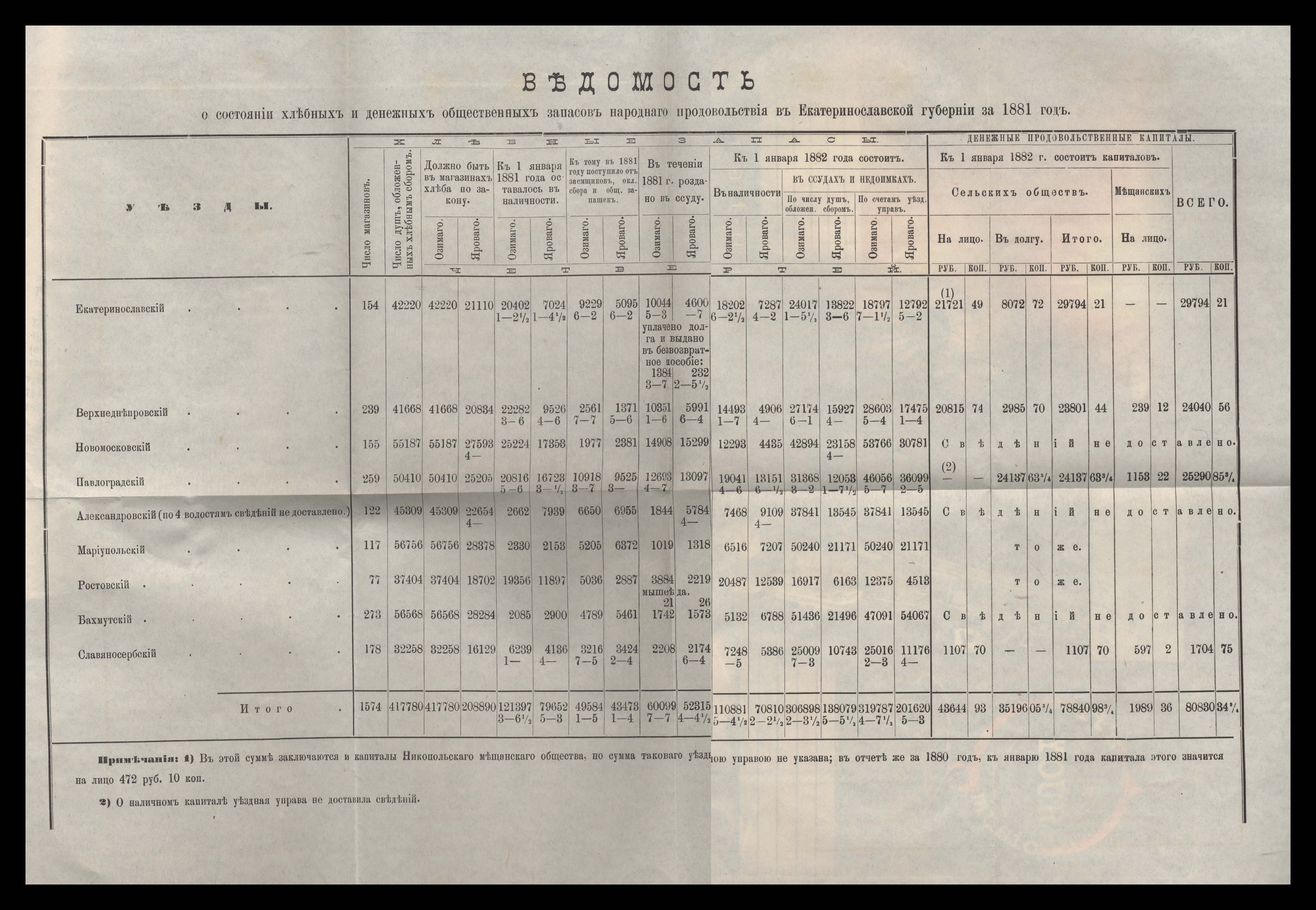 Въдомостъ о состояніи хлебныхъ общественныхъ запасовъ народнаго продовольствія въ Екатеринославской губерніи за 1881 годъ