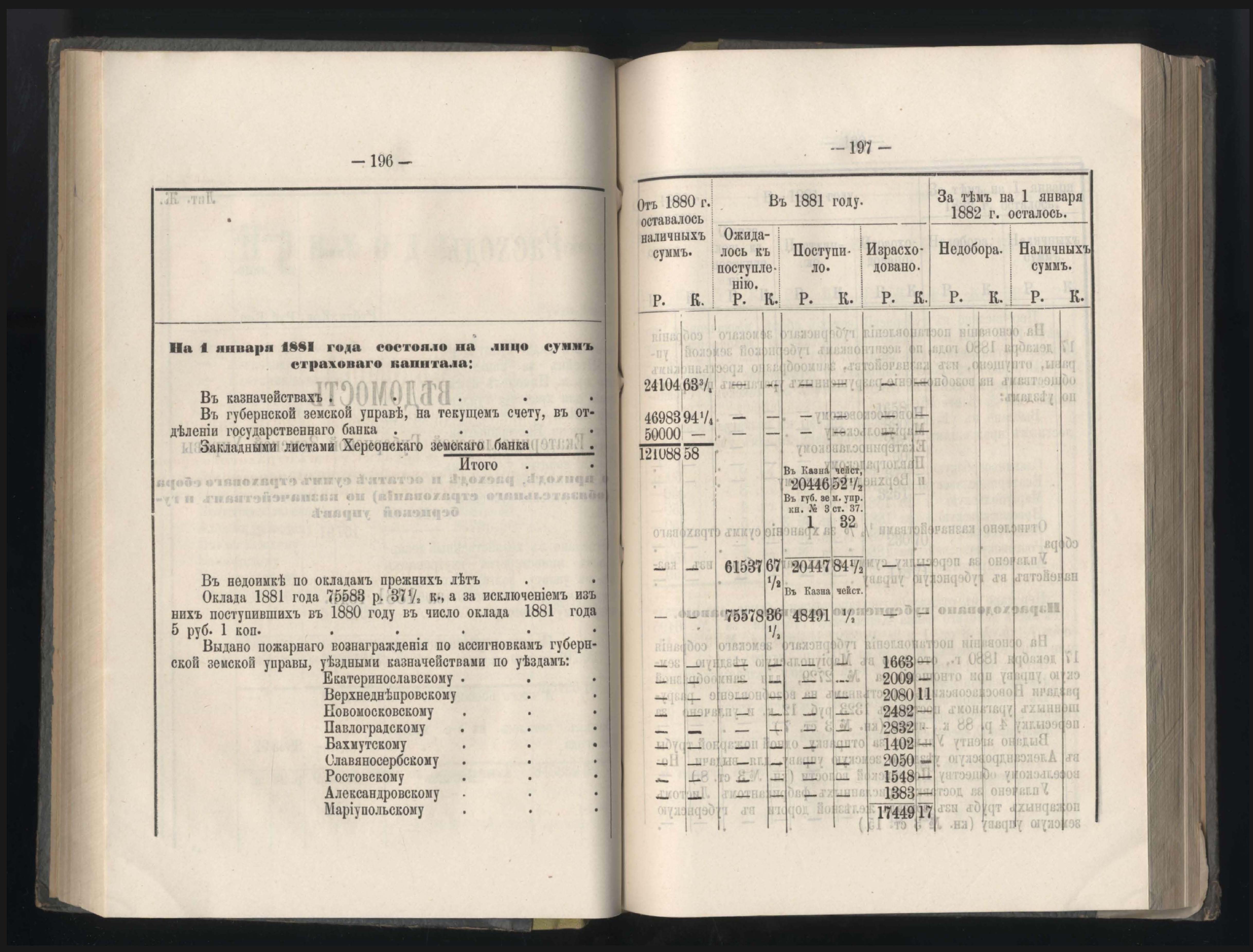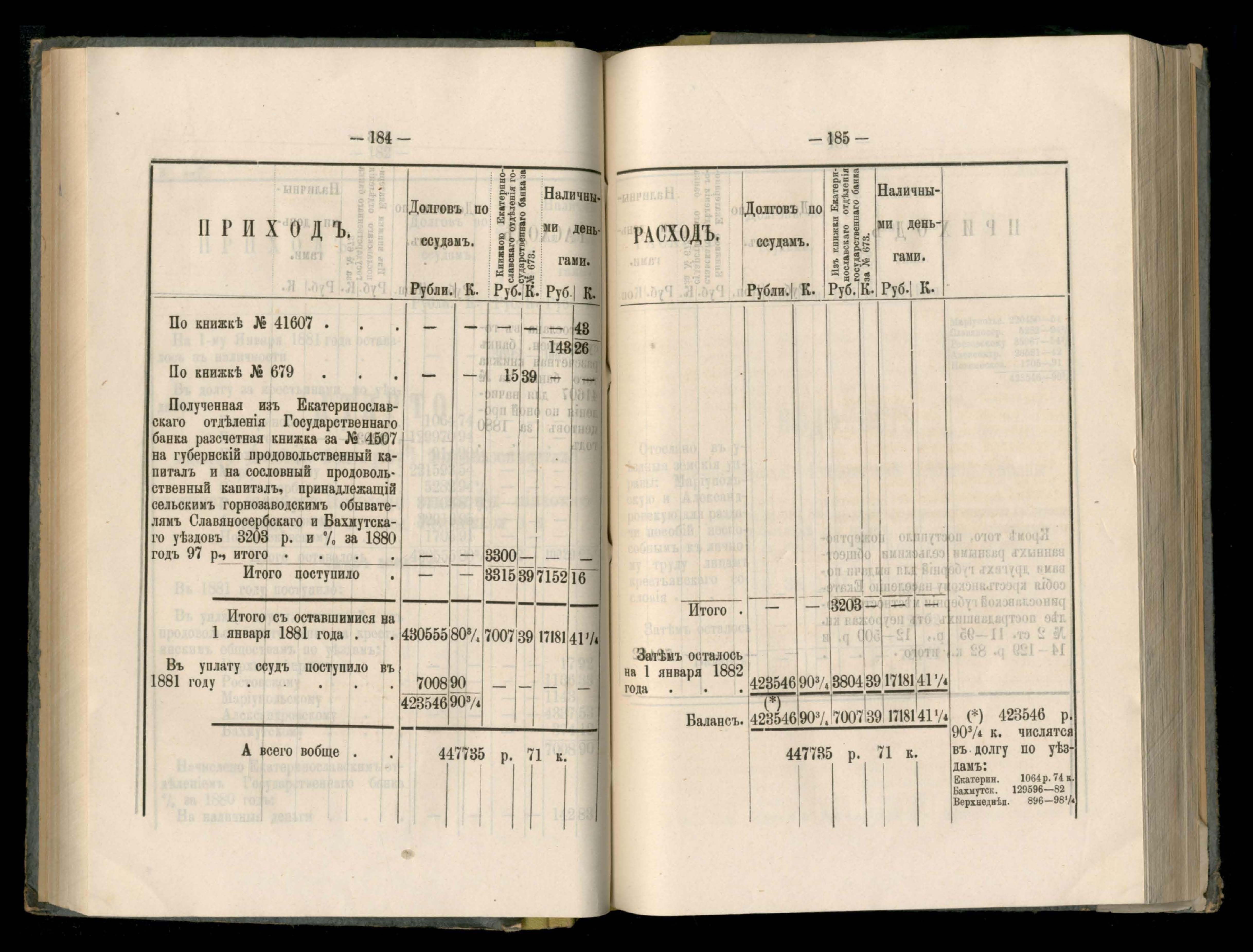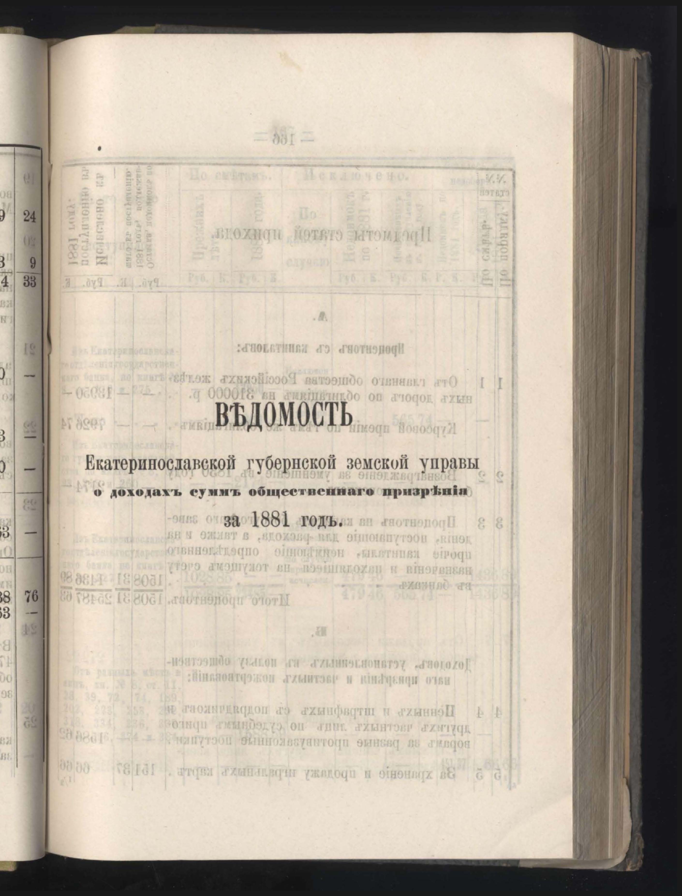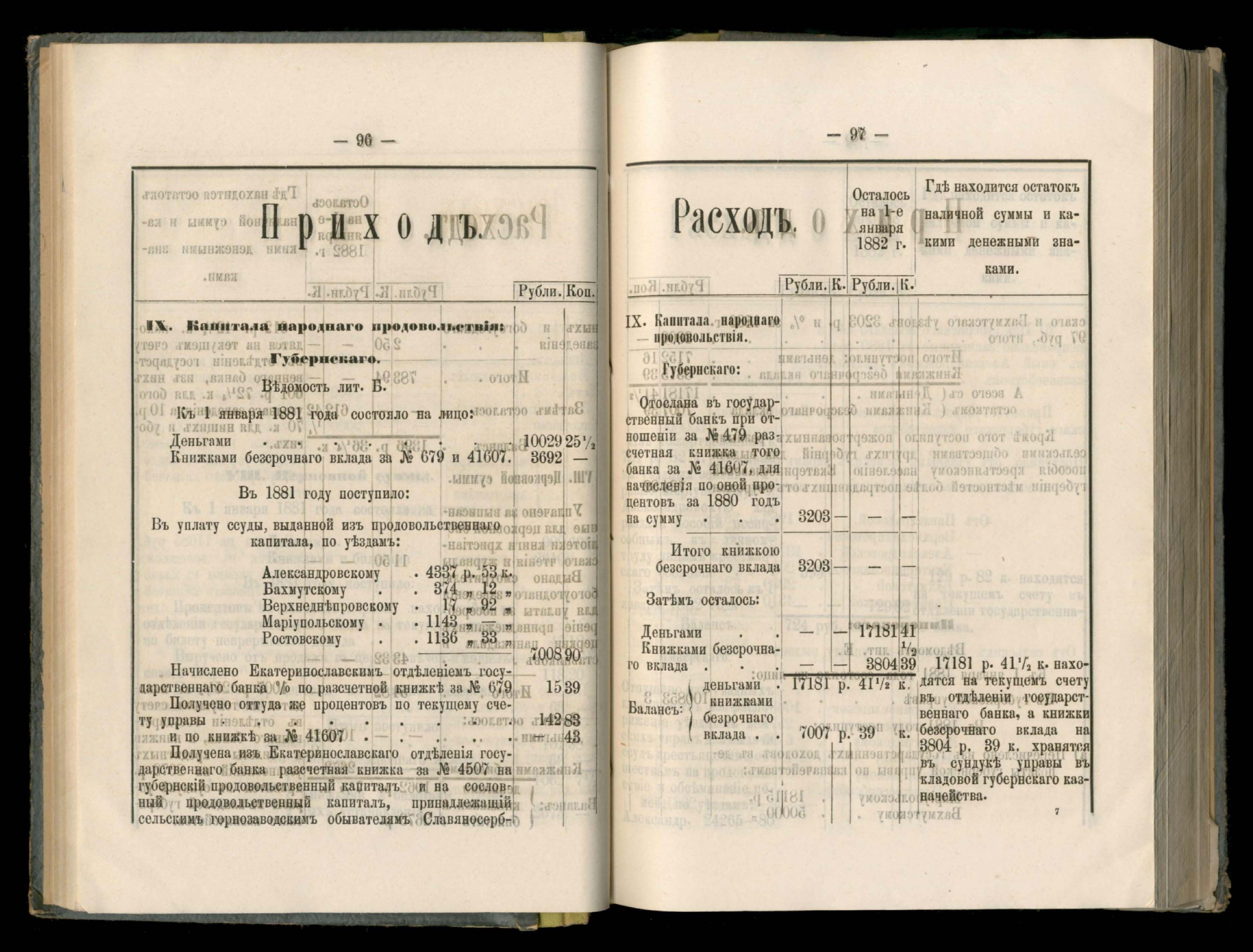 Въдомостъ о состояніи хлебныхъ общественныхъ запасовъ народнаго продовольствія въ Екатеринославской губерніи за 1881 годъ