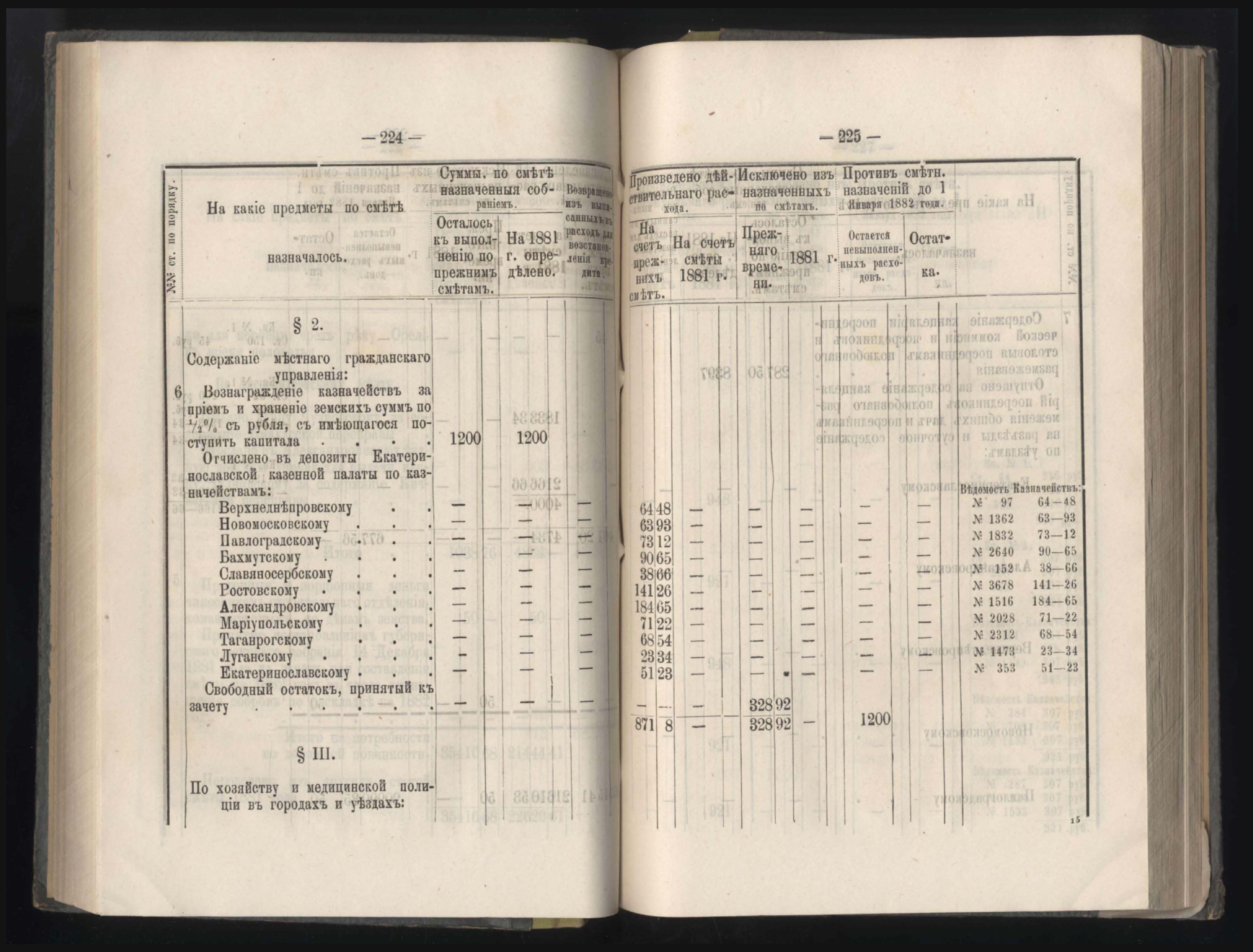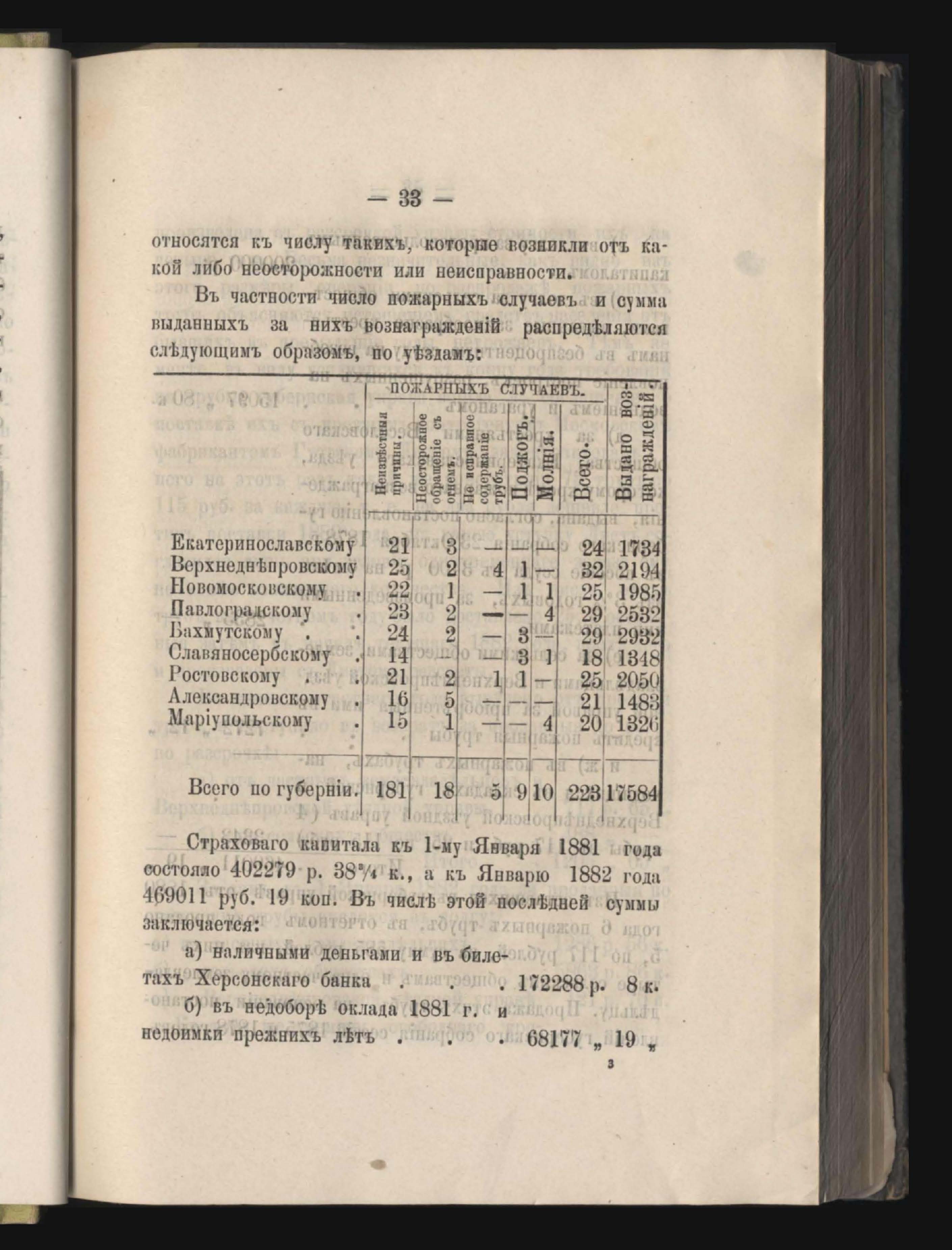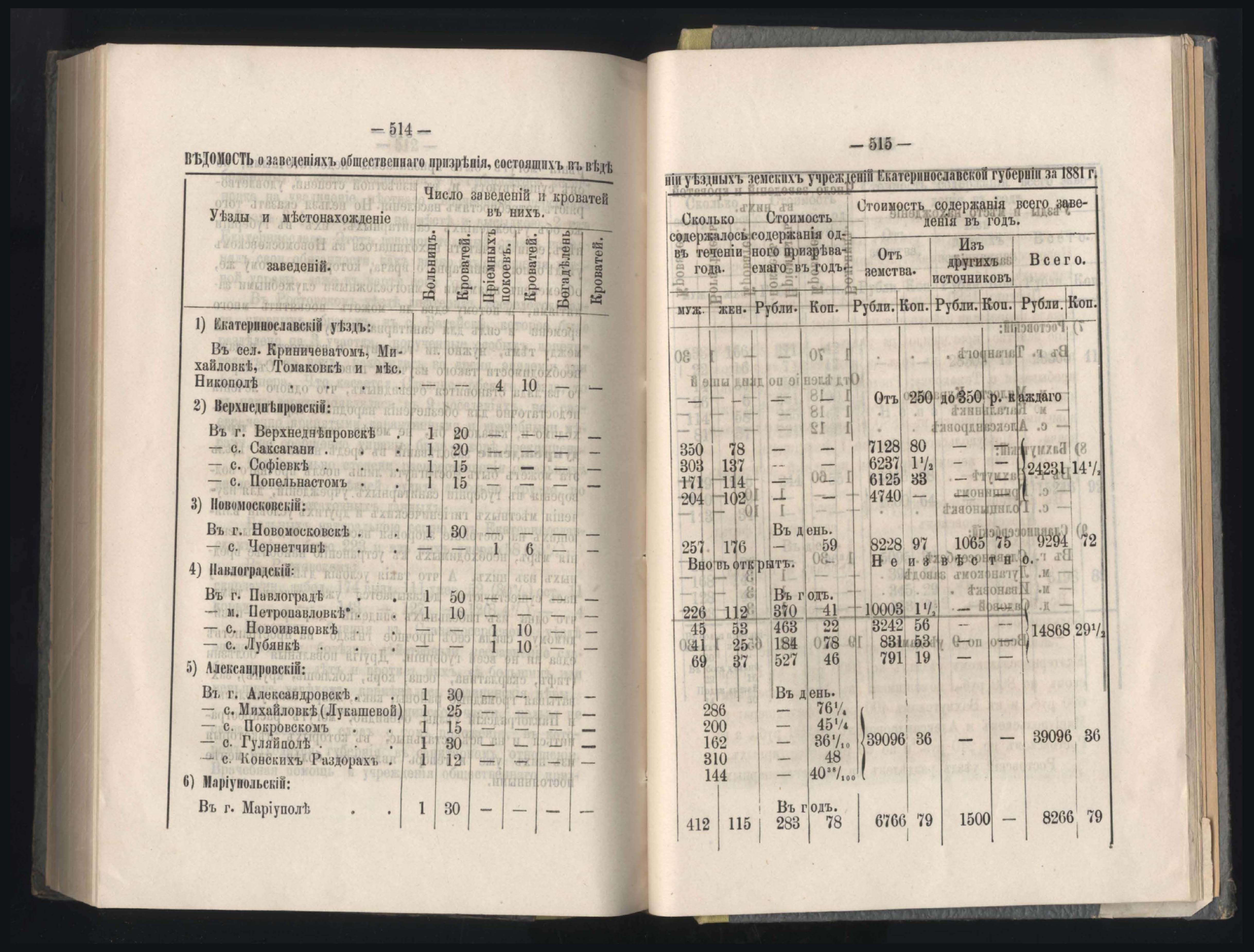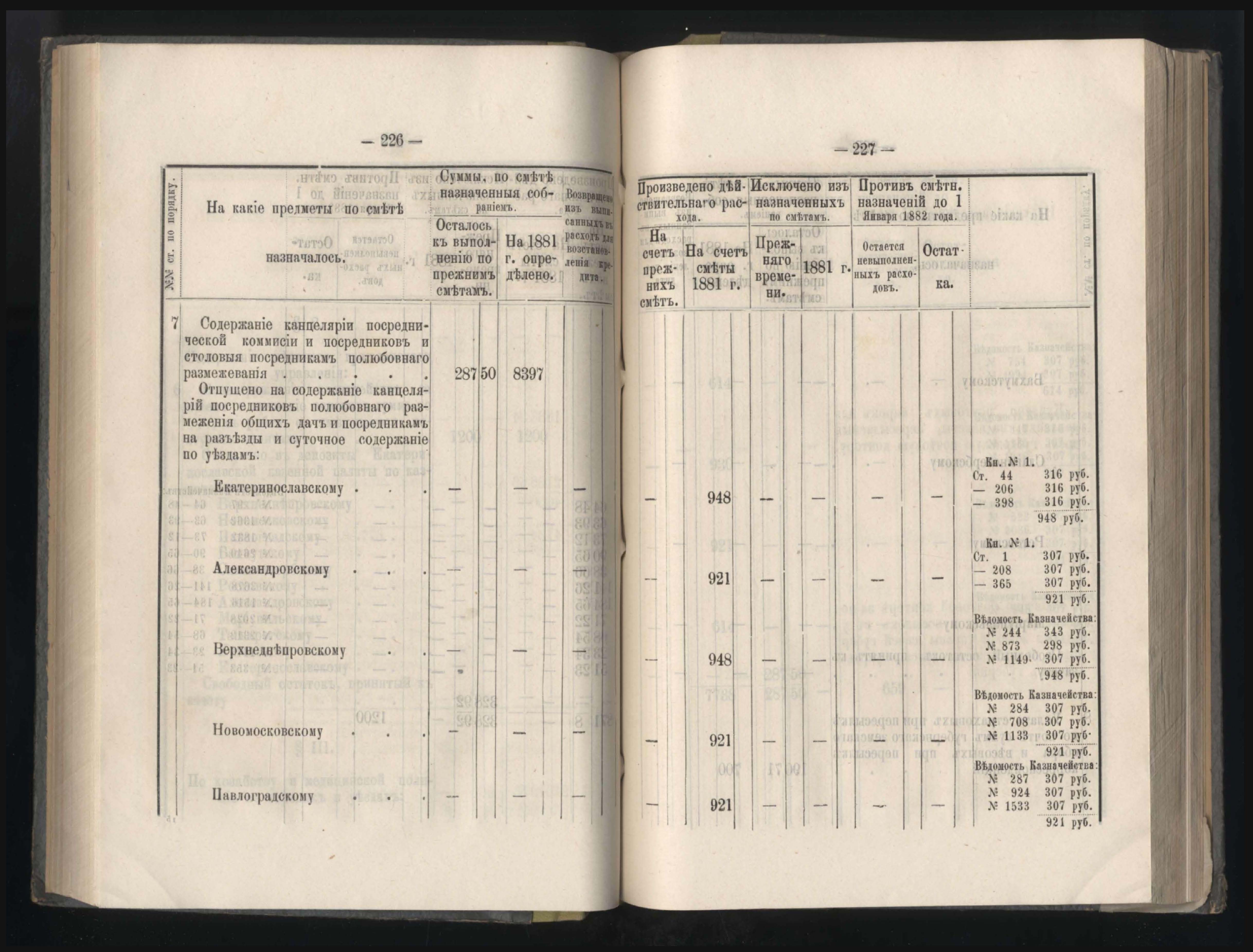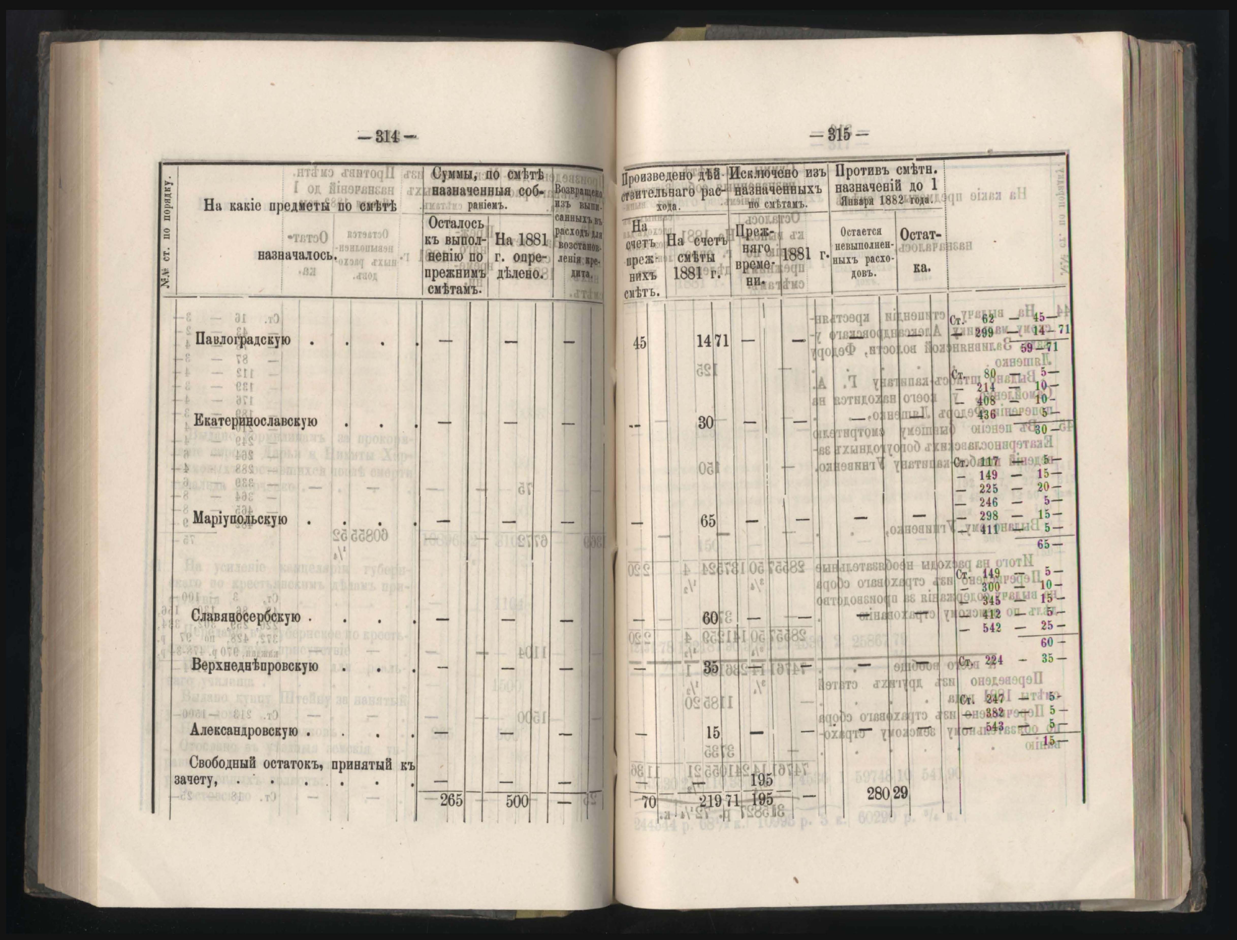 Въдомостъ о состояніи хлебныхъ общественныхъ запасовъ народнаго продовольствія въ Екатеринославской губерніи за 1881 годъ