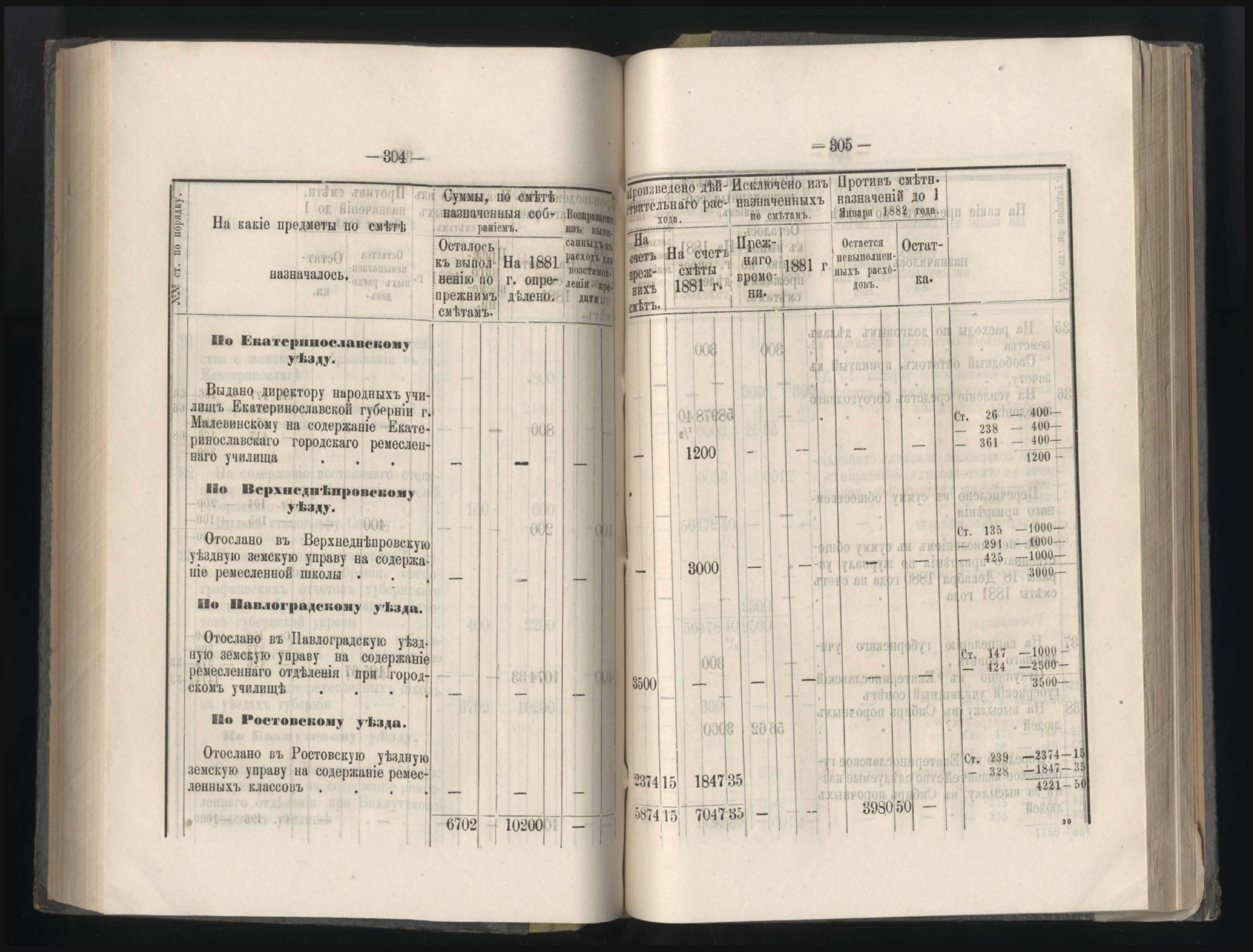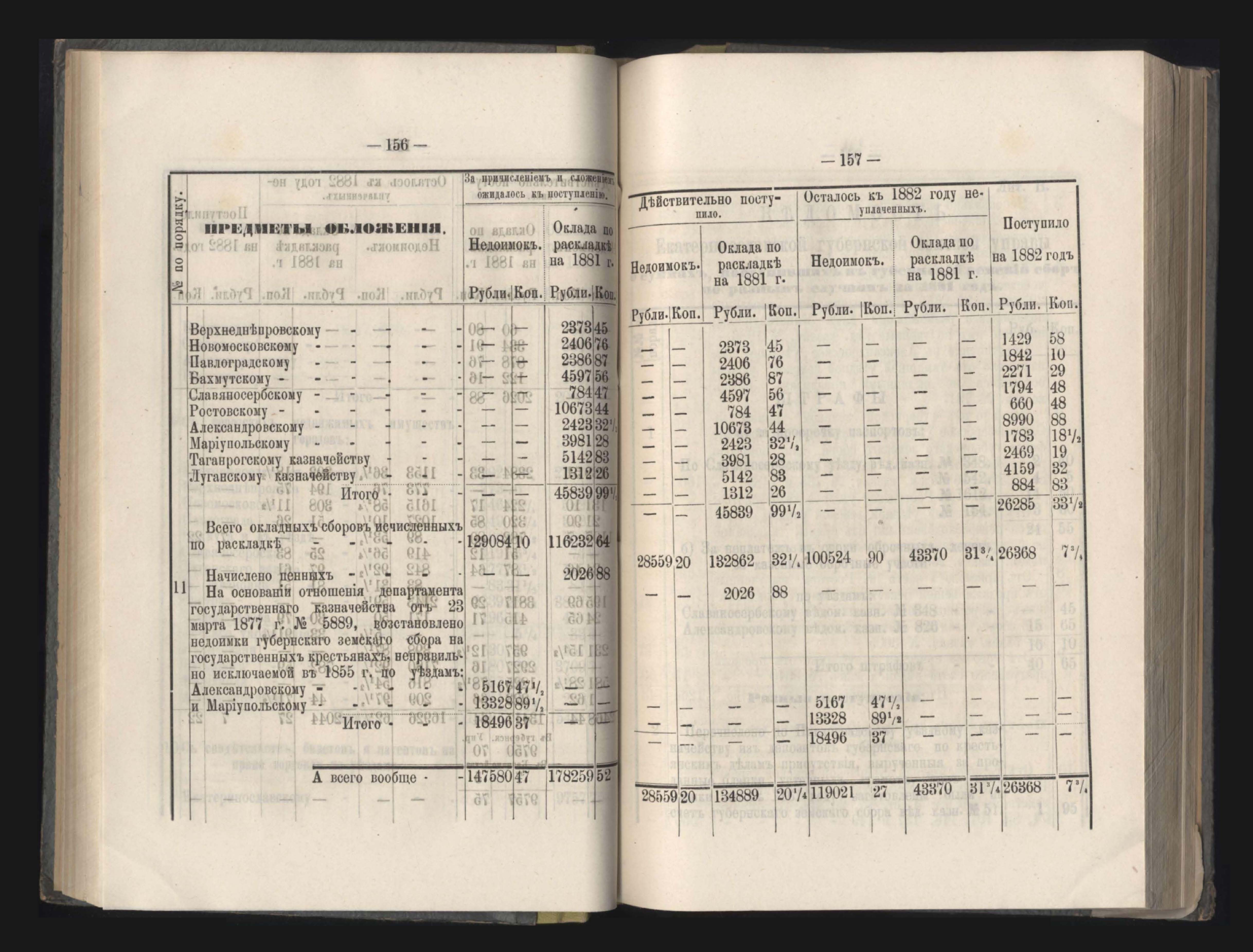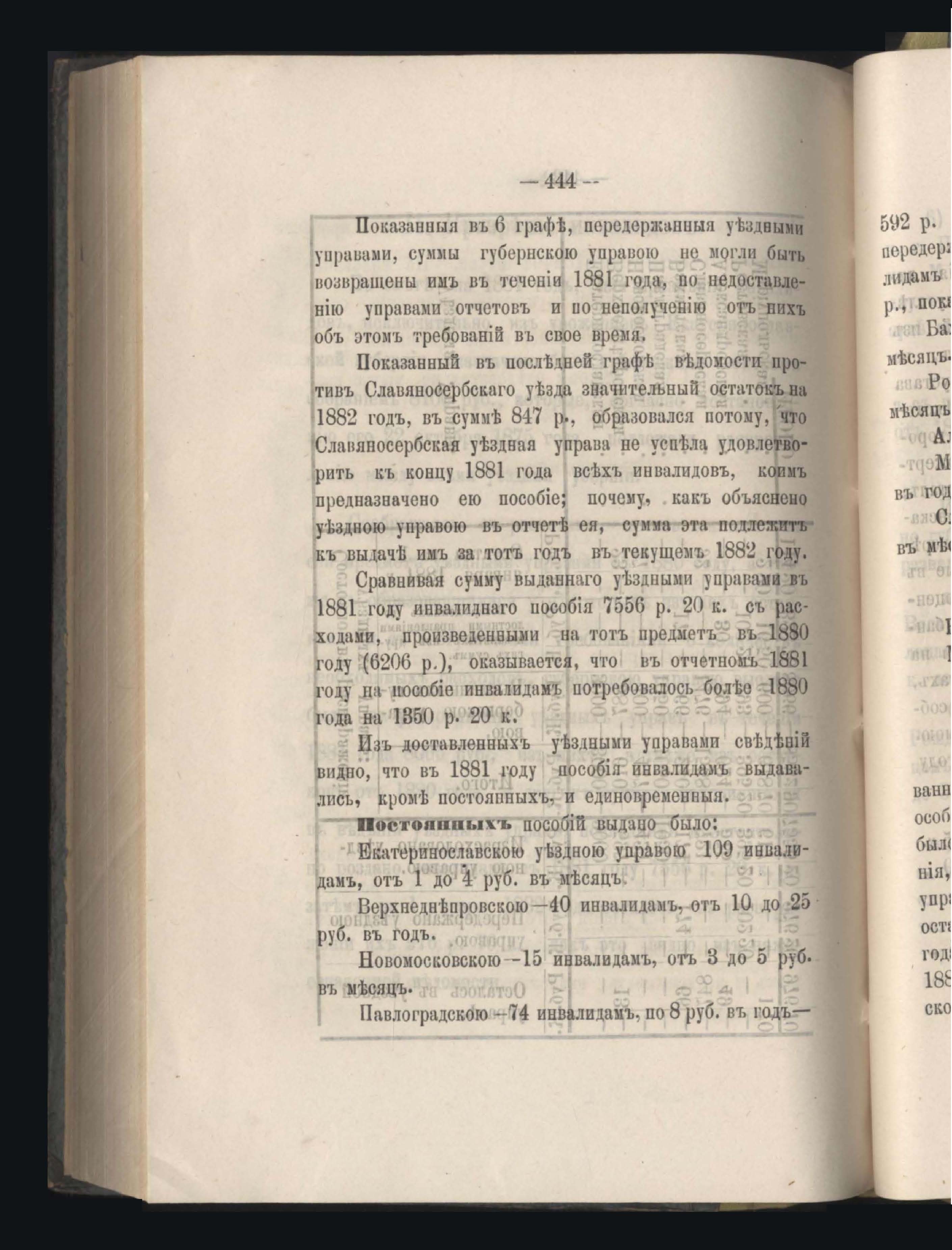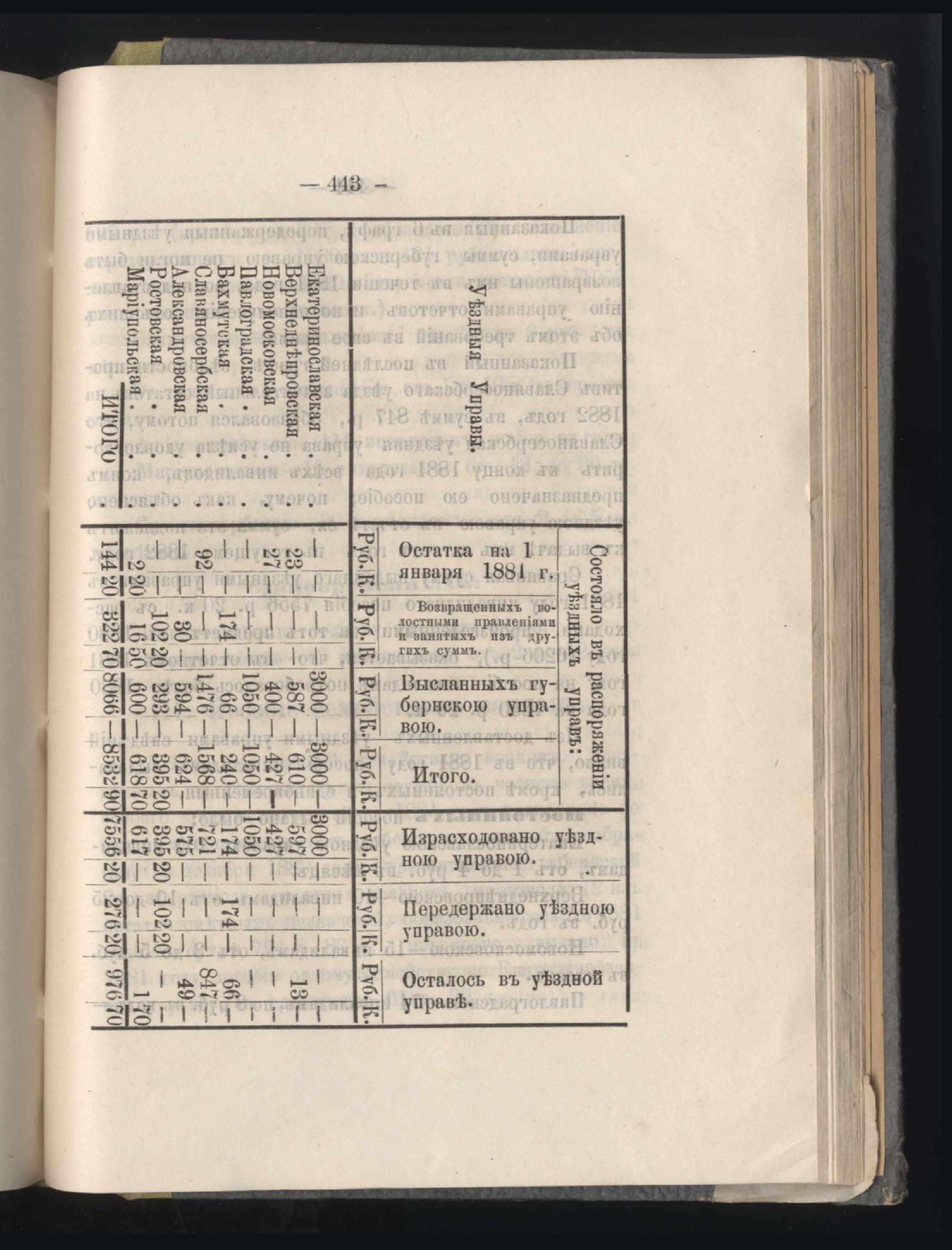 Въдомостъ о состояніи хлебныхъ общественныхъ запасовъ народнаго продовольствія въ Екатеринославской губерніи за 1881 годъ