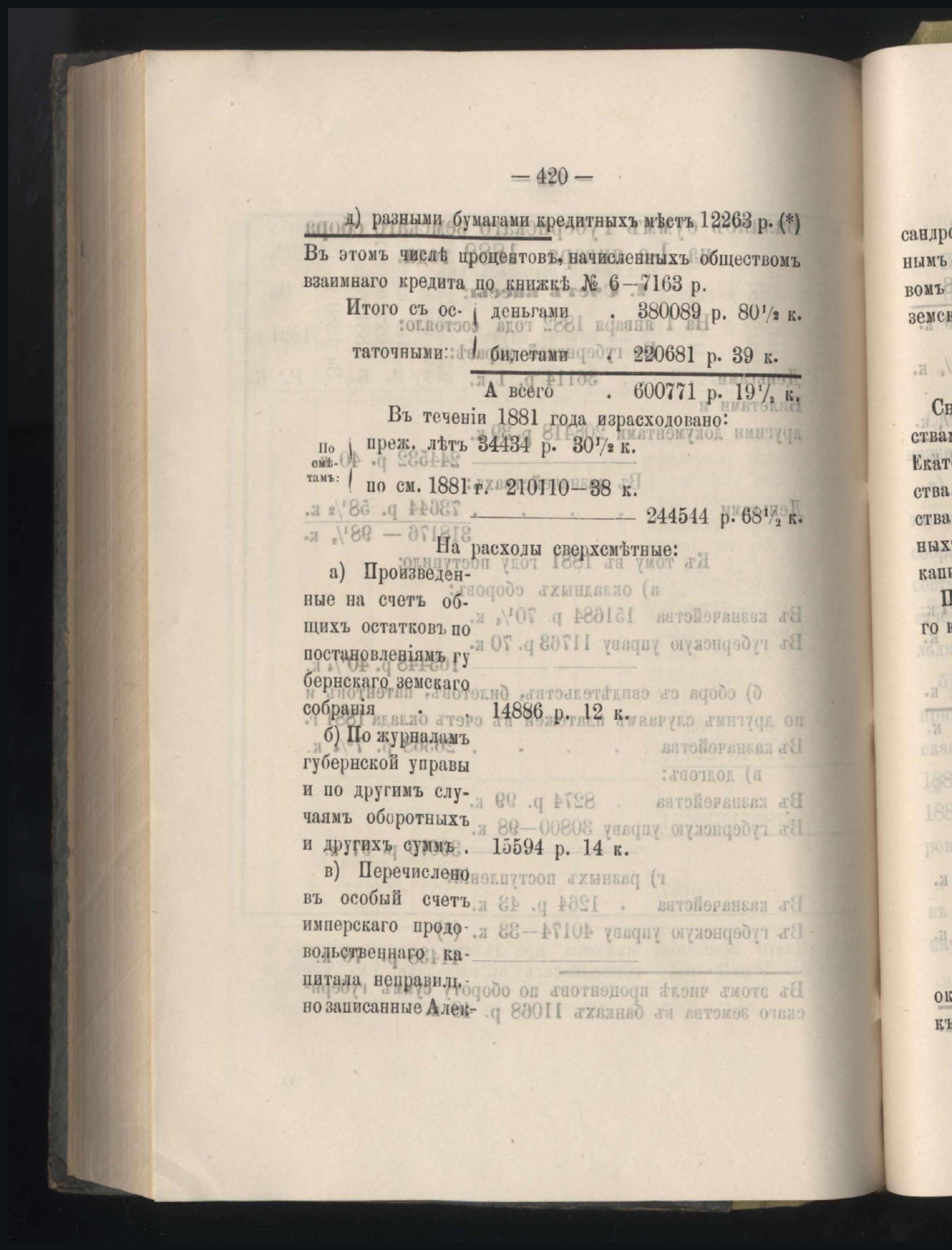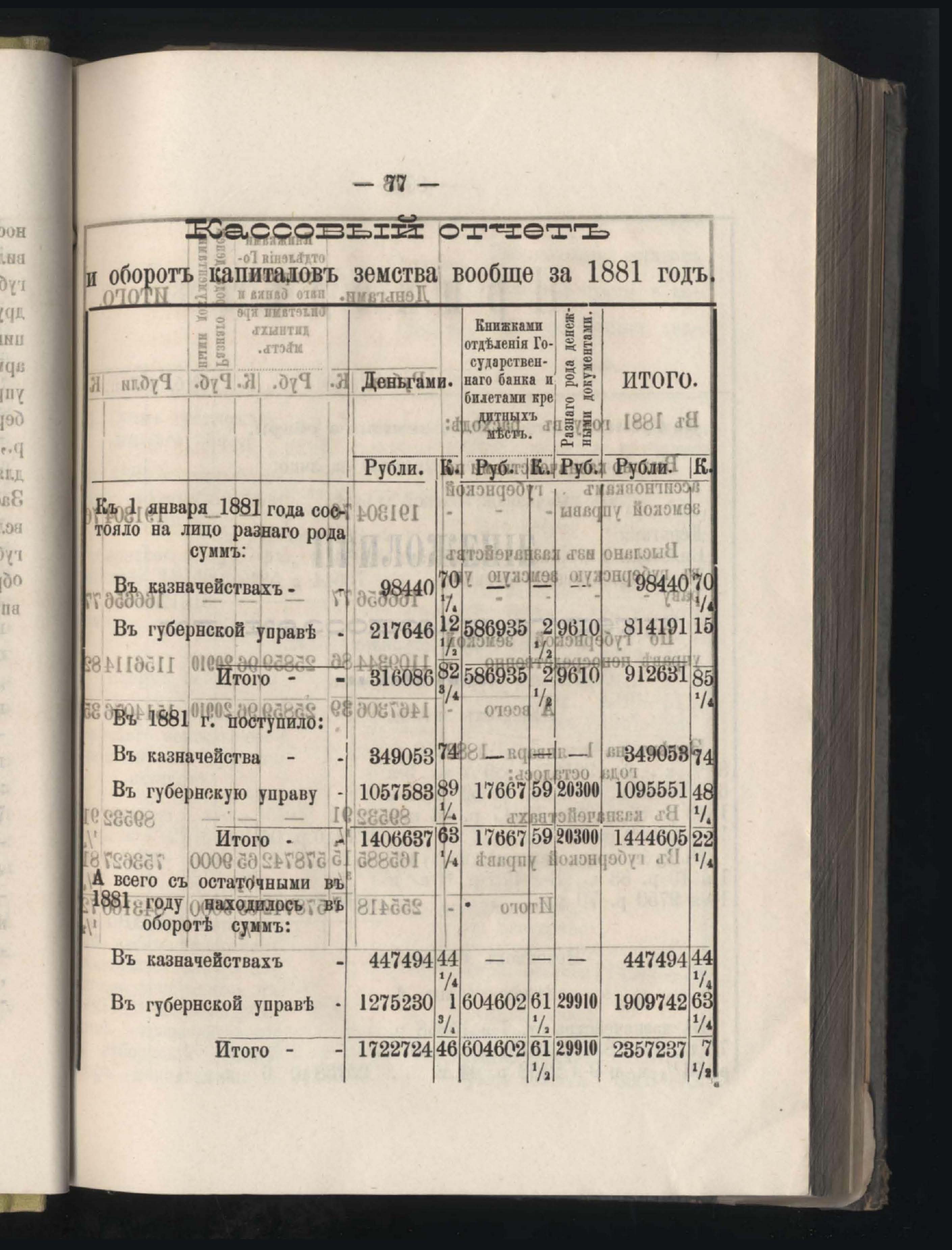 87. Кассовый отчетъ и оборотъ капиталовъ земства вообще з 1881 годъ