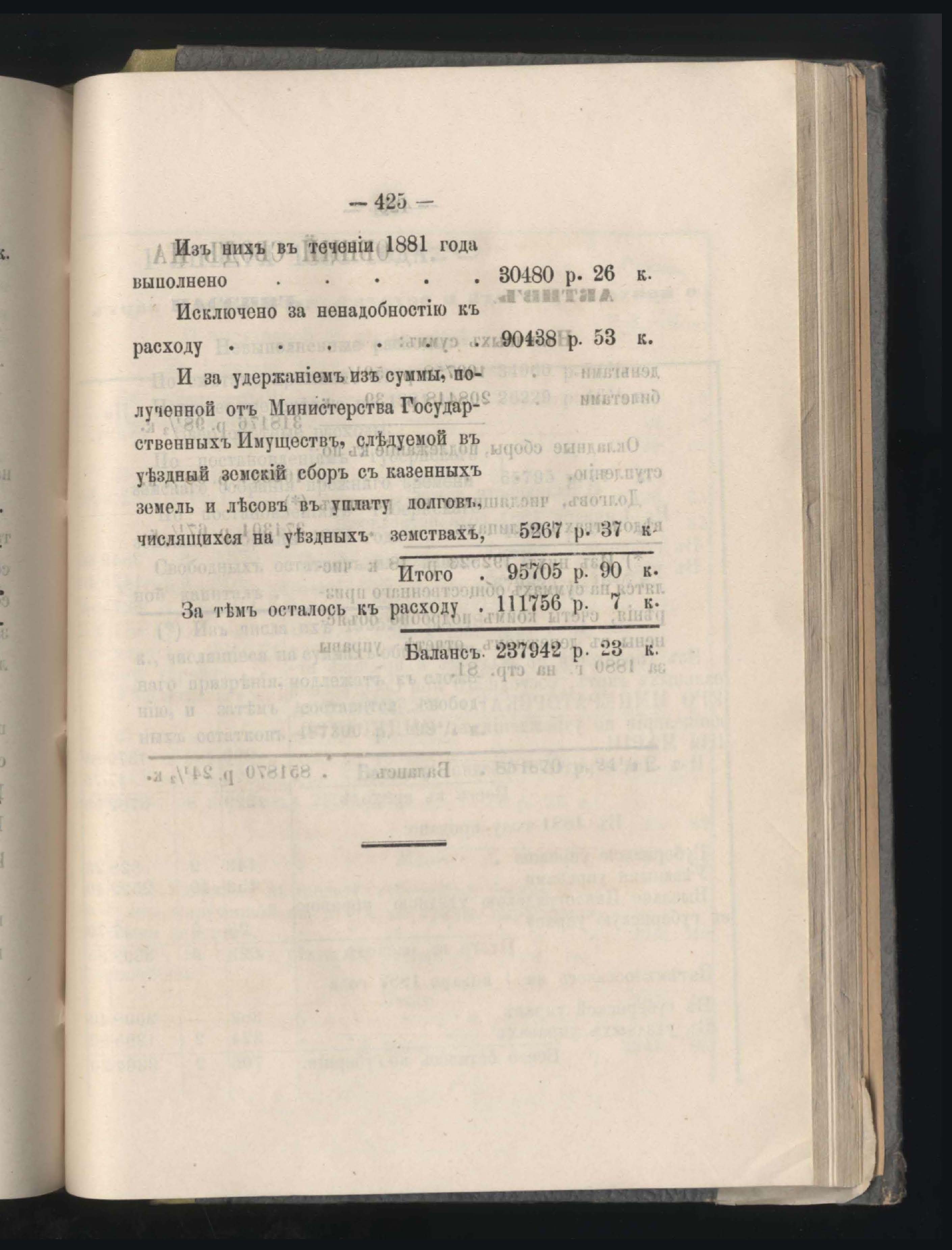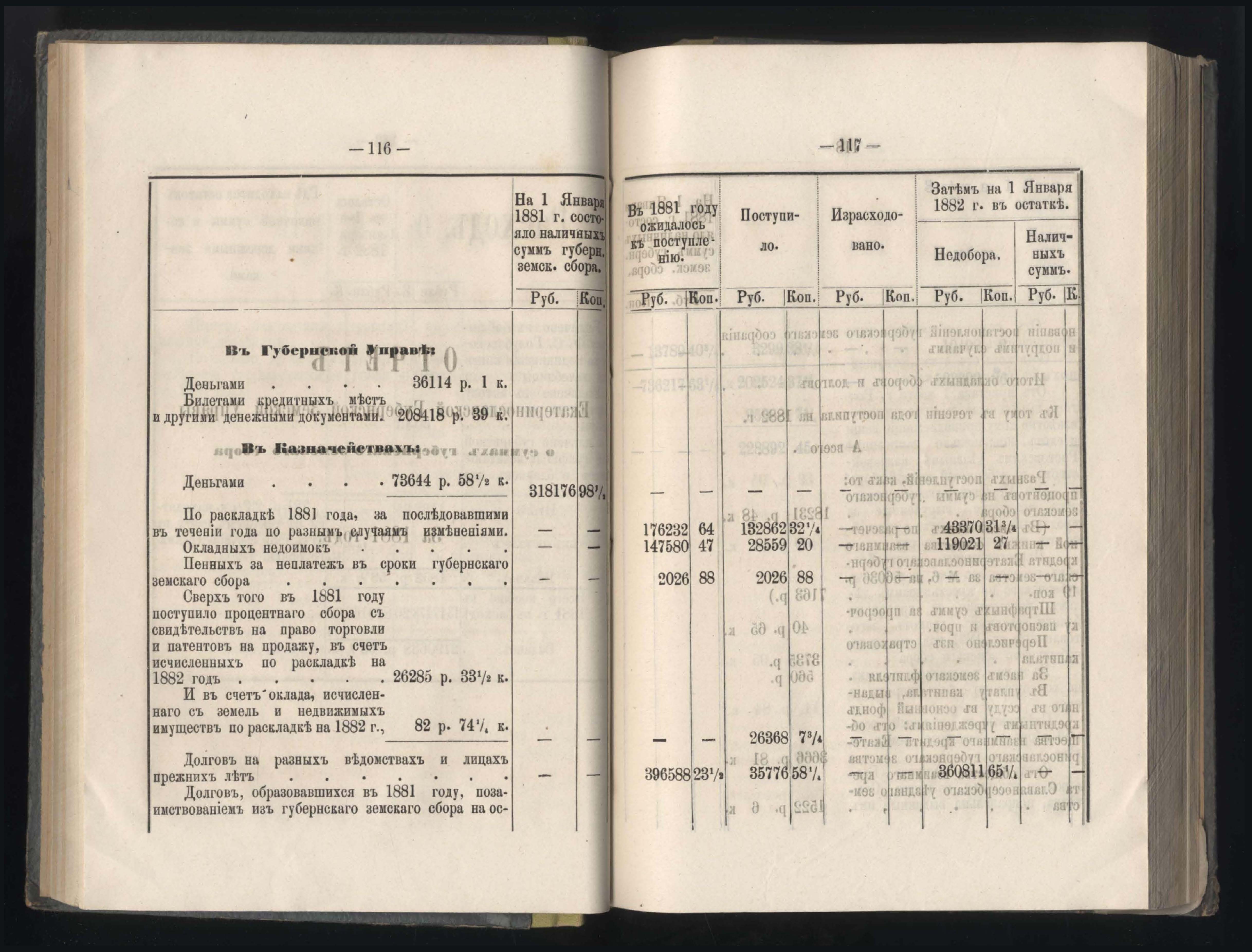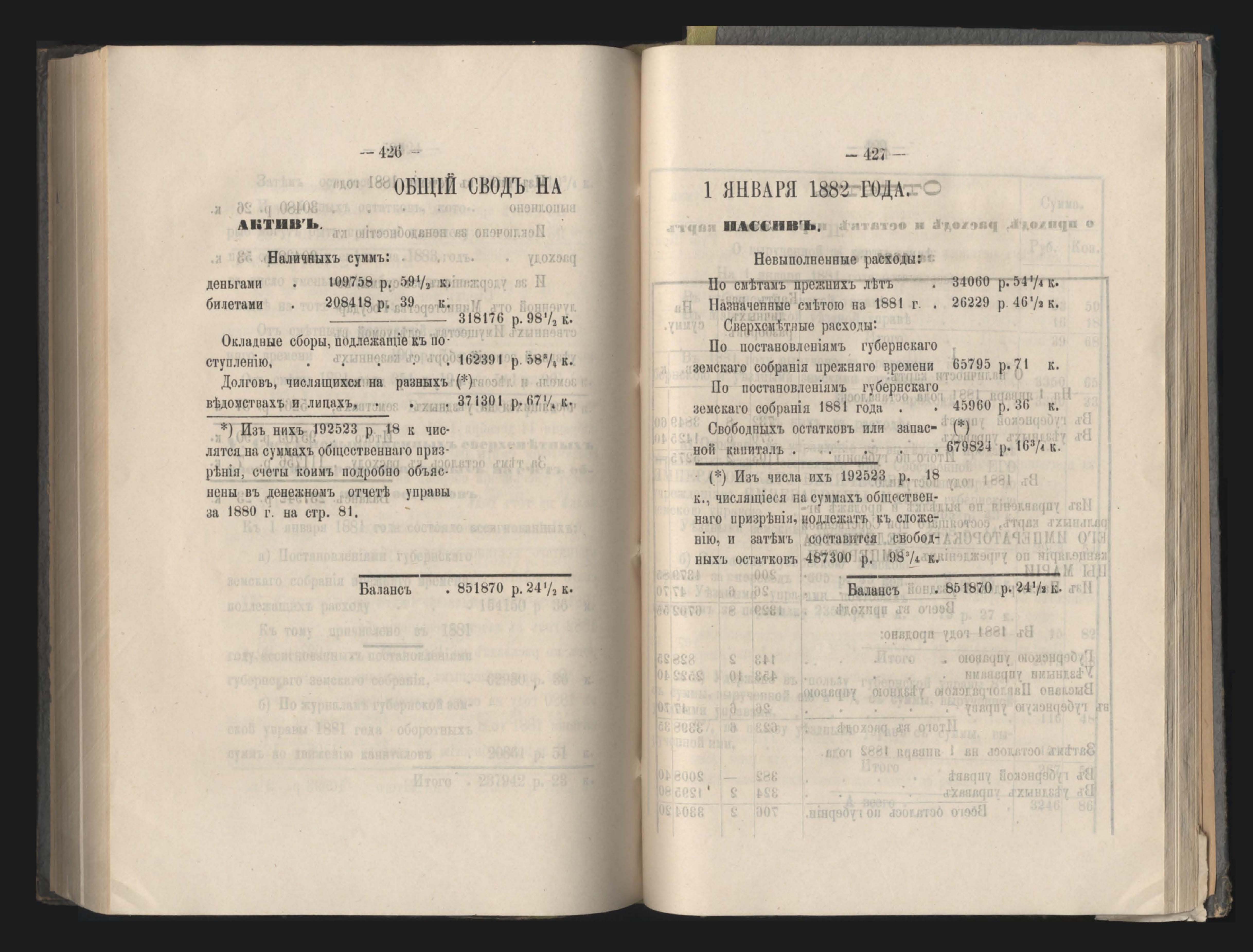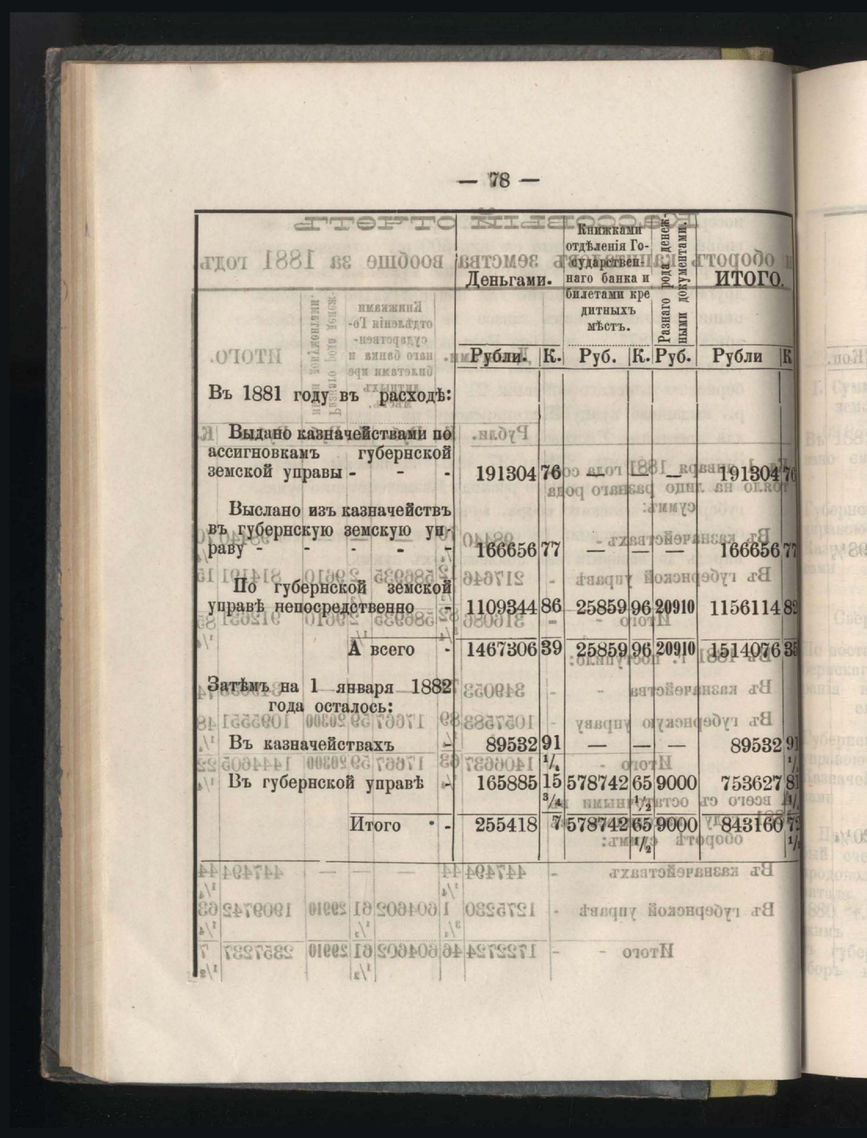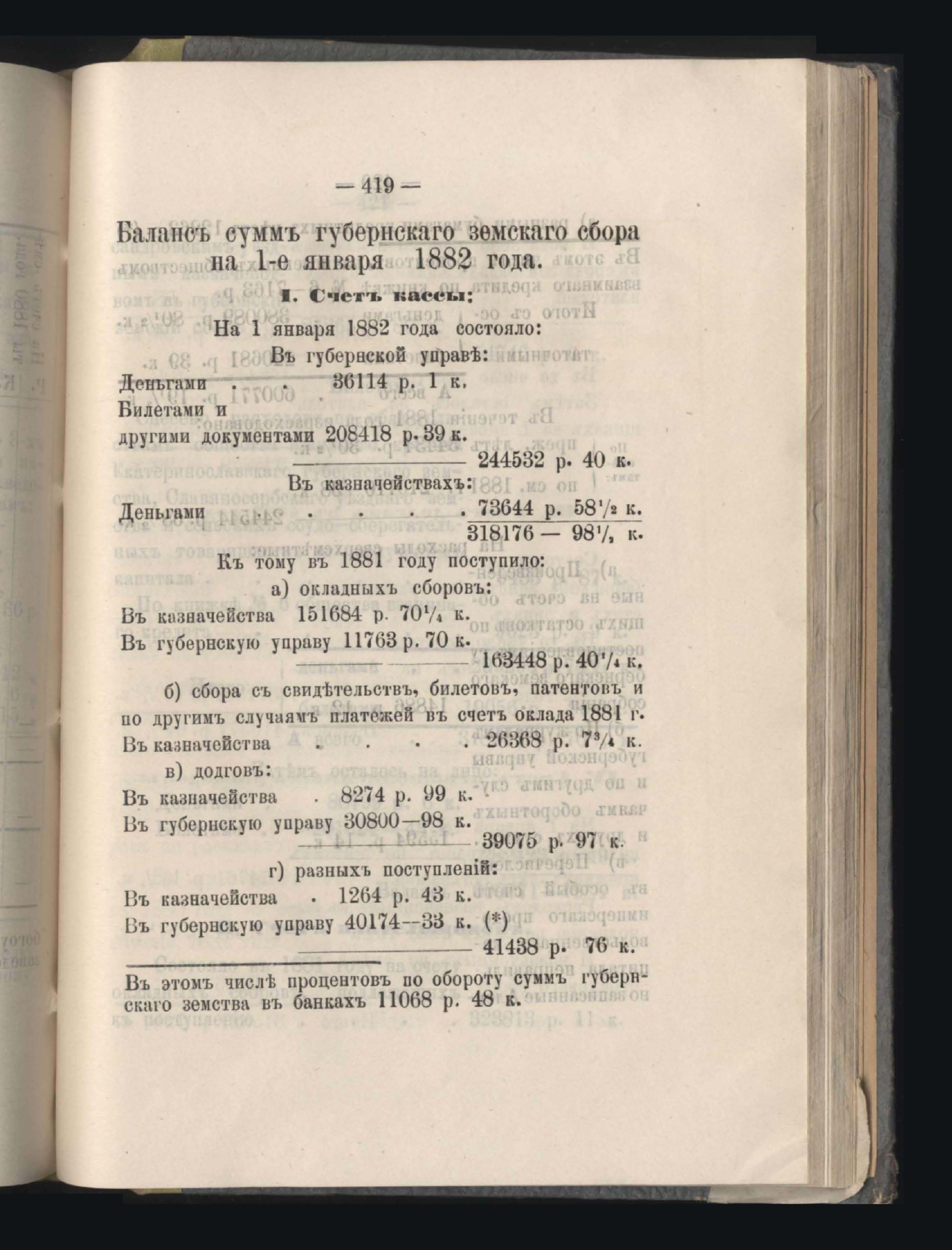 273. Балансъ суммъ губернскаго земскаго сбора на 1-е Января 1882 года