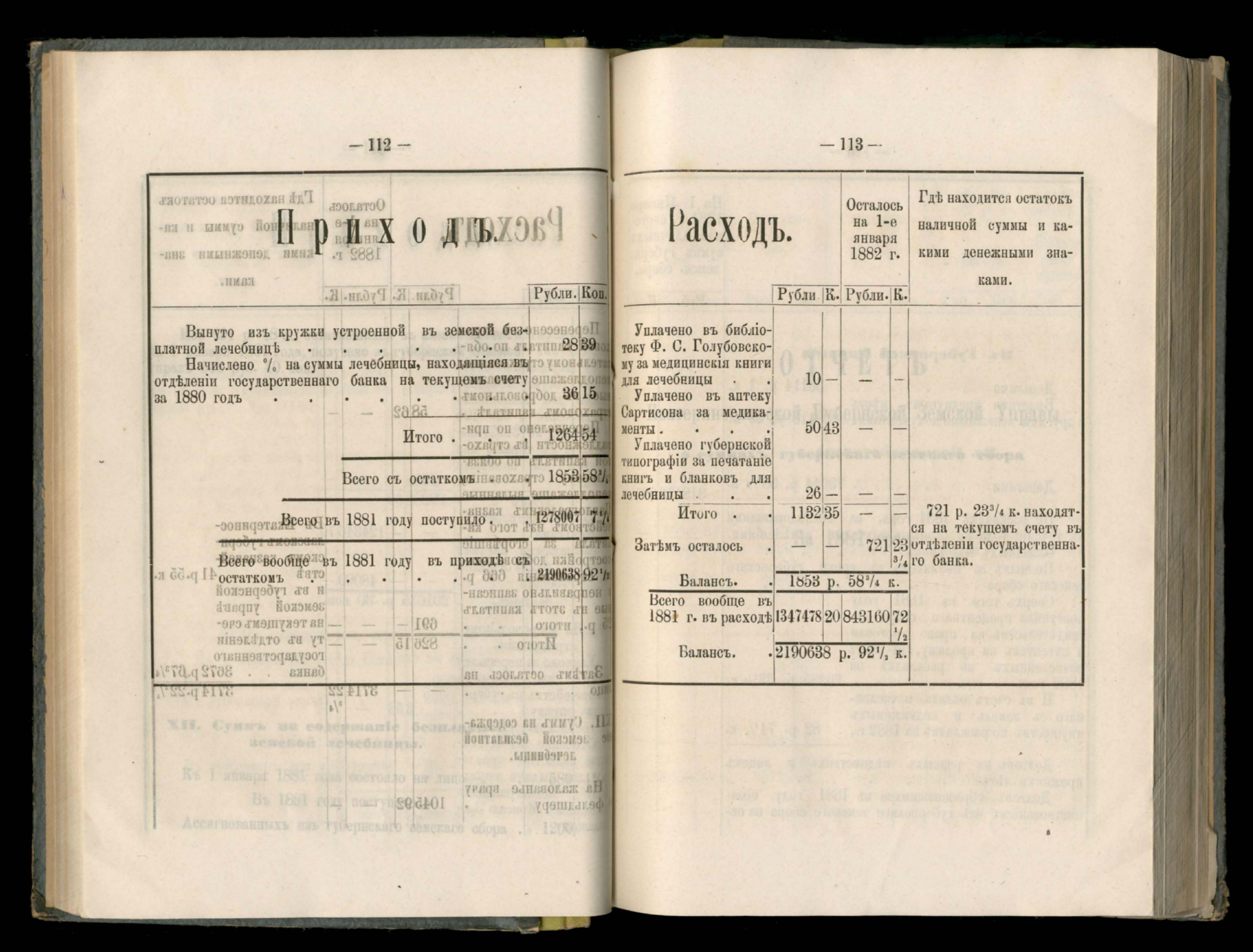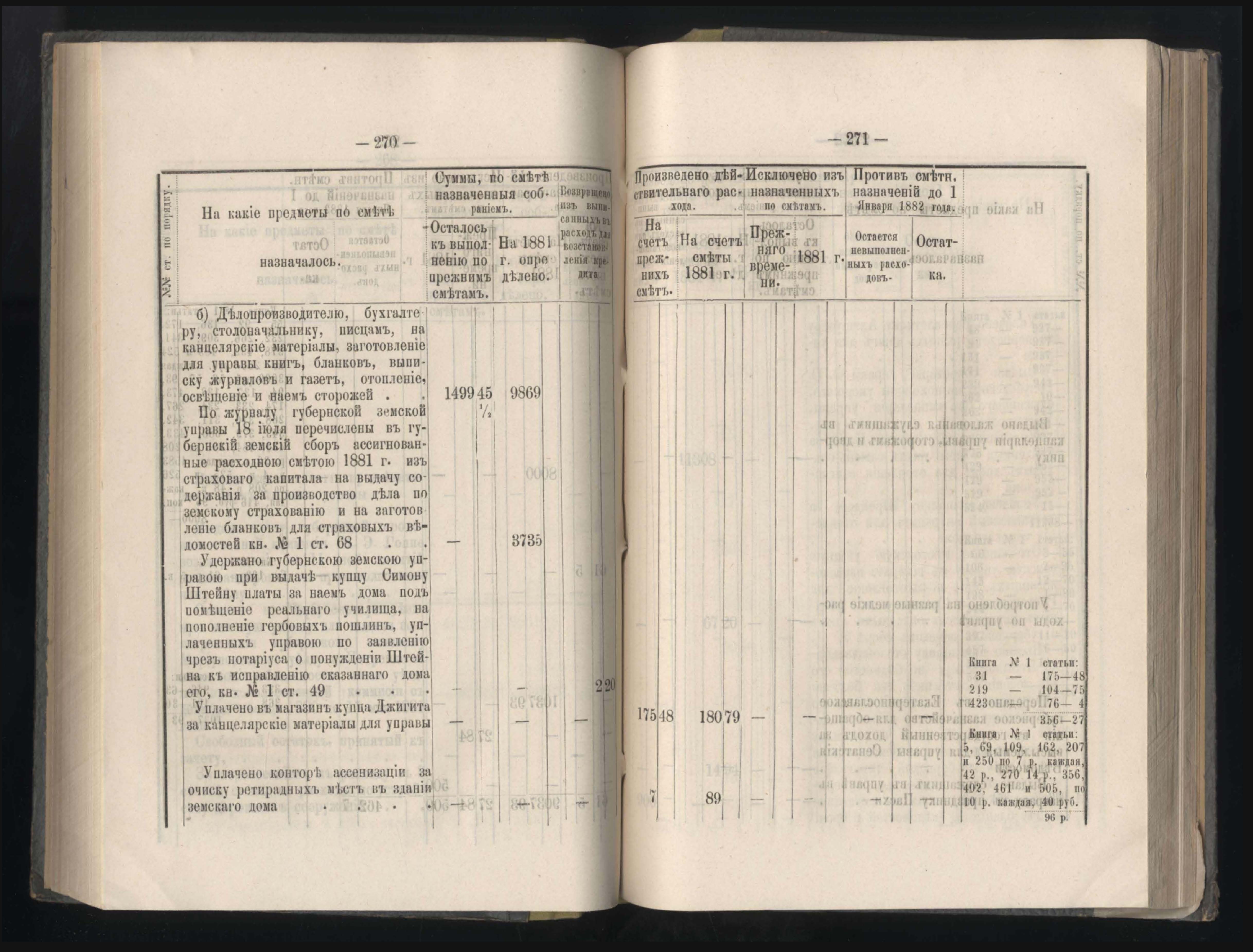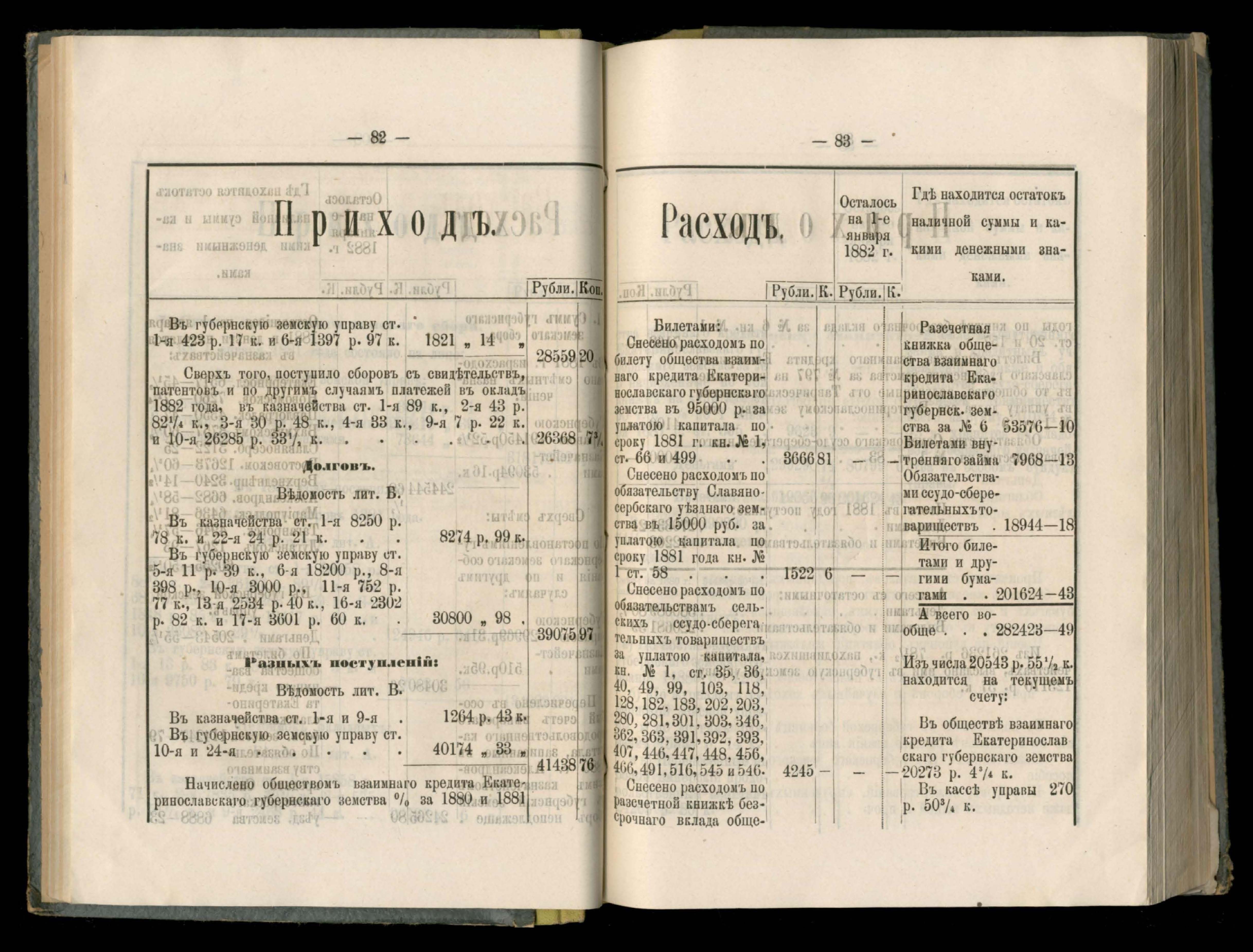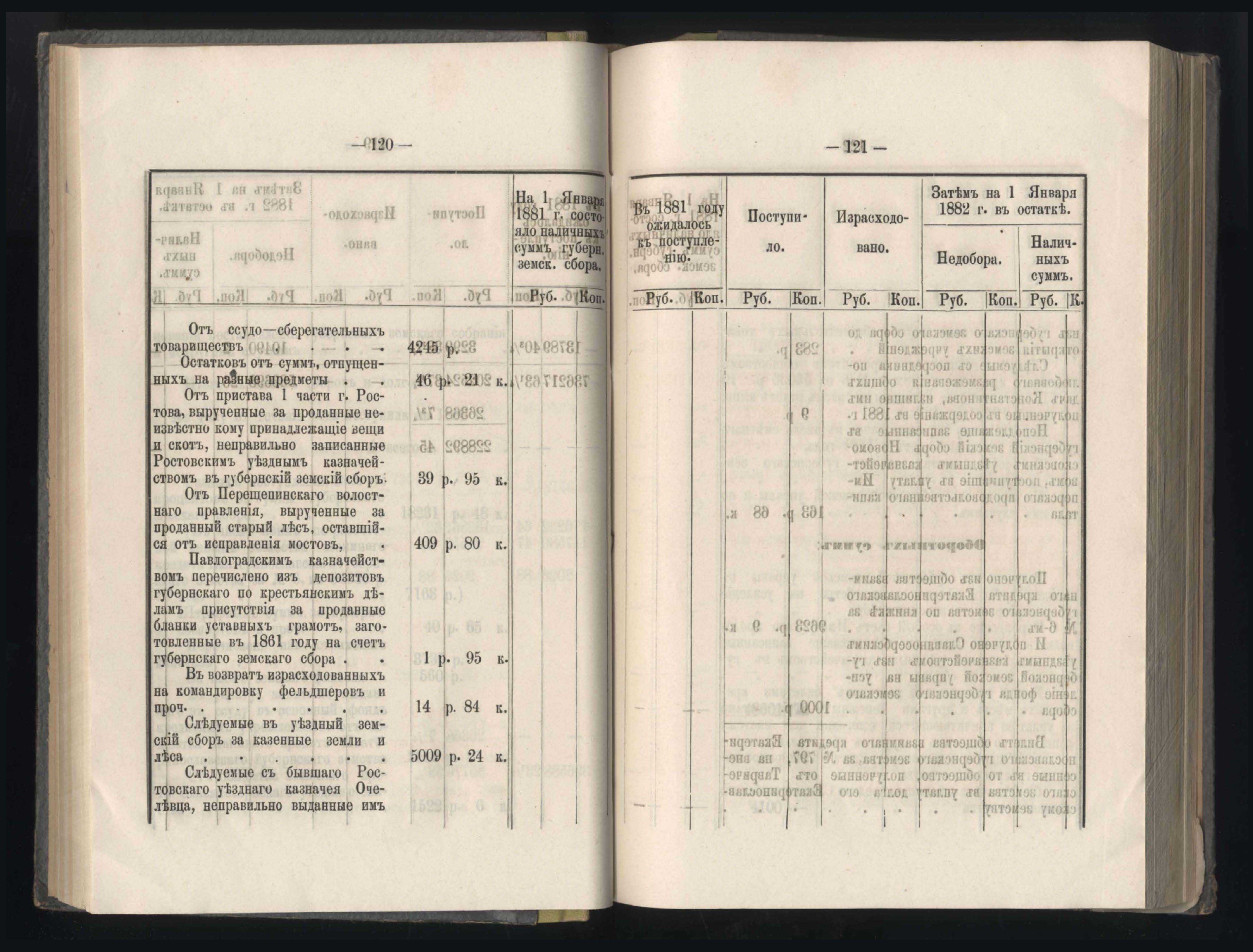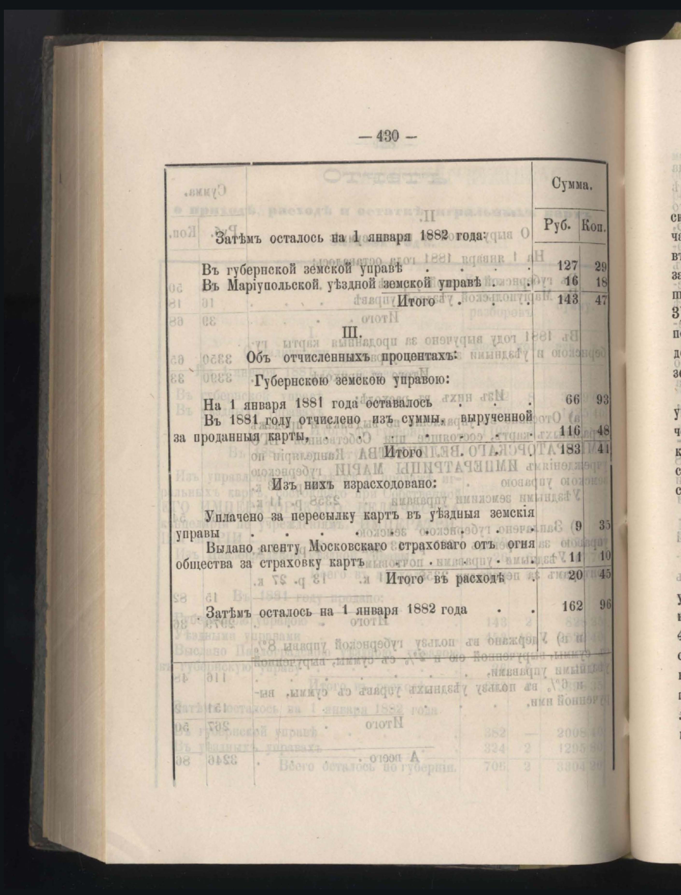 273. Балансъ суммъ губернскаго земскаго сбора на 1-е Января 1882 года