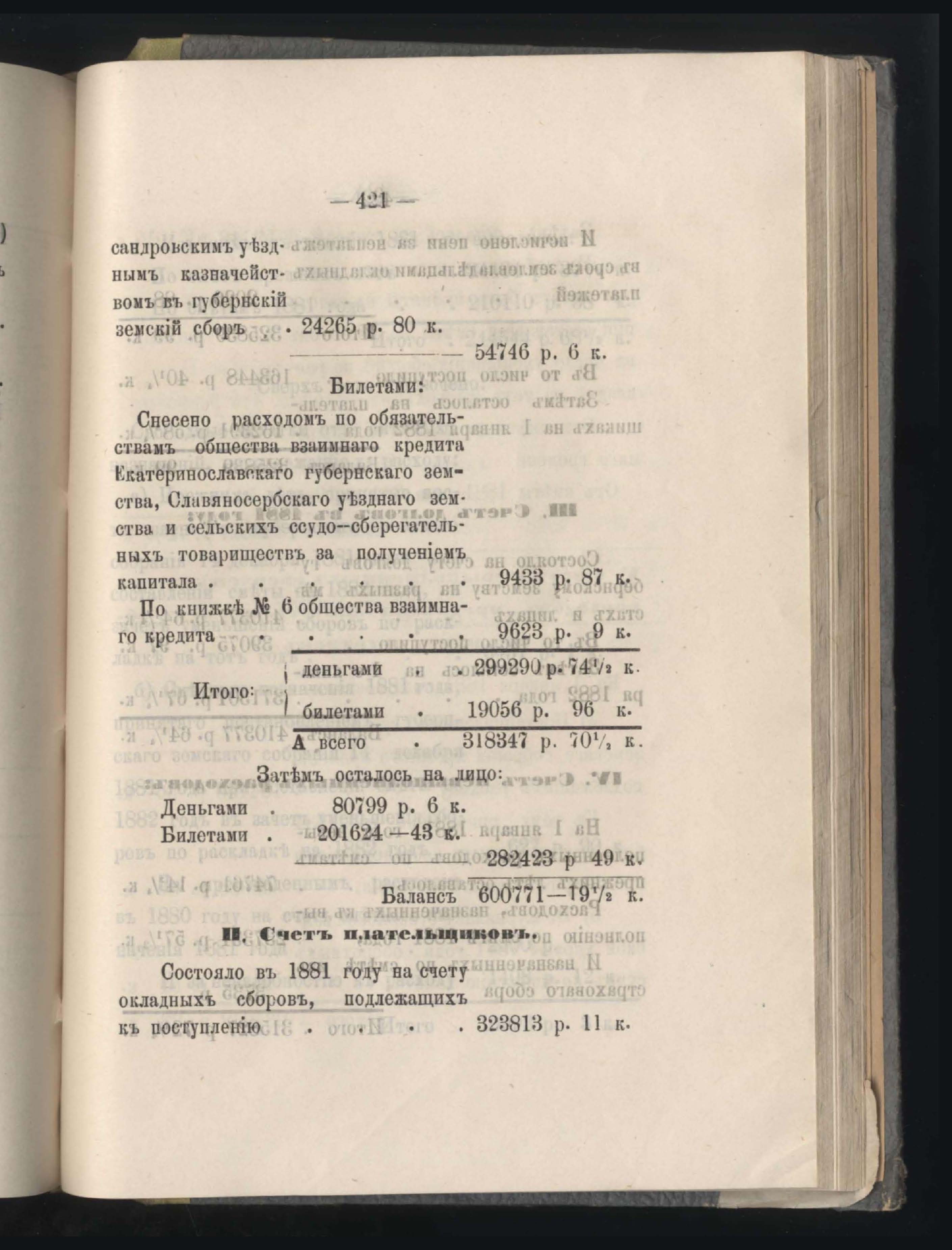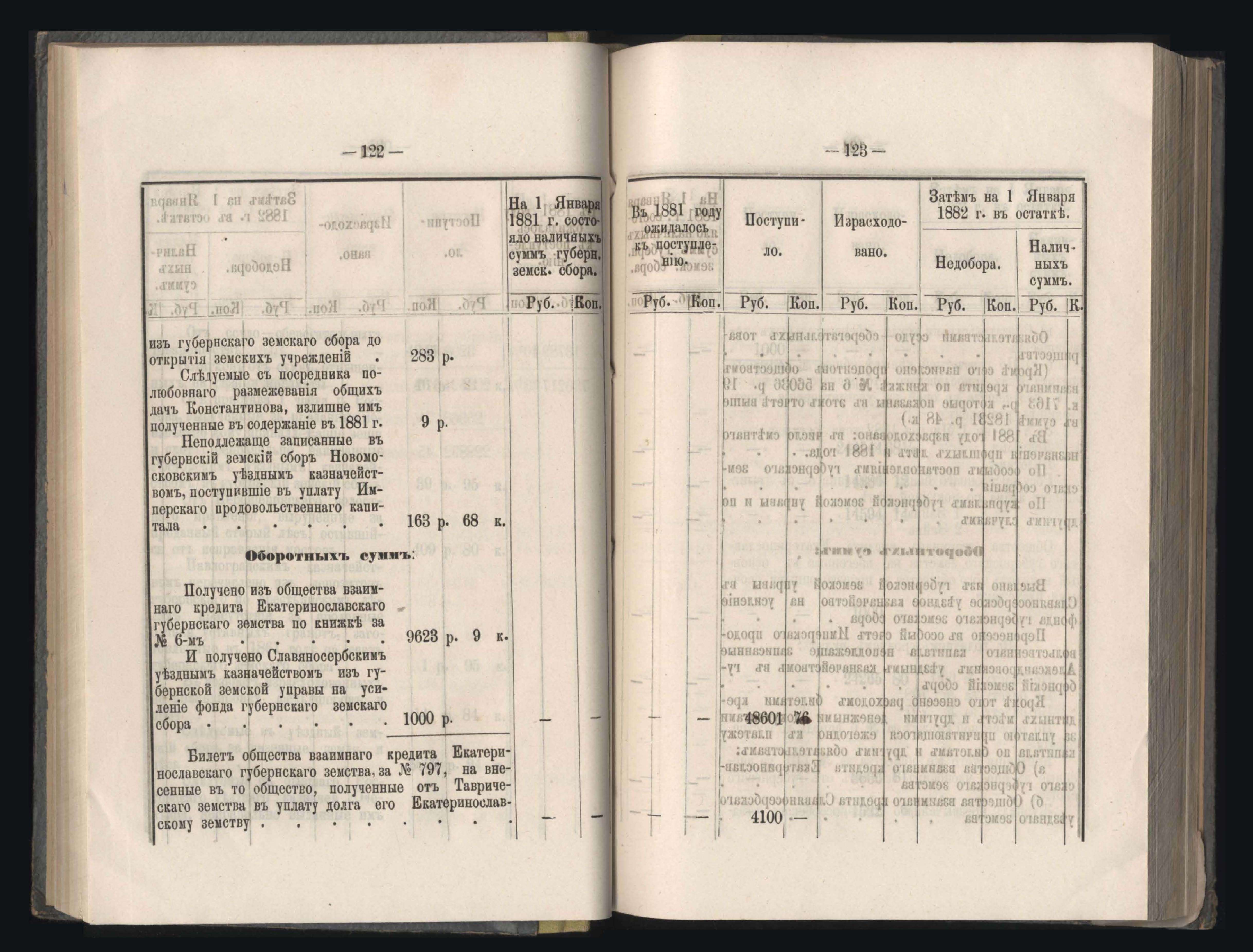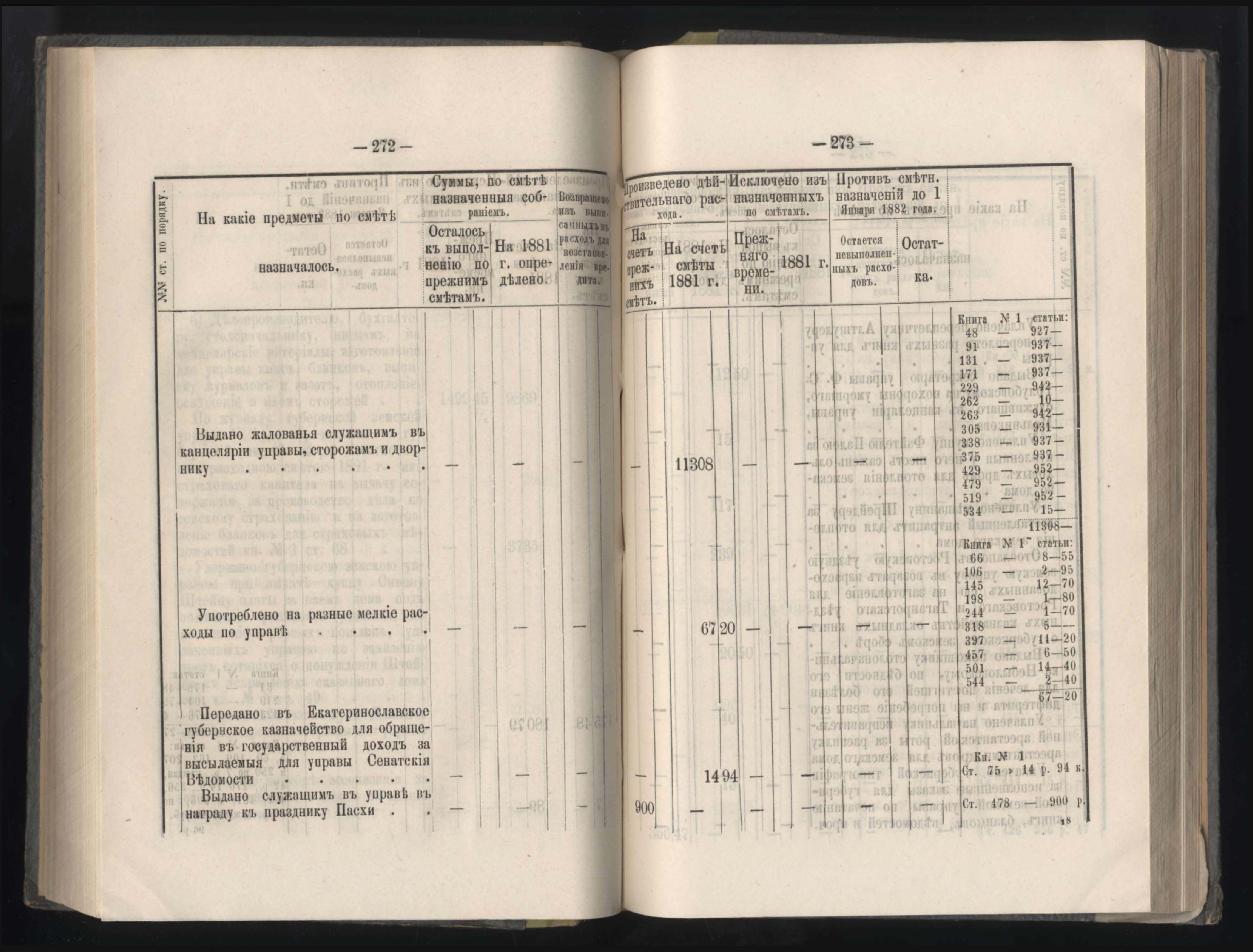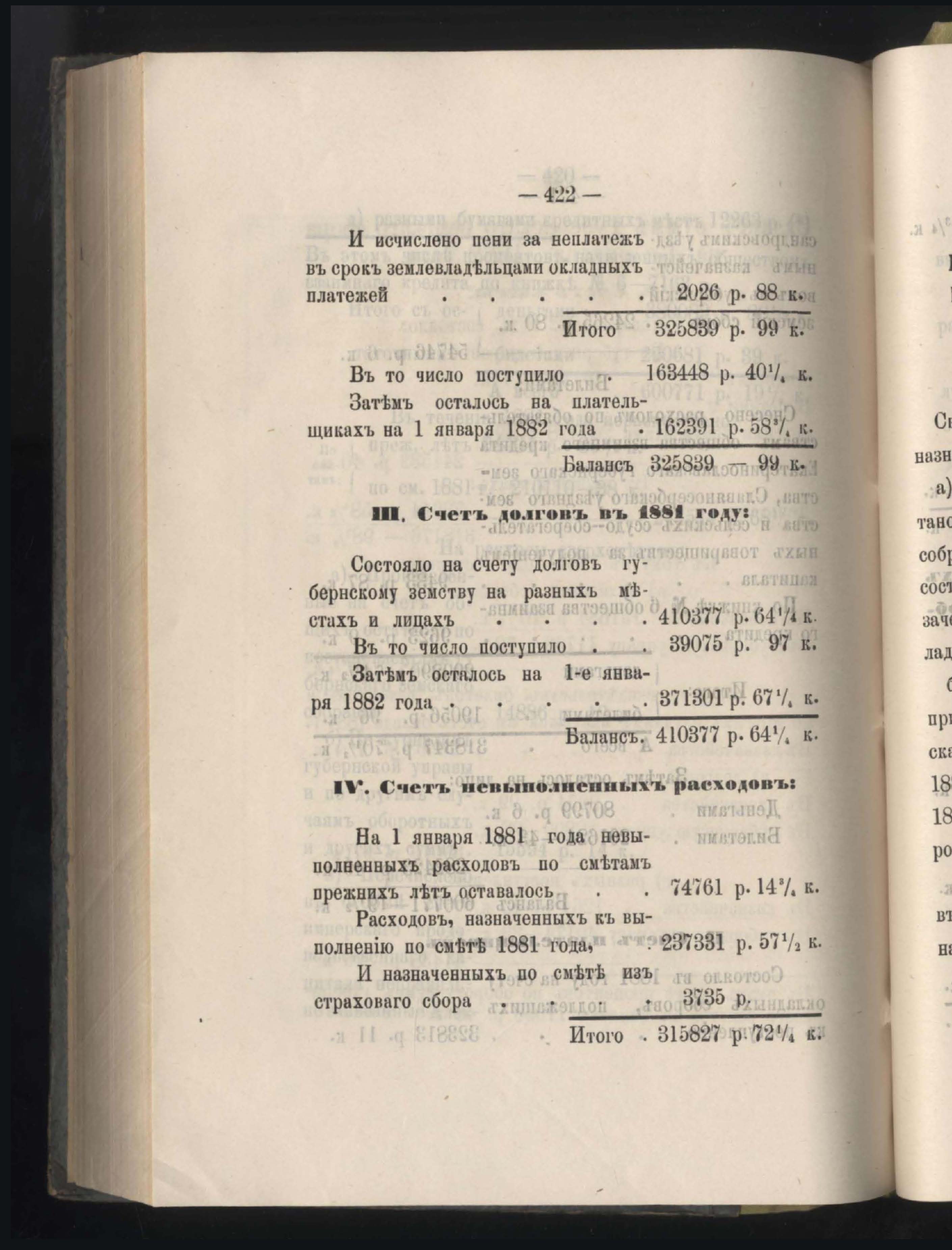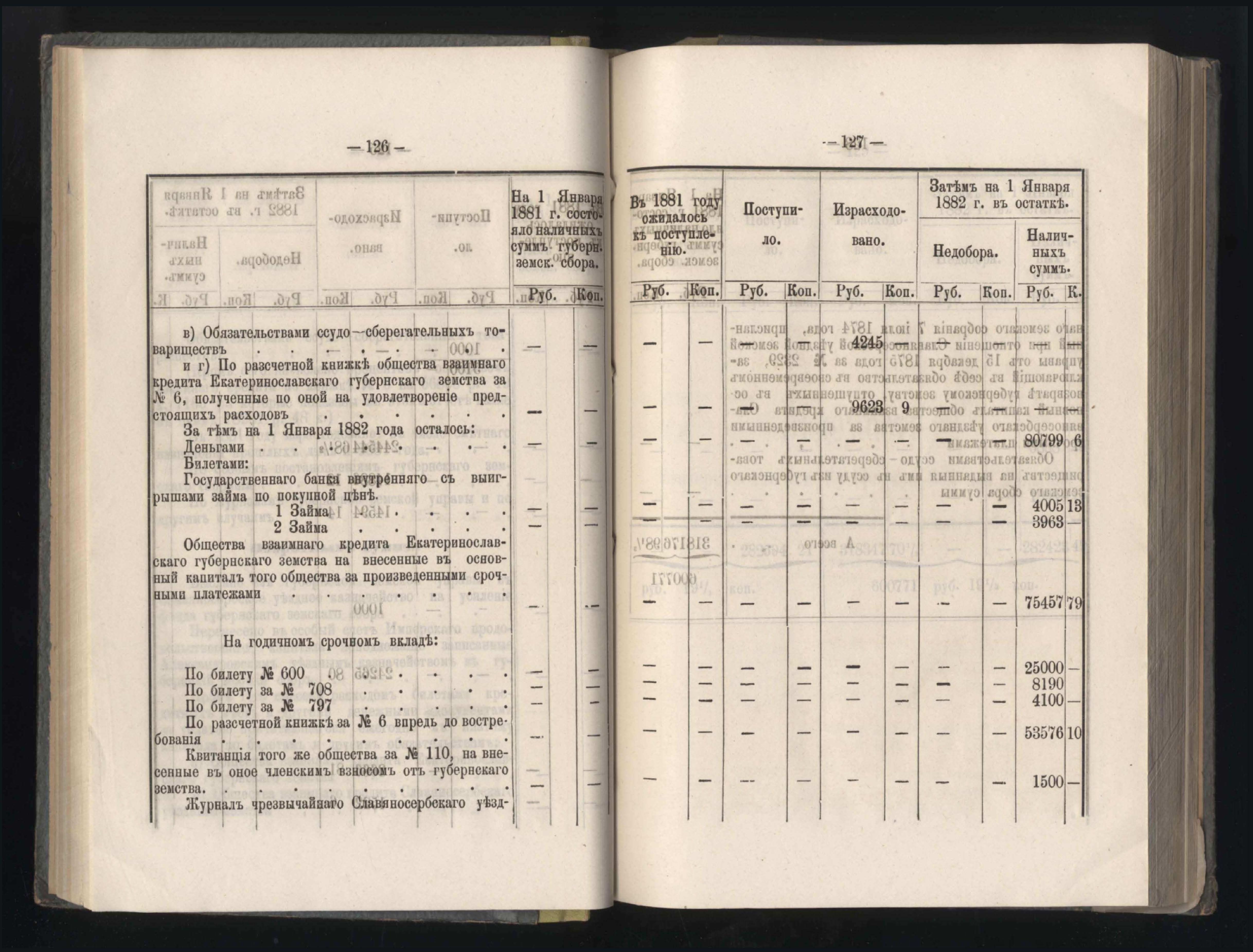 273. Балансъ суммъ губернскаго земскаго сбора на 1-е Января 1882 года