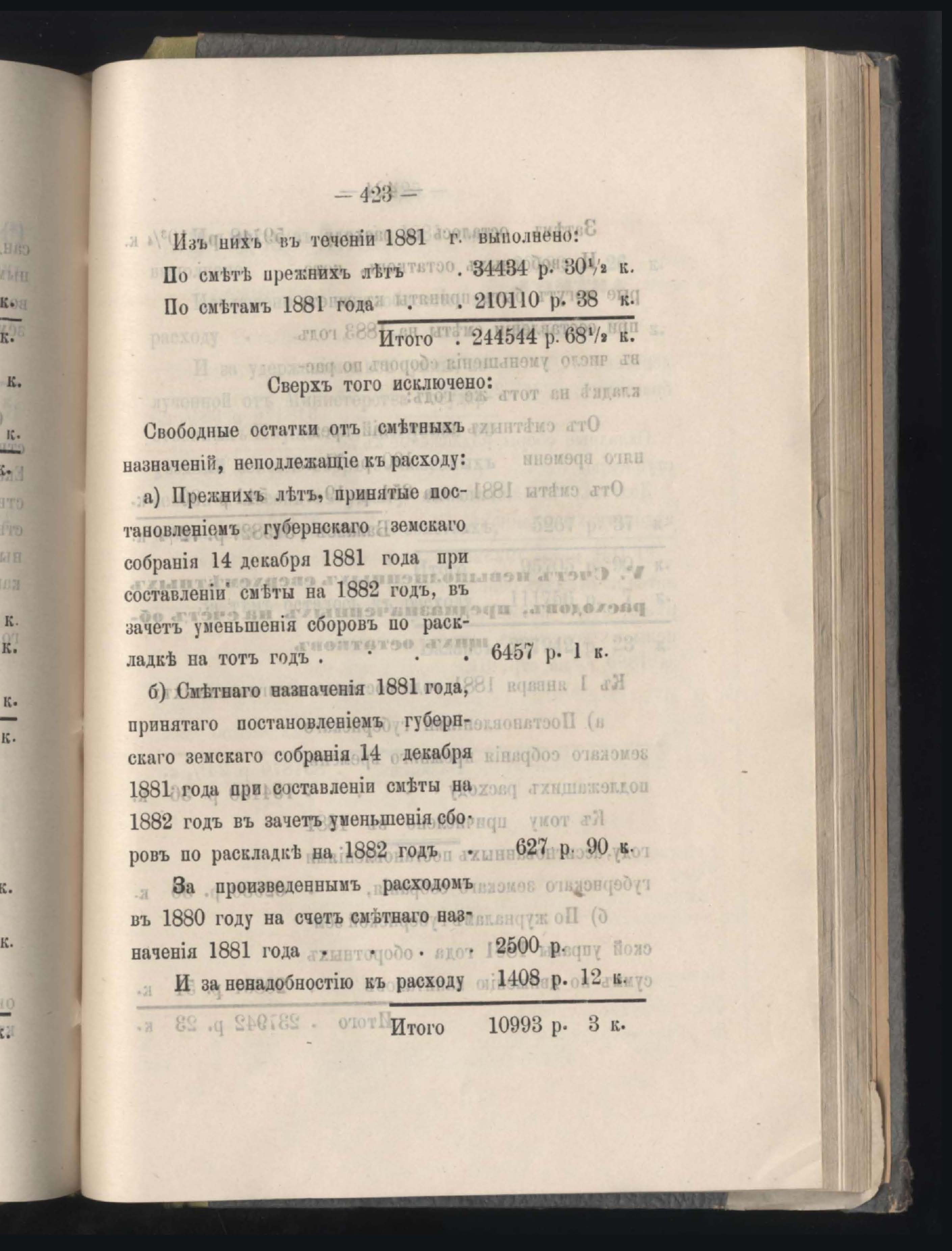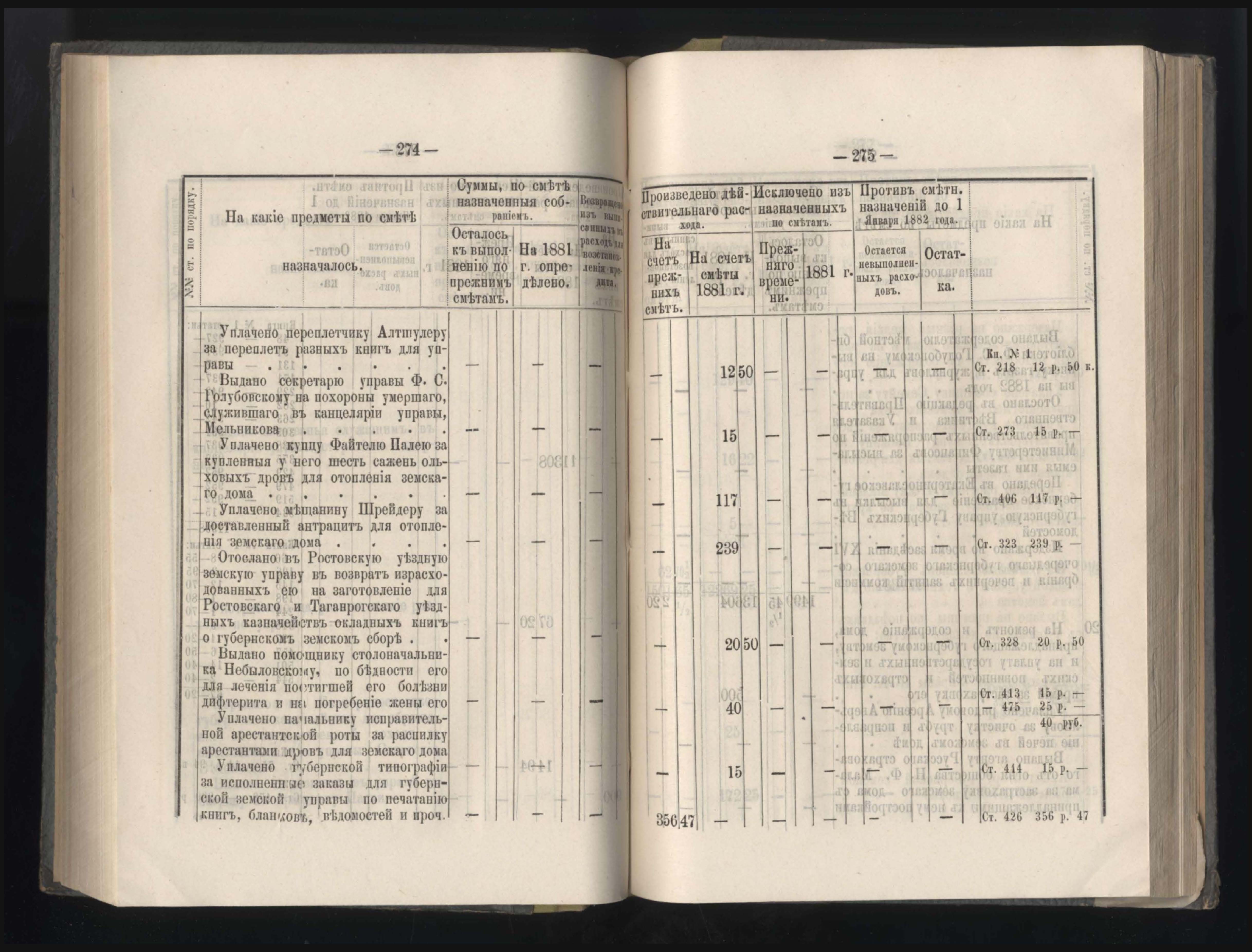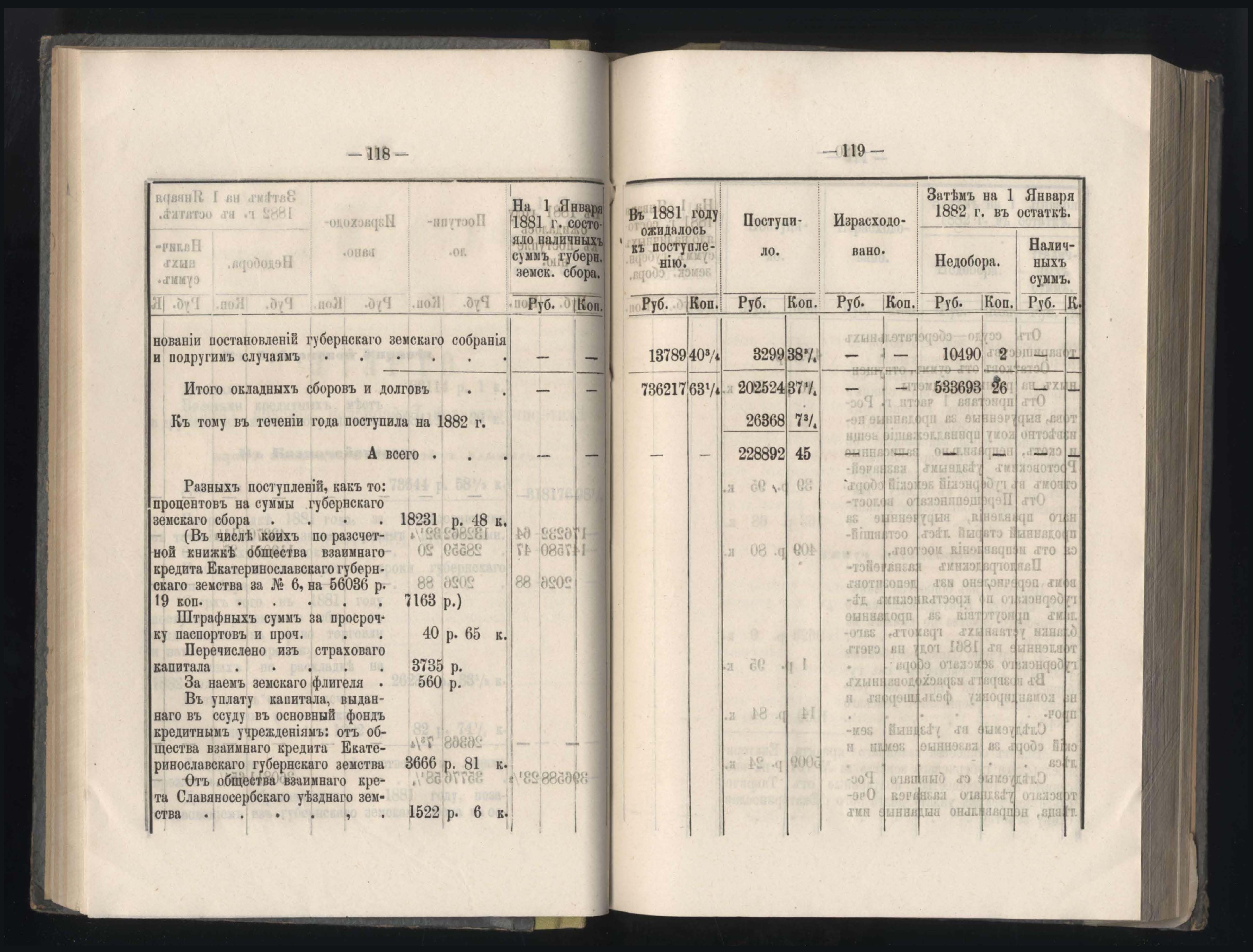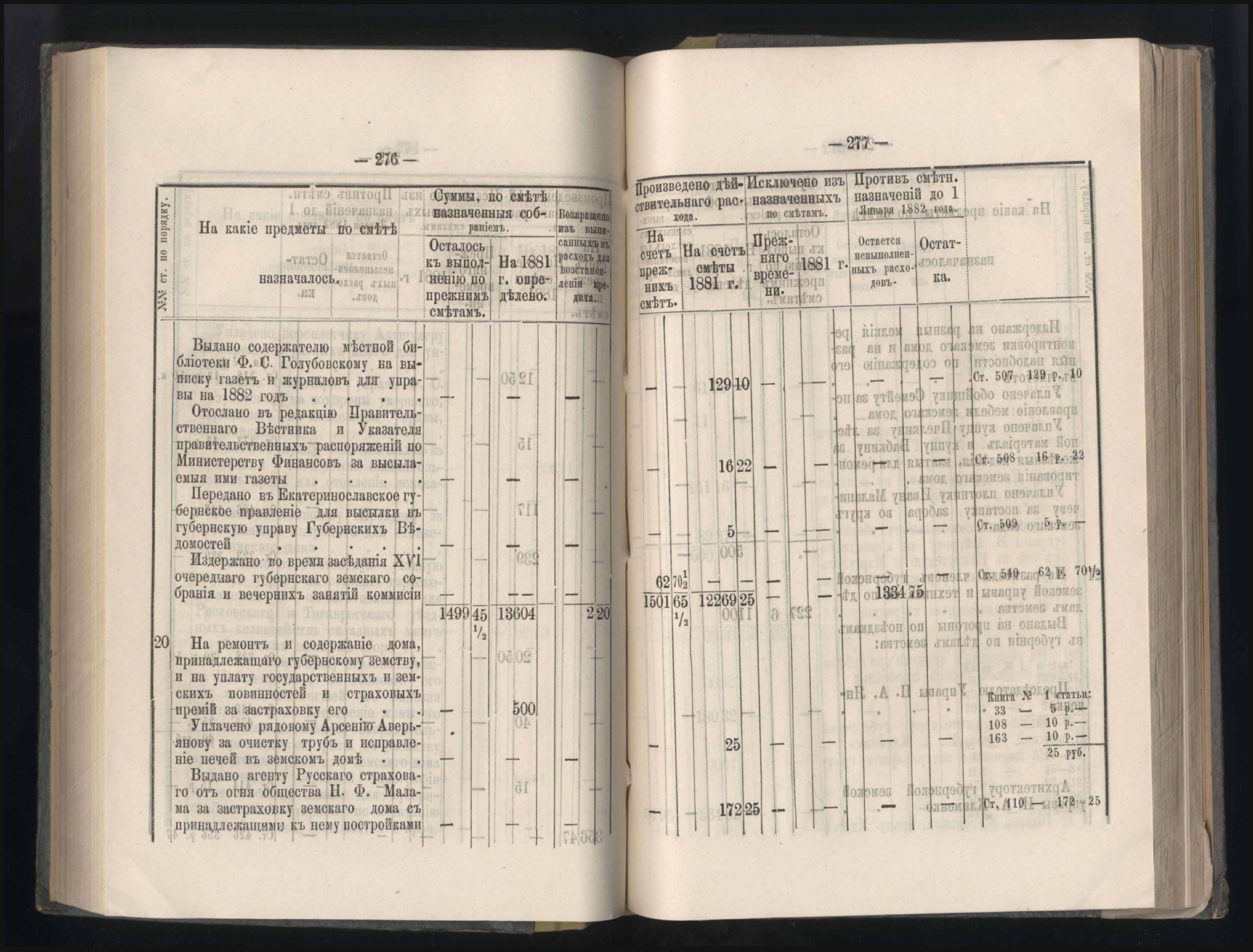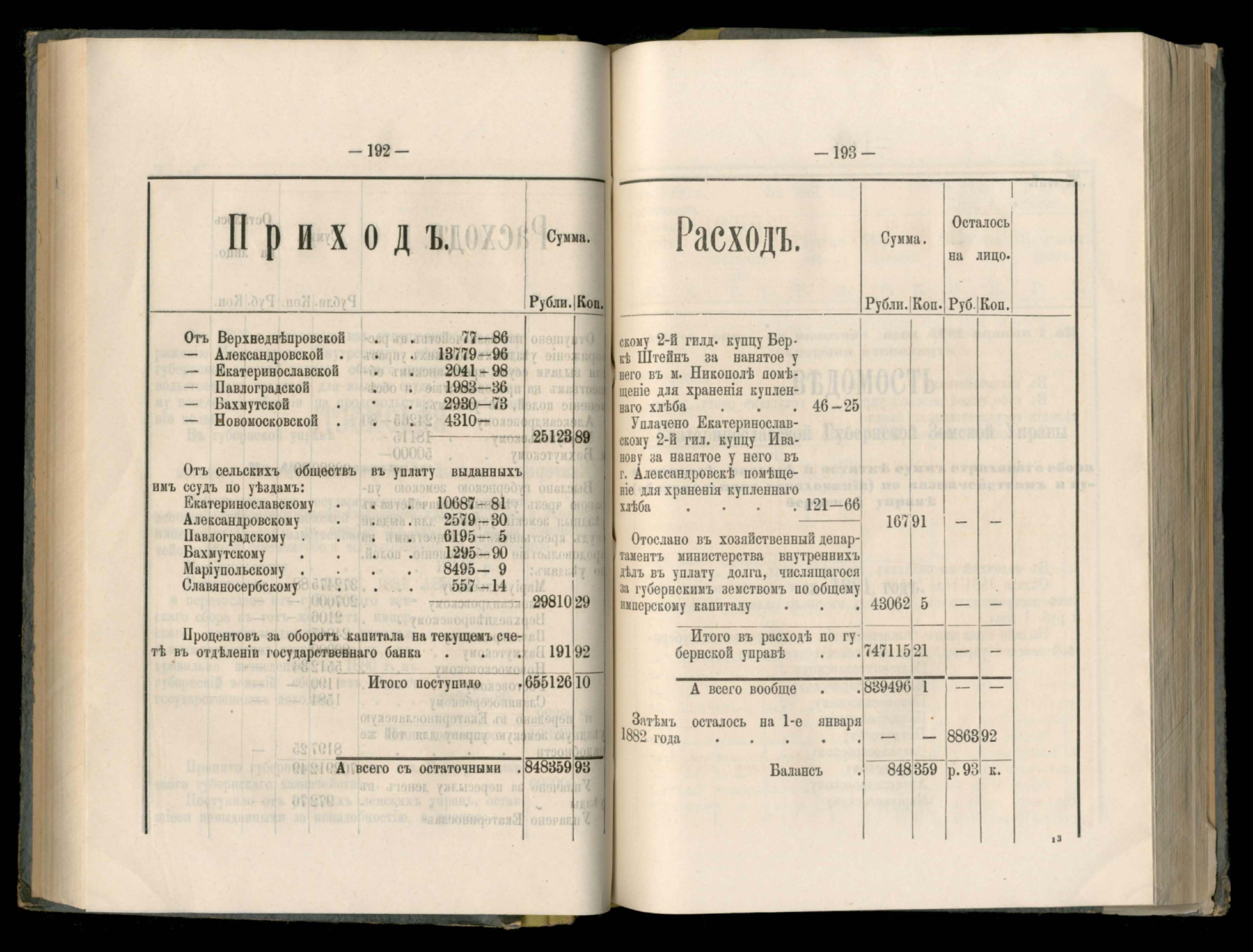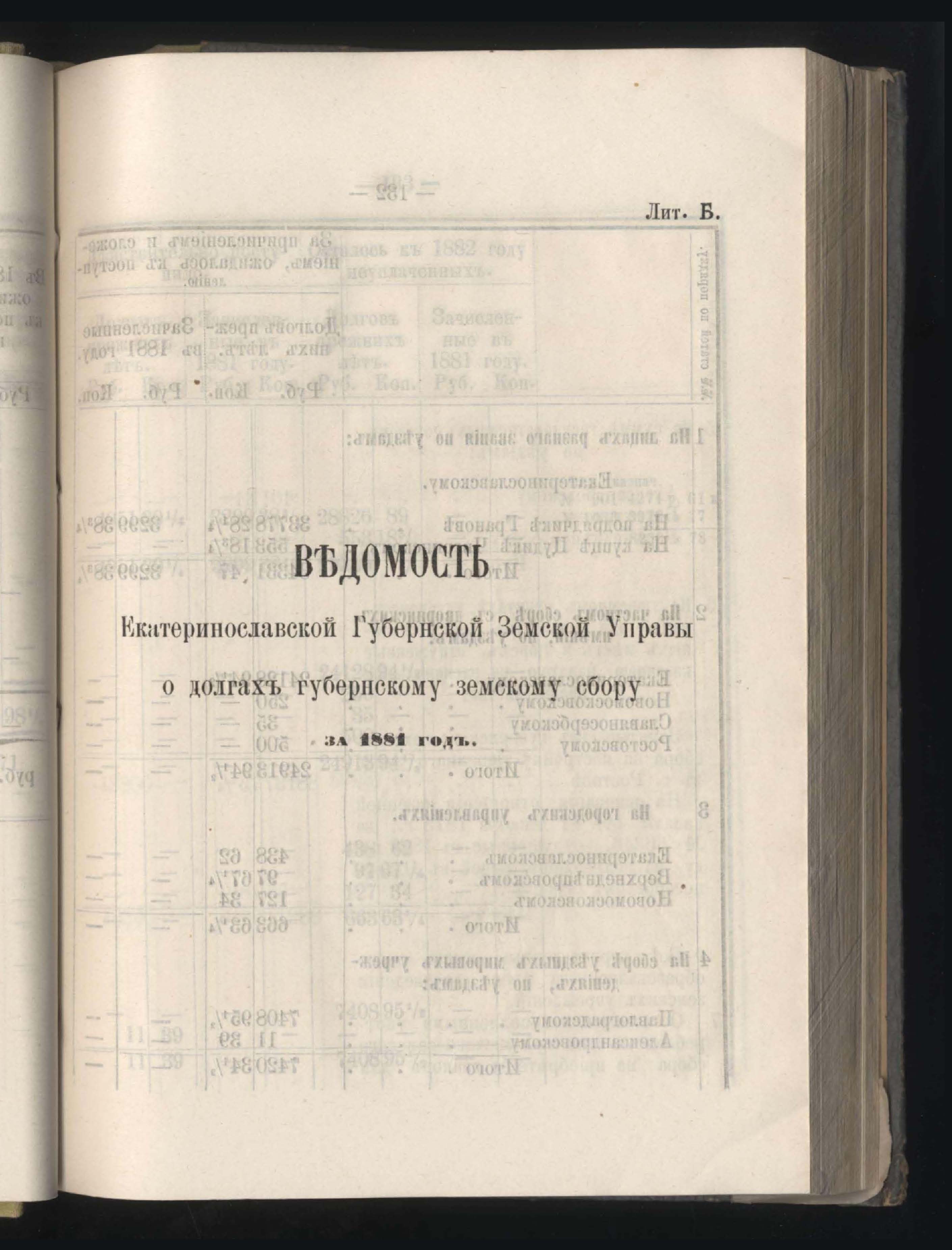273. Балансъ суммъ губернскаго земскаго сбора на 1-е Января 1882 года