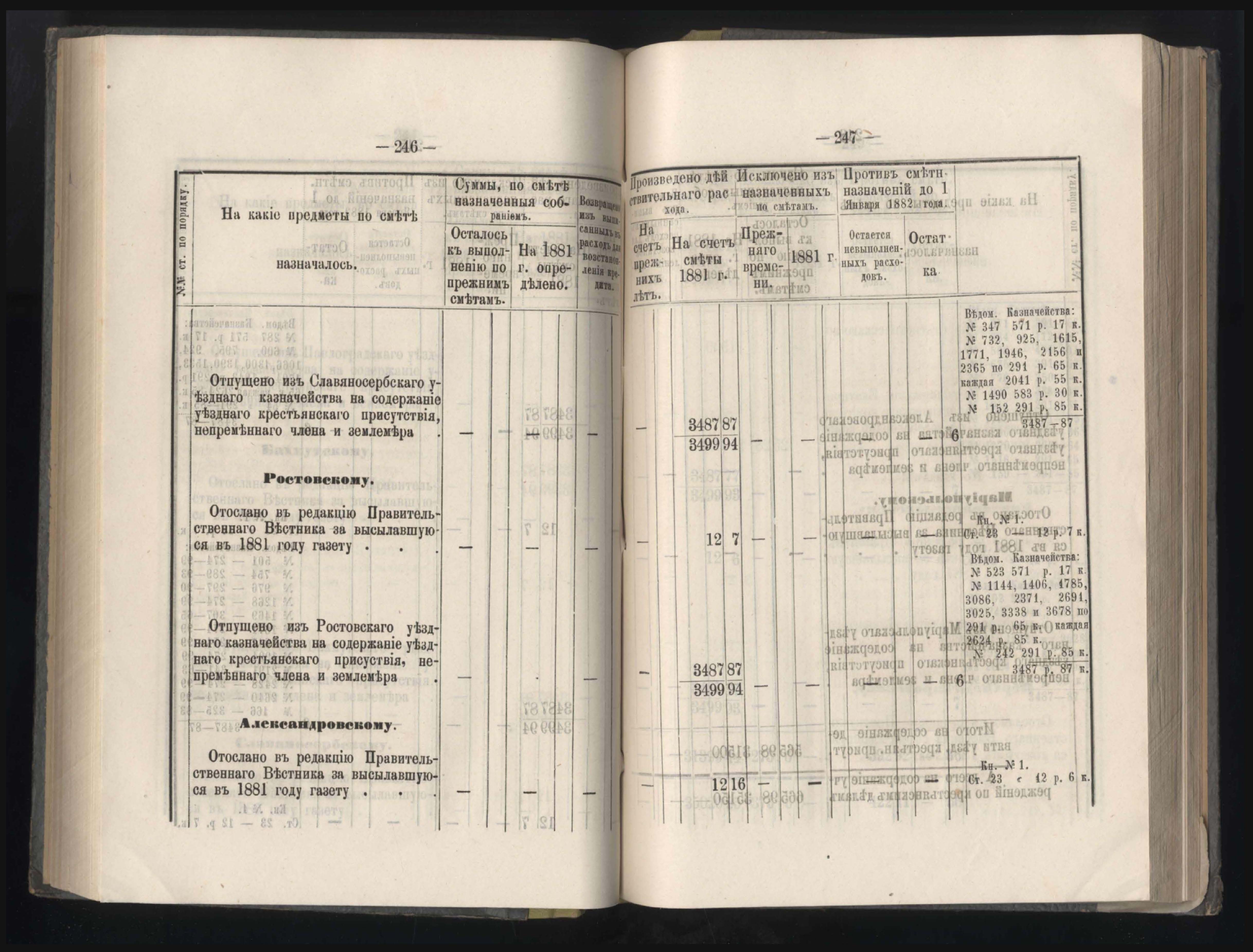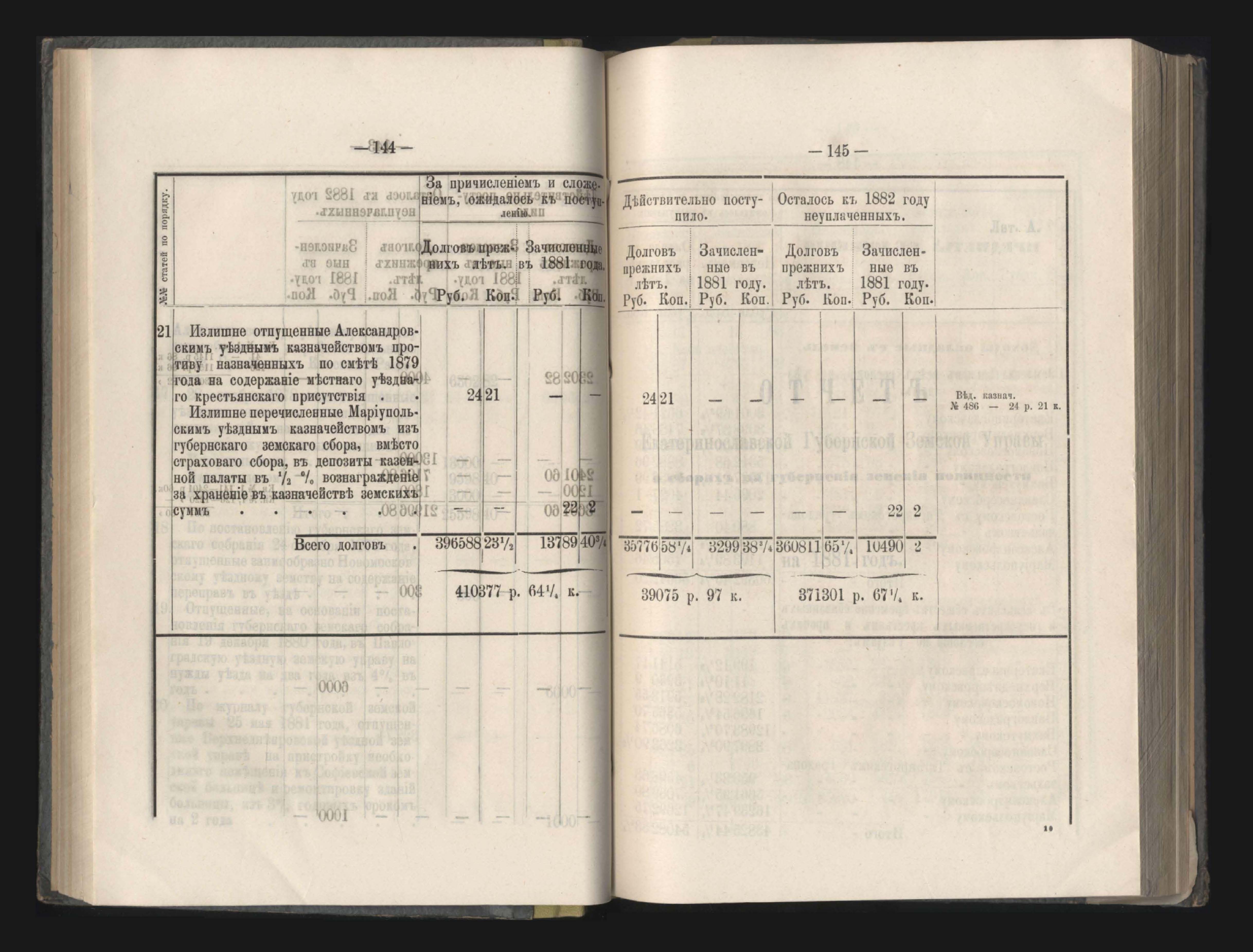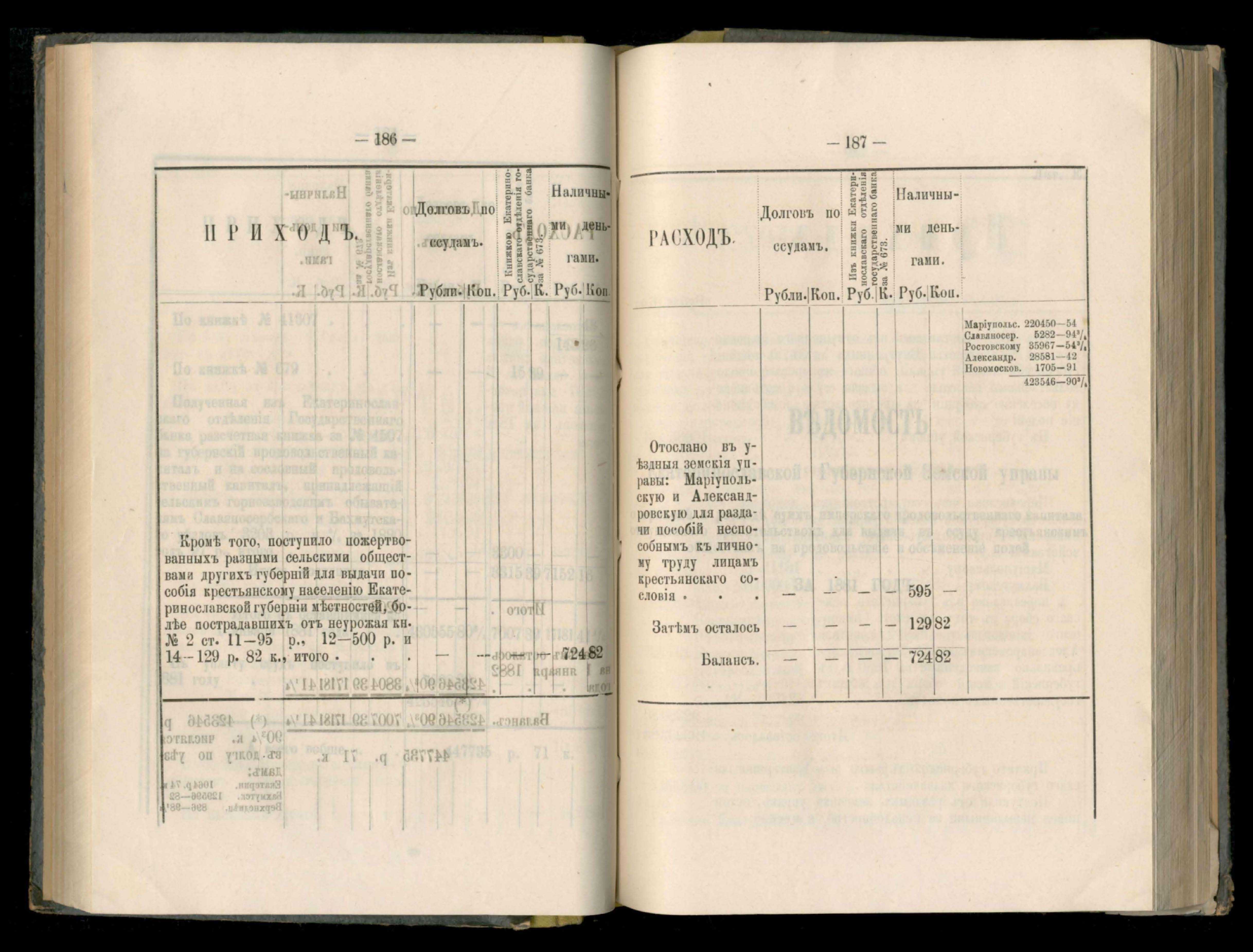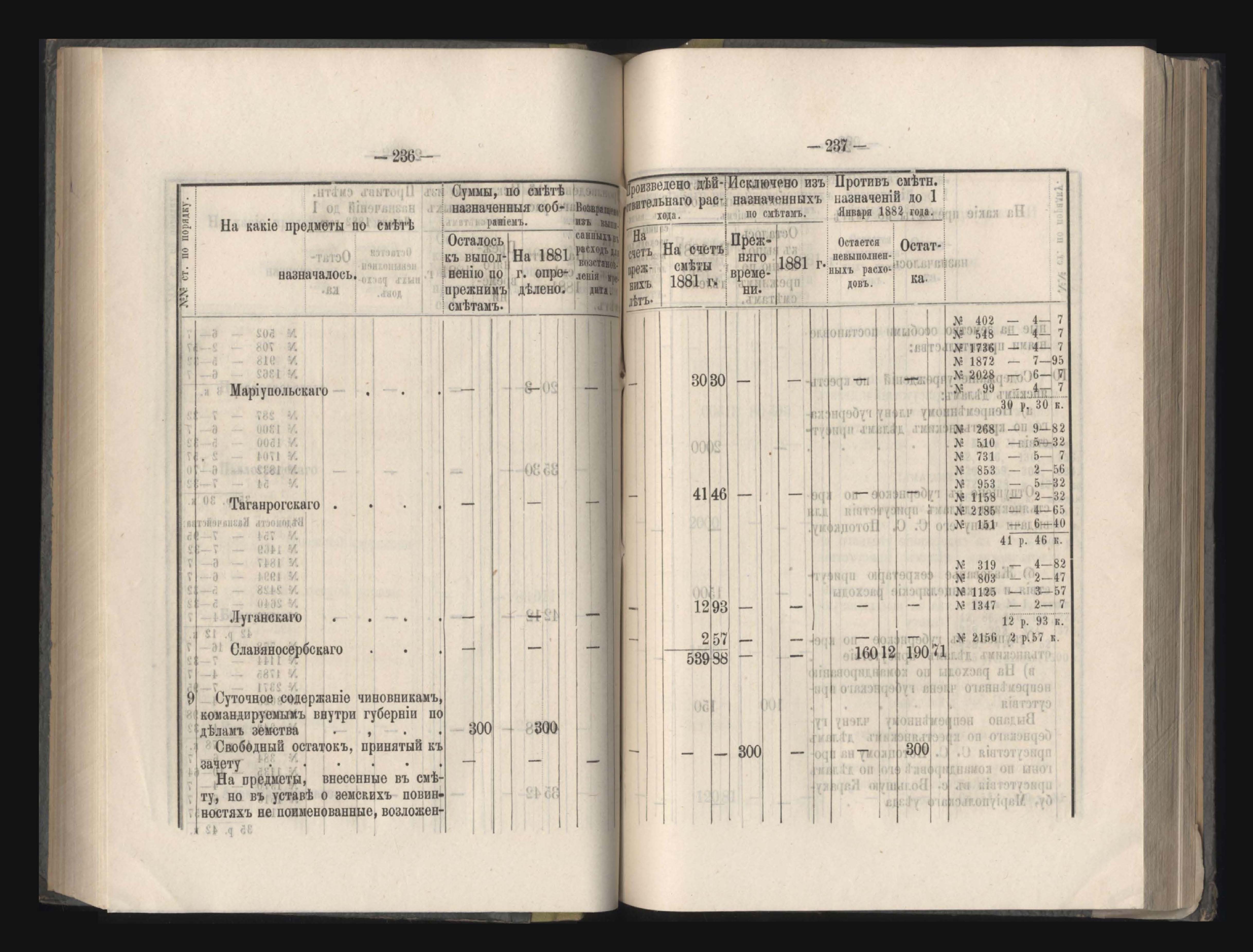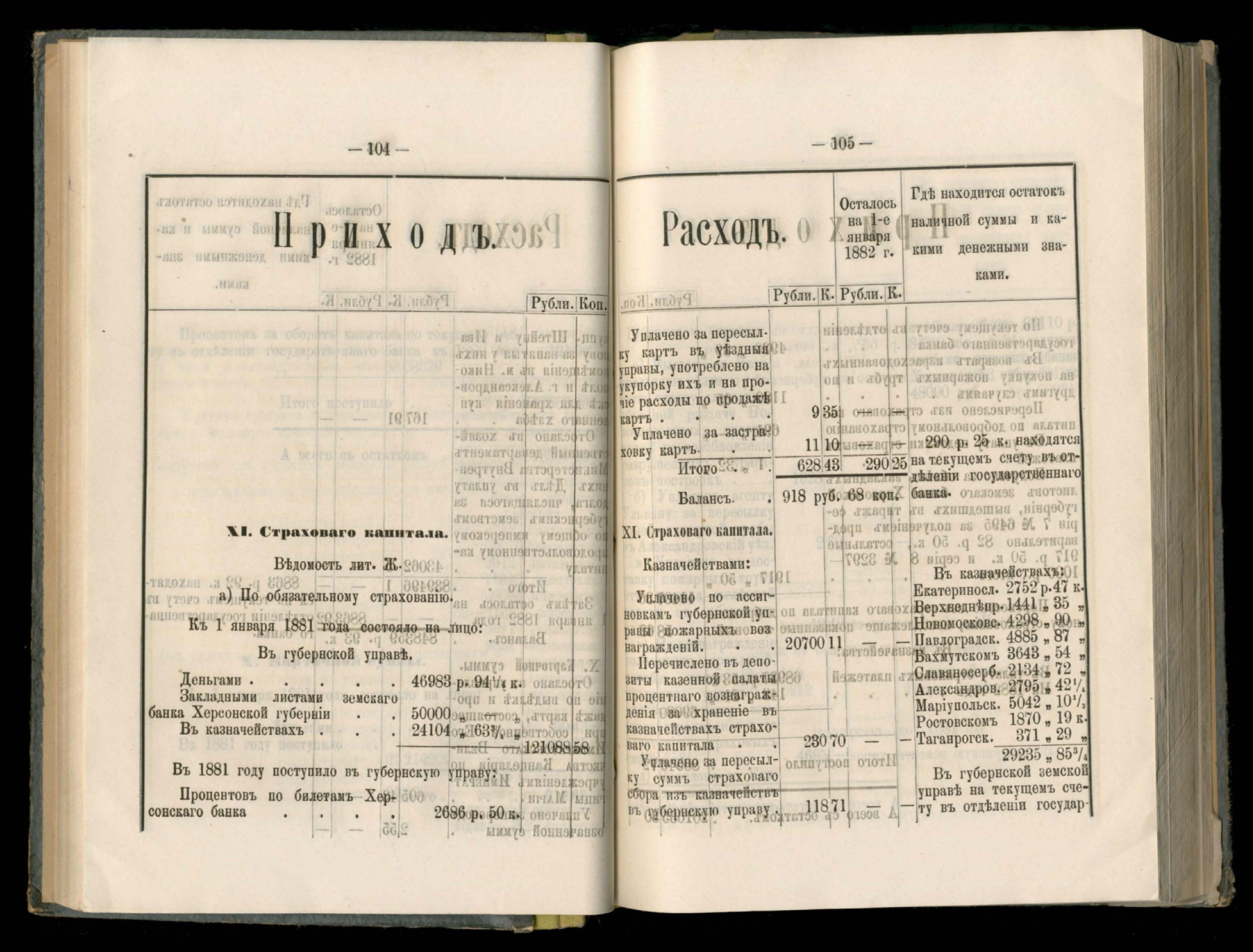 273. Балансъ суммъ губернскаго земскаго сбора на 1-е Января 1882 года