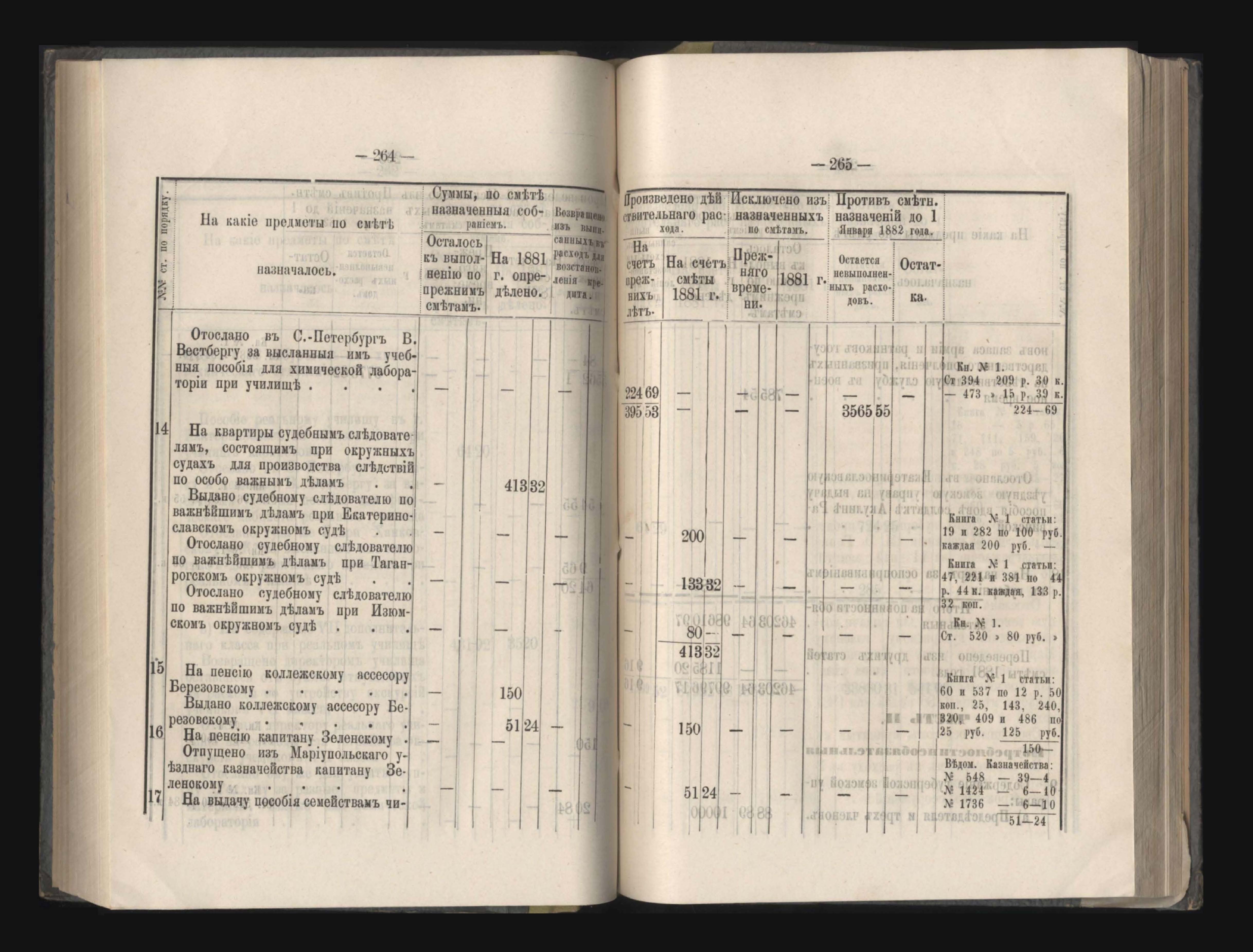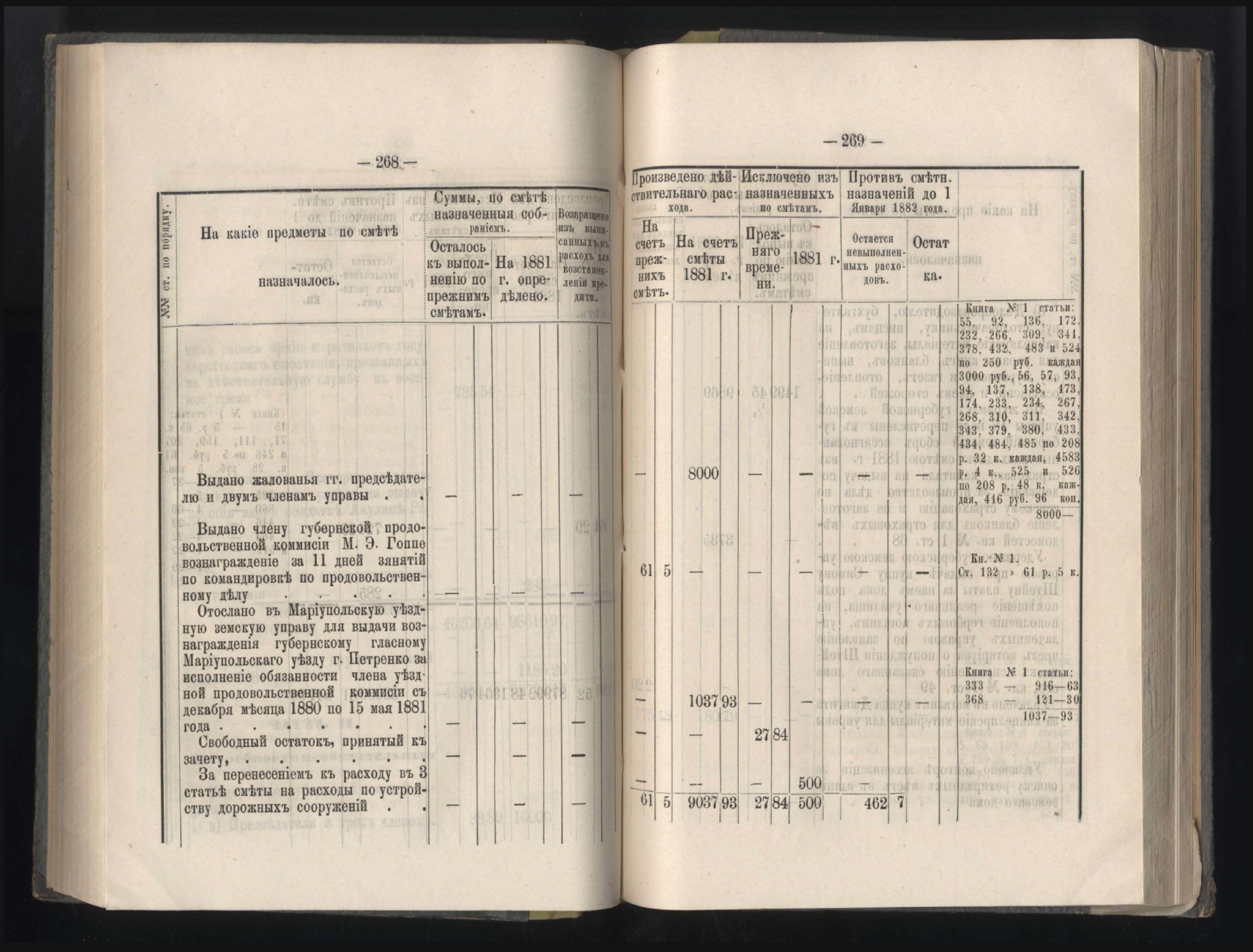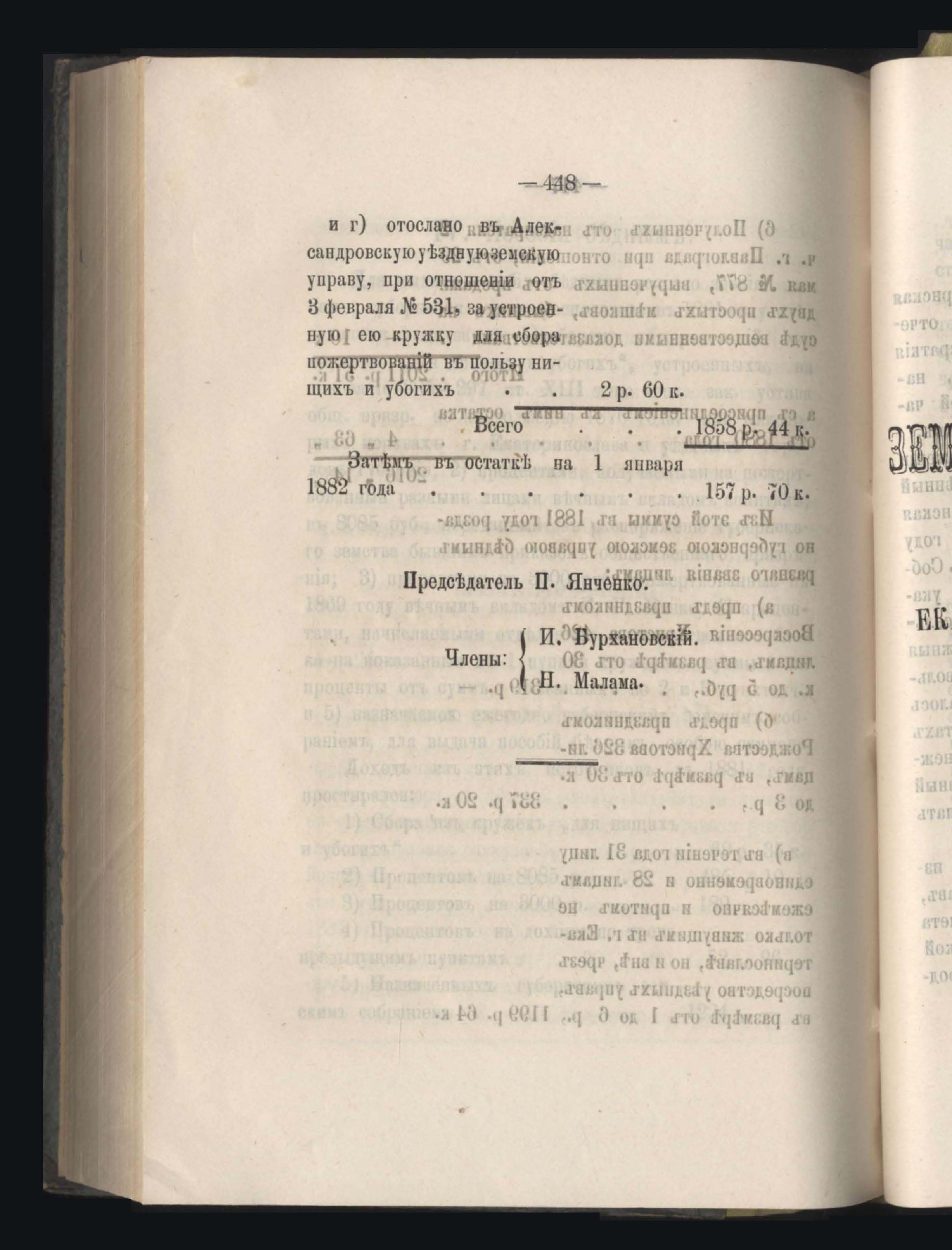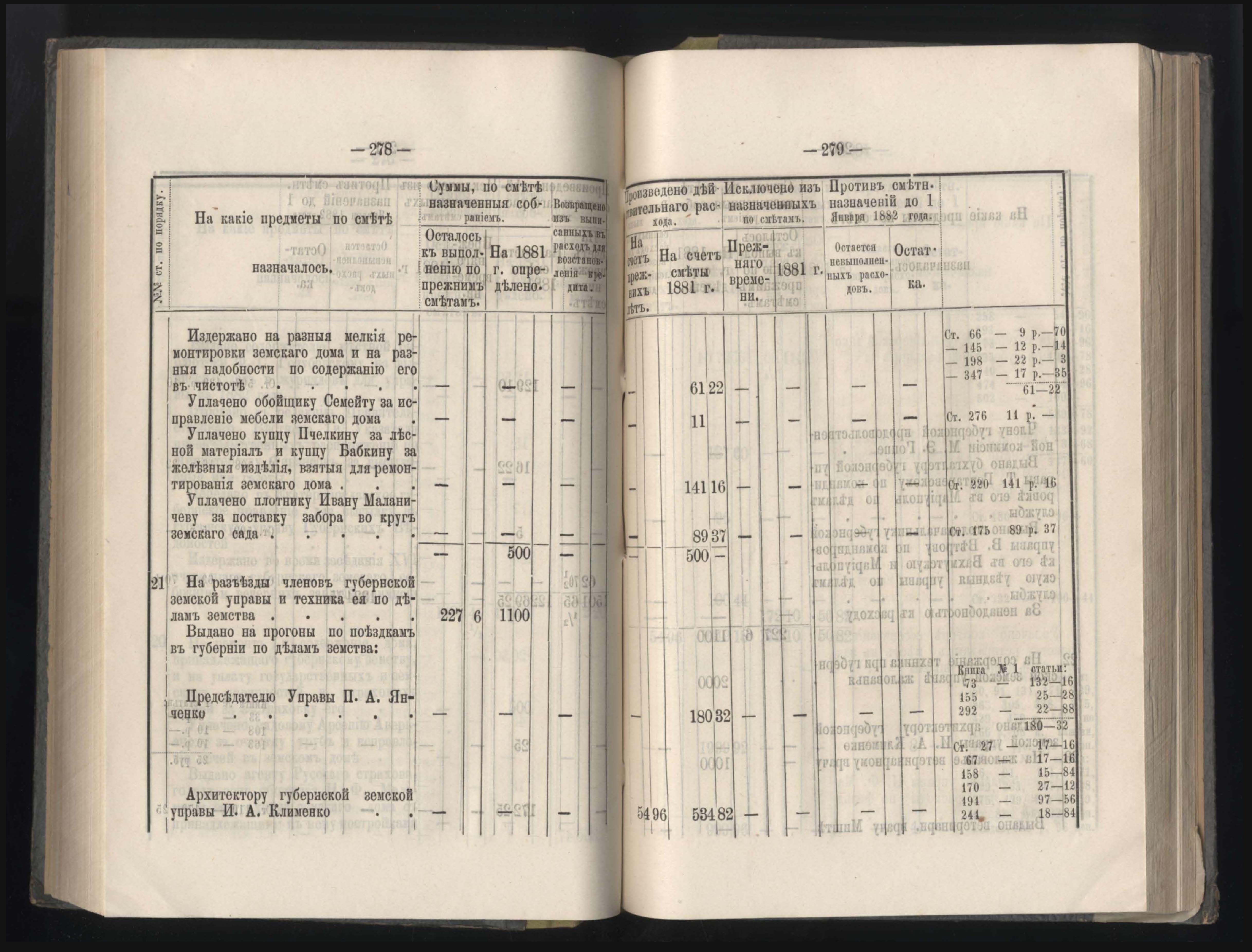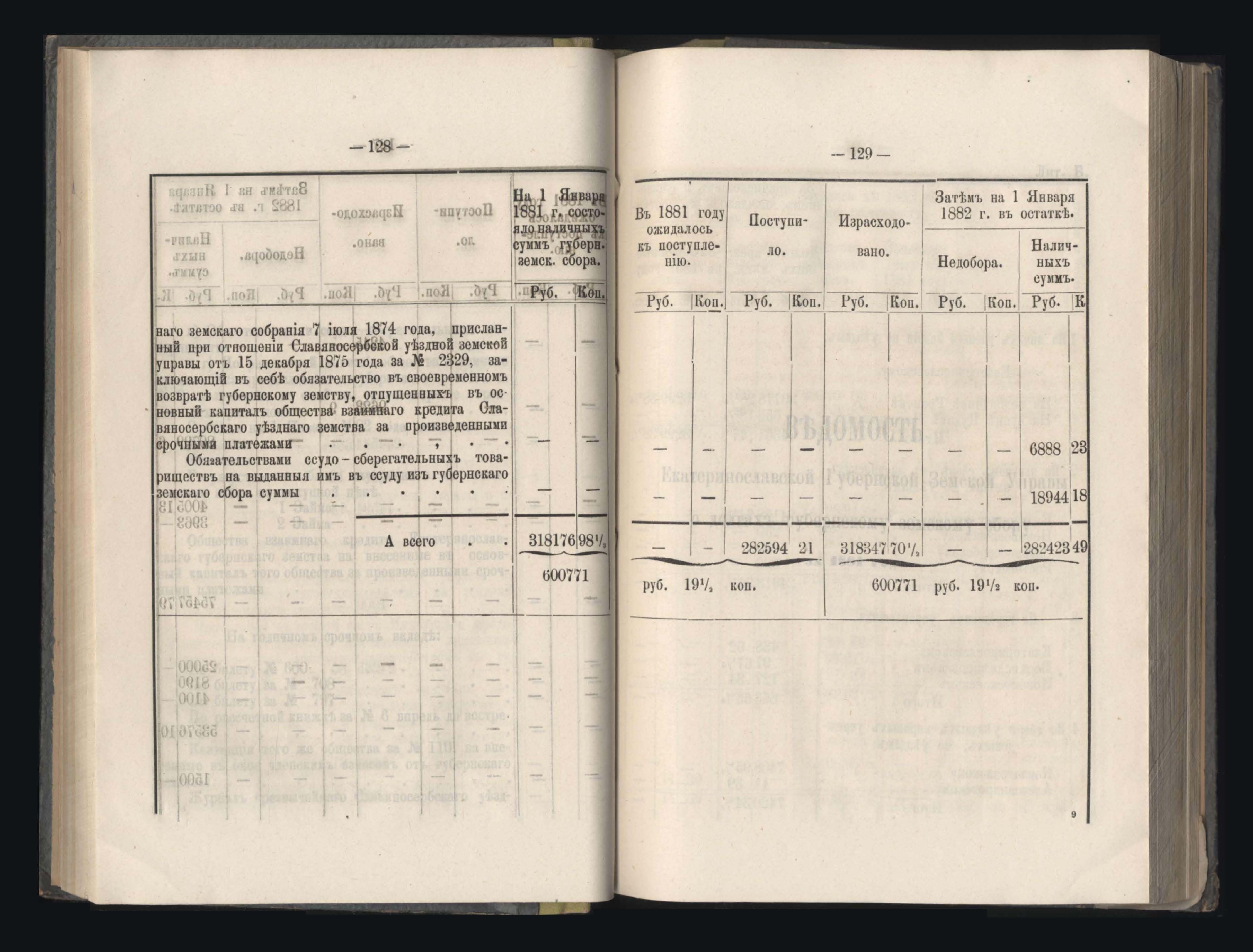 273. Балансъ суммъ губернскаго земскаго сбора на 1-е Января 1882 года