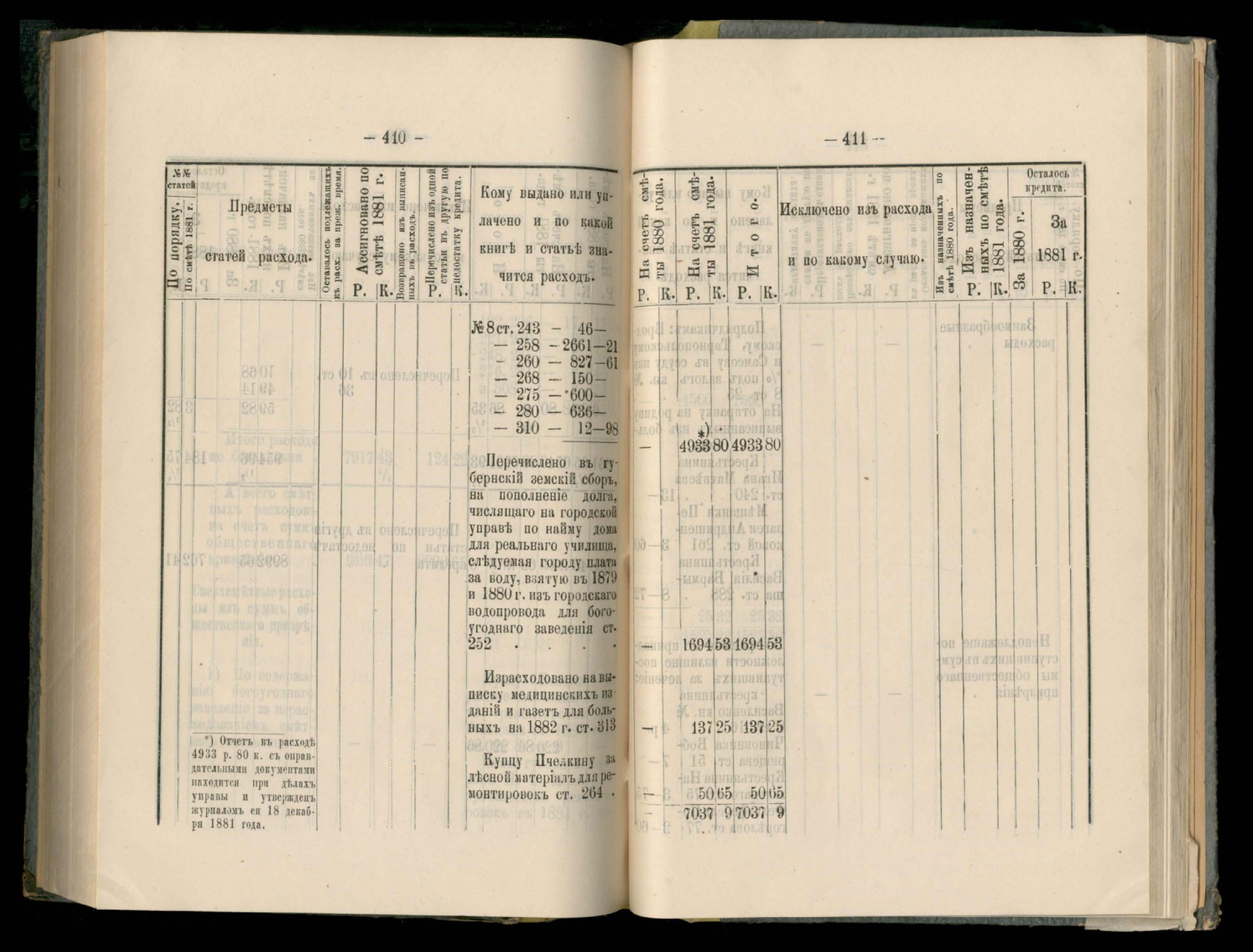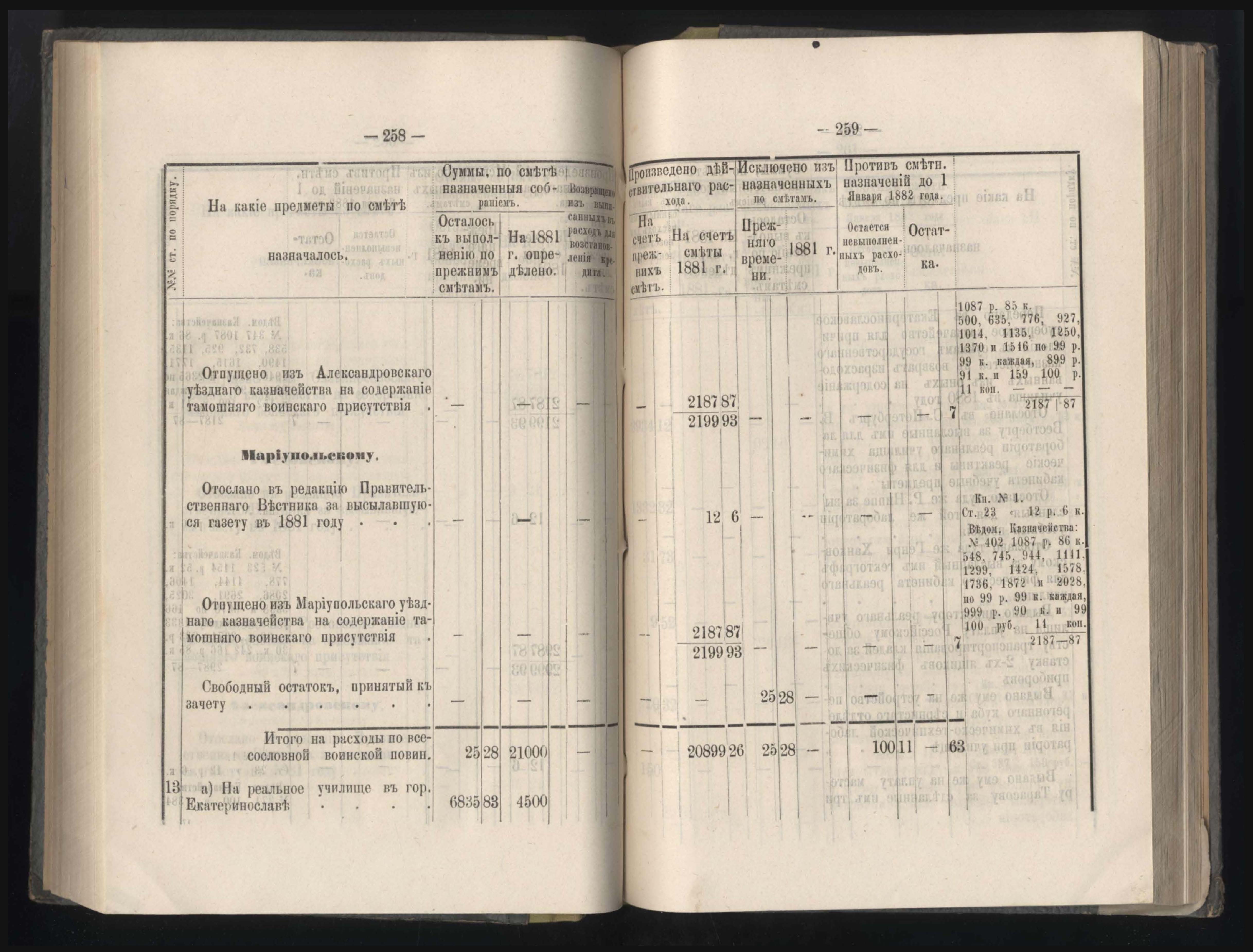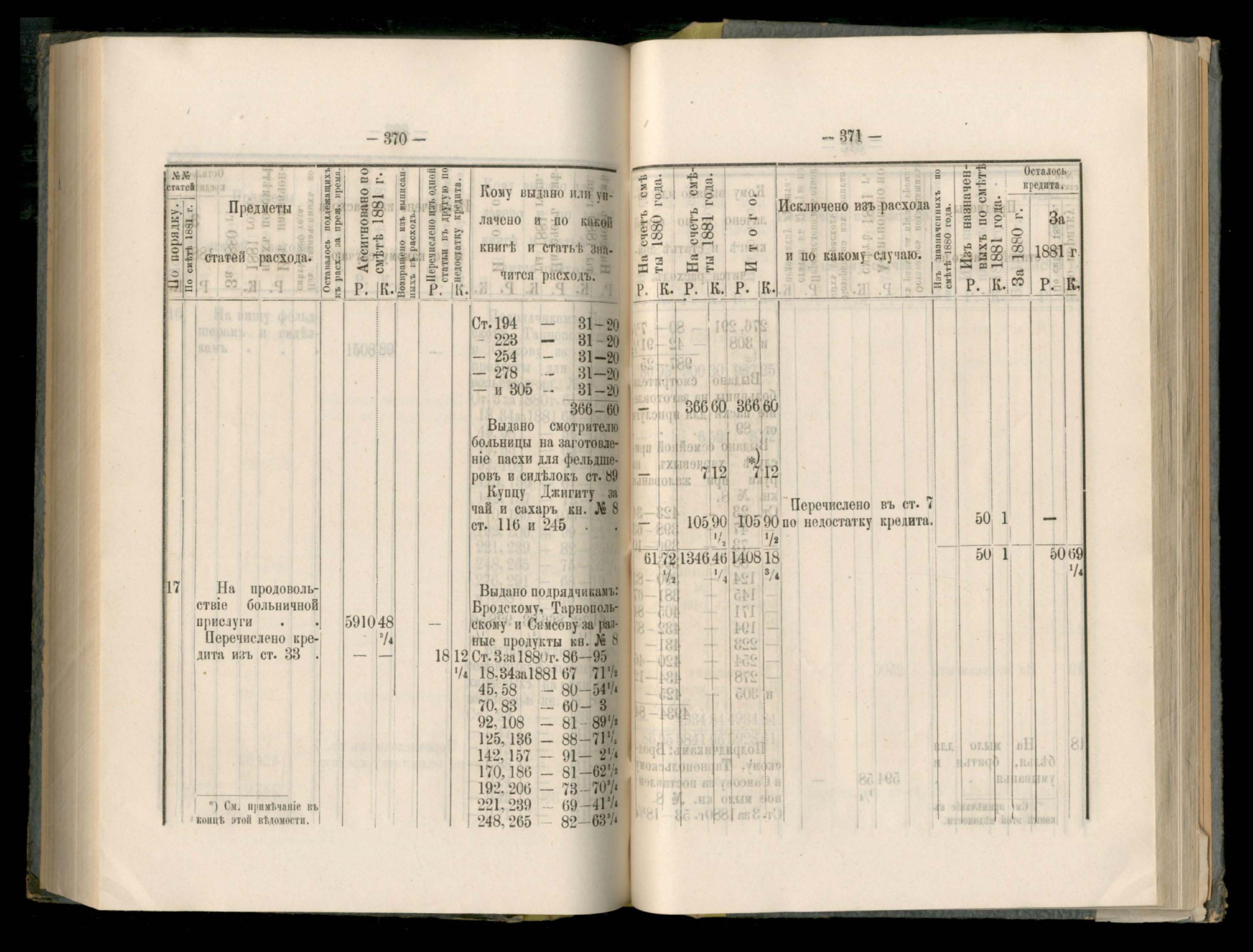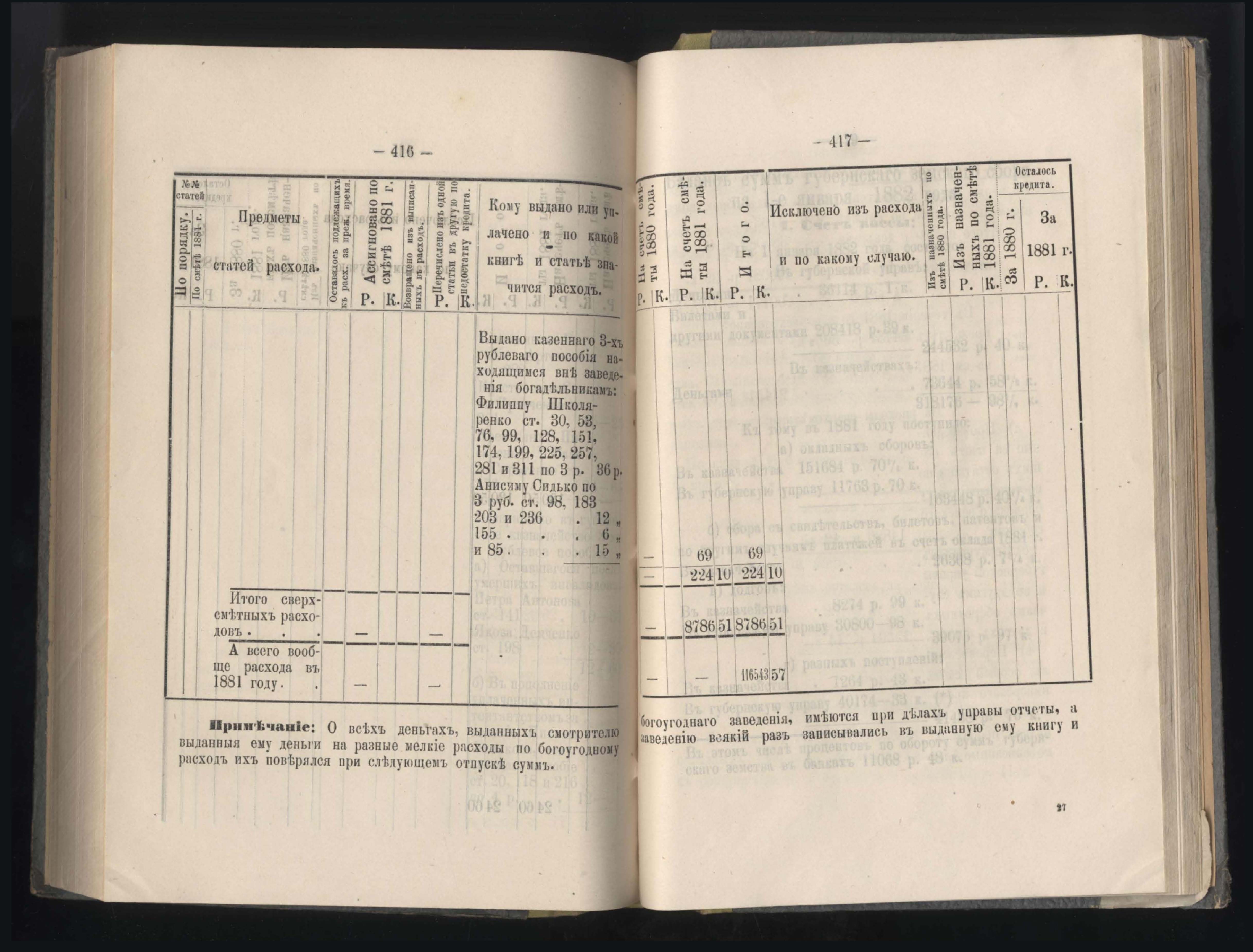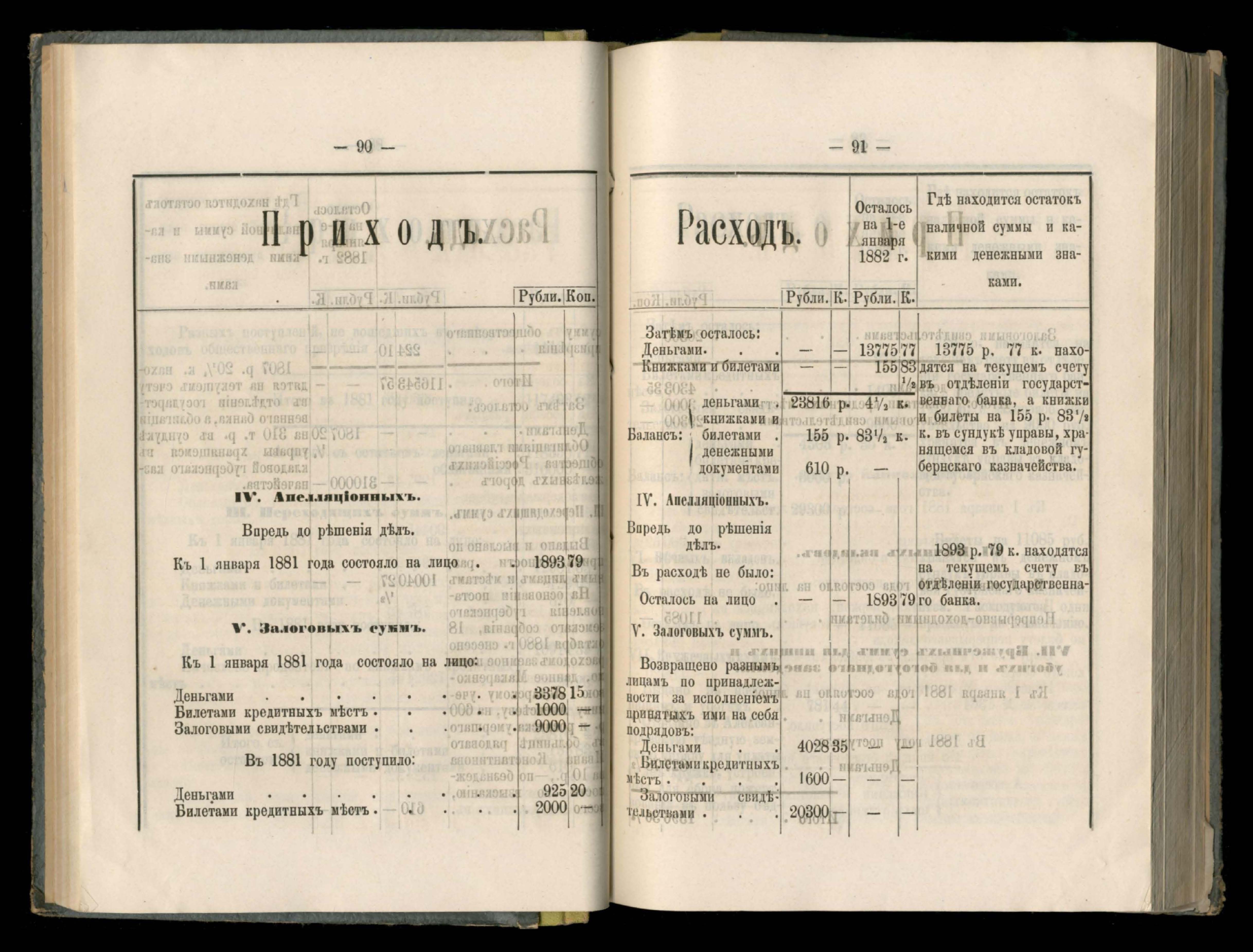 89. Приложеніе к кассовому отчету за 1881 годъ