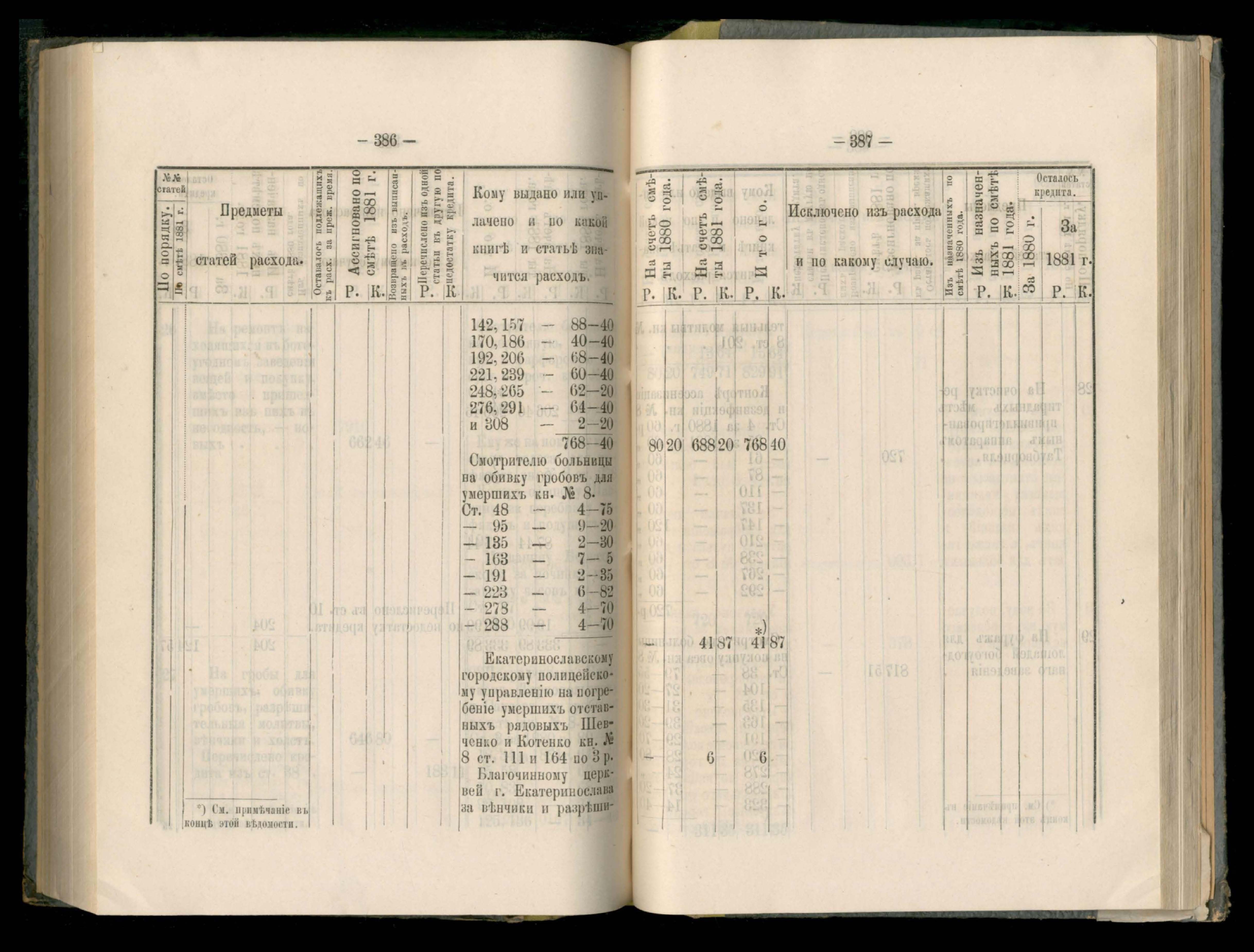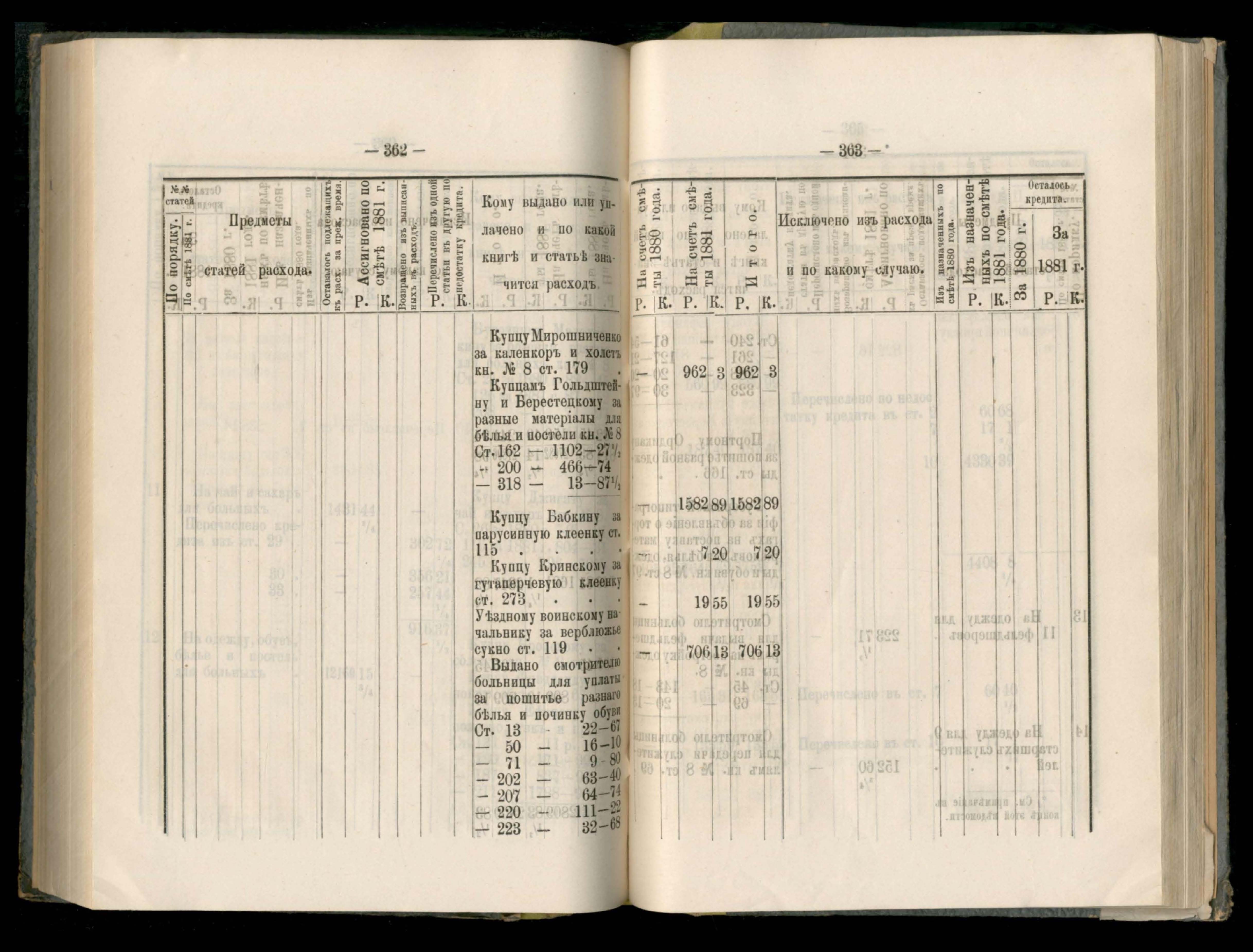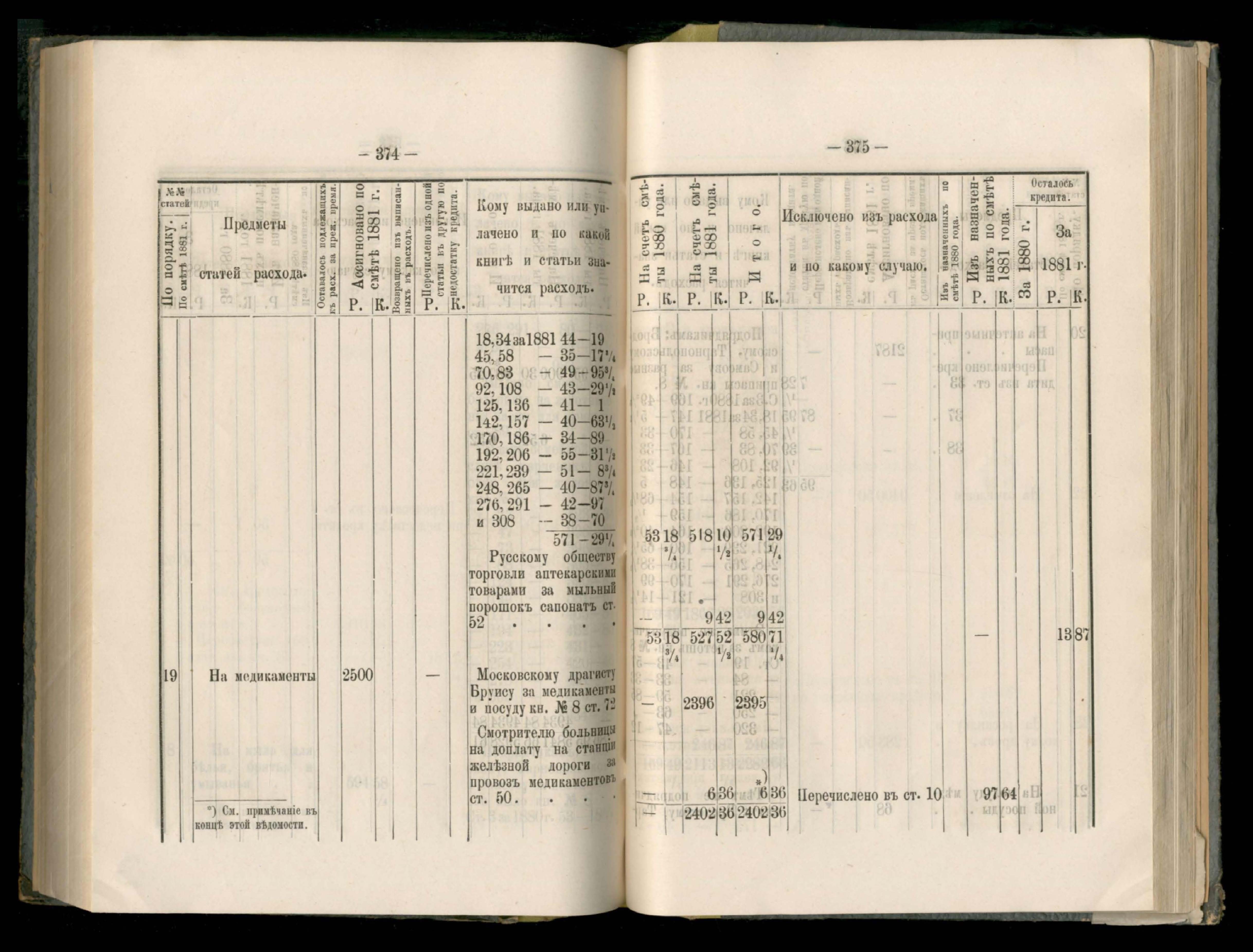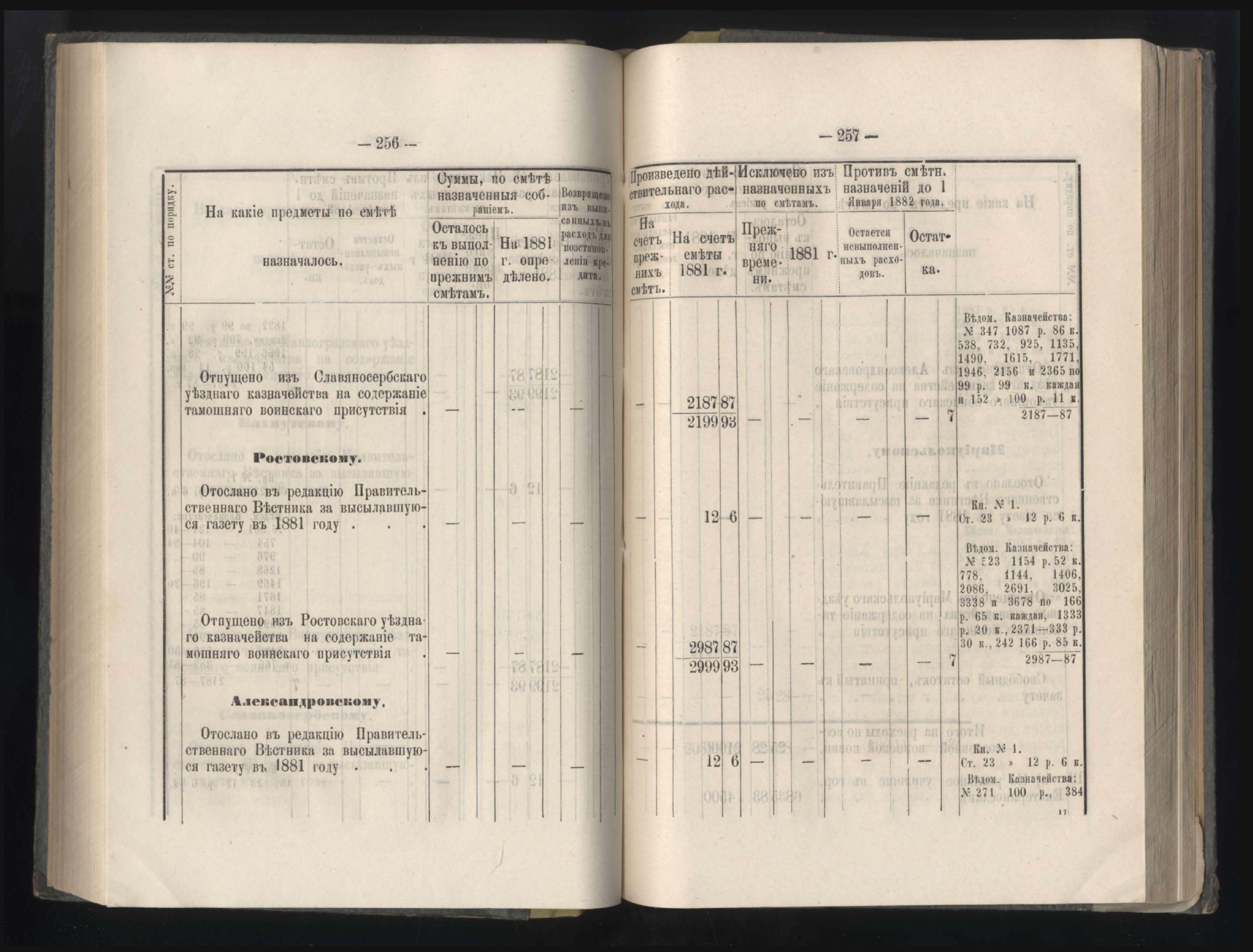 89. Приложеніе к кассовому отчету за 1881 годъ