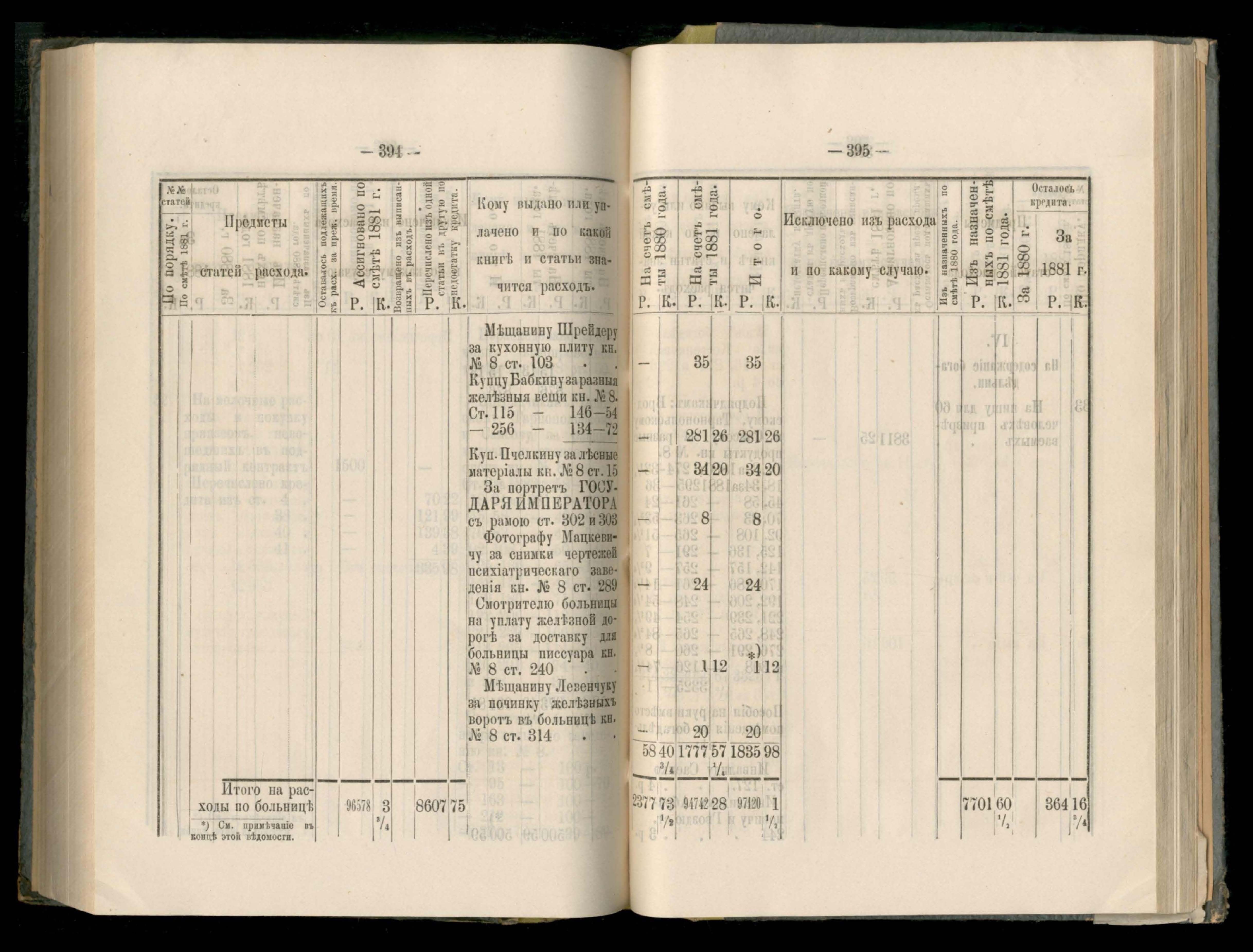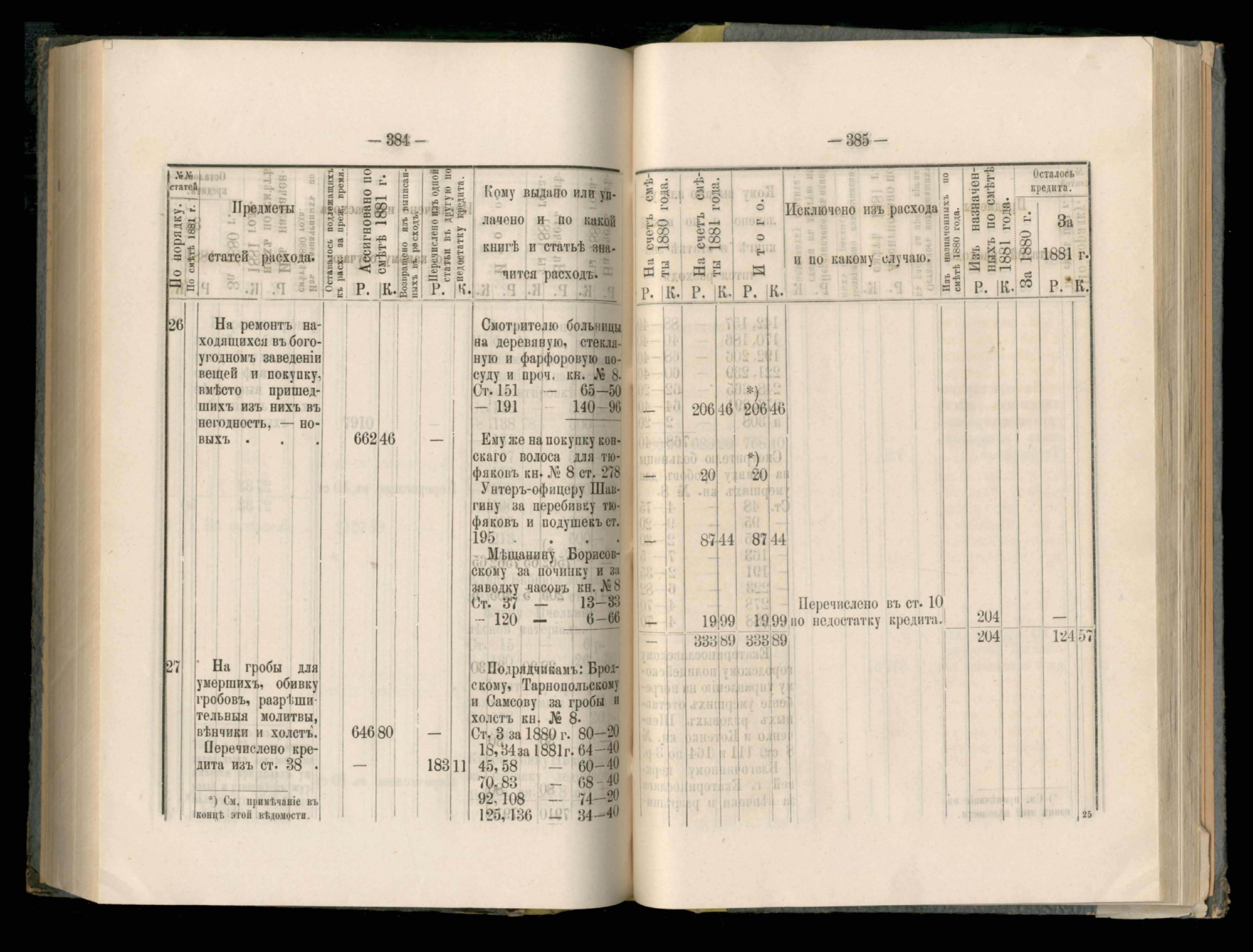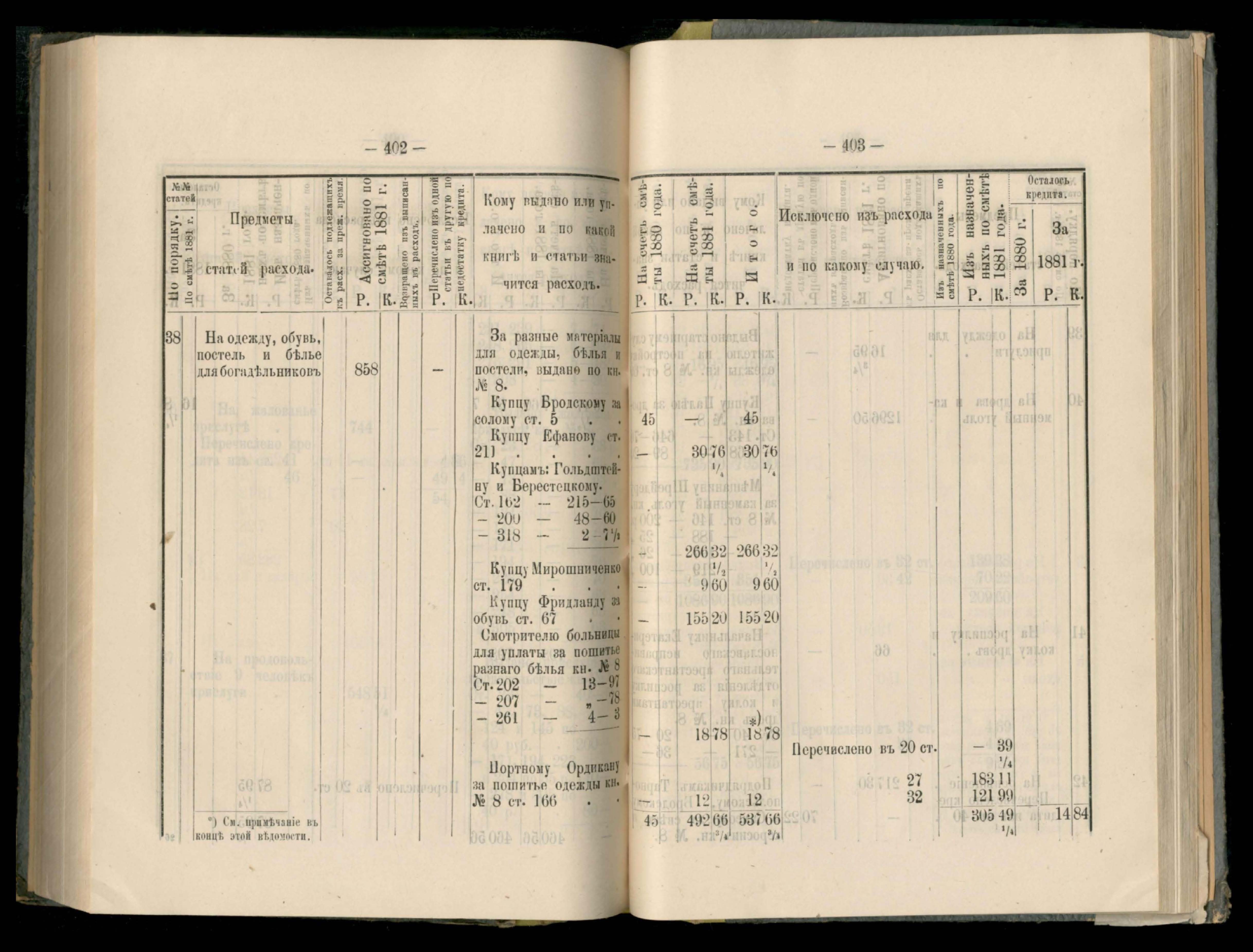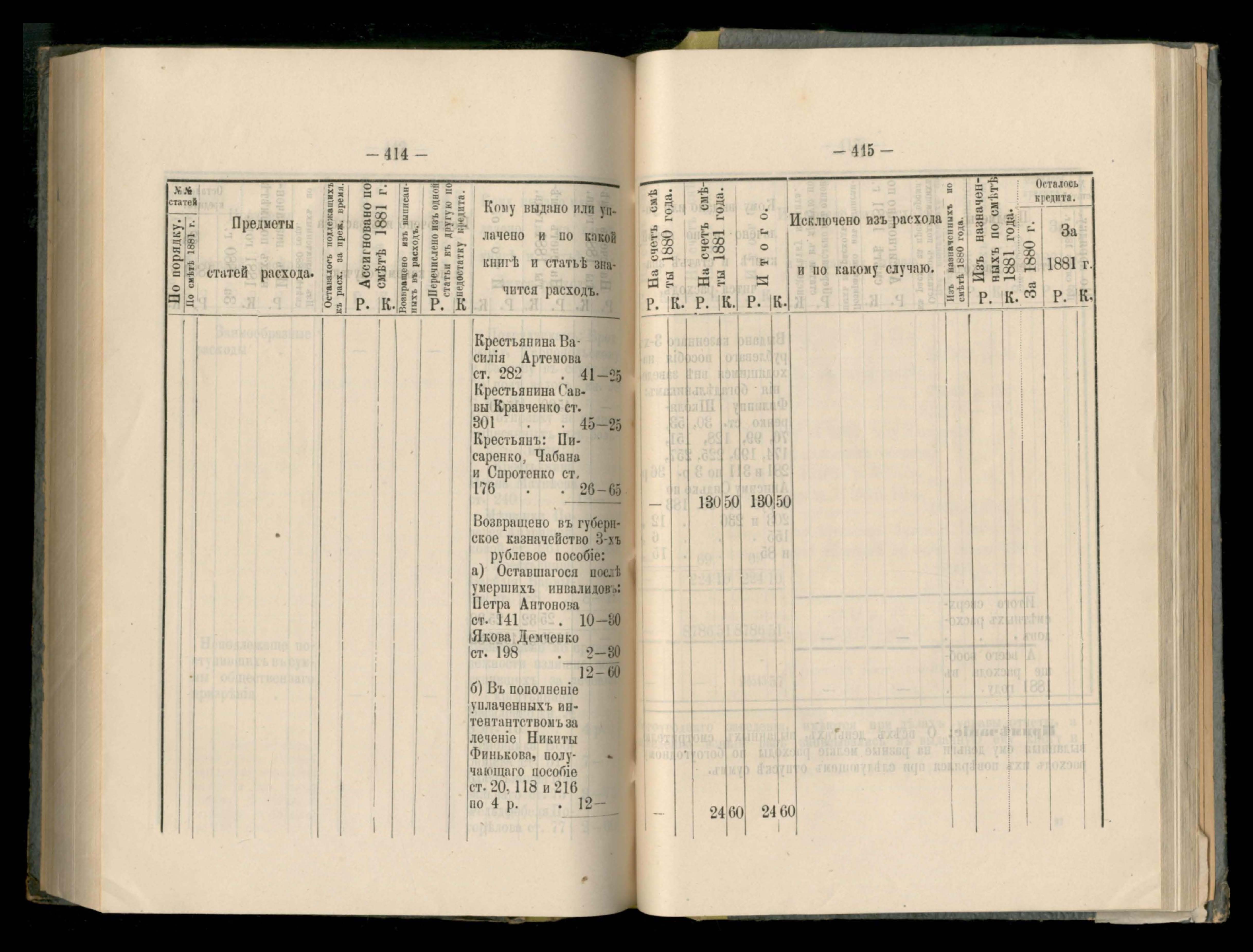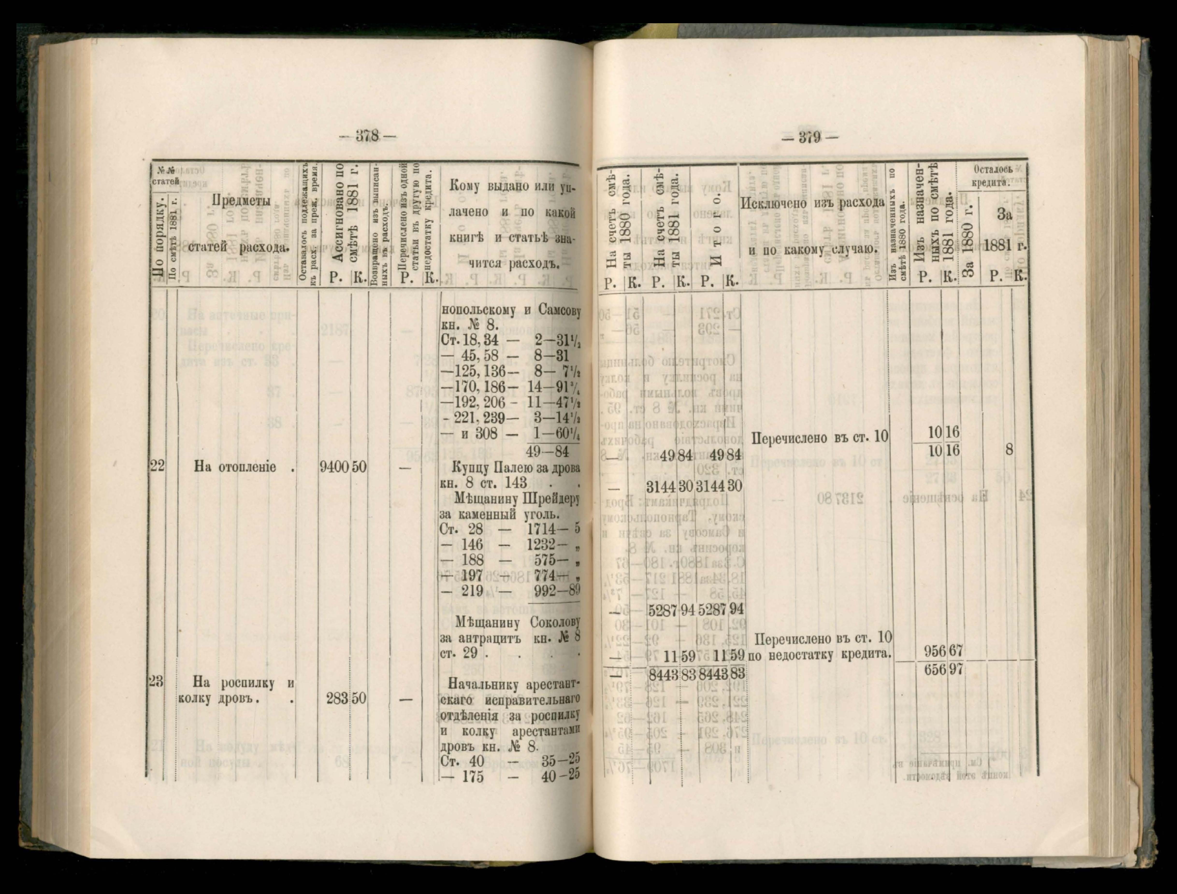 89. Приложеніе к кассовому отчету за 1881 годъ