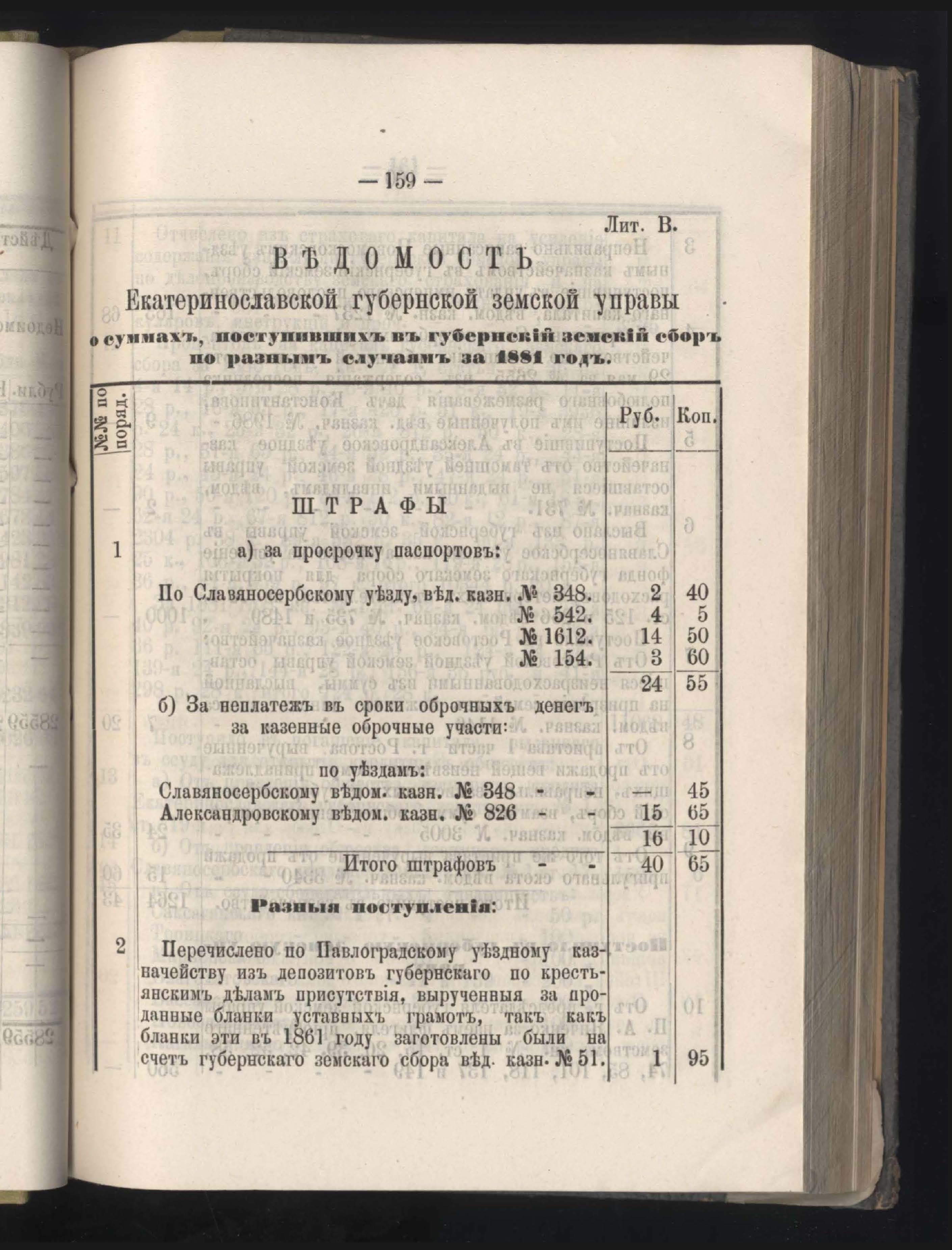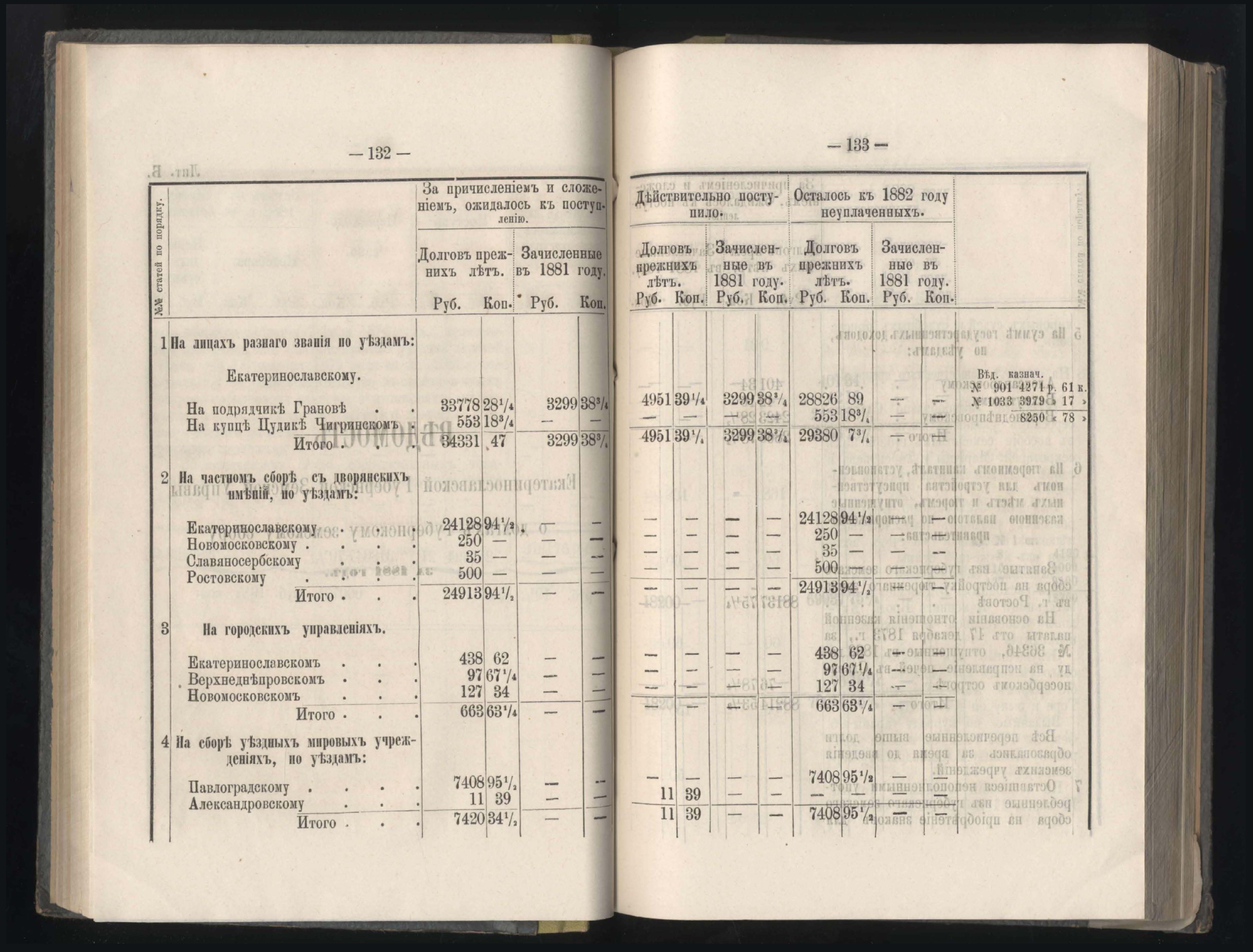 133. Въдомостъ о суммахъ, поступившихъ въ земскій сборъ по разнымъ случаямъ за 1881 годъ