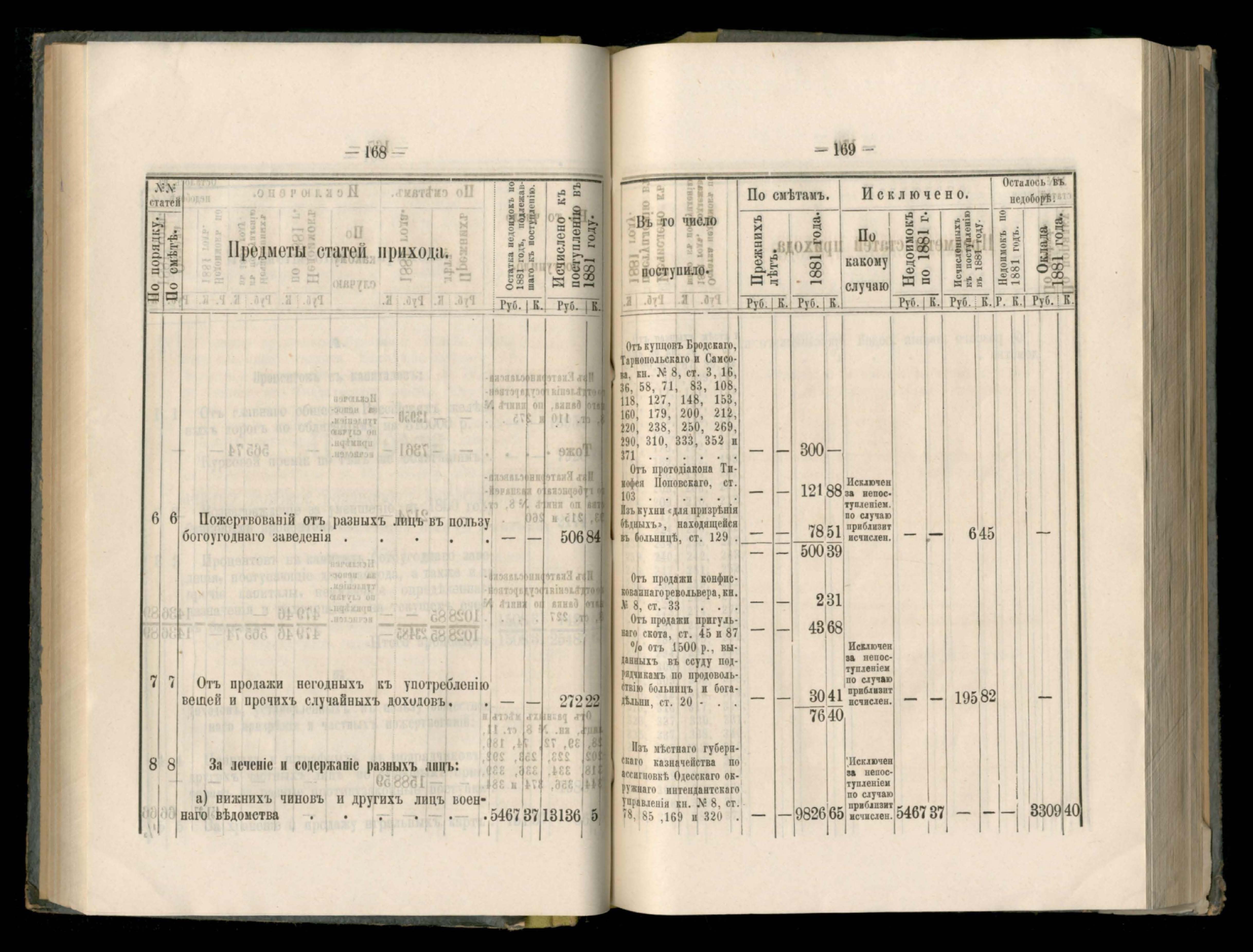 139. Въдомостъ о доходахъ суммъ общественнаго призренія