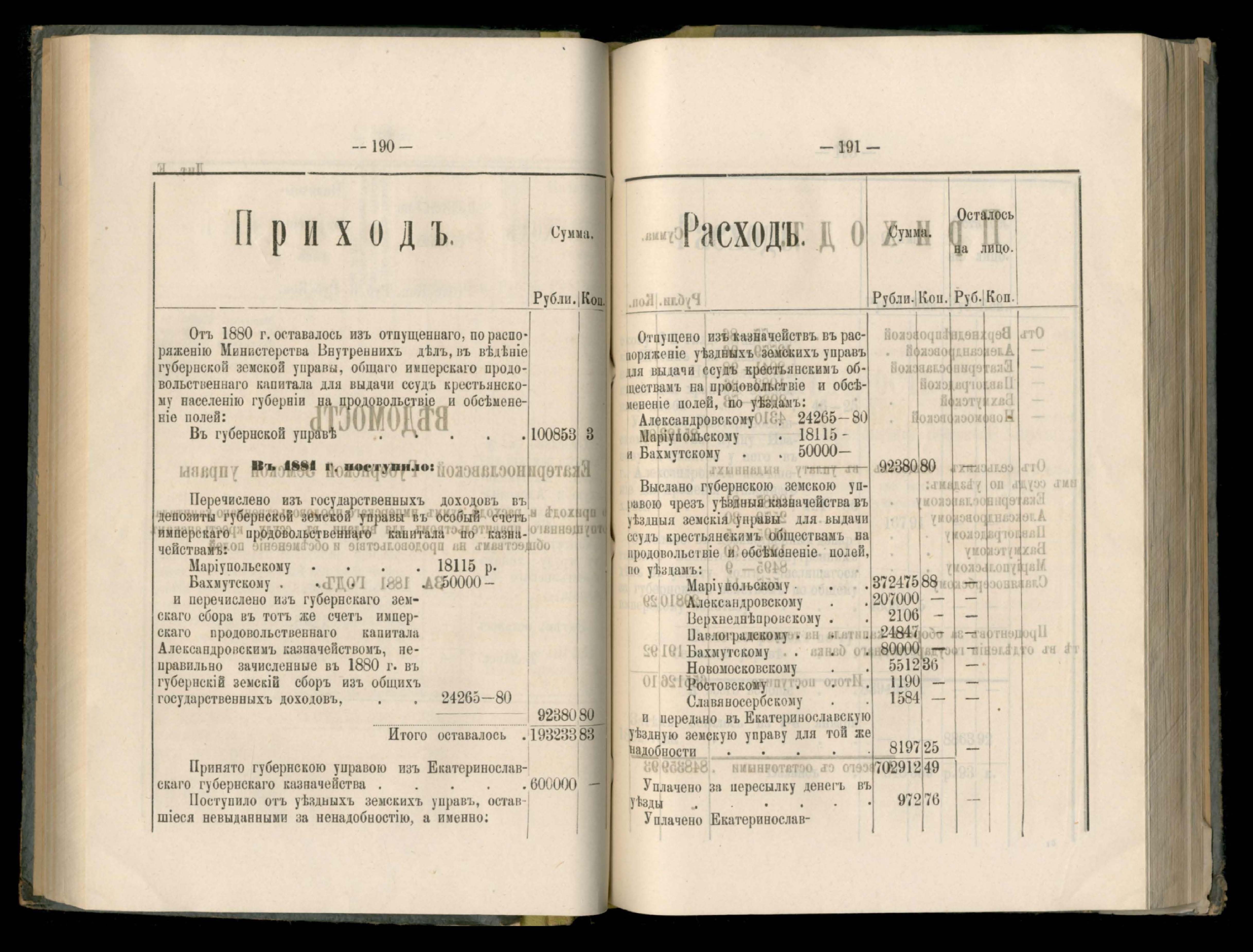 153. Въдомостъ о приходъ и расходъ имперскаго продовольственнаго капитала