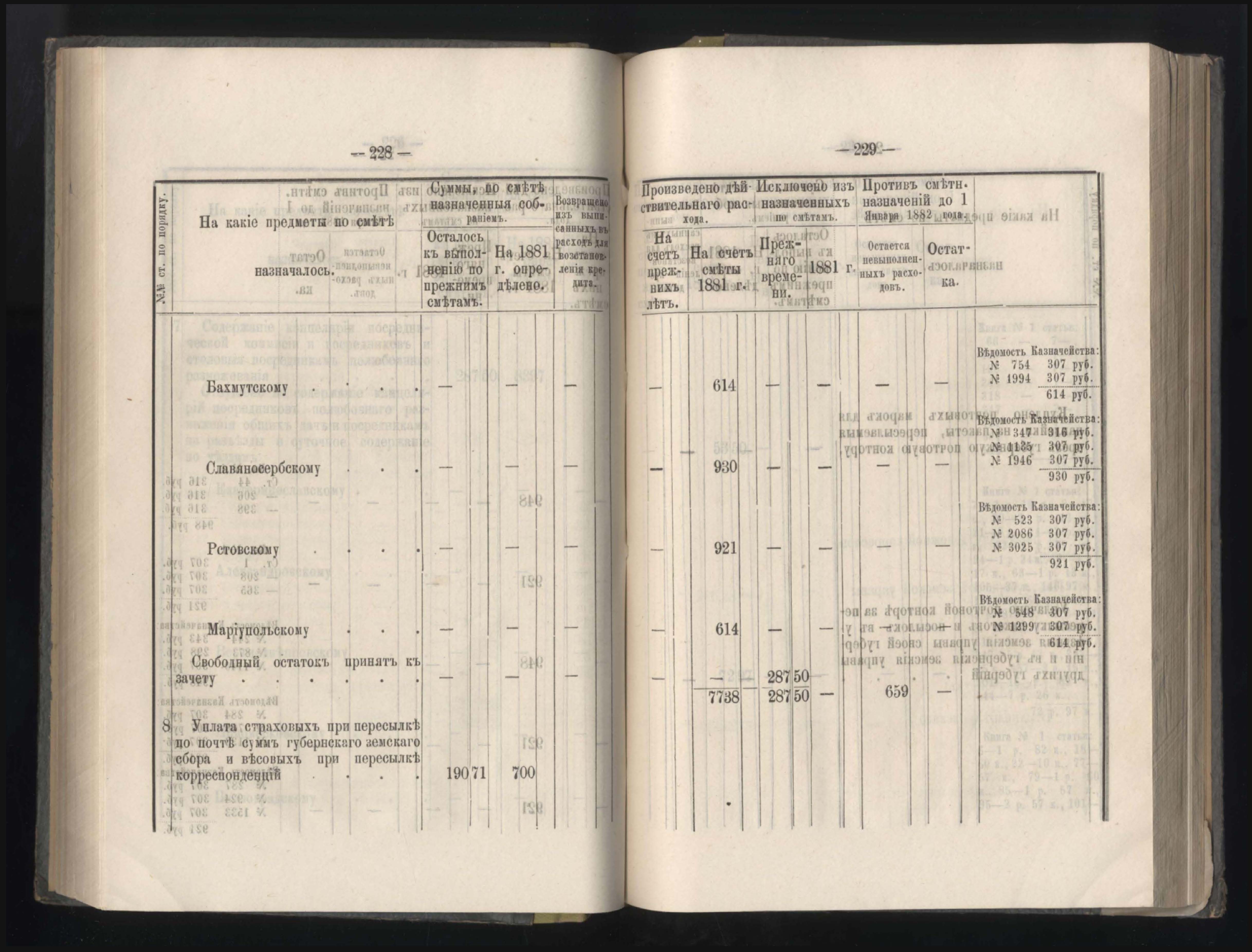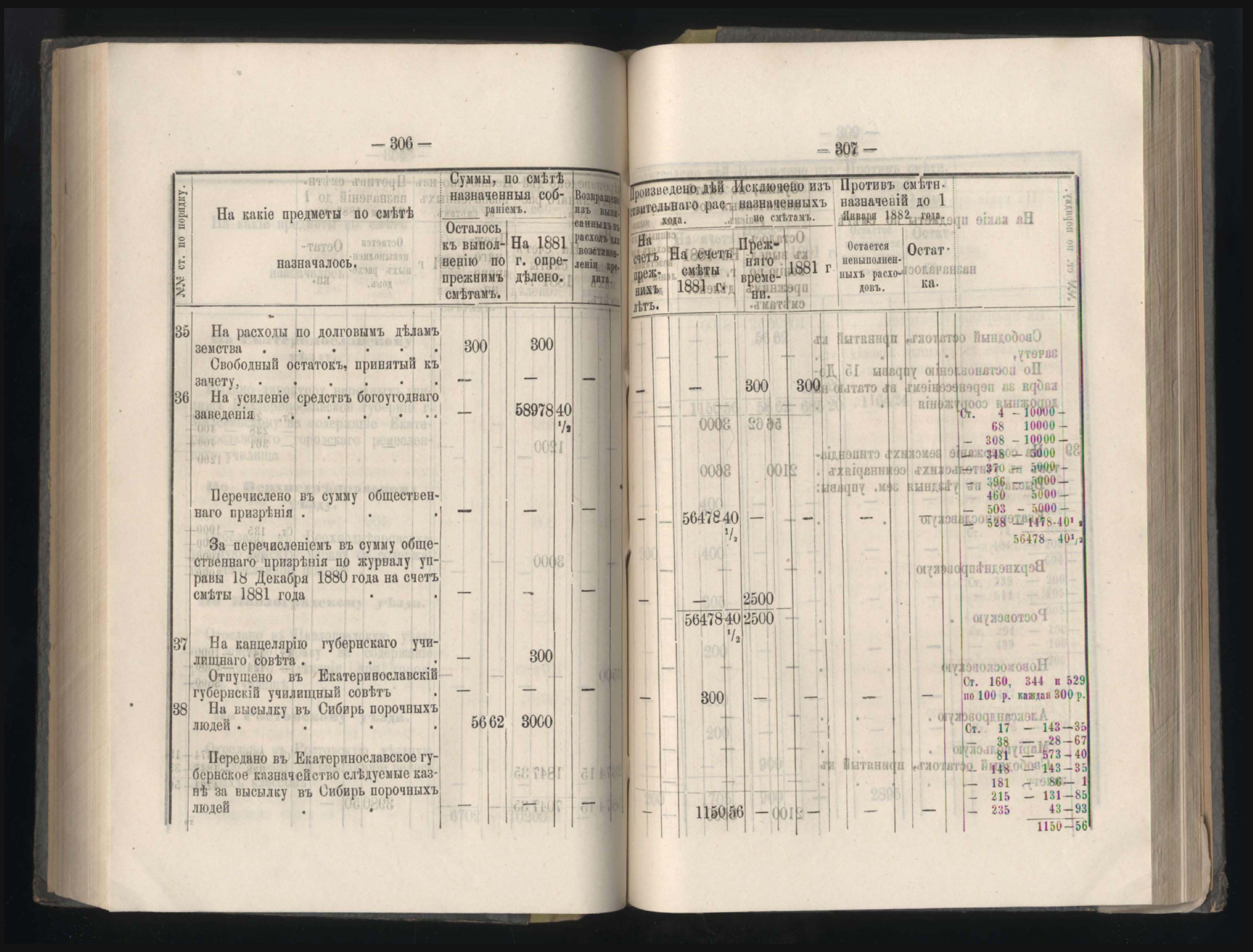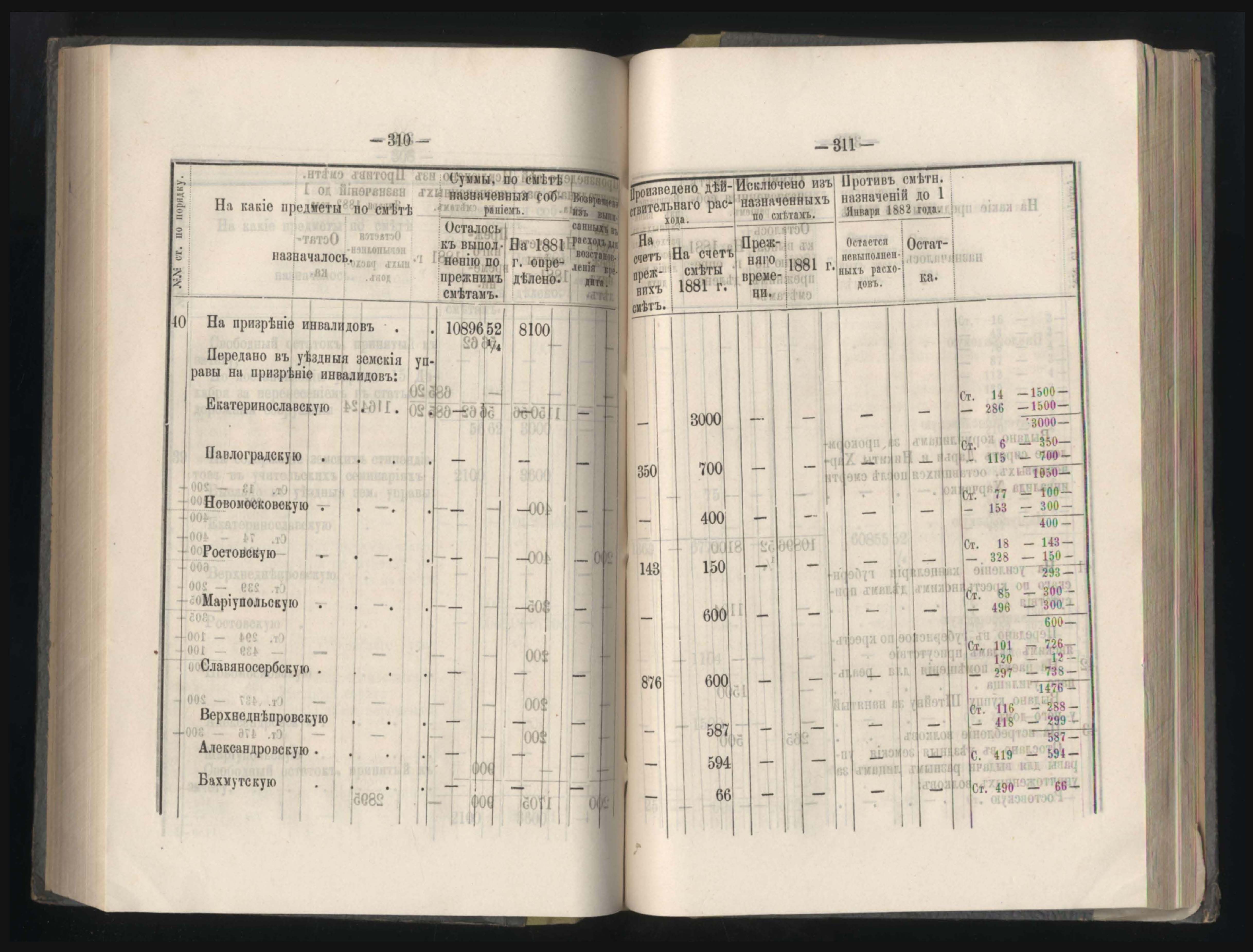 407. Въдомостъ о выполненныхъ въ 1881 году натуральныхъ повинностяхъ въ Екатеринославской губерніи