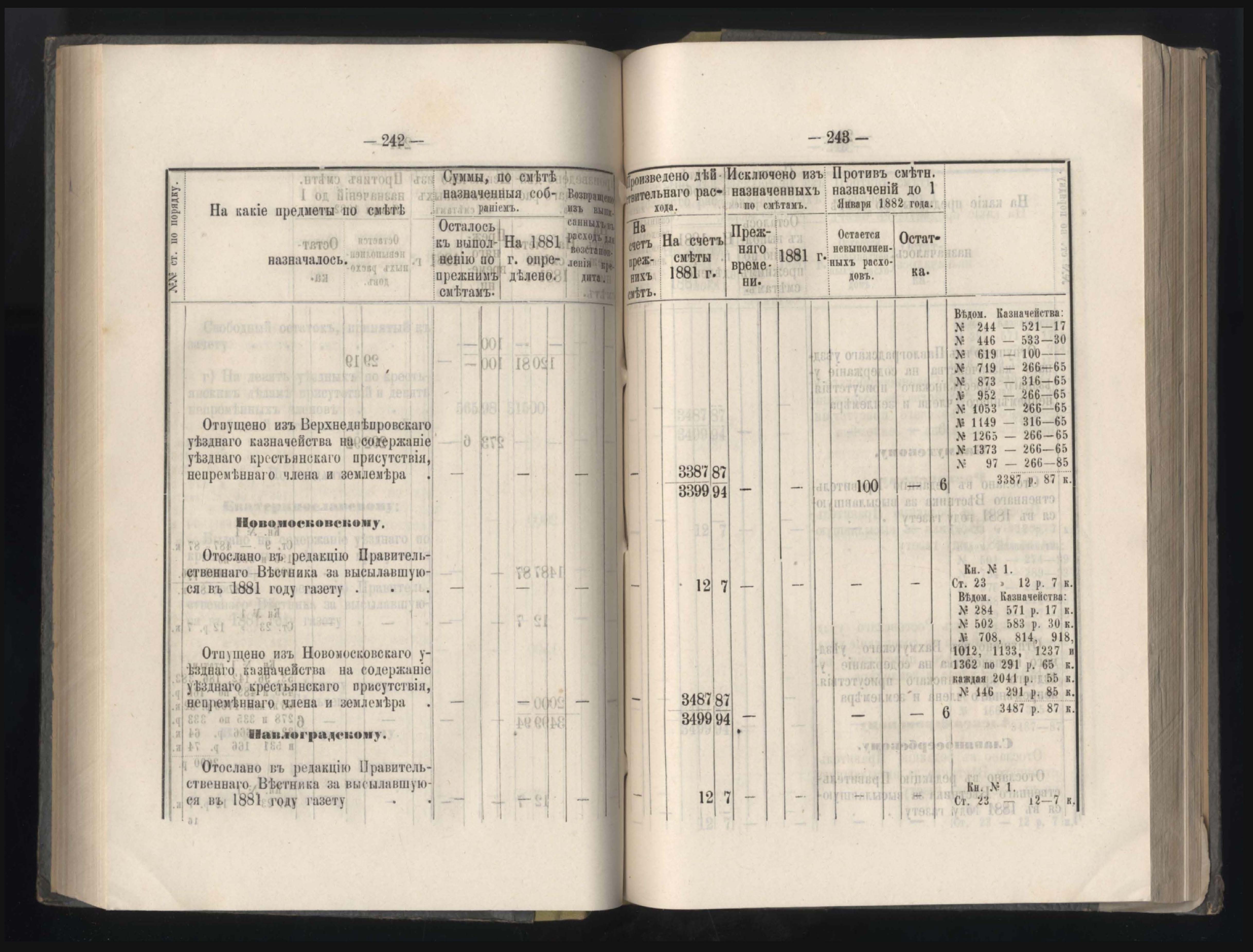 339. Въдомостъ о сборахъ, доходахъ и расходахъ уездныхъ земскихъ суммъ
