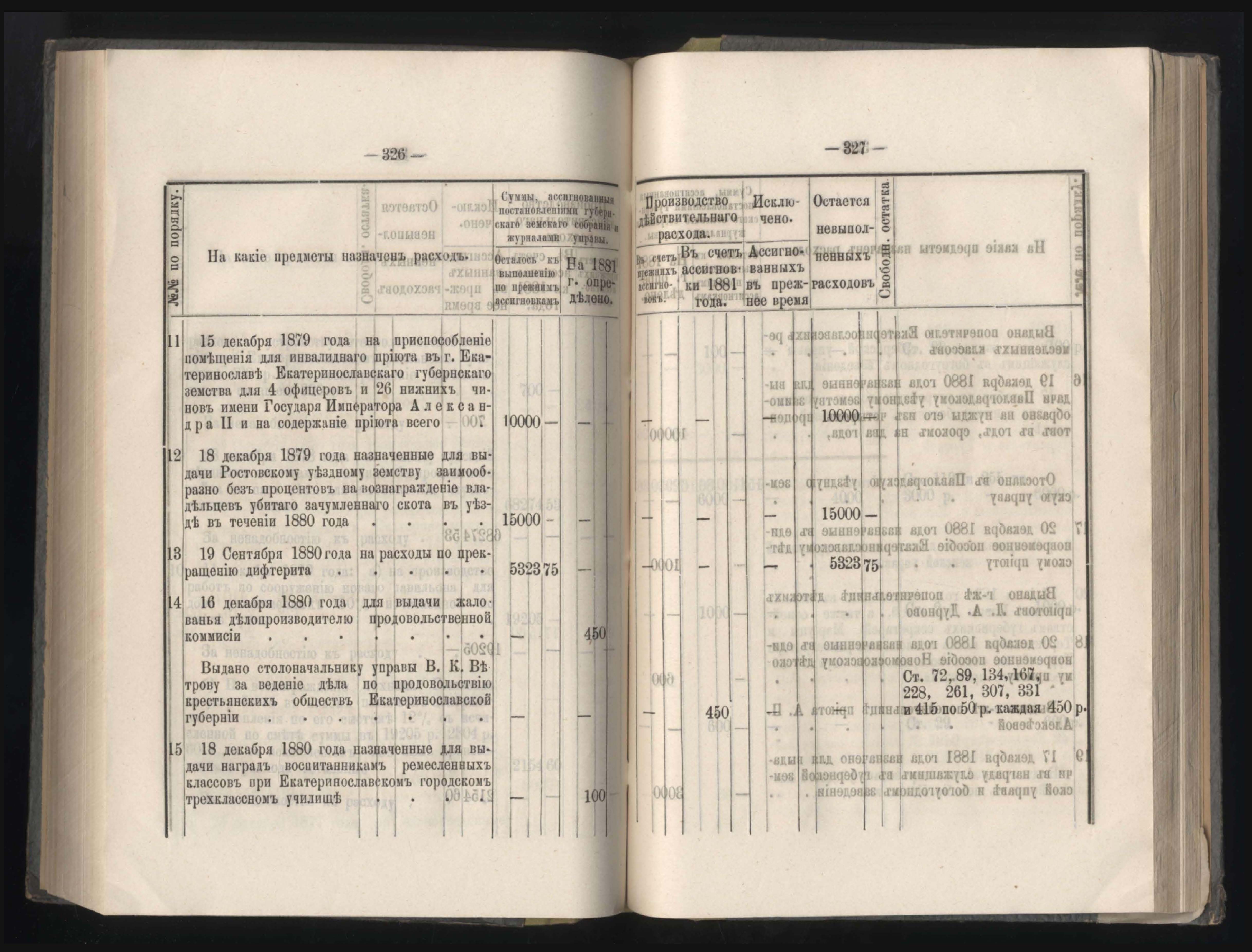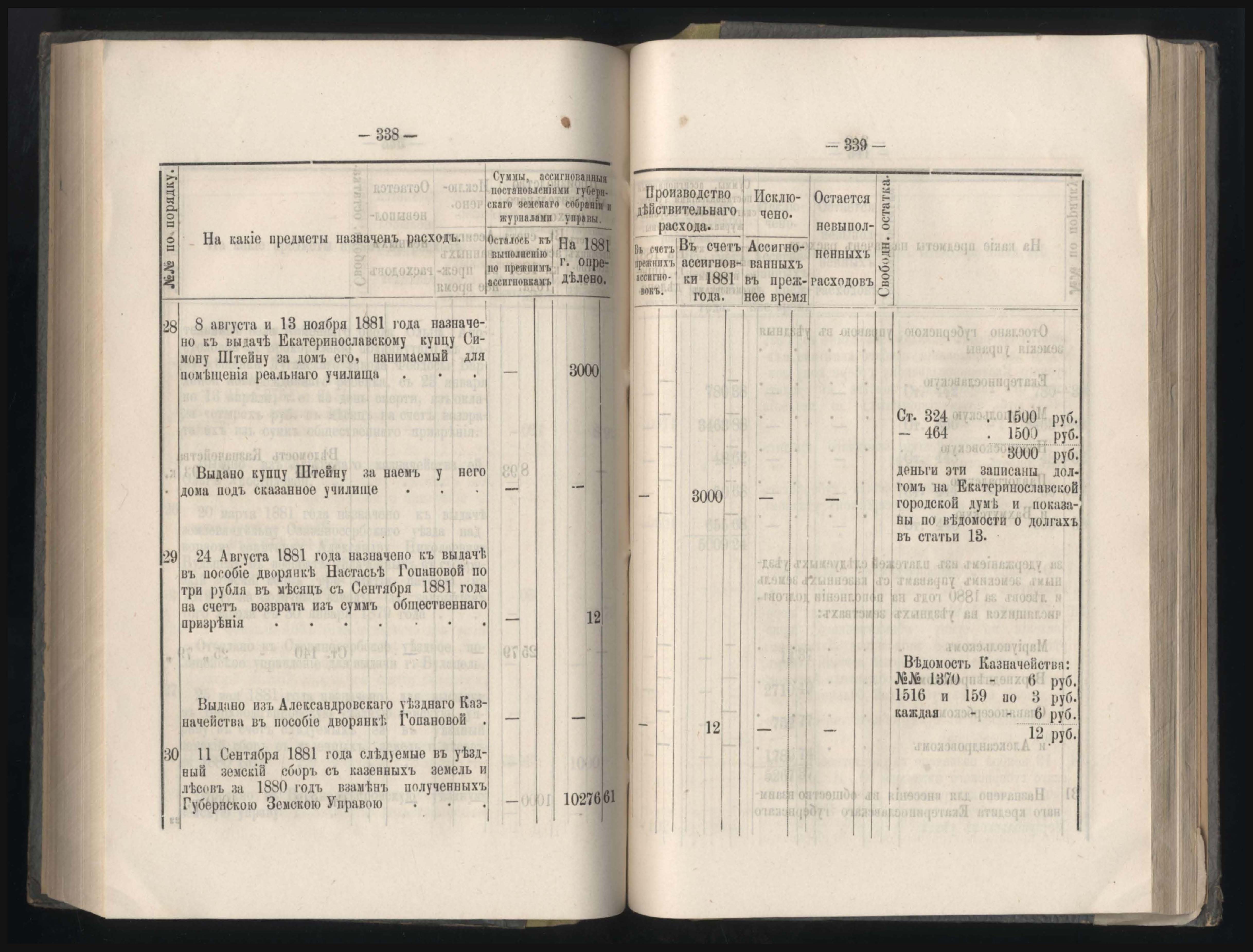 331. Въдомостъ о состояніи хлебныхъ общественныхъ запасовъ народнаго продовольствія въ Екатеринославской губерніи за 1881 годъ