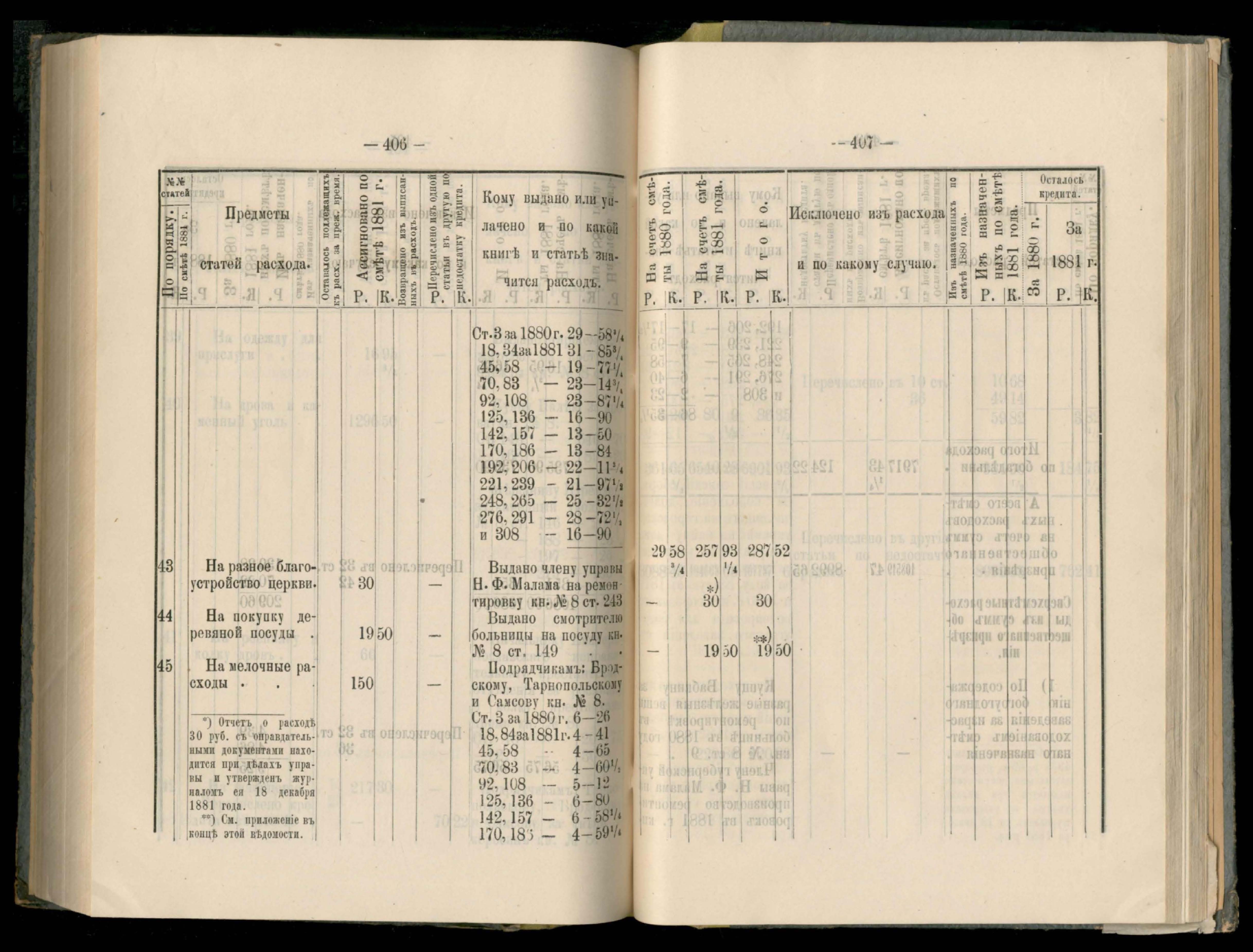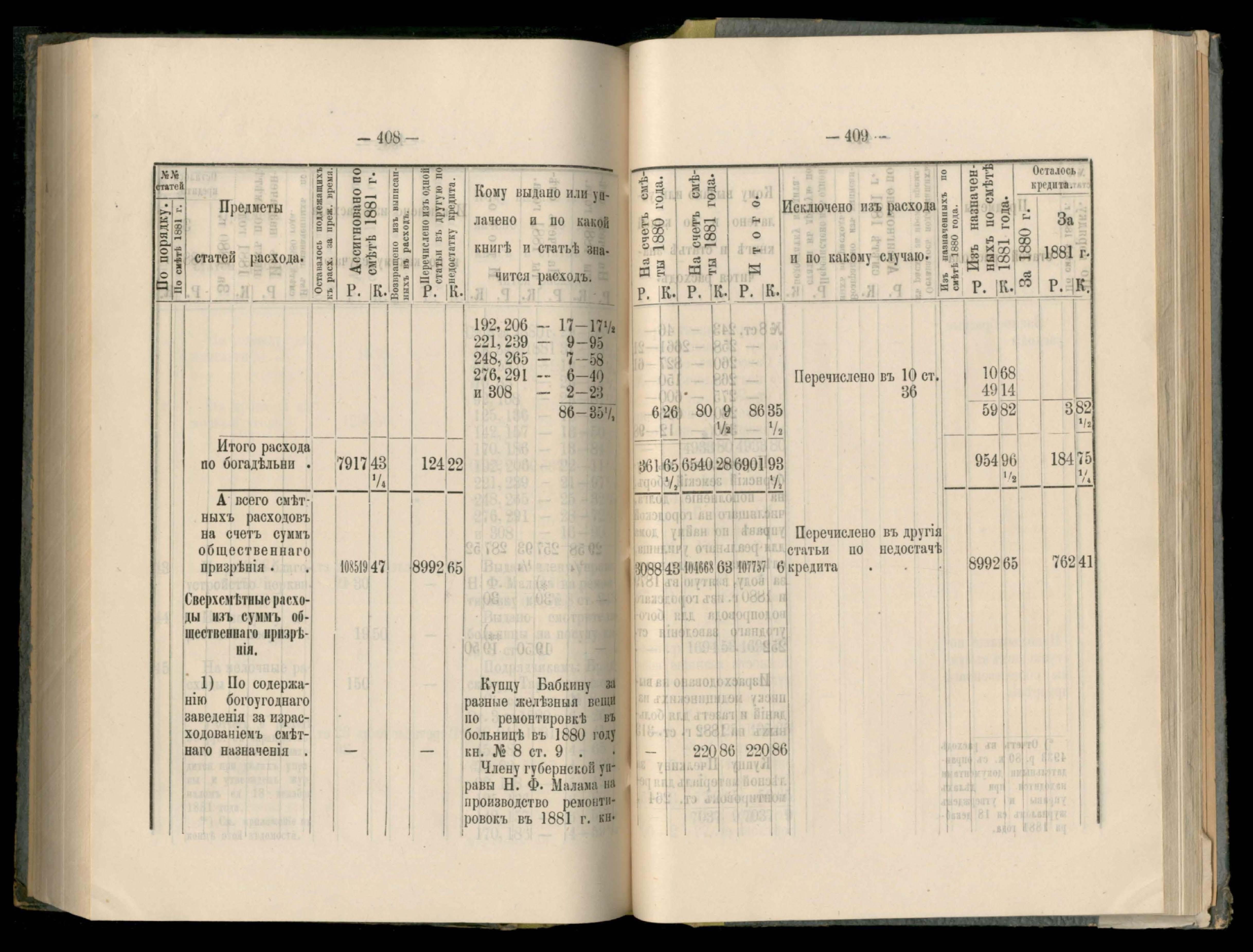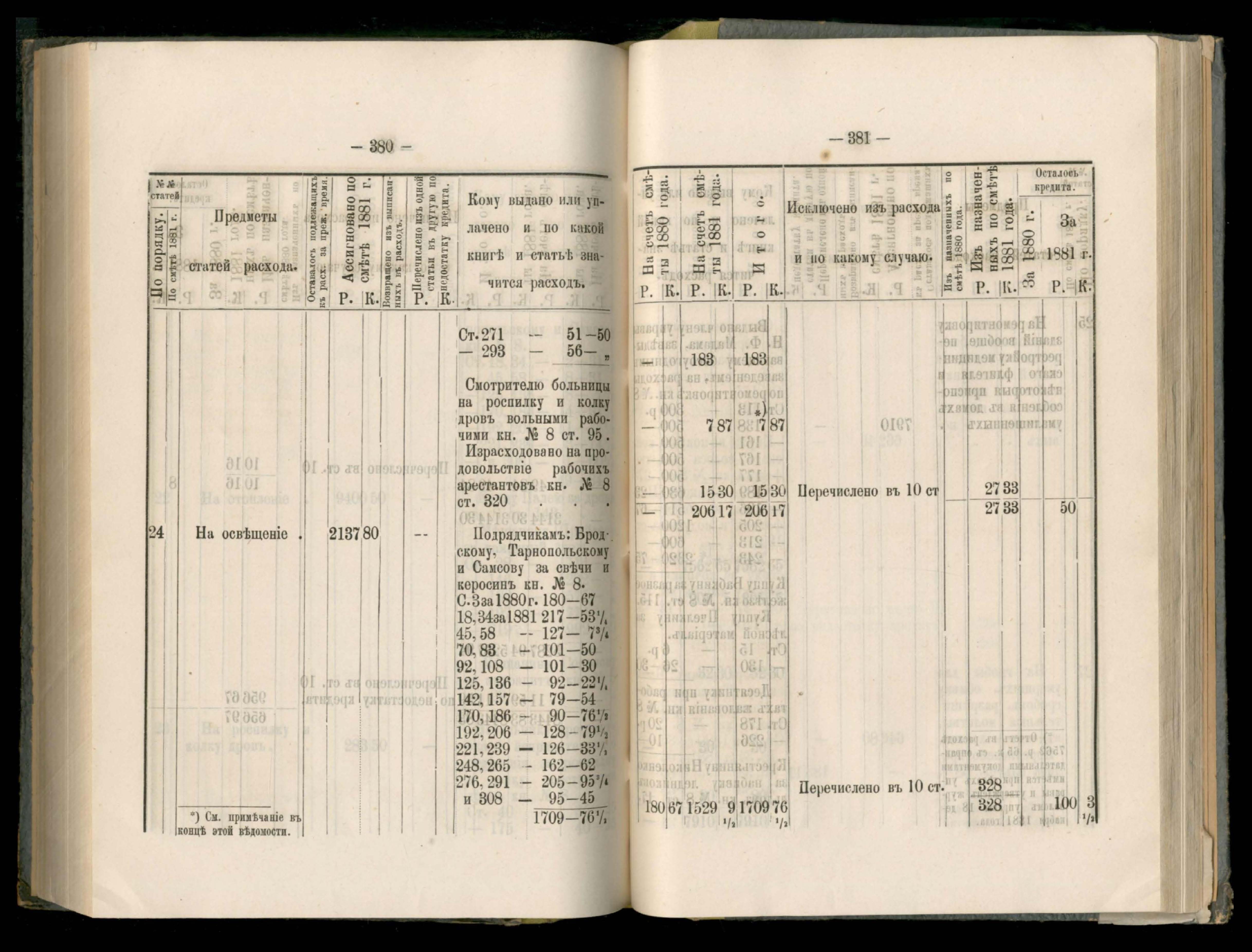 236. Подробная въдомостъ о расходъ суммъ общественнаго призренія за 1881 годъ
