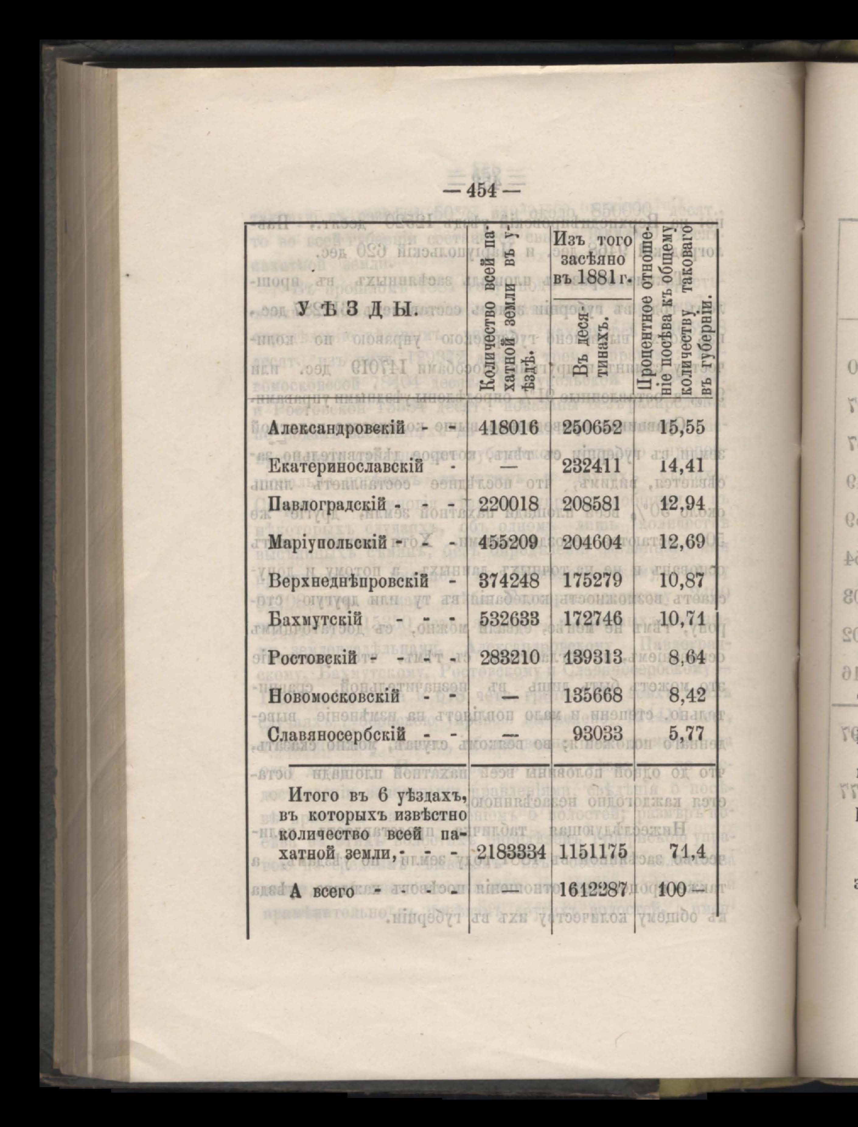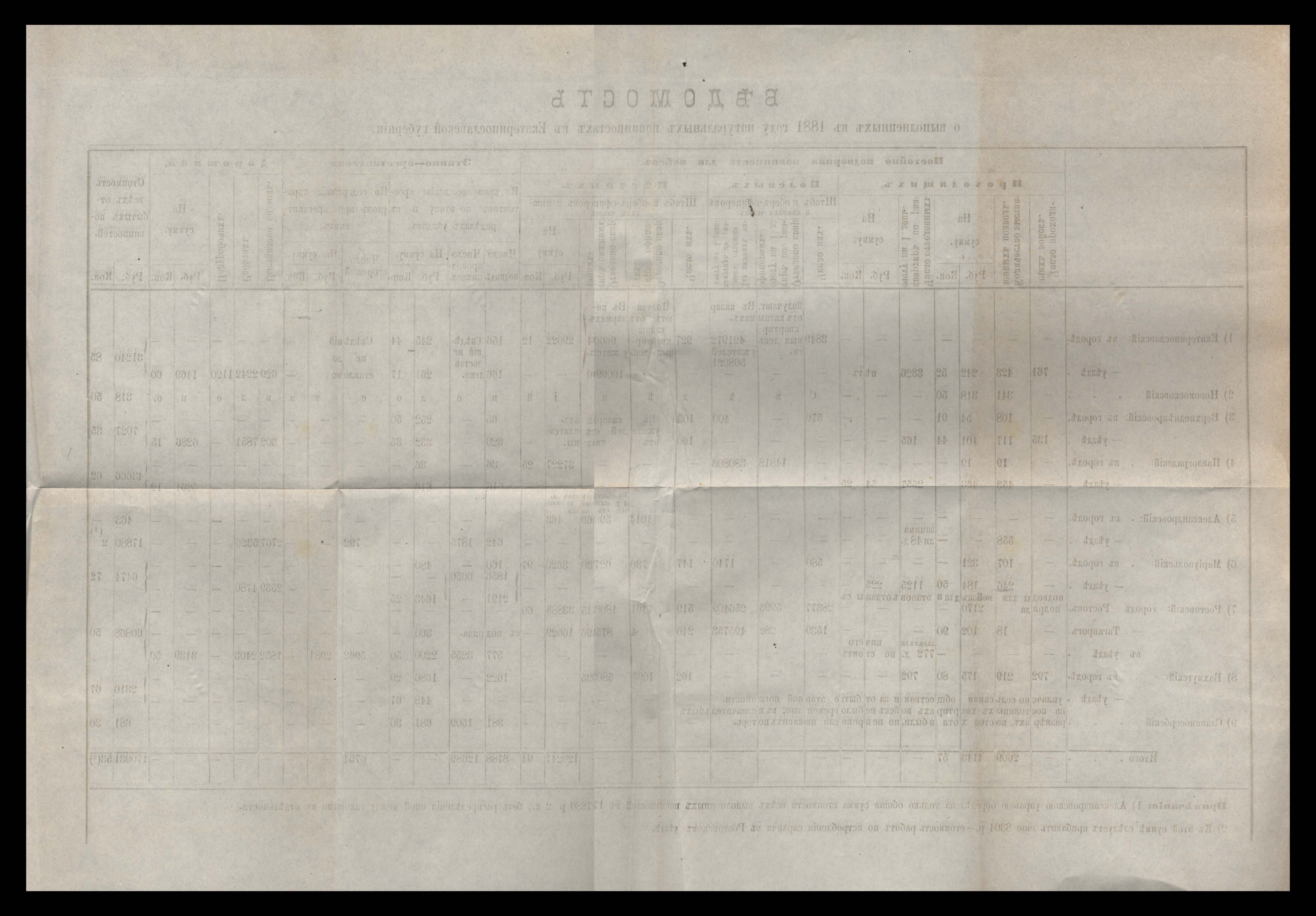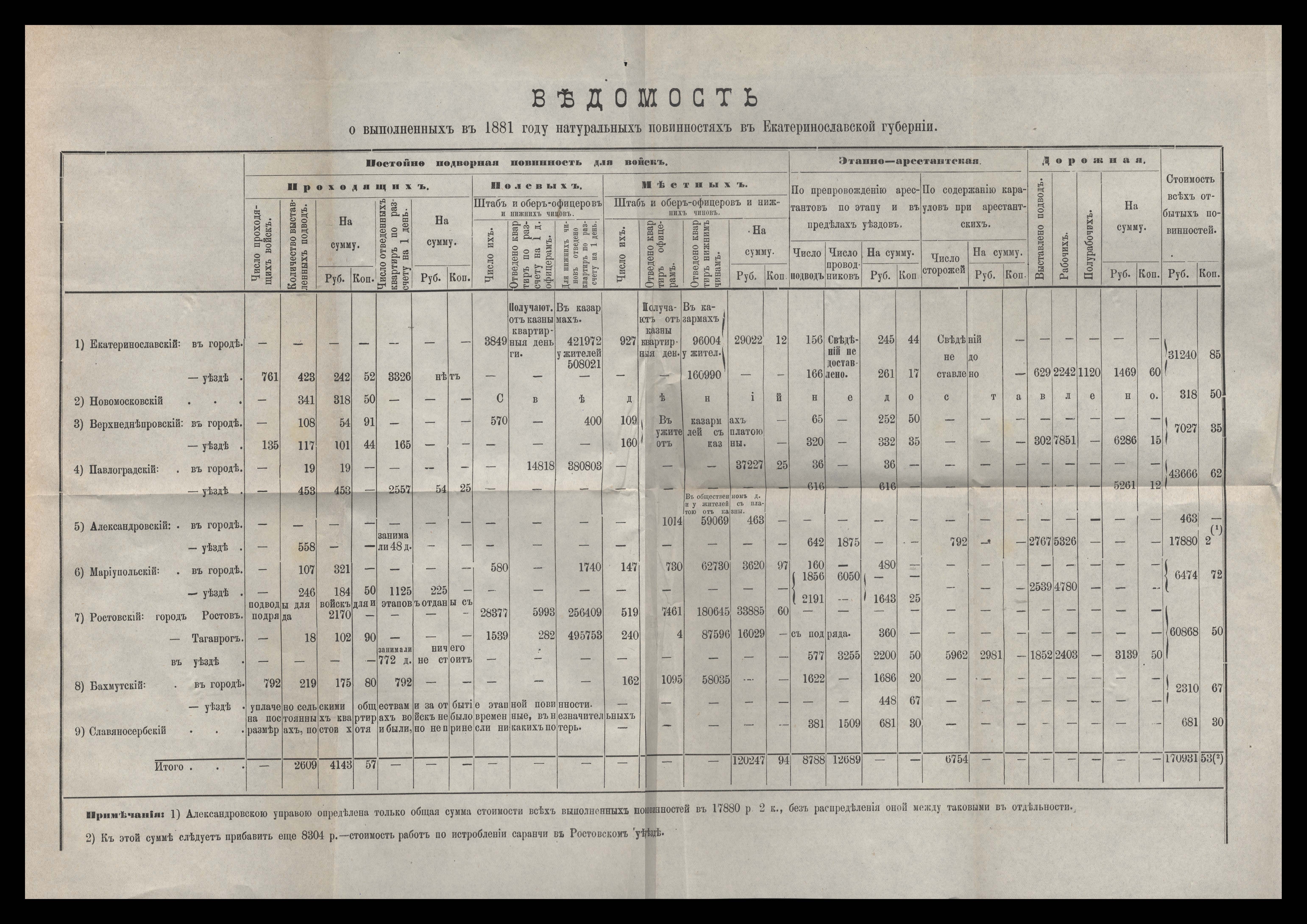 Въдомостъ о выполненныхъ въ 1881 году натуральныхъ повинностяхъ въ Екатеринославской губерніи
