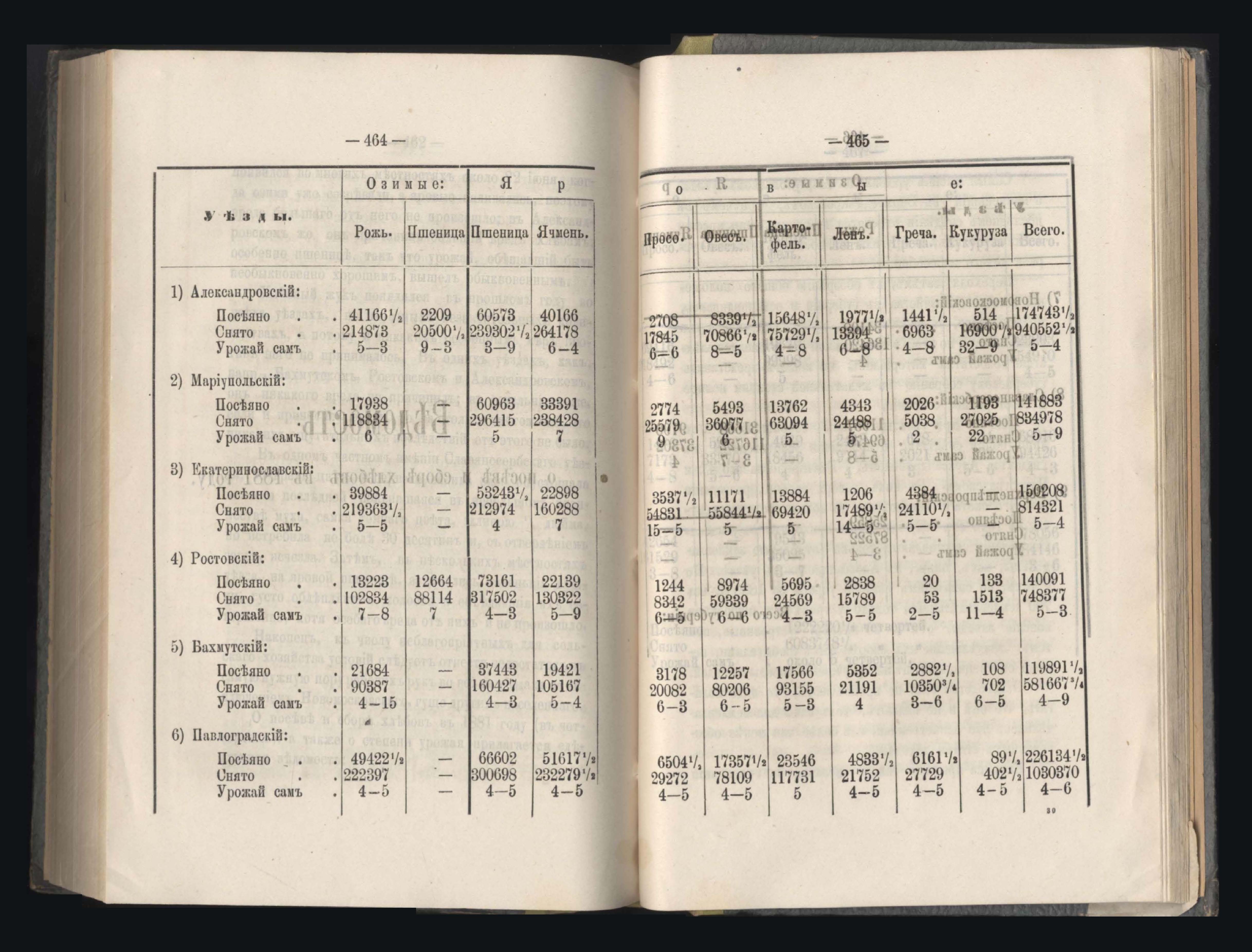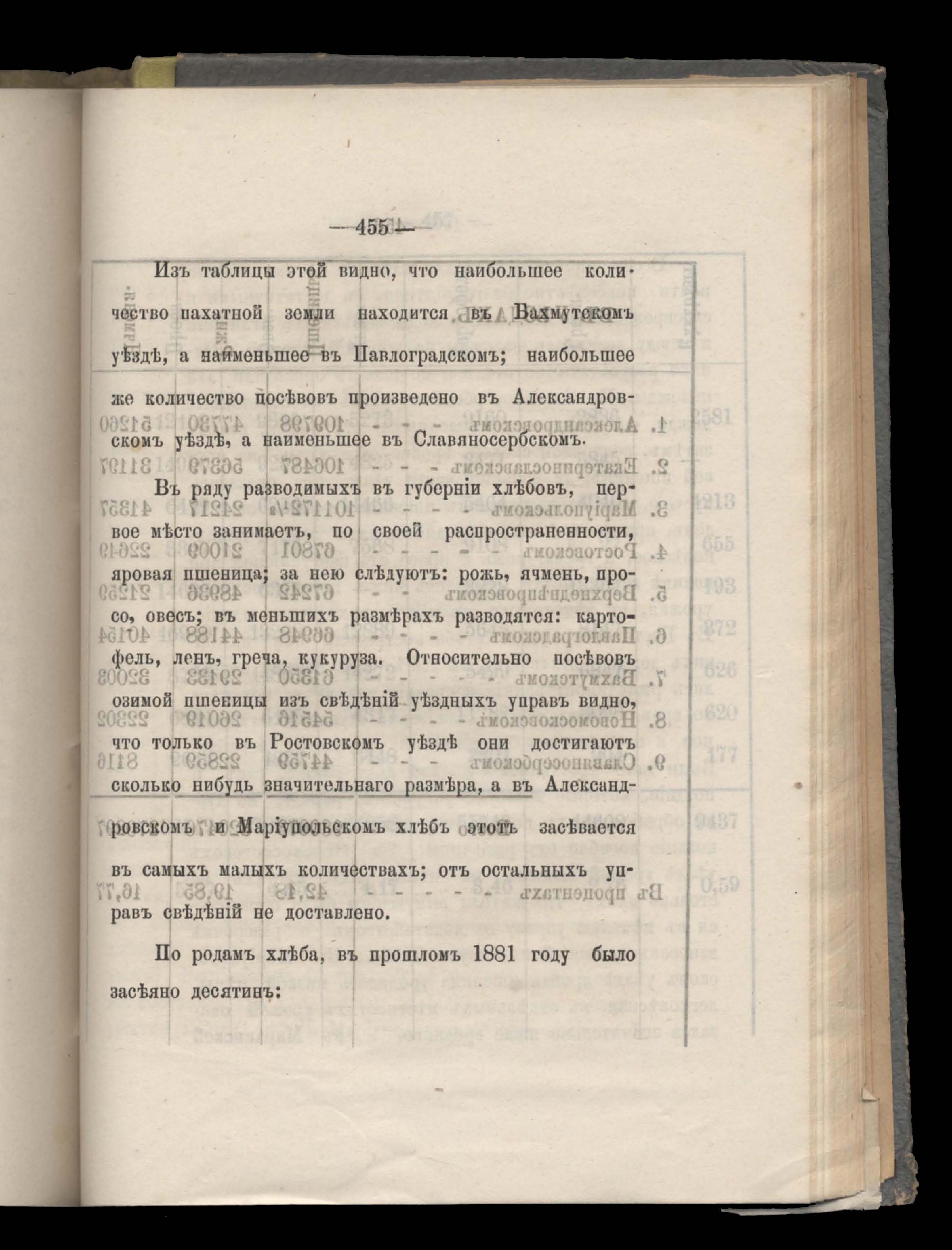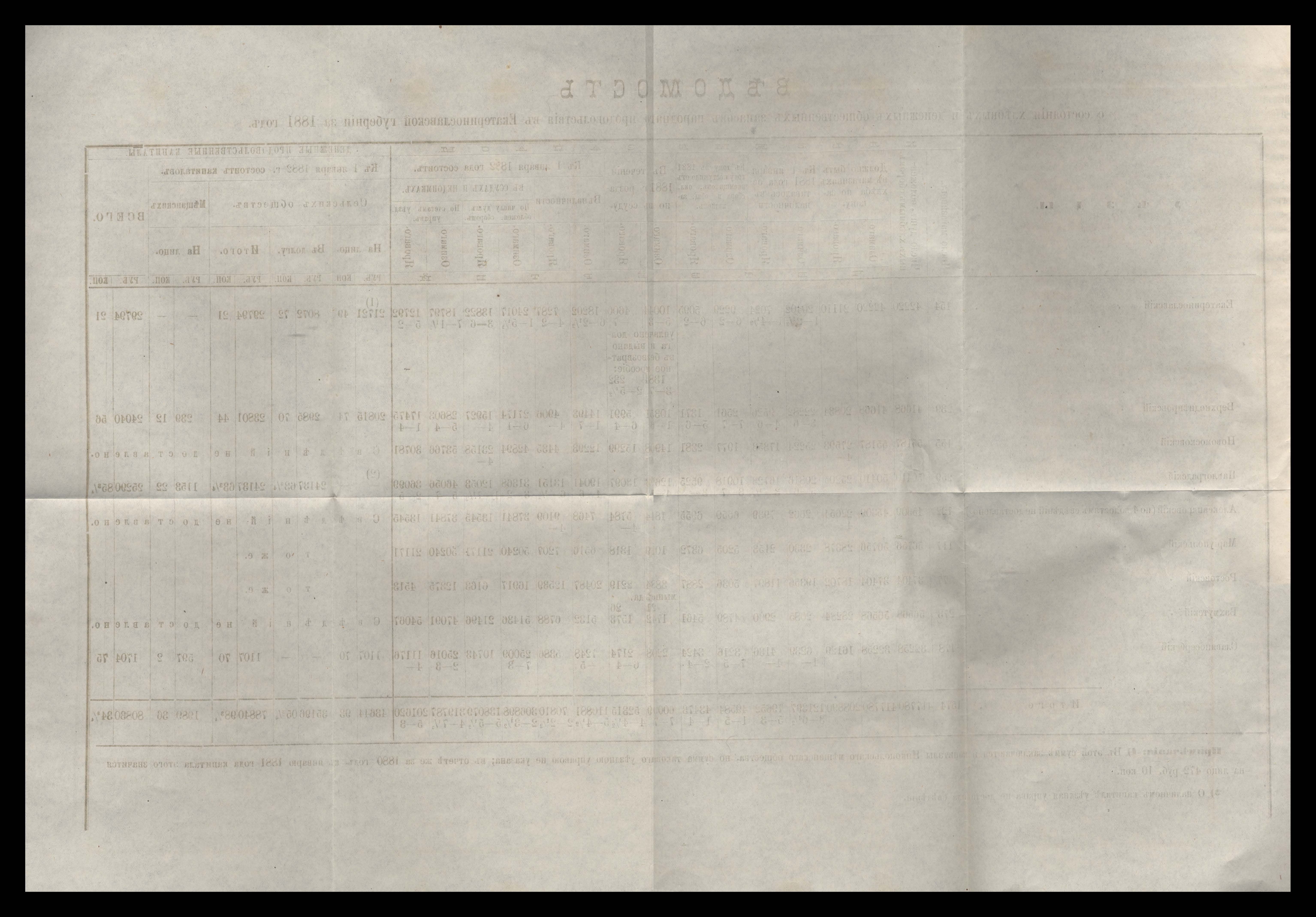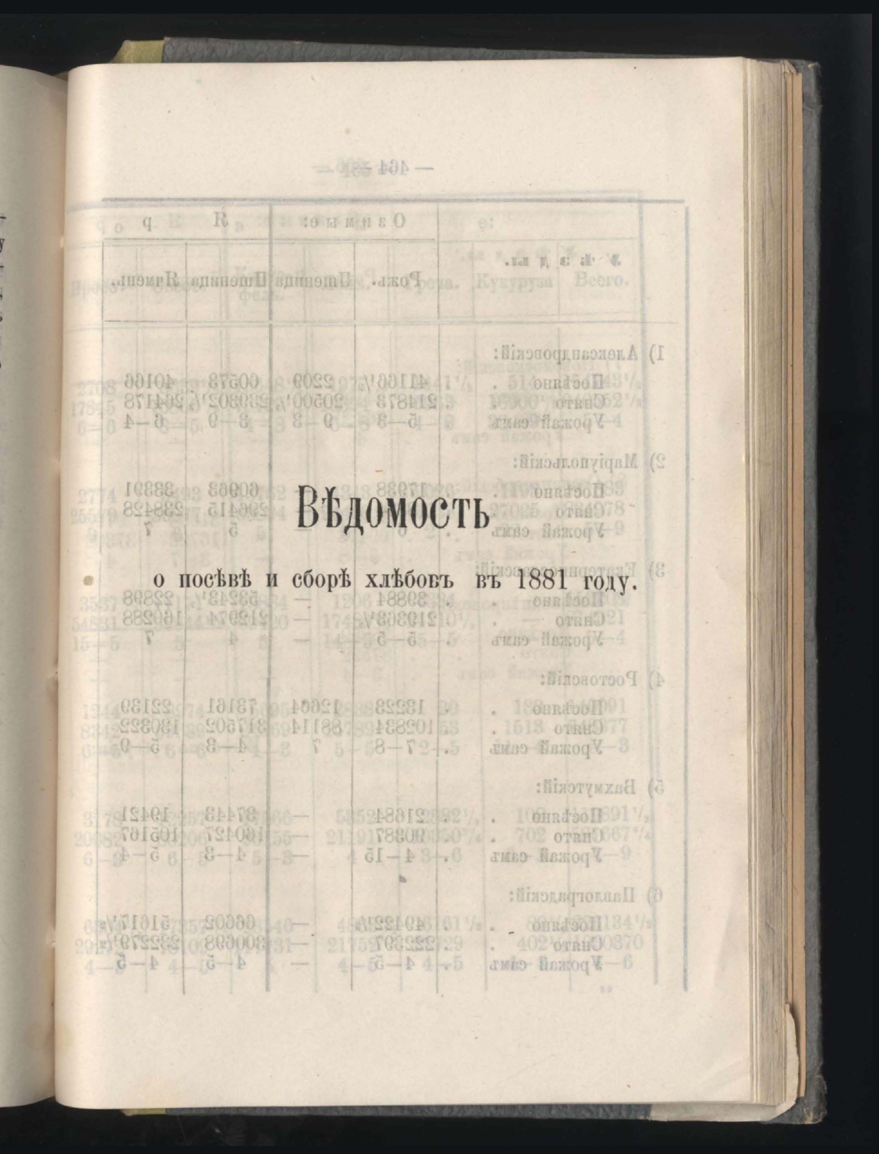 Въдомостъ о посевъ и сборъ хлебовъ въ 1881 году