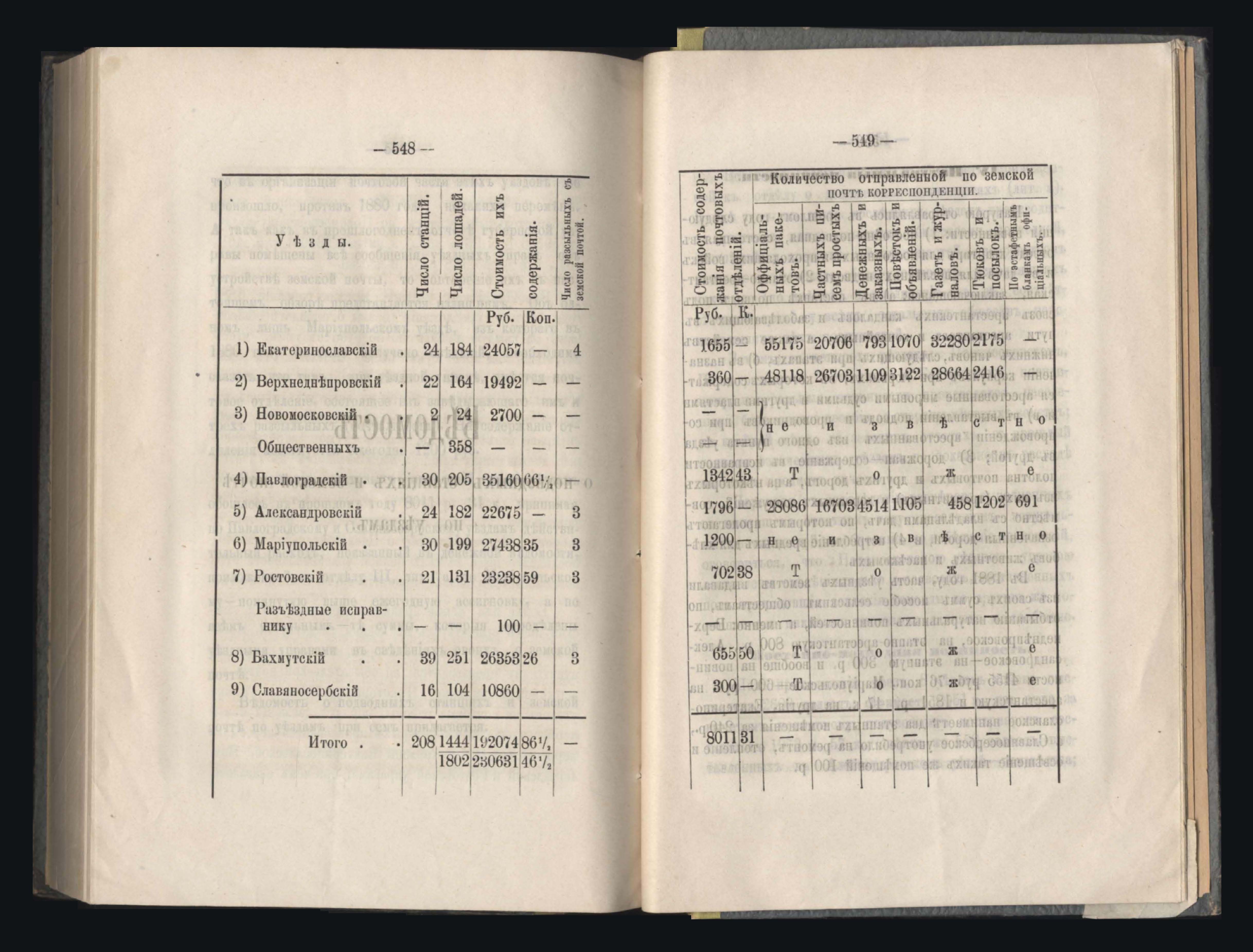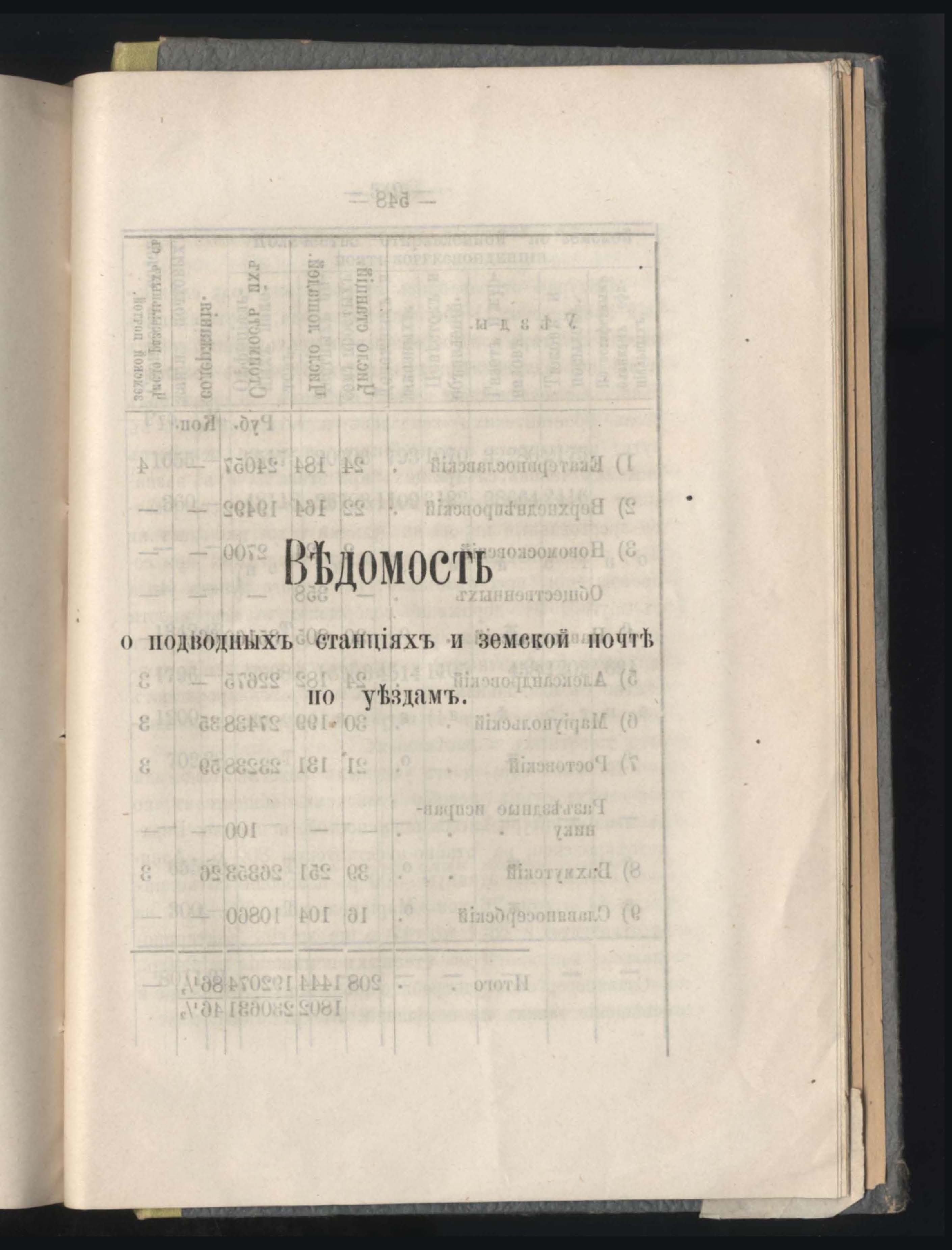 394. Въдомостъ о подводныхъ станціяхъ и земской почтъ по уездамъ