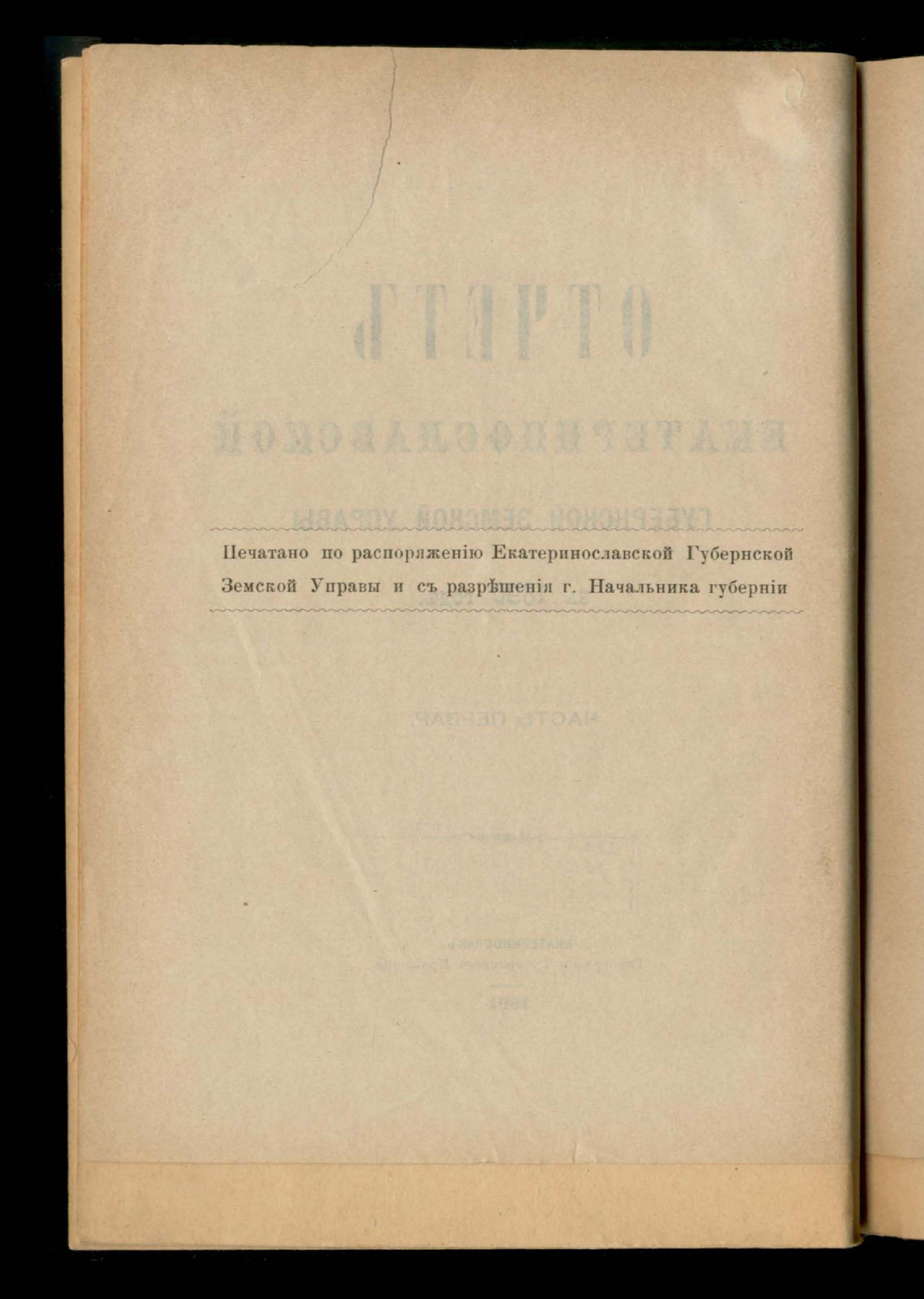 1. Отчетъ Екатеринославской Губернской Земской Управы за 1890 годъ.Часть первая