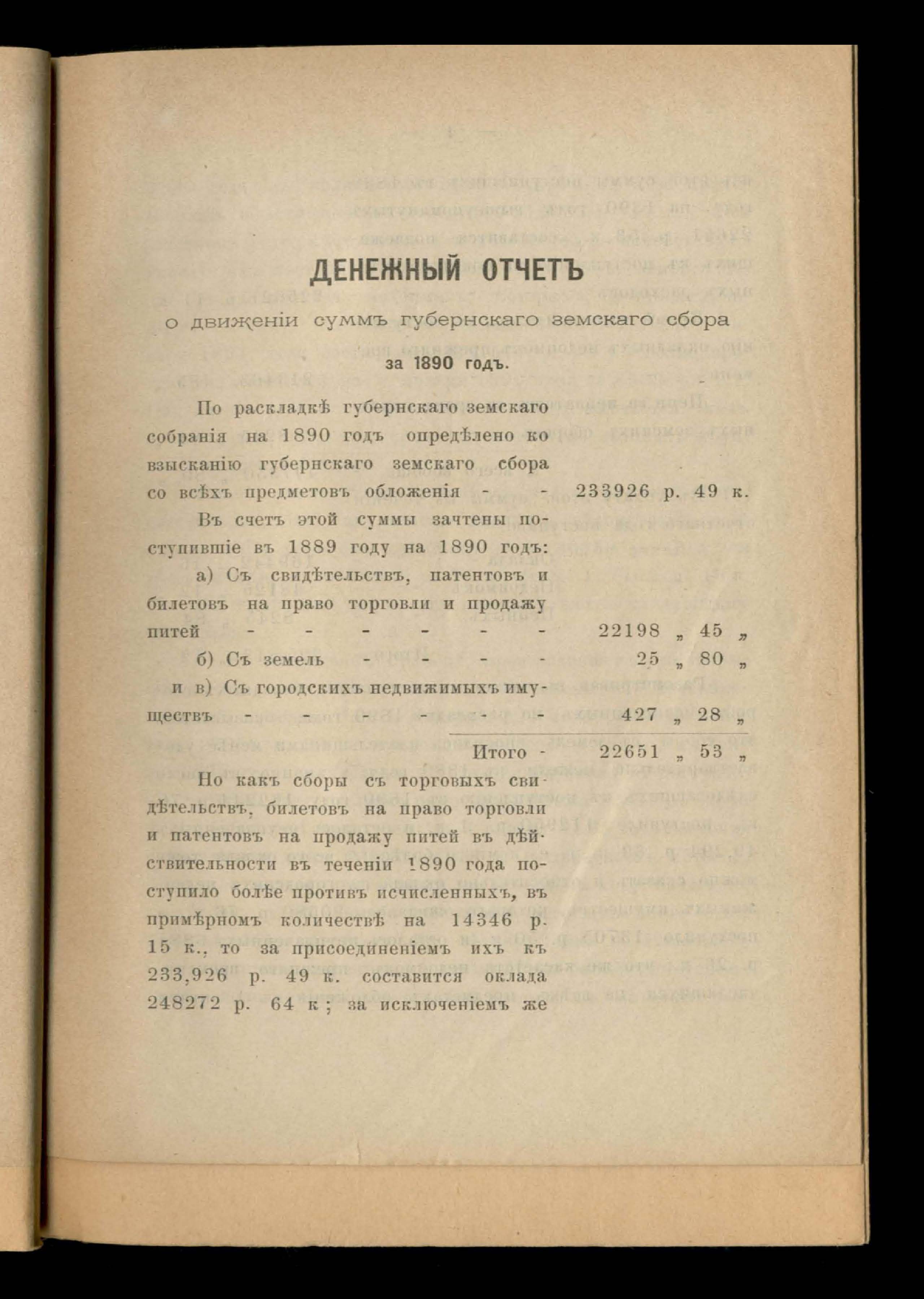 Денежный отчетъ о движеніи суммъ губернскаго земскаго сбора за 1890 годъ