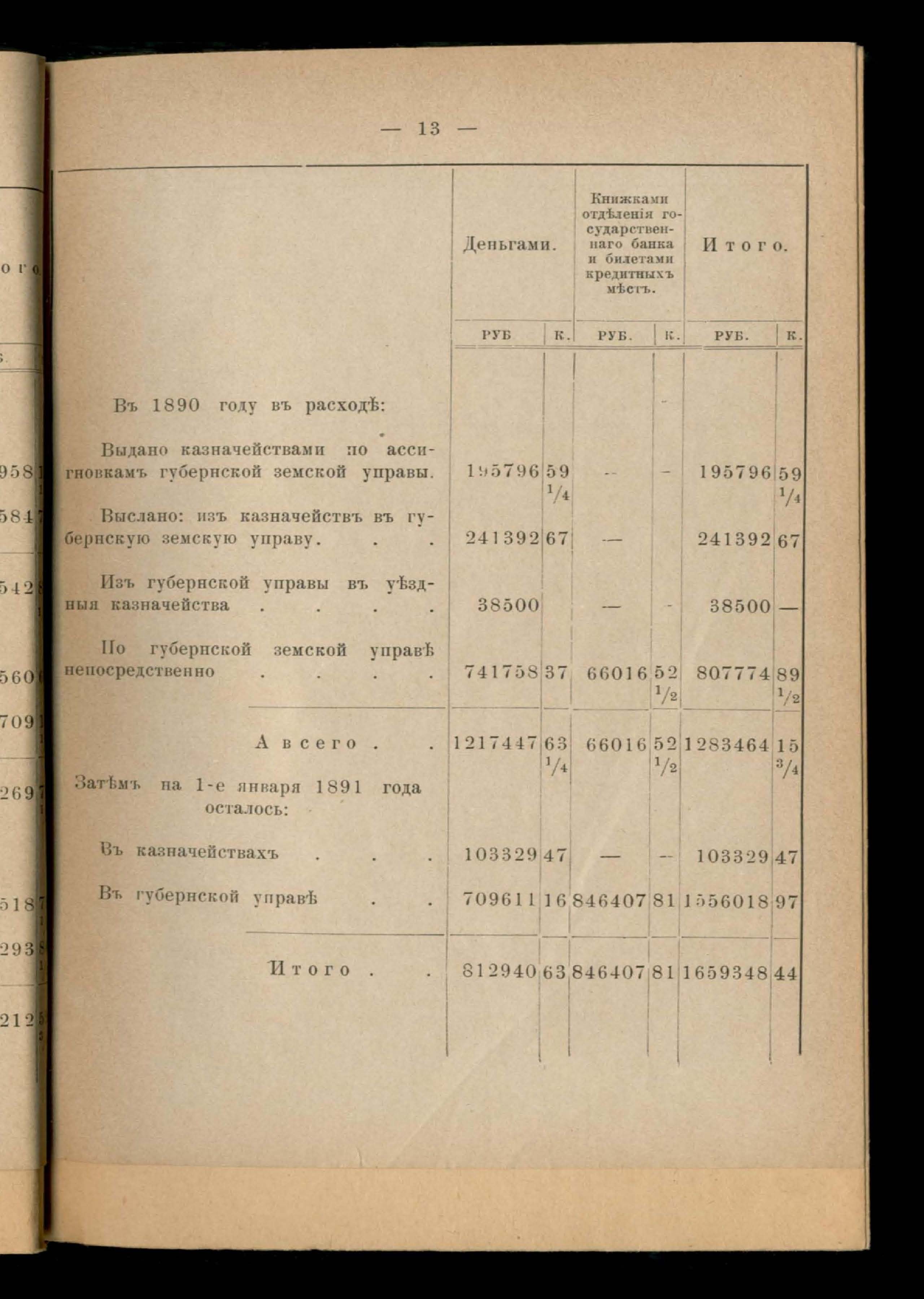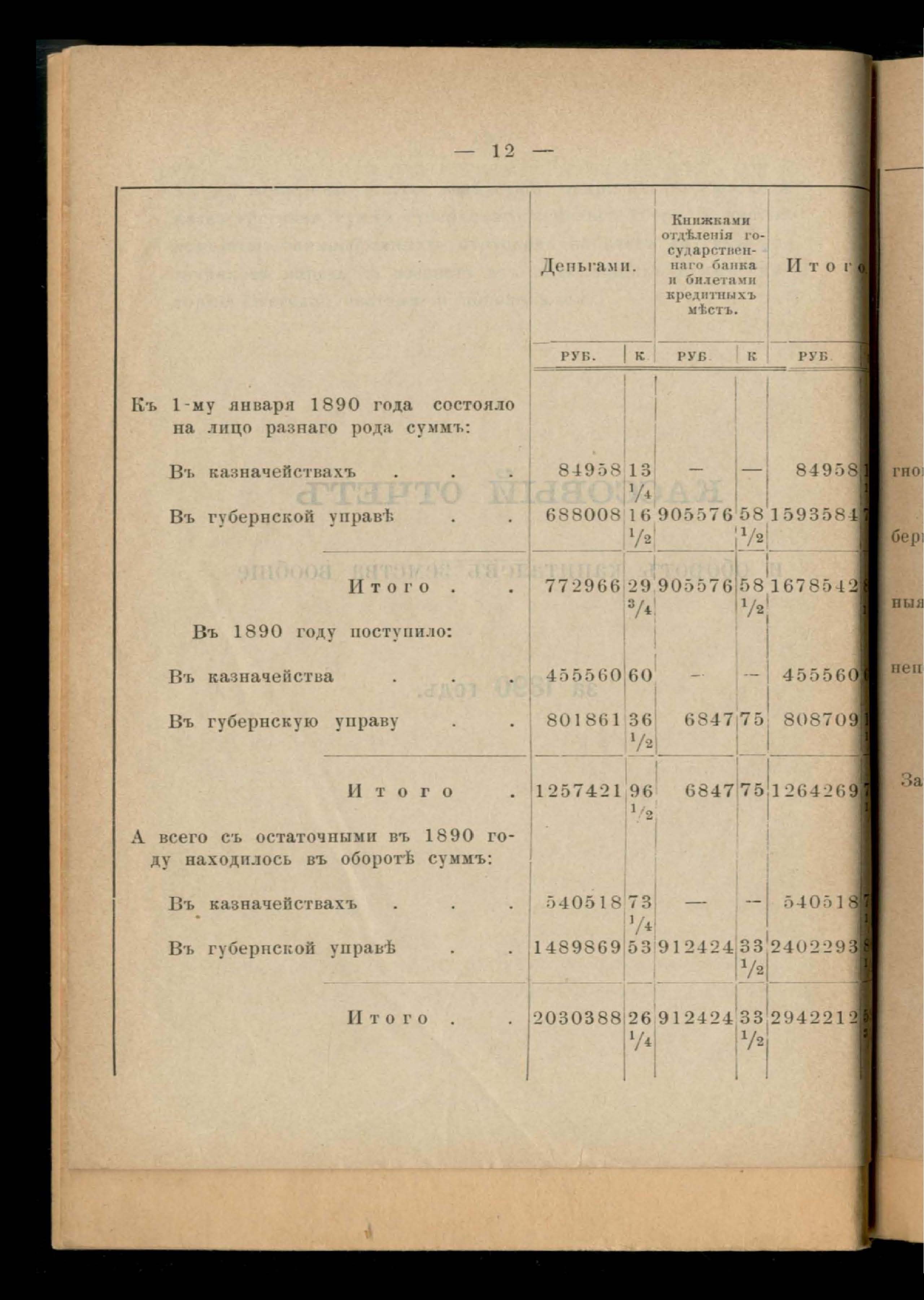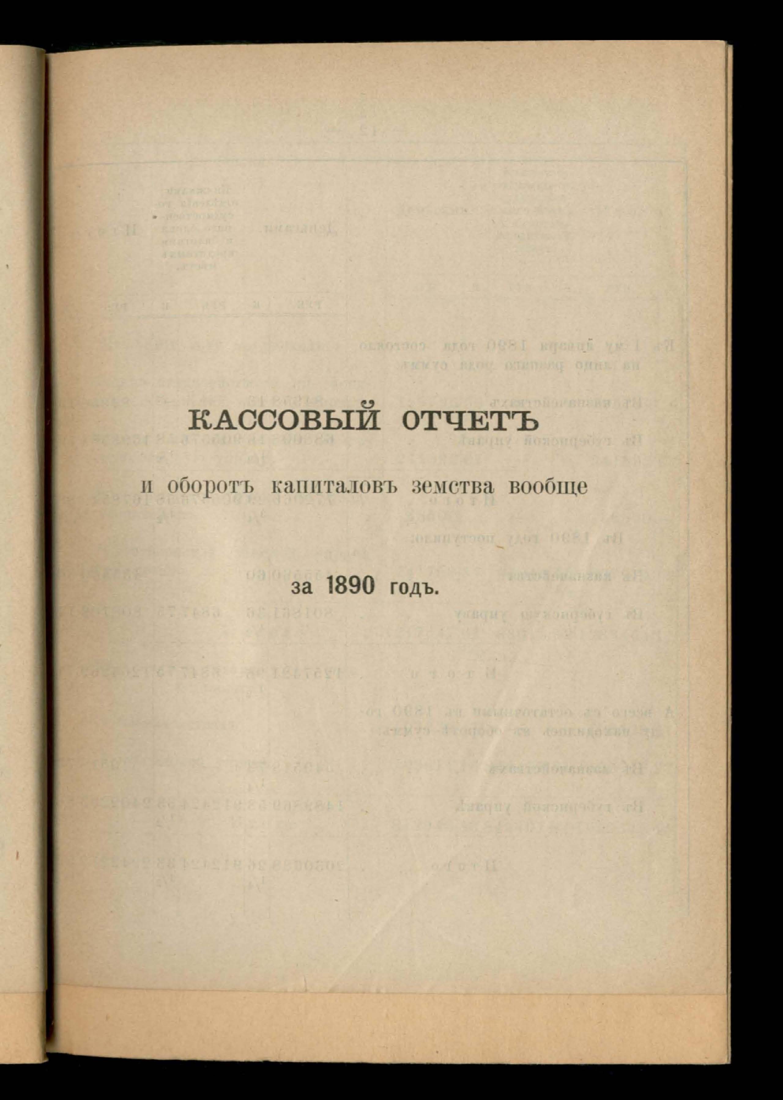 Кассовый отчетъ и оборотъ капиталовъ земства вообще за 1890 годъ