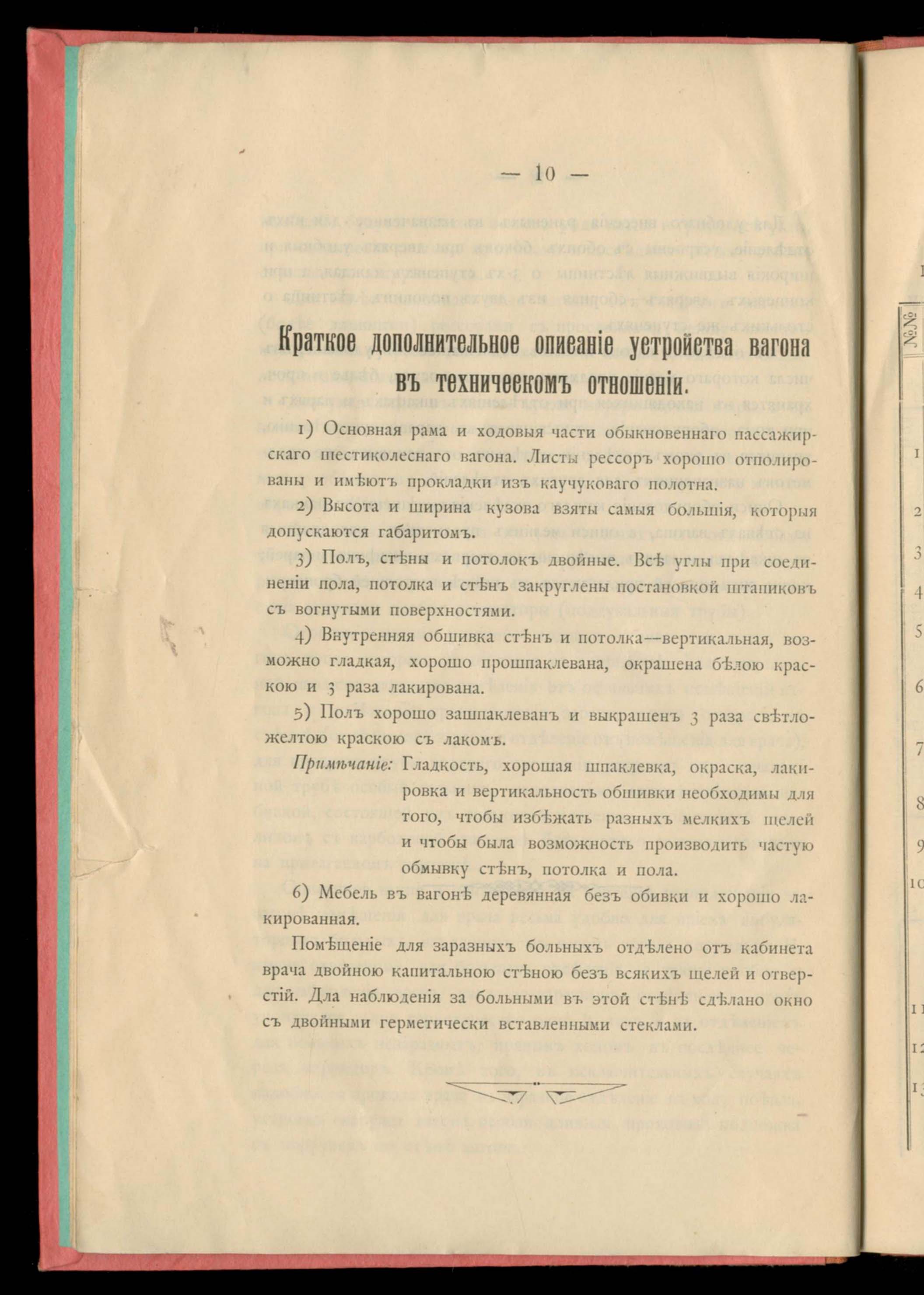 14. Короткое дополнительное описаніе устройства вагона въ техническомъ отношеніи