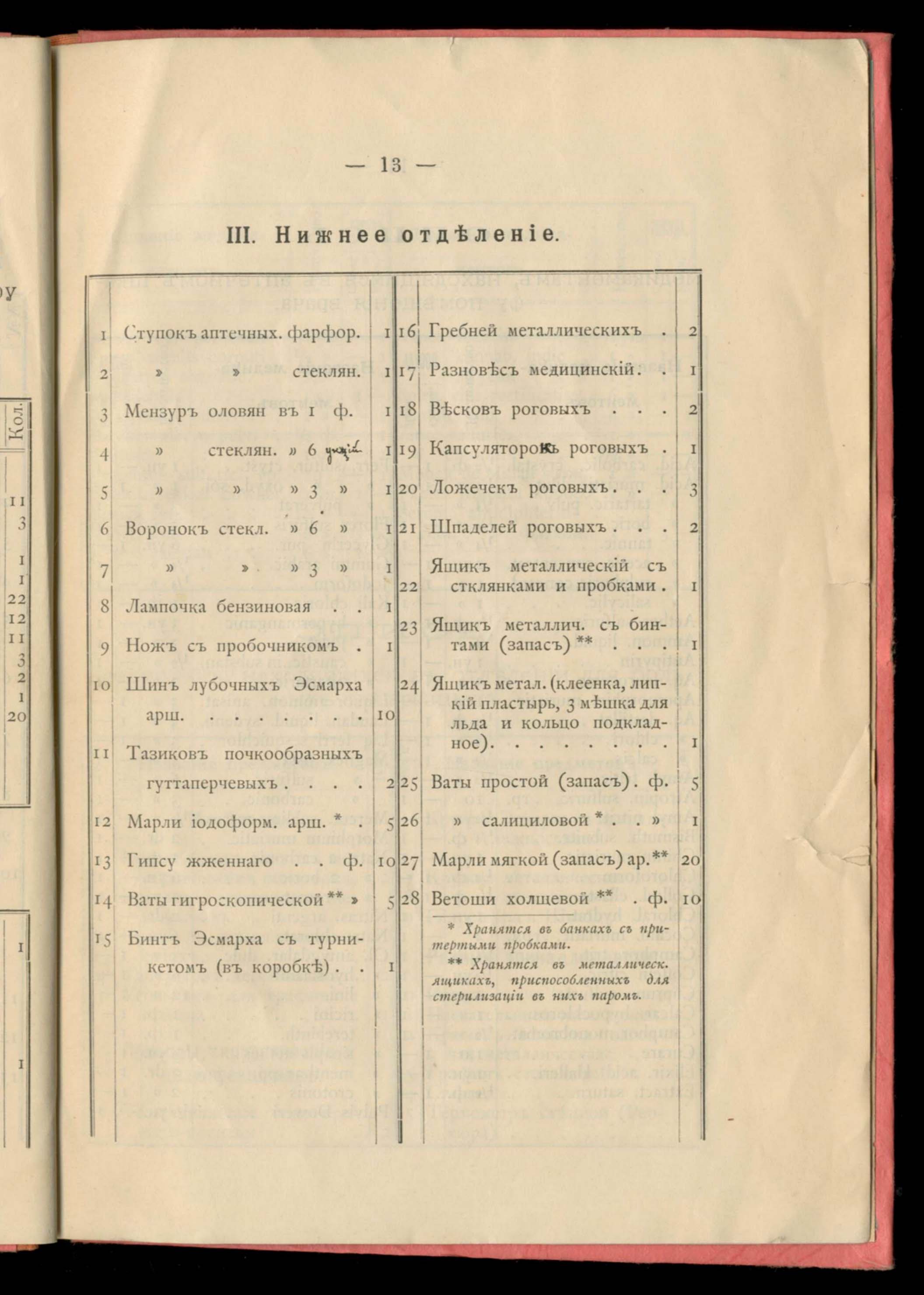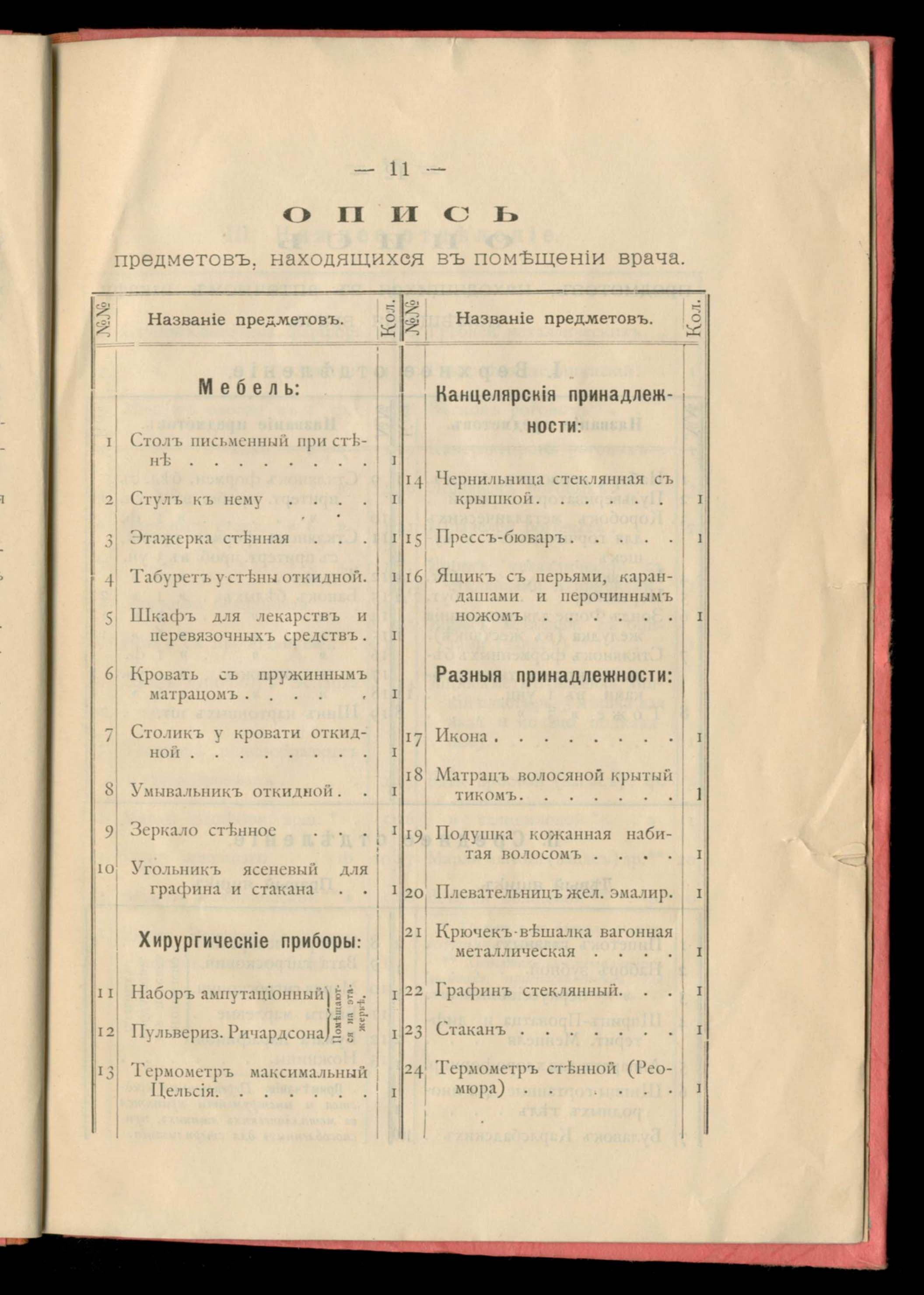 16. Опись предметовъ, находящихся въ аптечномъ шкафу помещенія врача