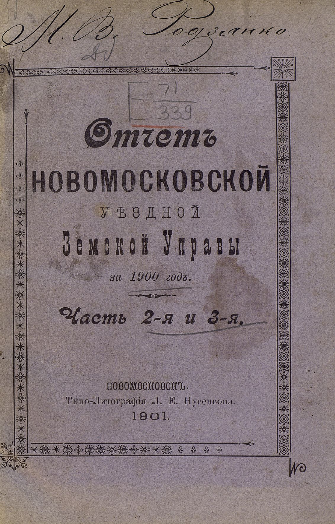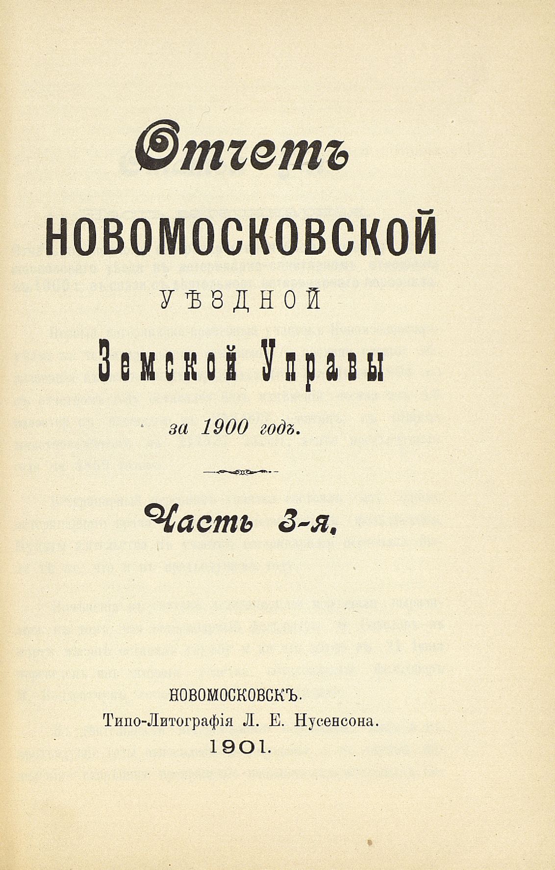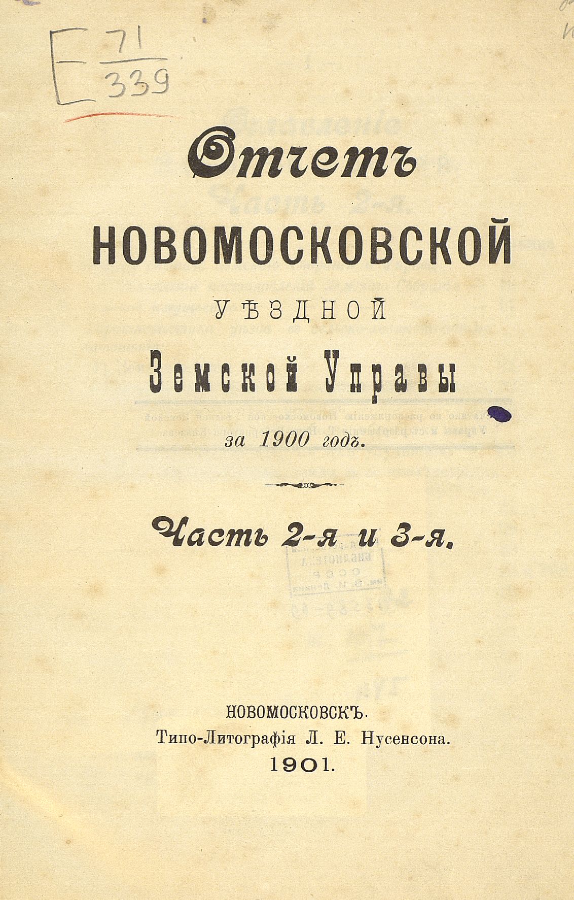 1. Отчетъ Новомосковской уъздной Земской Управы за 1900 годъ. Часть 2-я и 3-я.