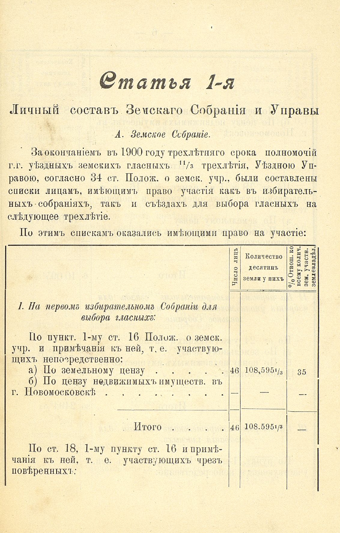 9. Статья 1-я. Личный составъ Земскаго Собранія и Управы
