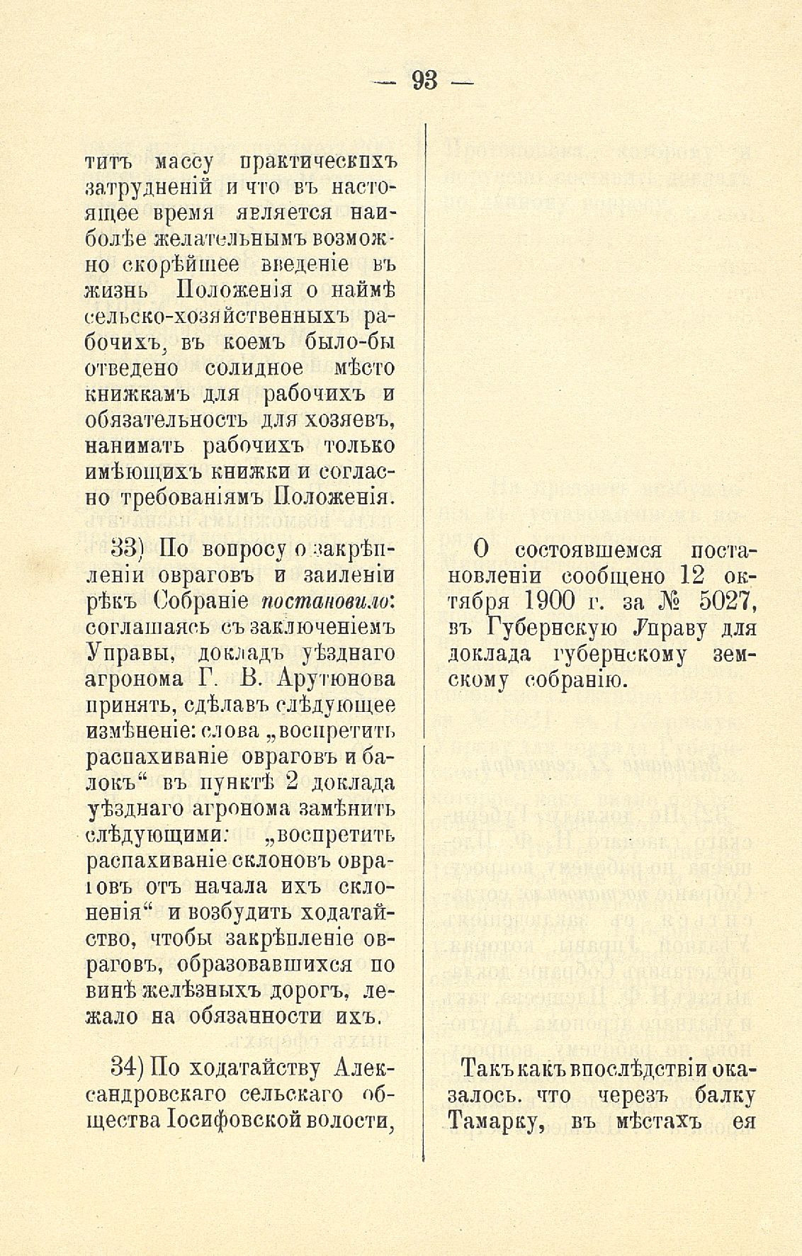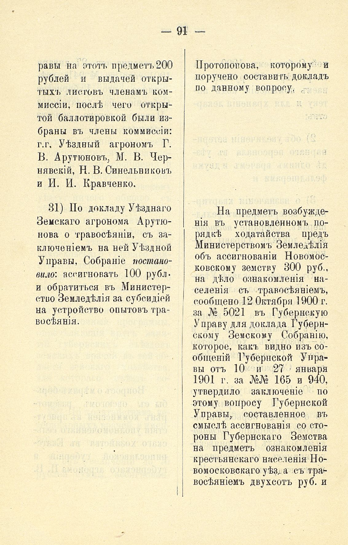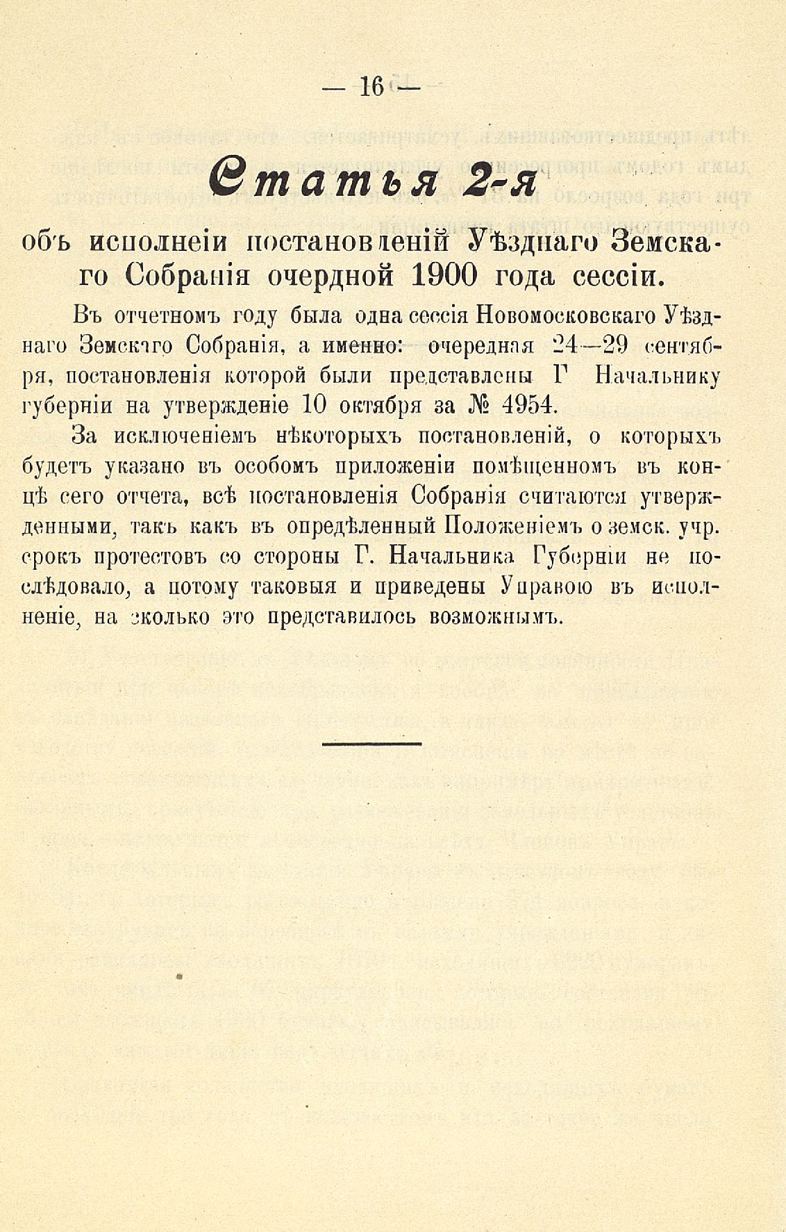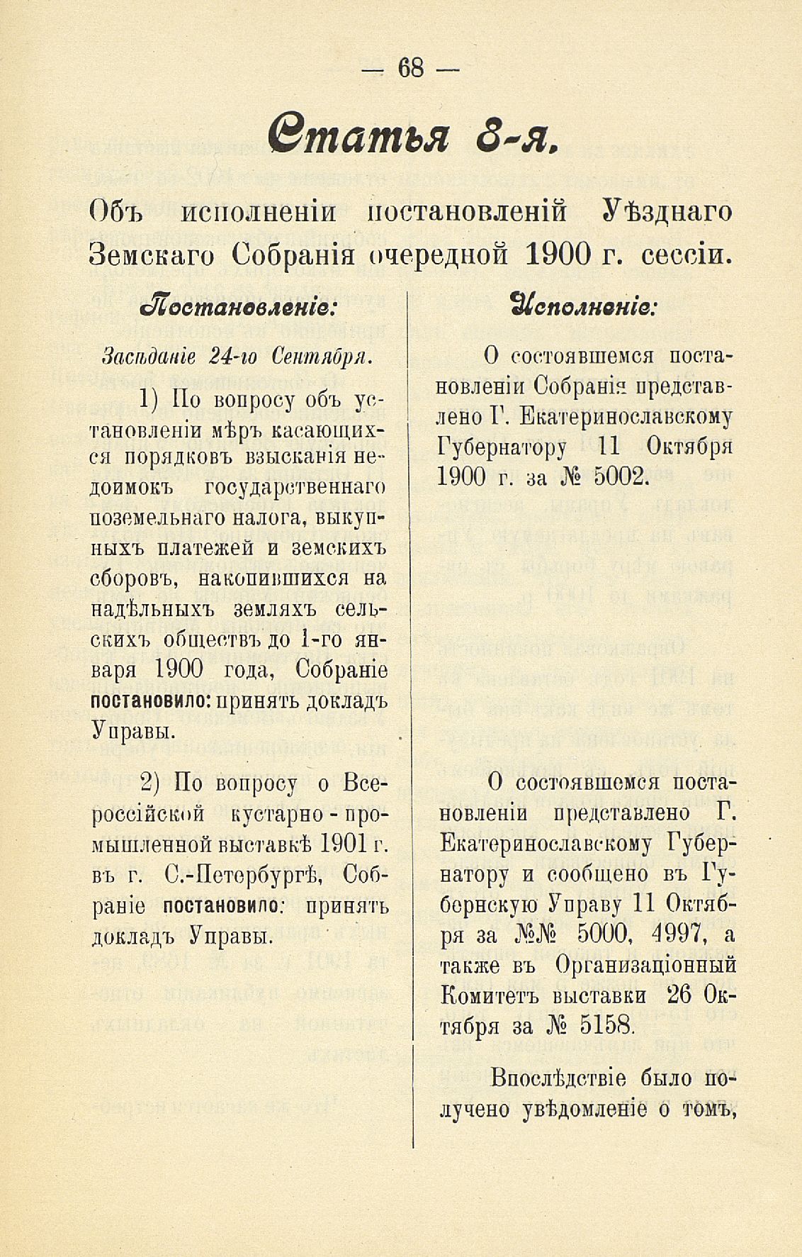 Статья 8-я. Объ исполненіи постановленій Уезднаго Земскаго Собранія очередной 1900 г. сессіи