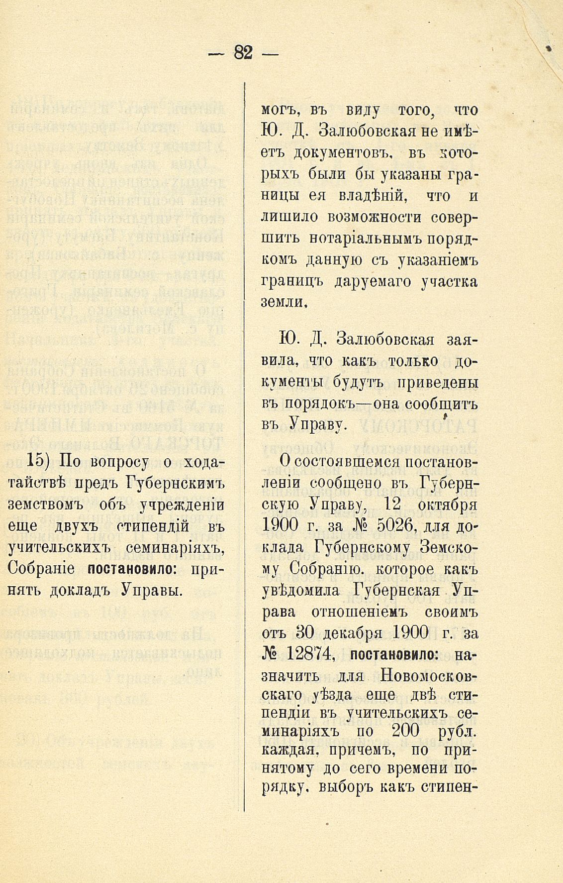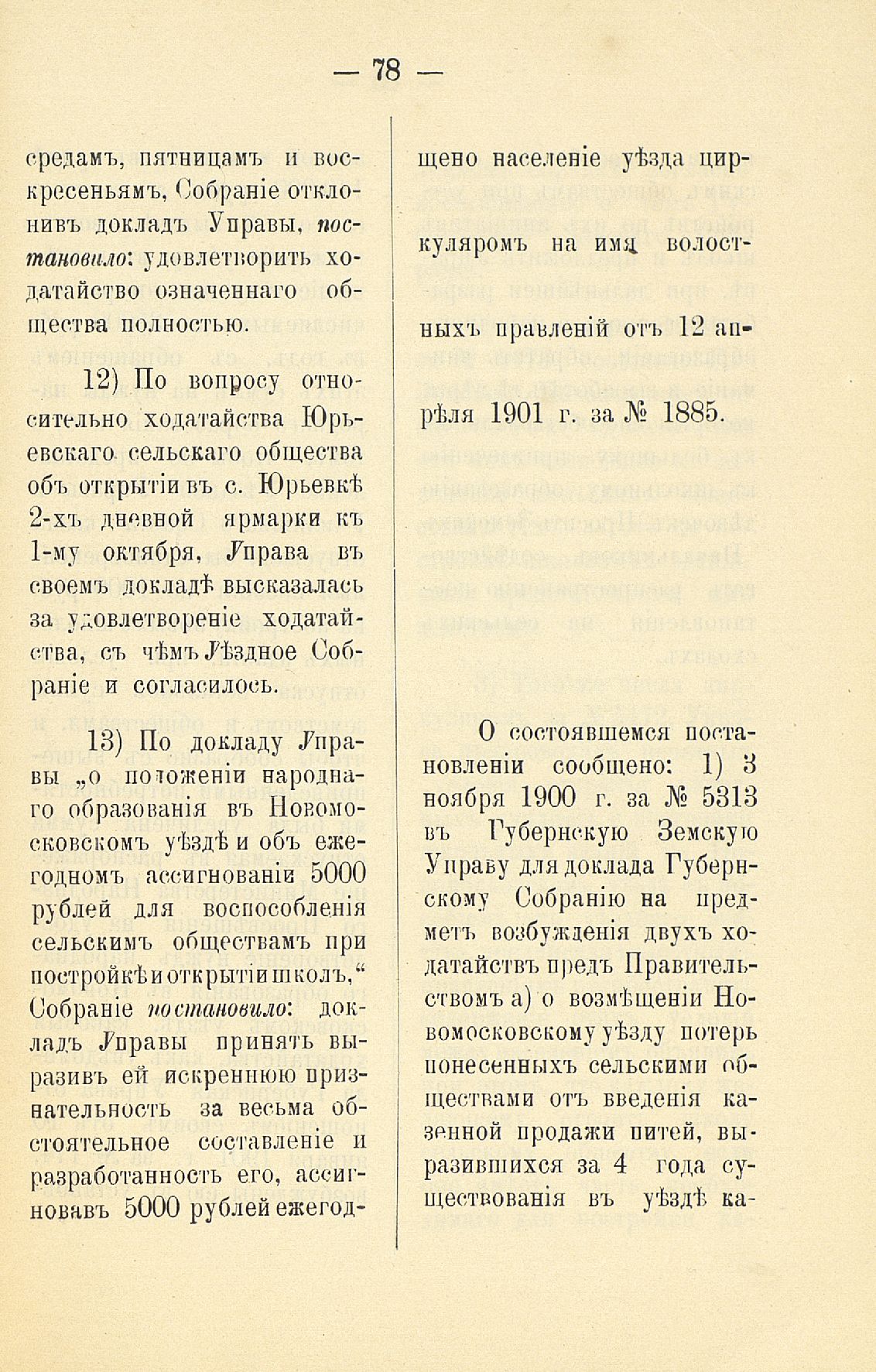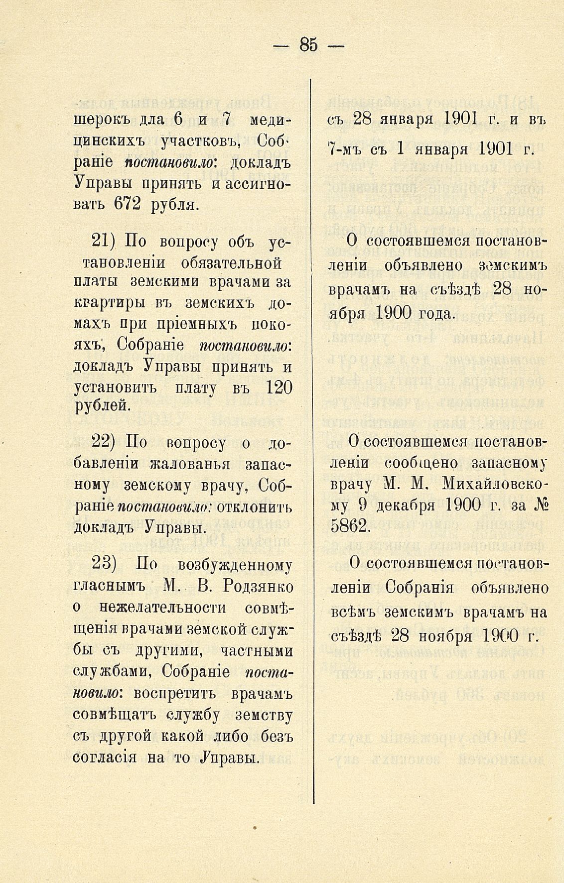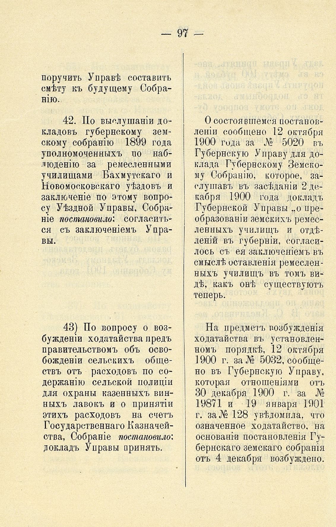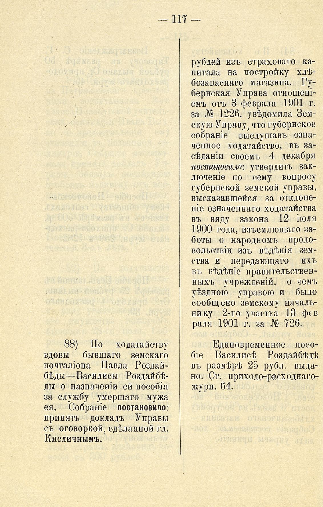 Статья 8-я. Объ исполненіи постановленій Уезднаго Земскаго Собранія очередной 1900 г. сессіи