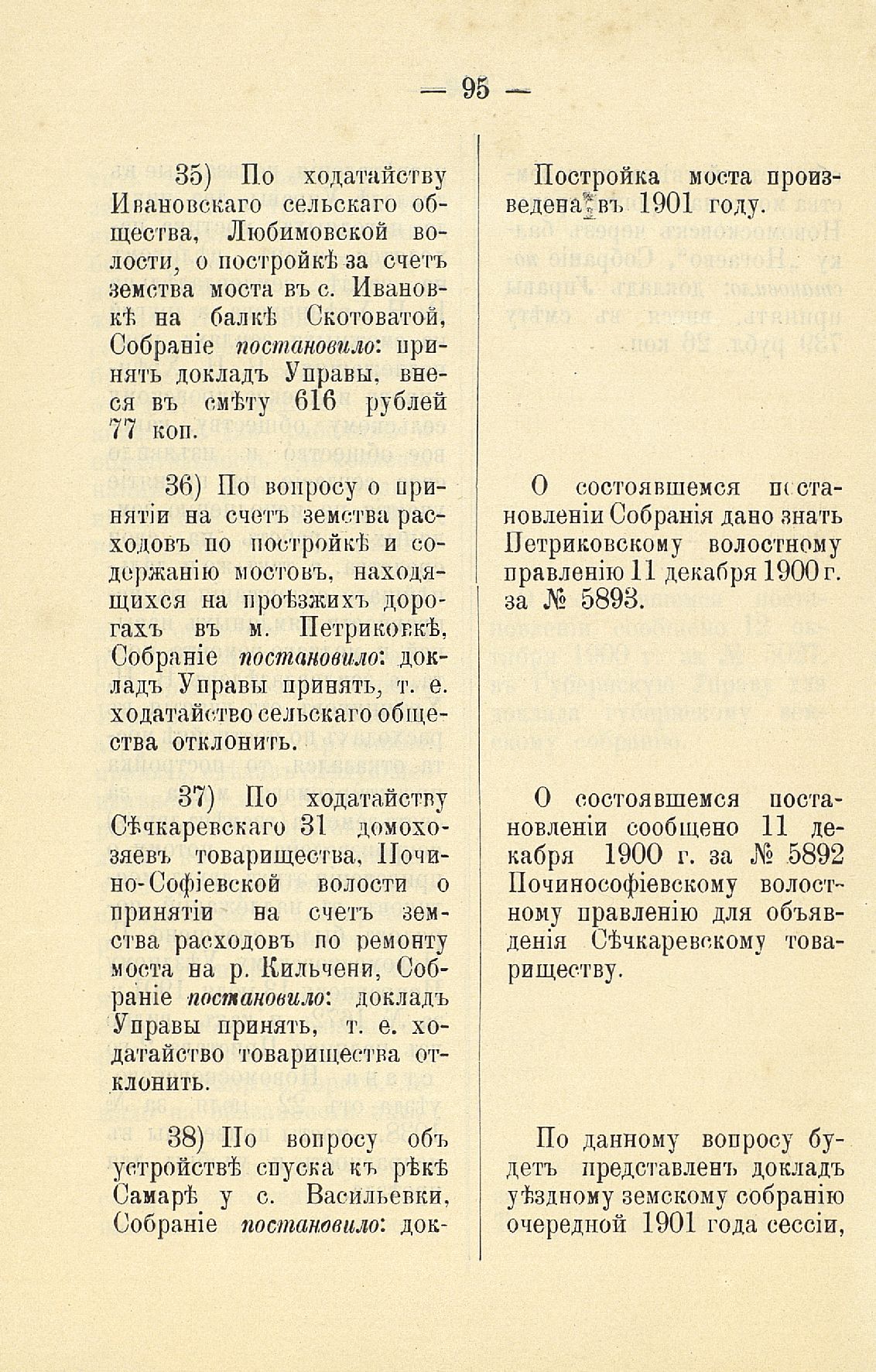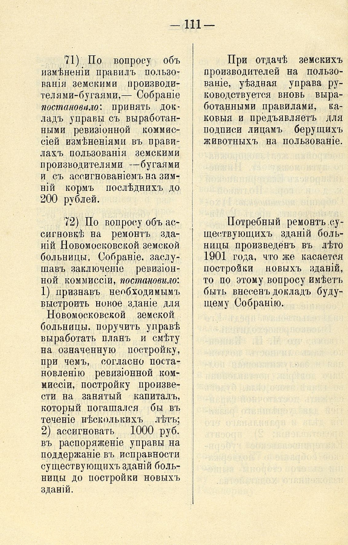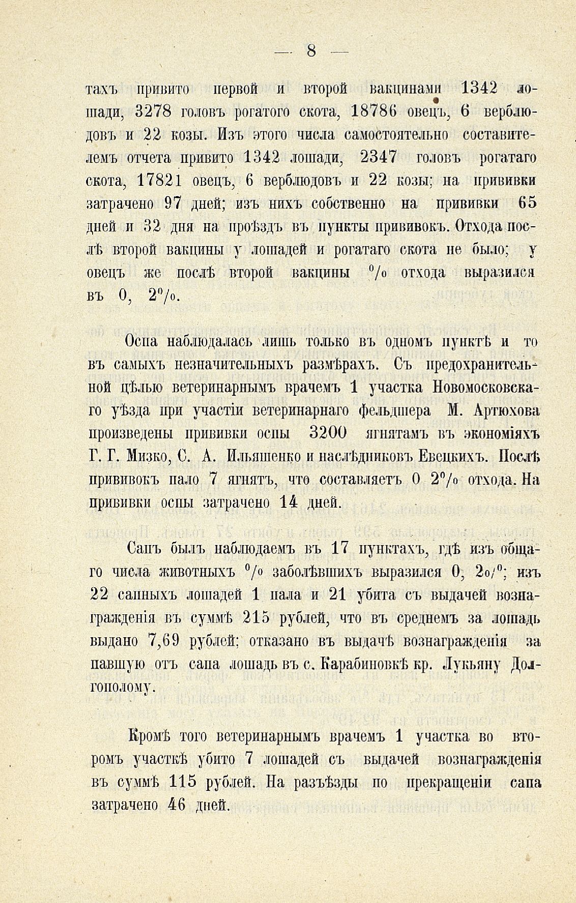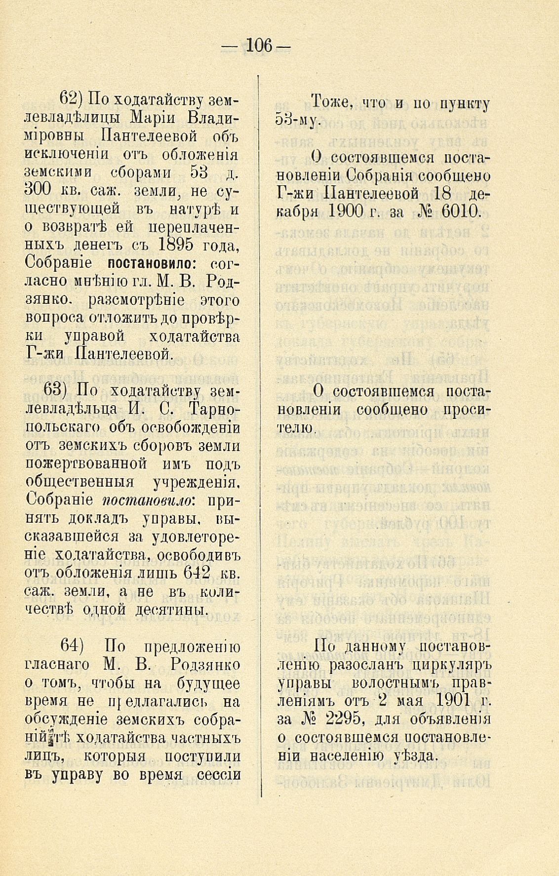 Статья 8-я. Объ исполненіи постановленій Уезднаго Земскаго Собранія очередной 1900 г. сессіи