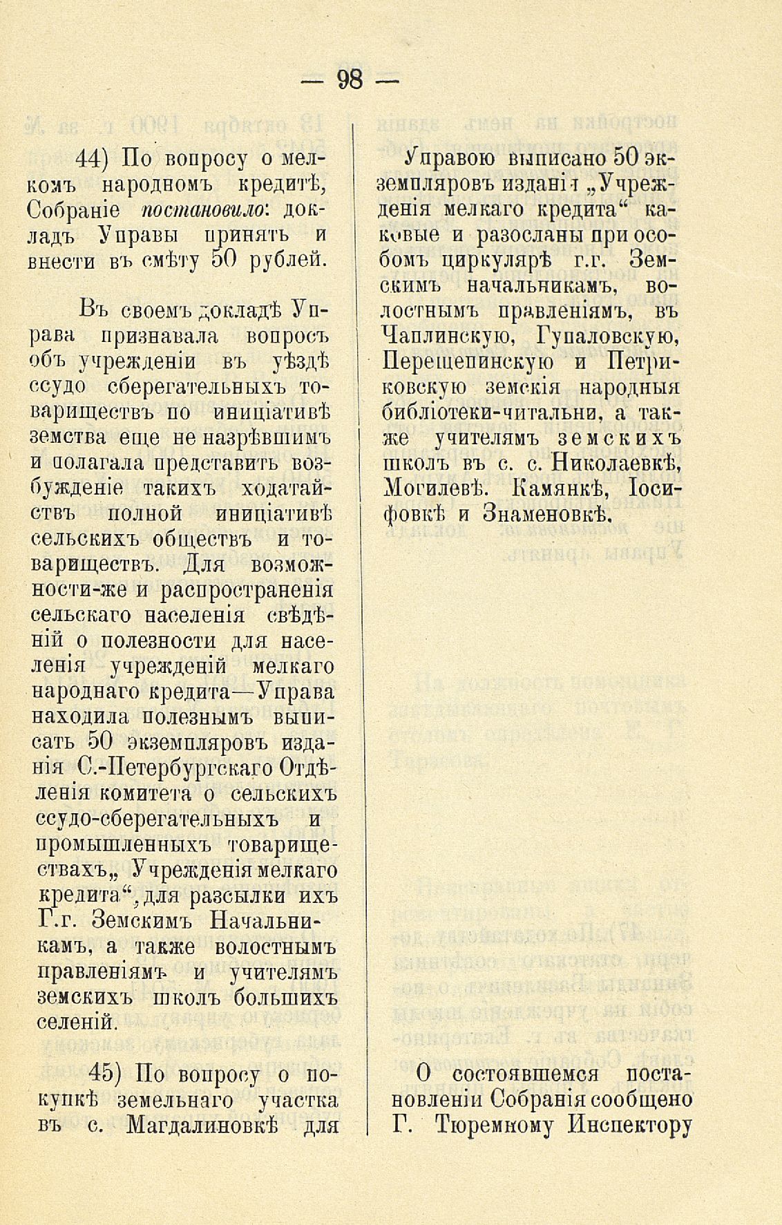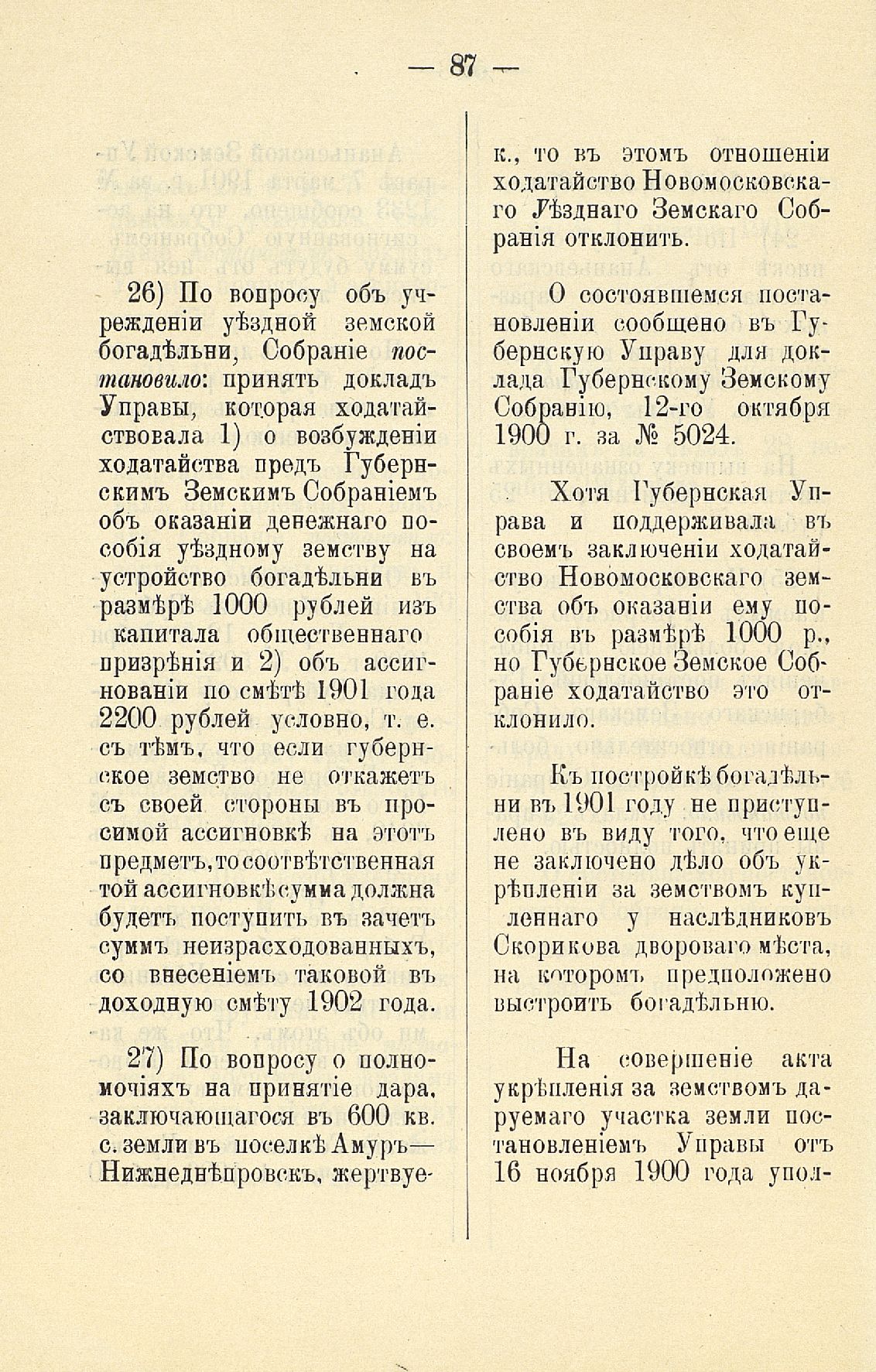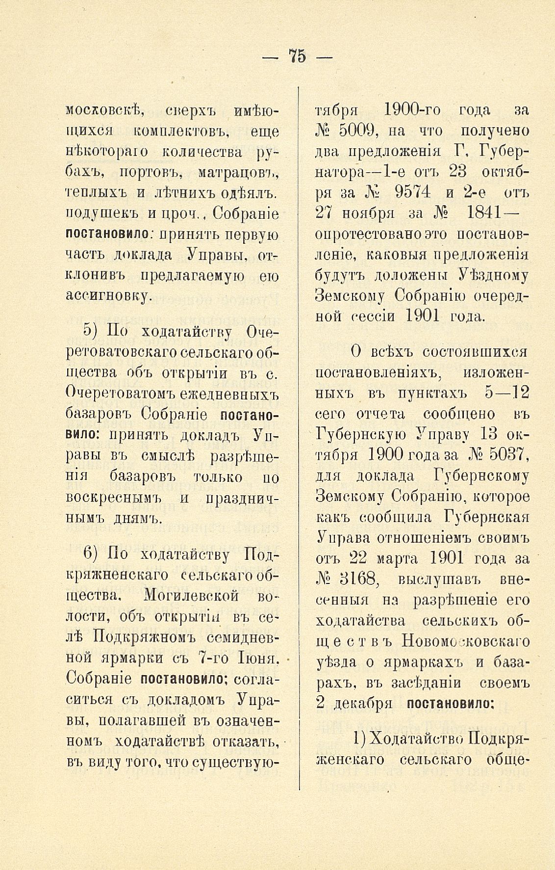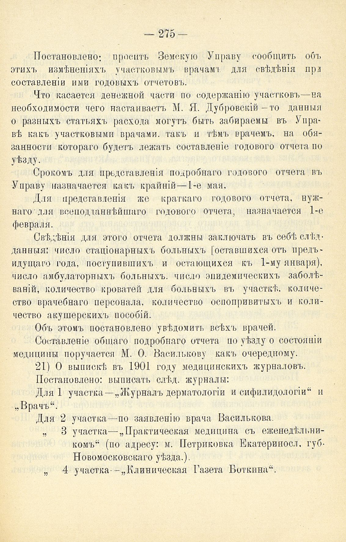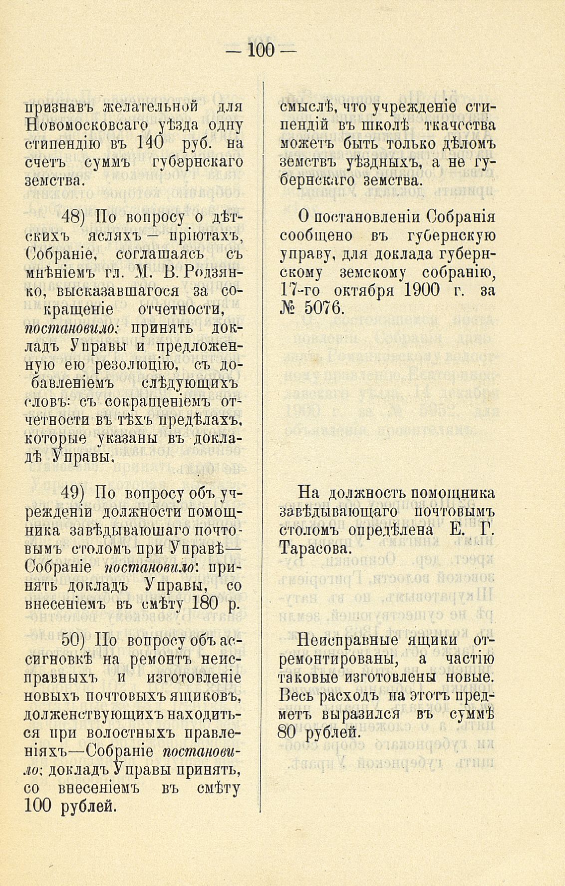 Статья 8-я. Объ исполненіи постановленій Уезднаго Земскаго Собранія очередной 1900 г. сессіи