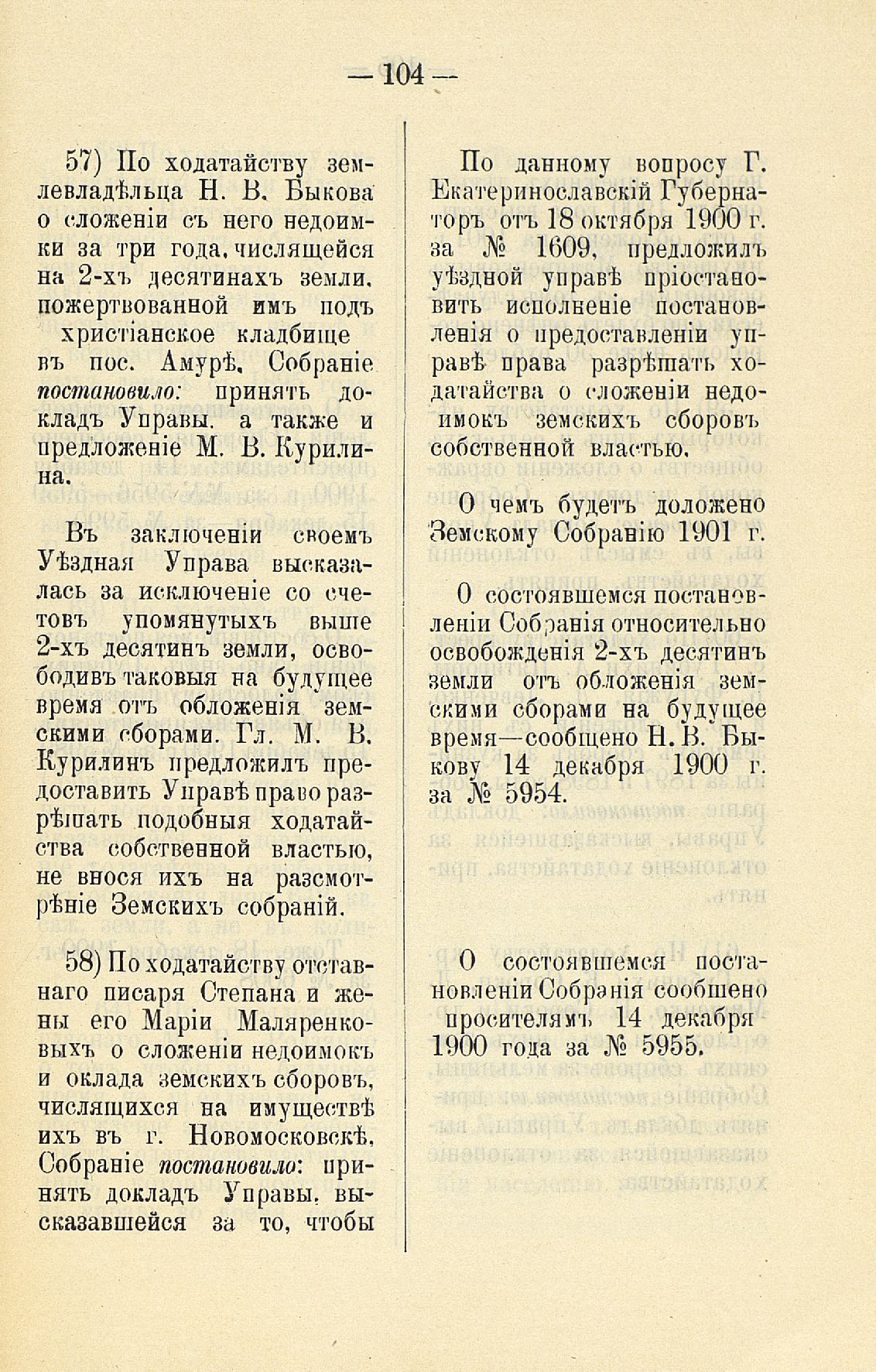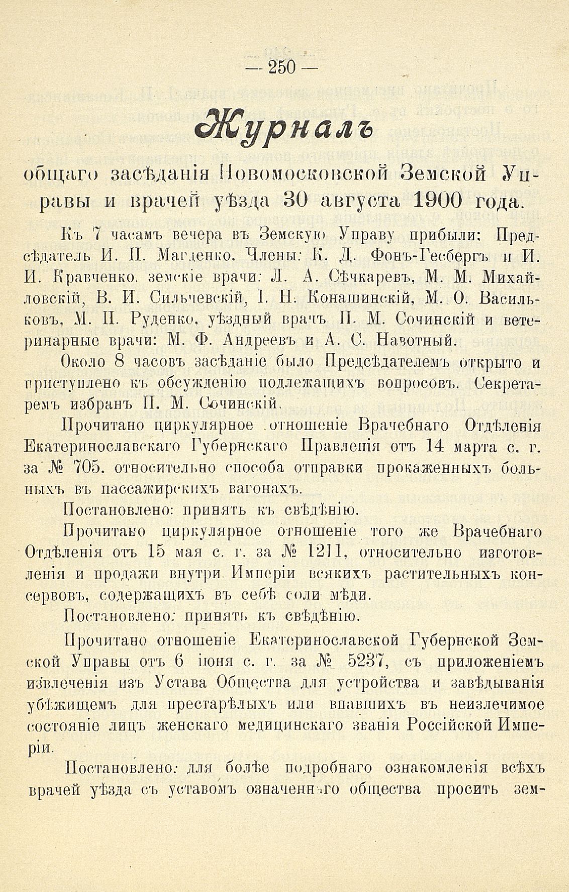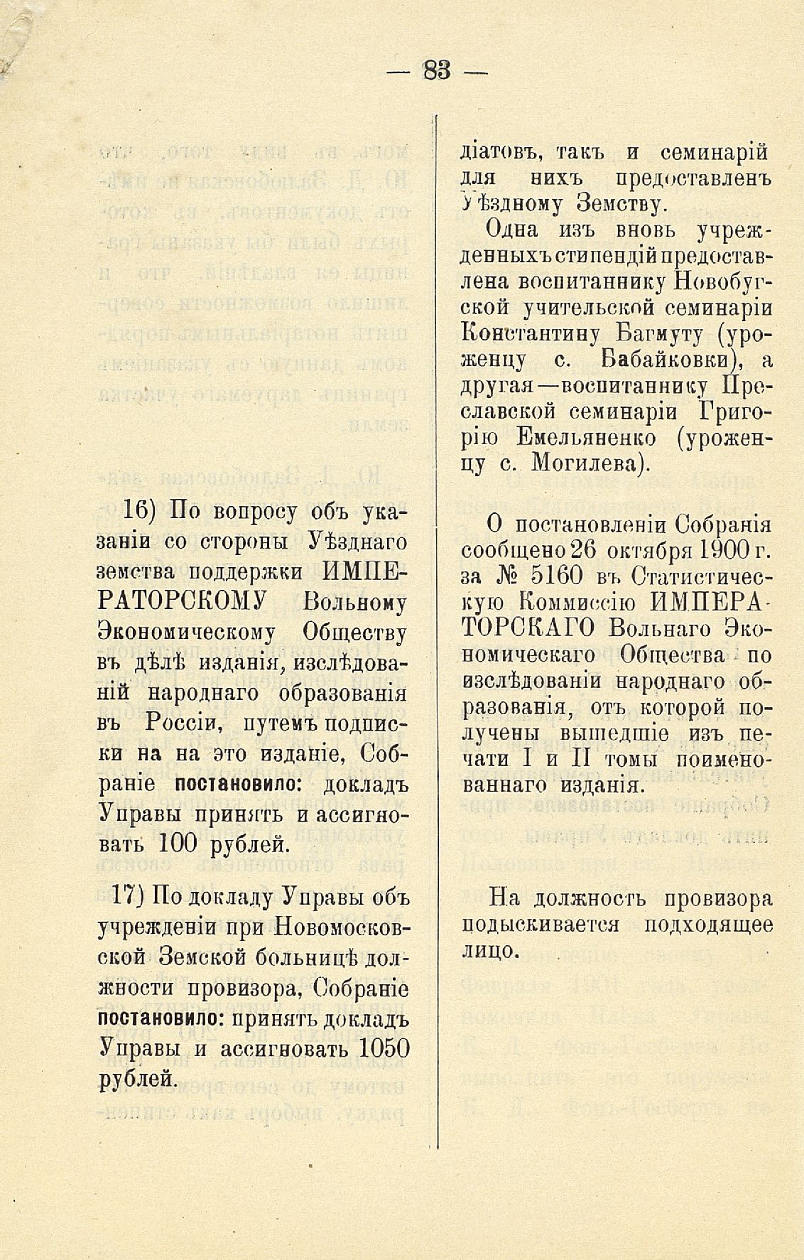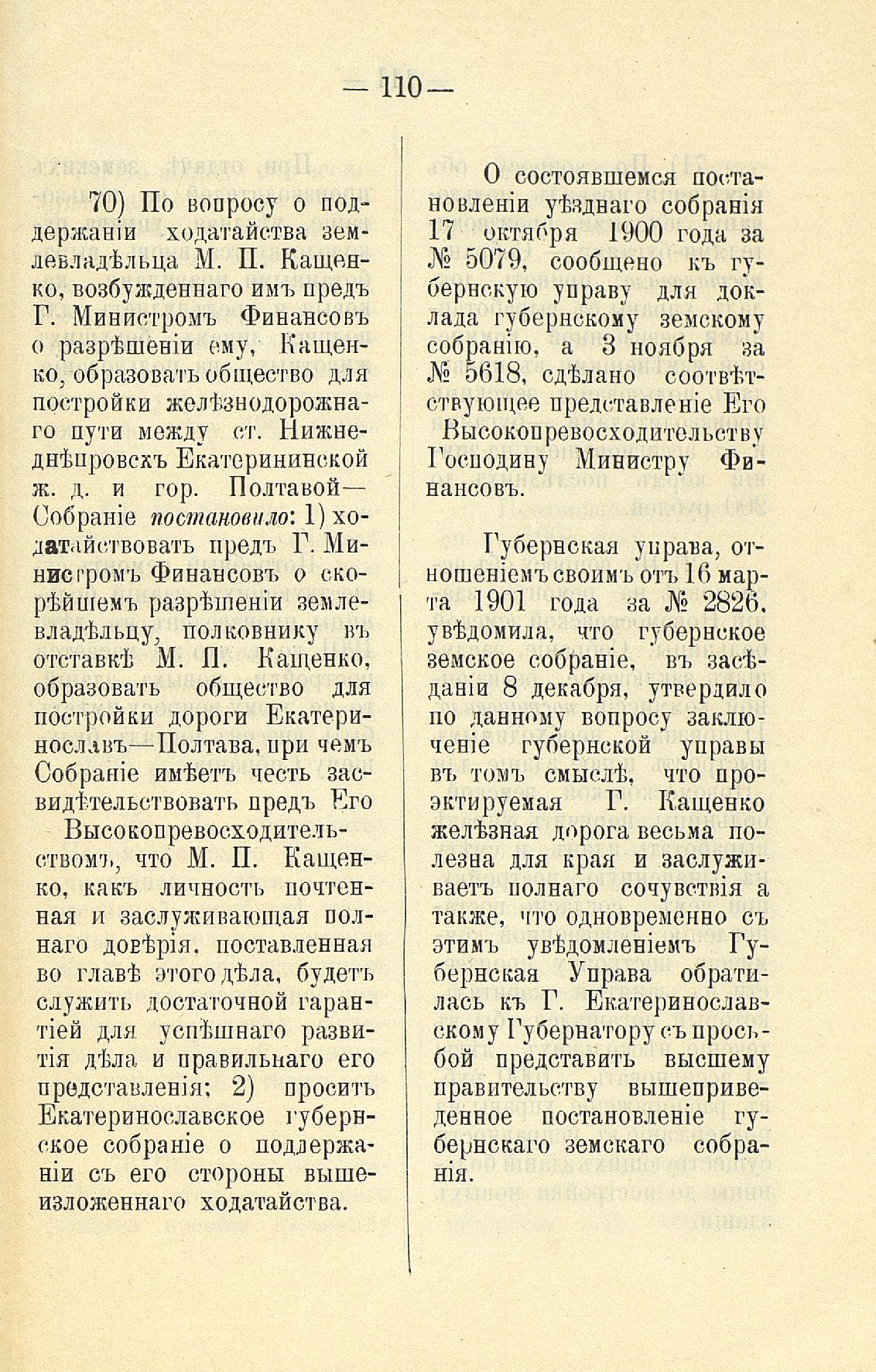 Статья 8-я. Объ исполненіи постановленій Уезднаго Земскаго Собранія очередной 1900 г. сессіи