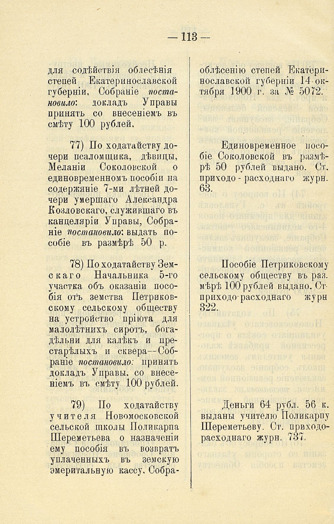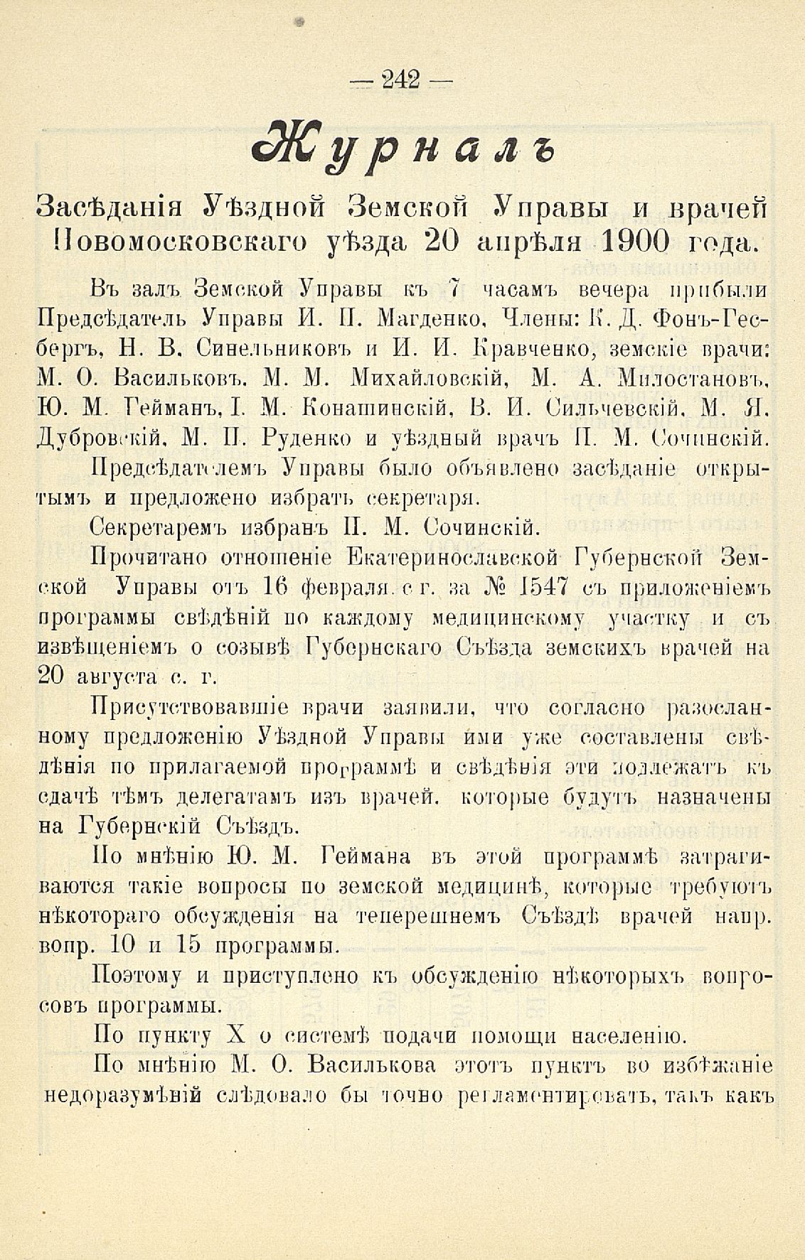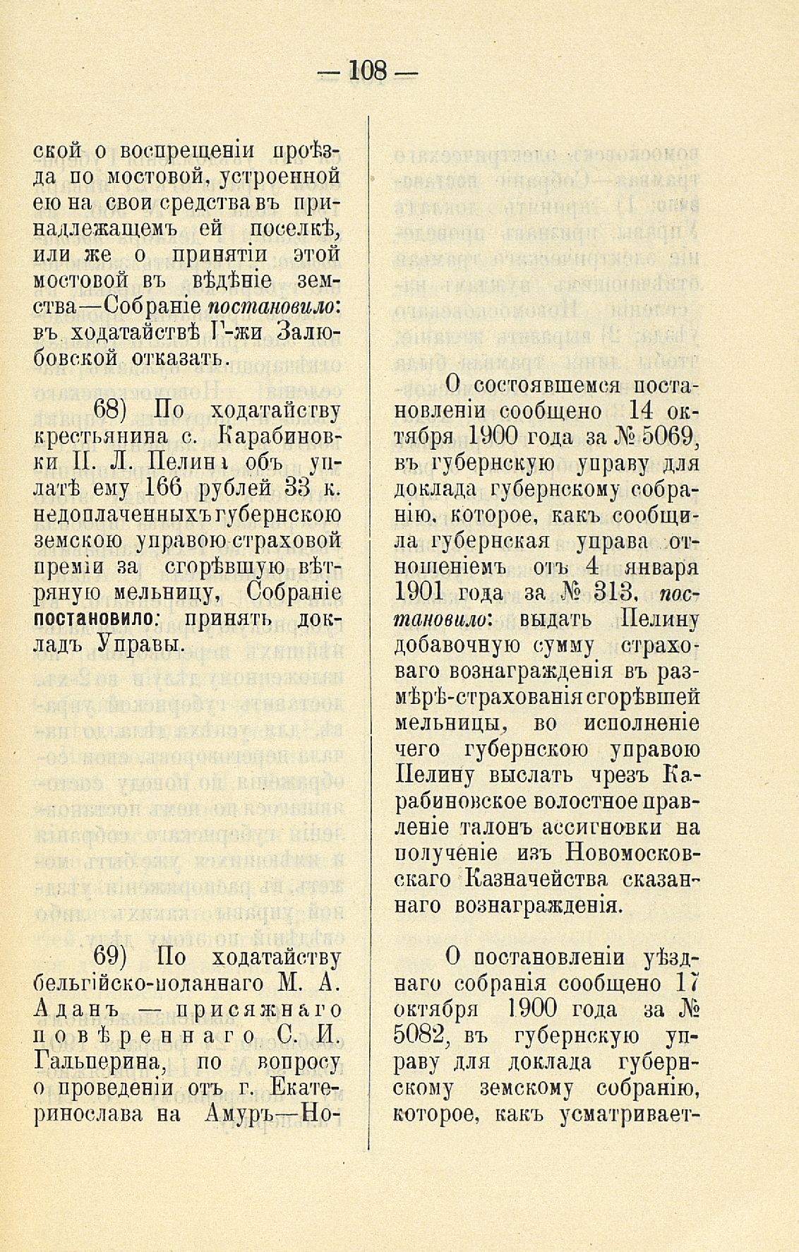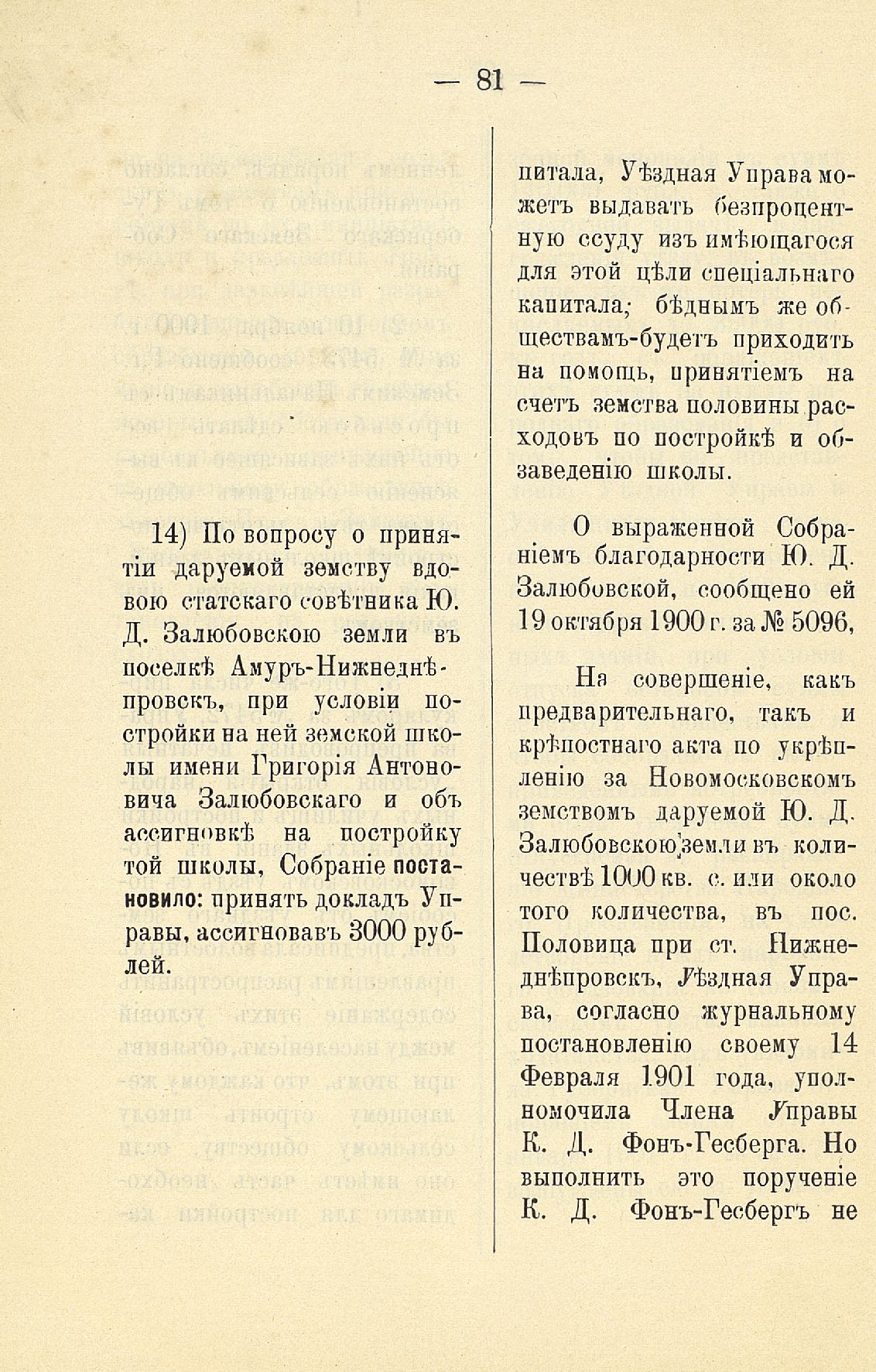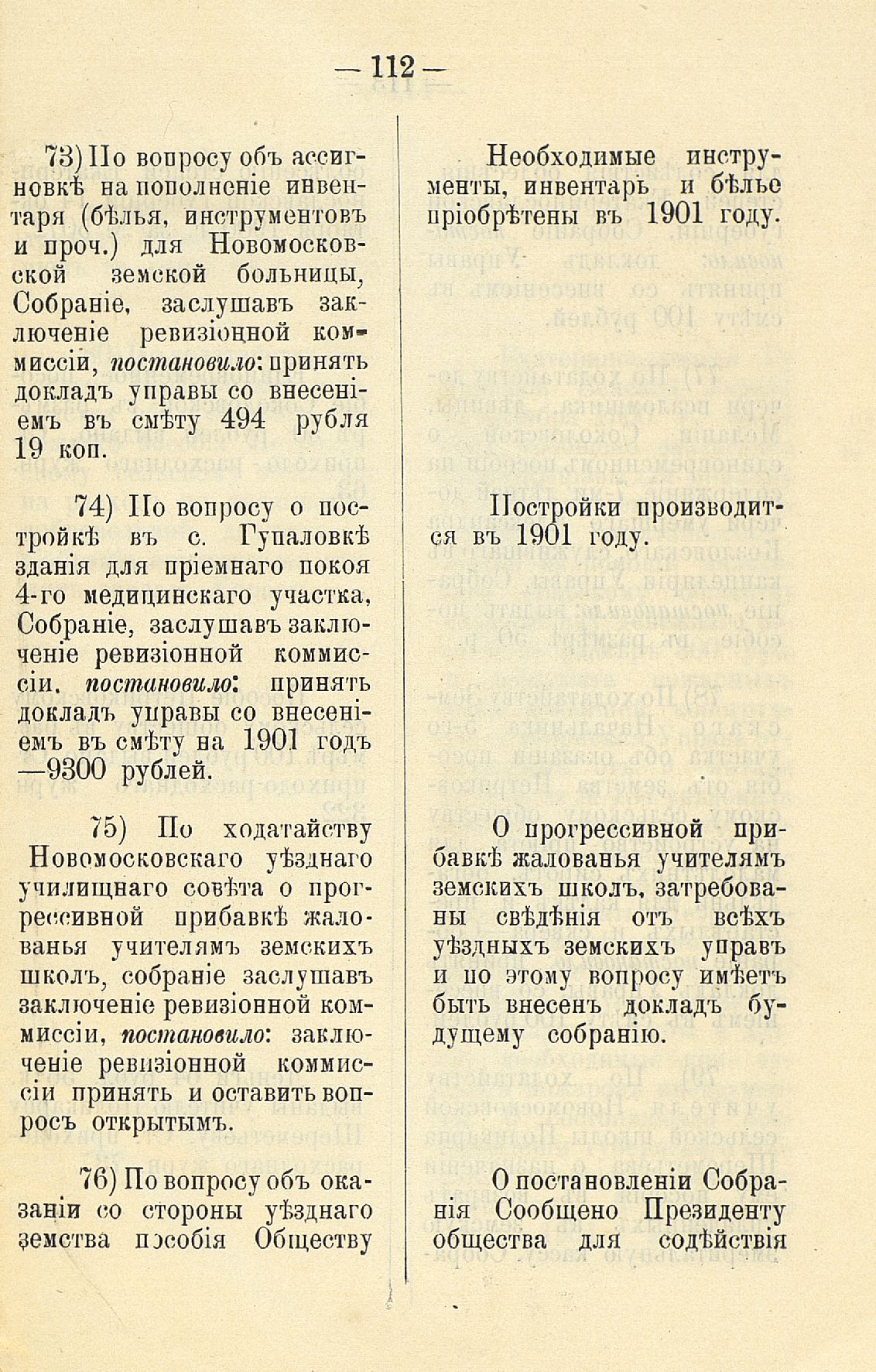Статья 8-я. Объ исполненіи постановленій Уезднаго Земскаго Собранія очередной 1900 г. сессіи