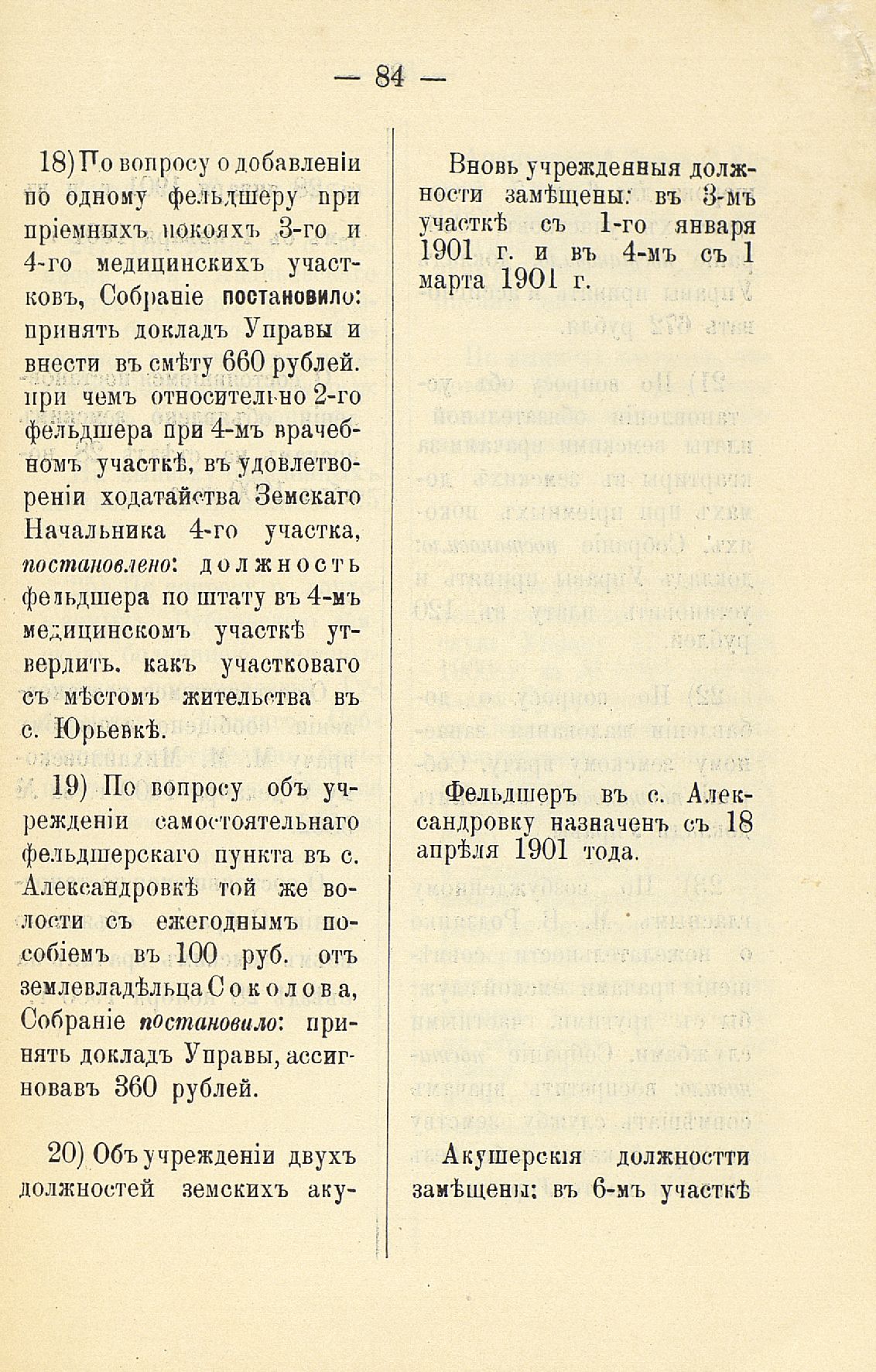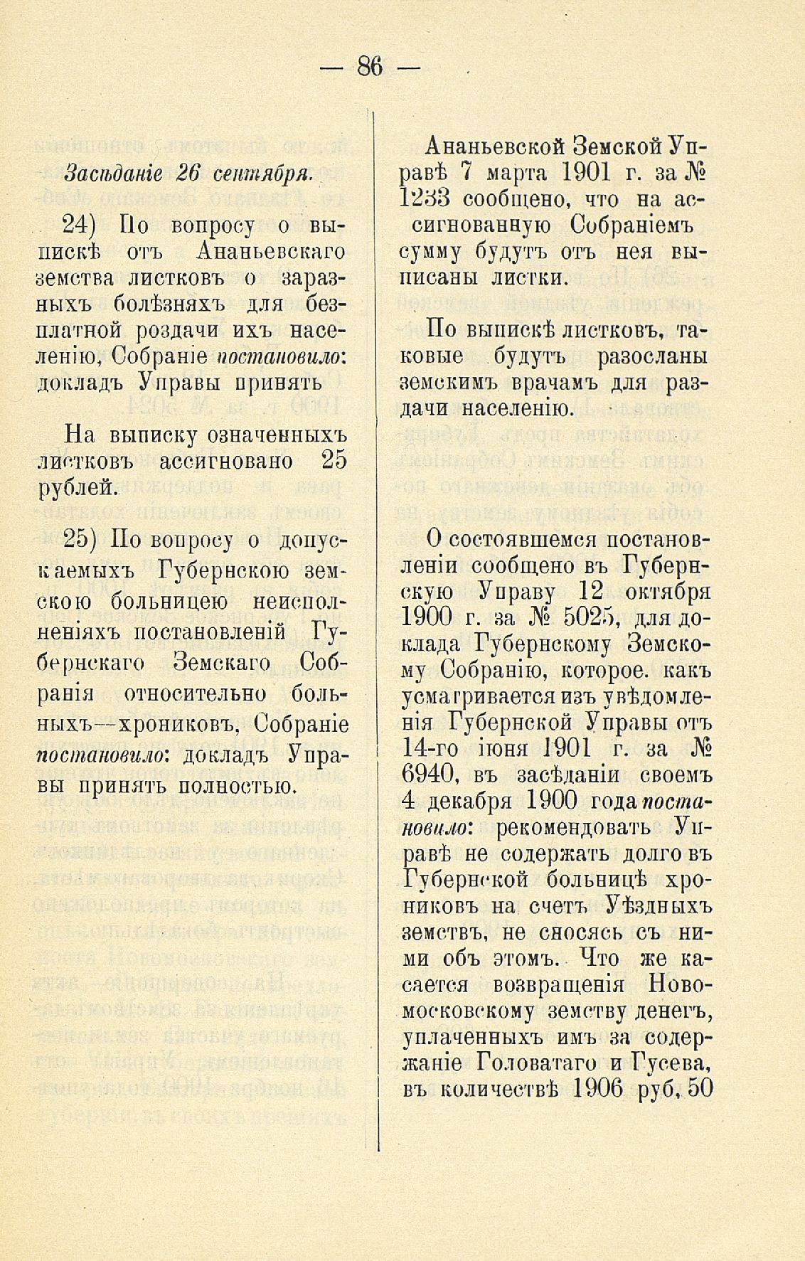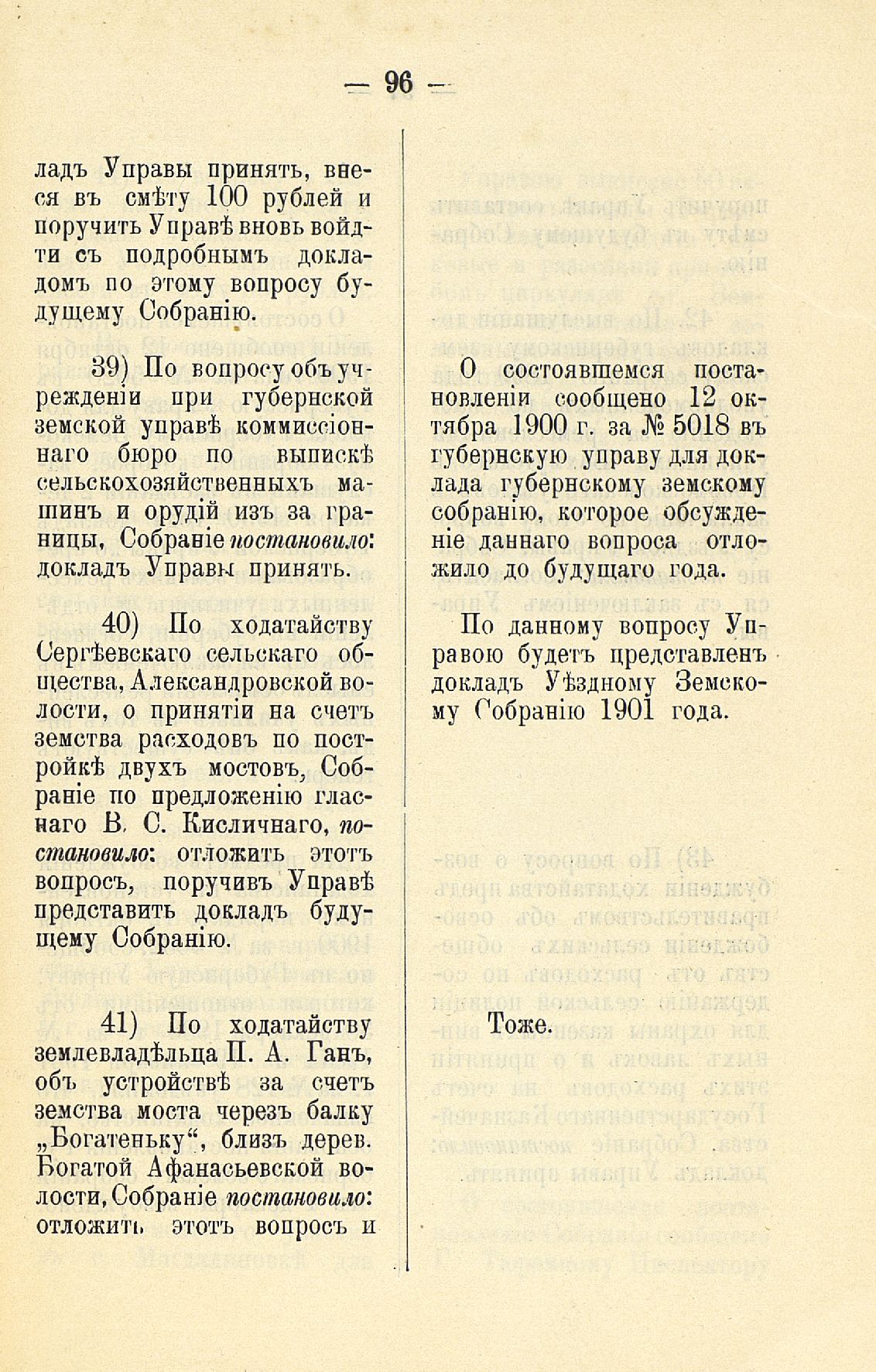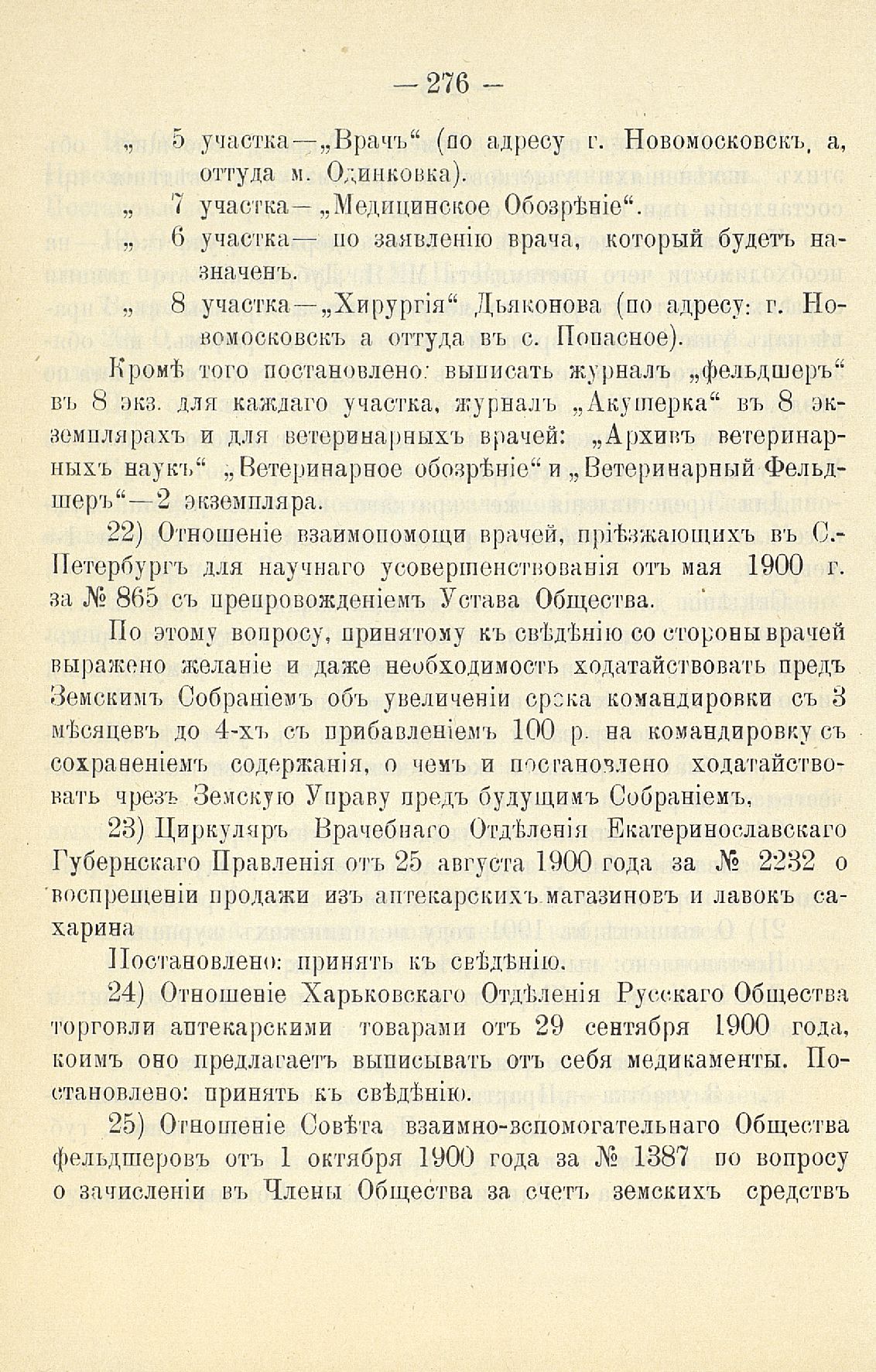 339. Статья 8-я. Объ исполненіи постановленій Уезднаго Земскаго Собранія очередной 1900 г. сессіи