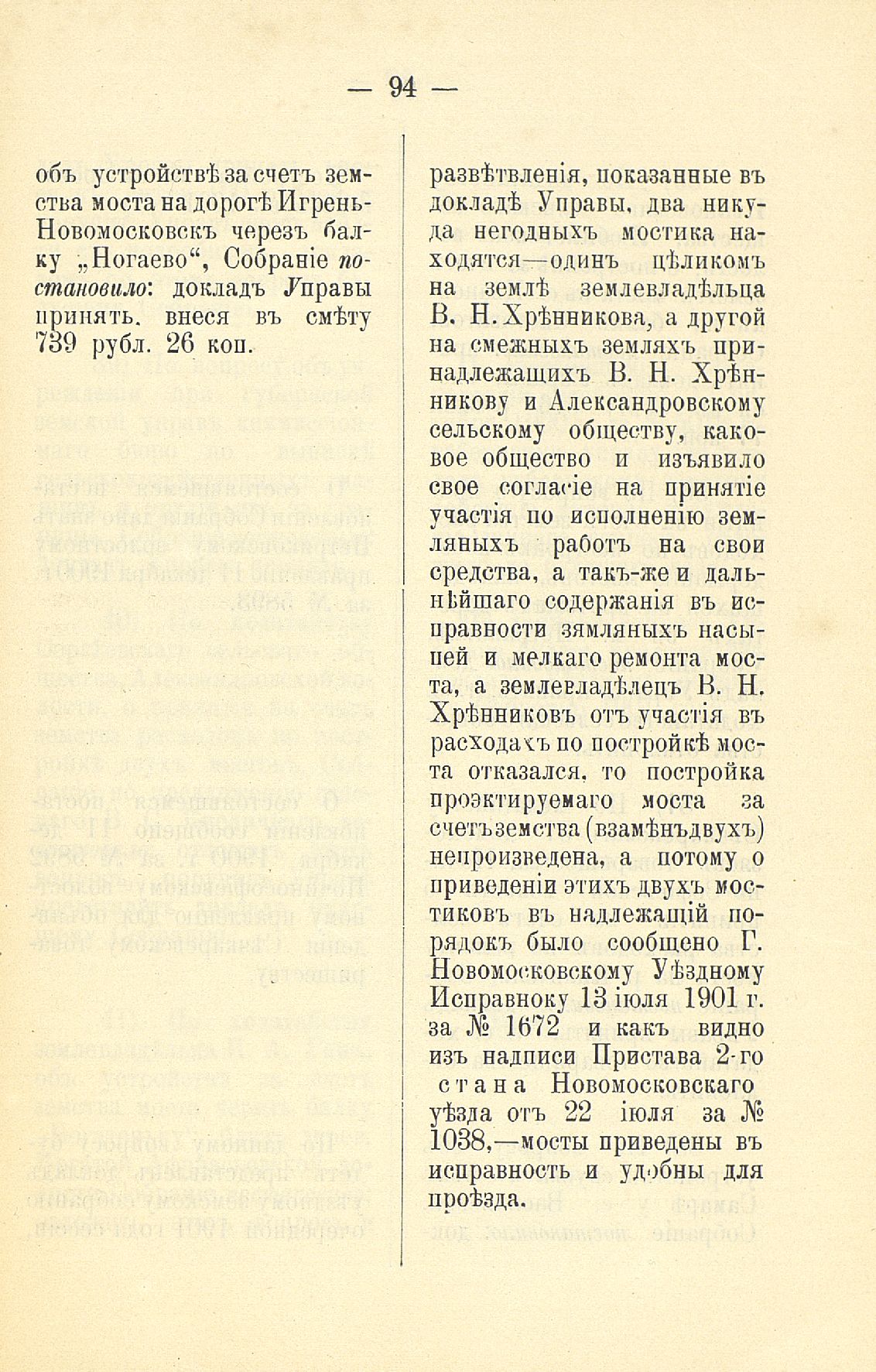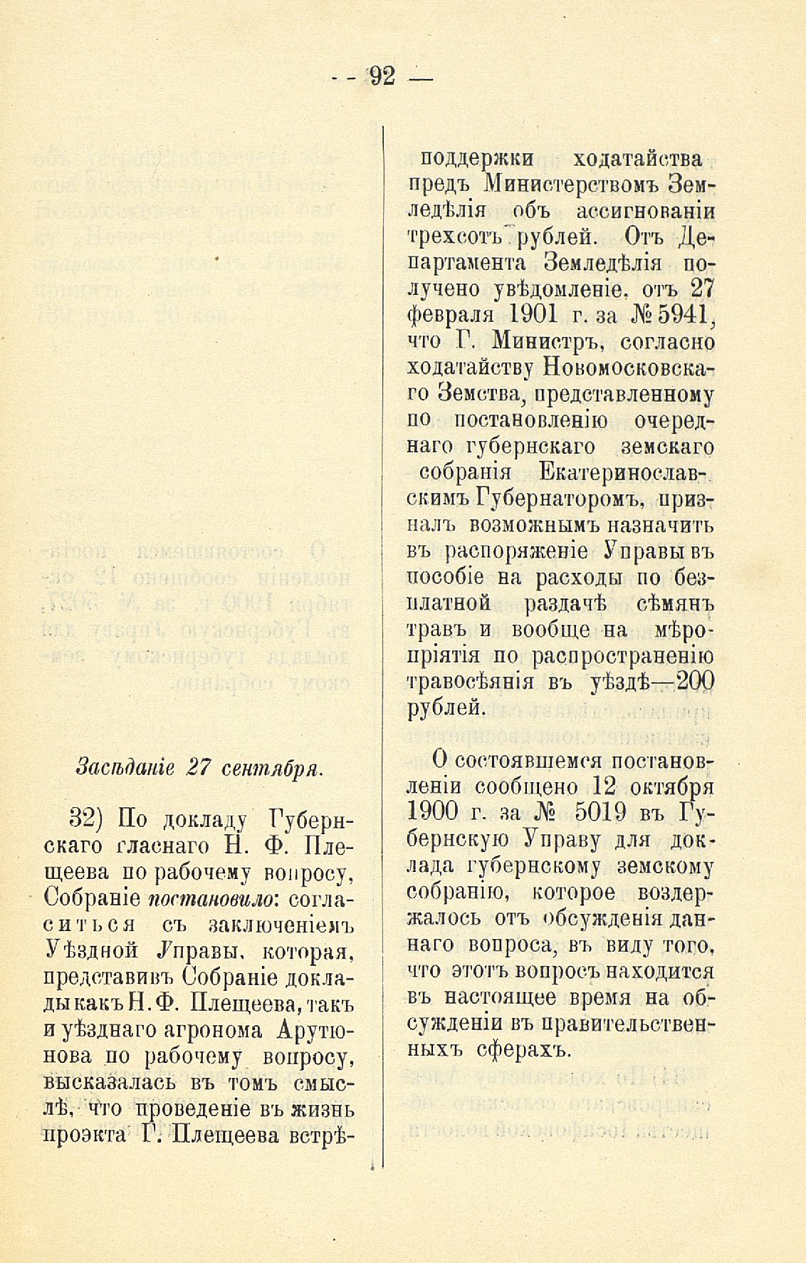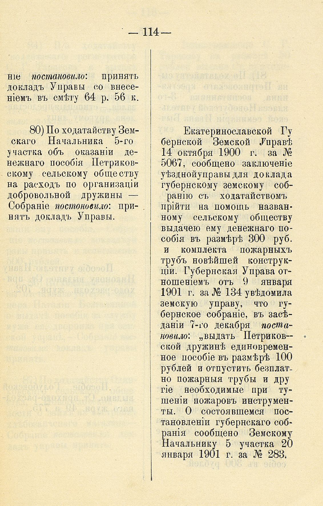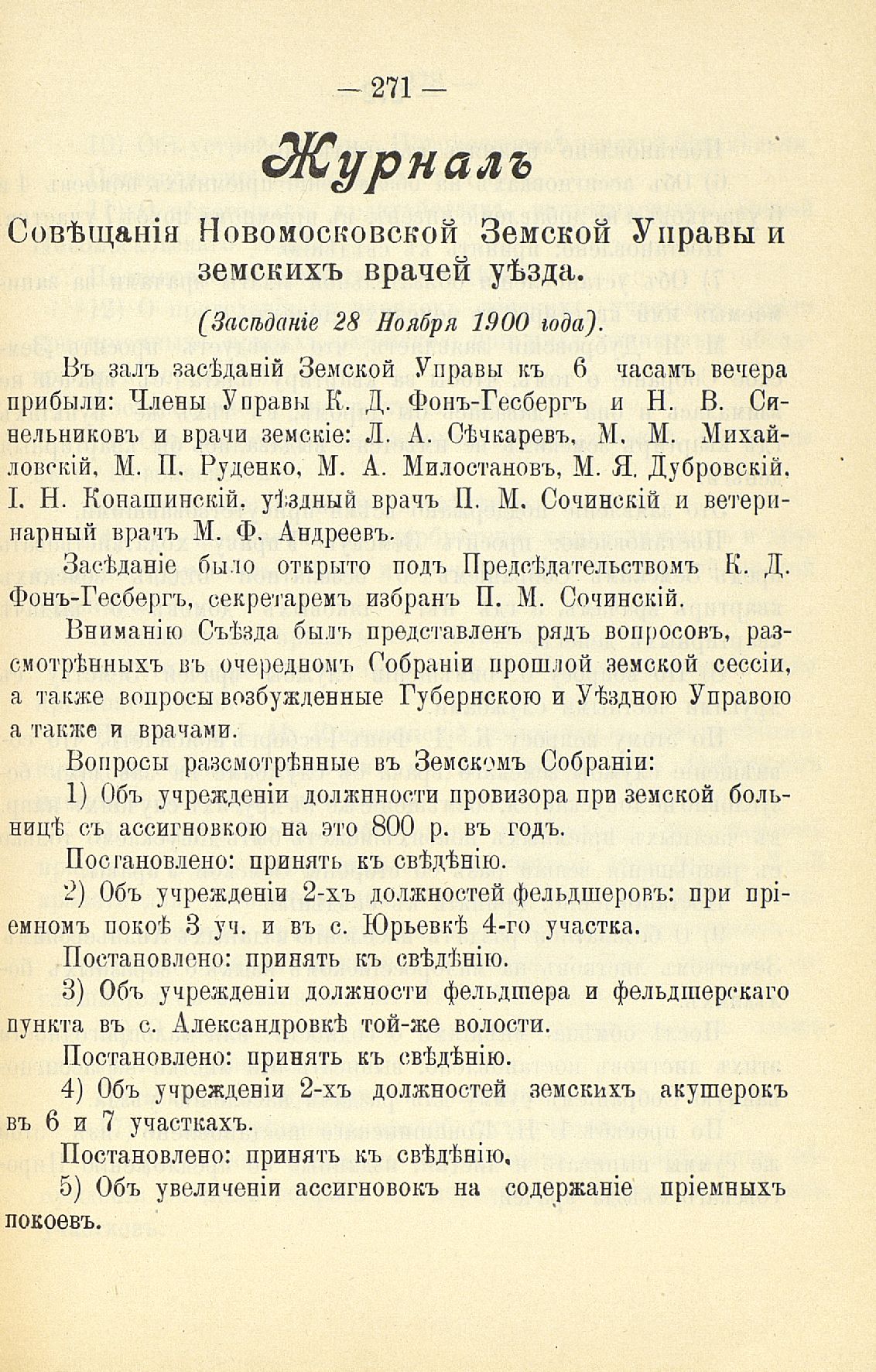 339. Статья 8-я. Объ исполненіи постановленій Уезднаго Земскаго Собранія очередной 1900 г. сессіи