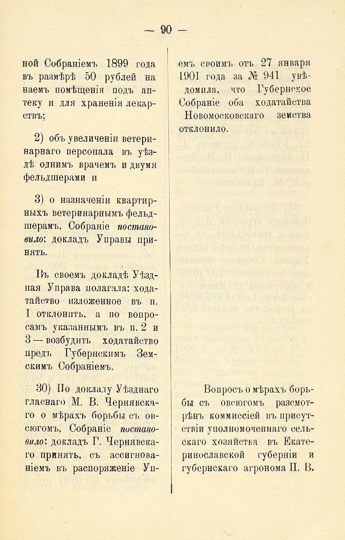 Статья 2-я.Объ исполненіи постановленій Уъзднаго Земскаго Собранія очередной 1990 года сессіи