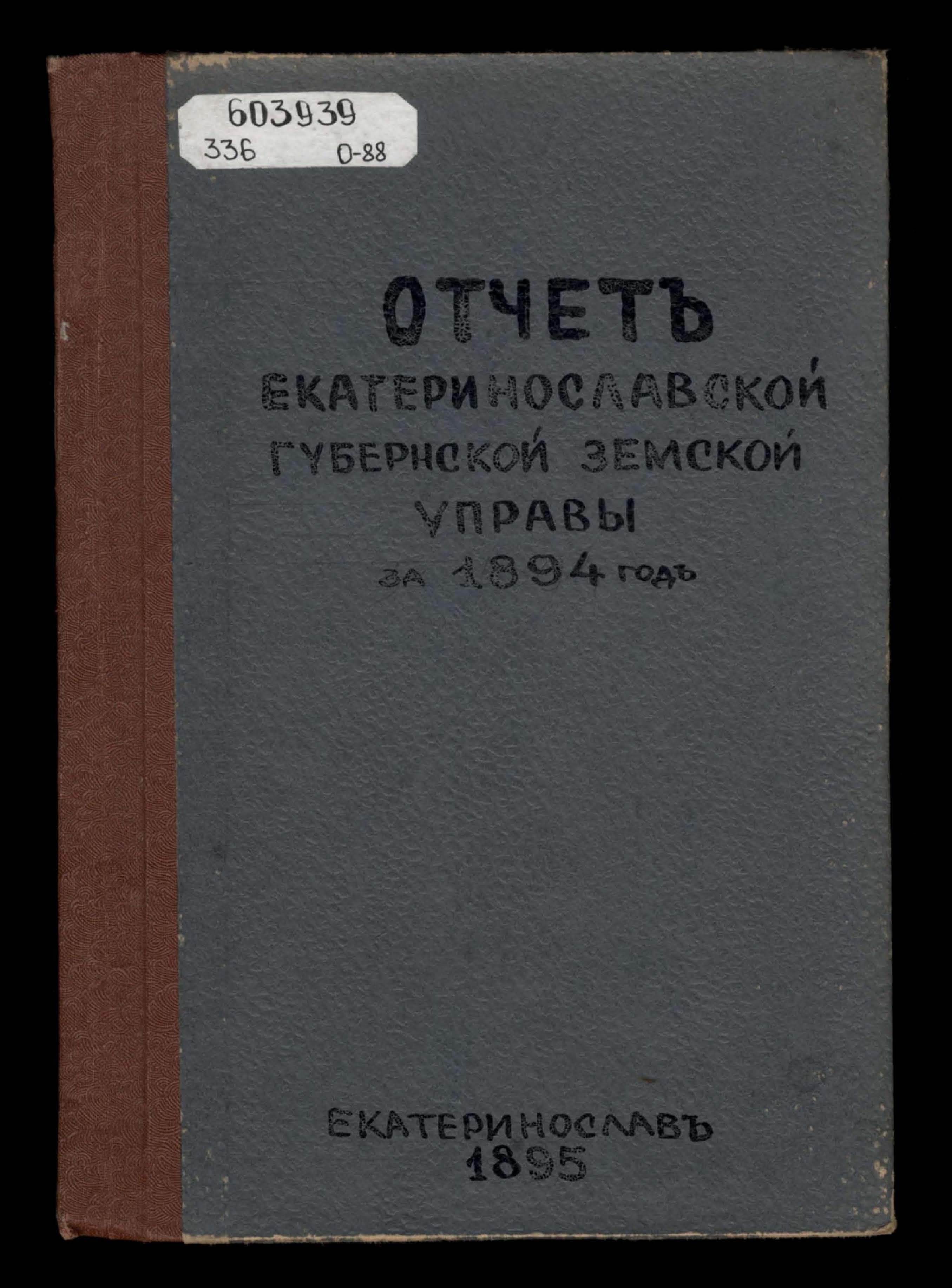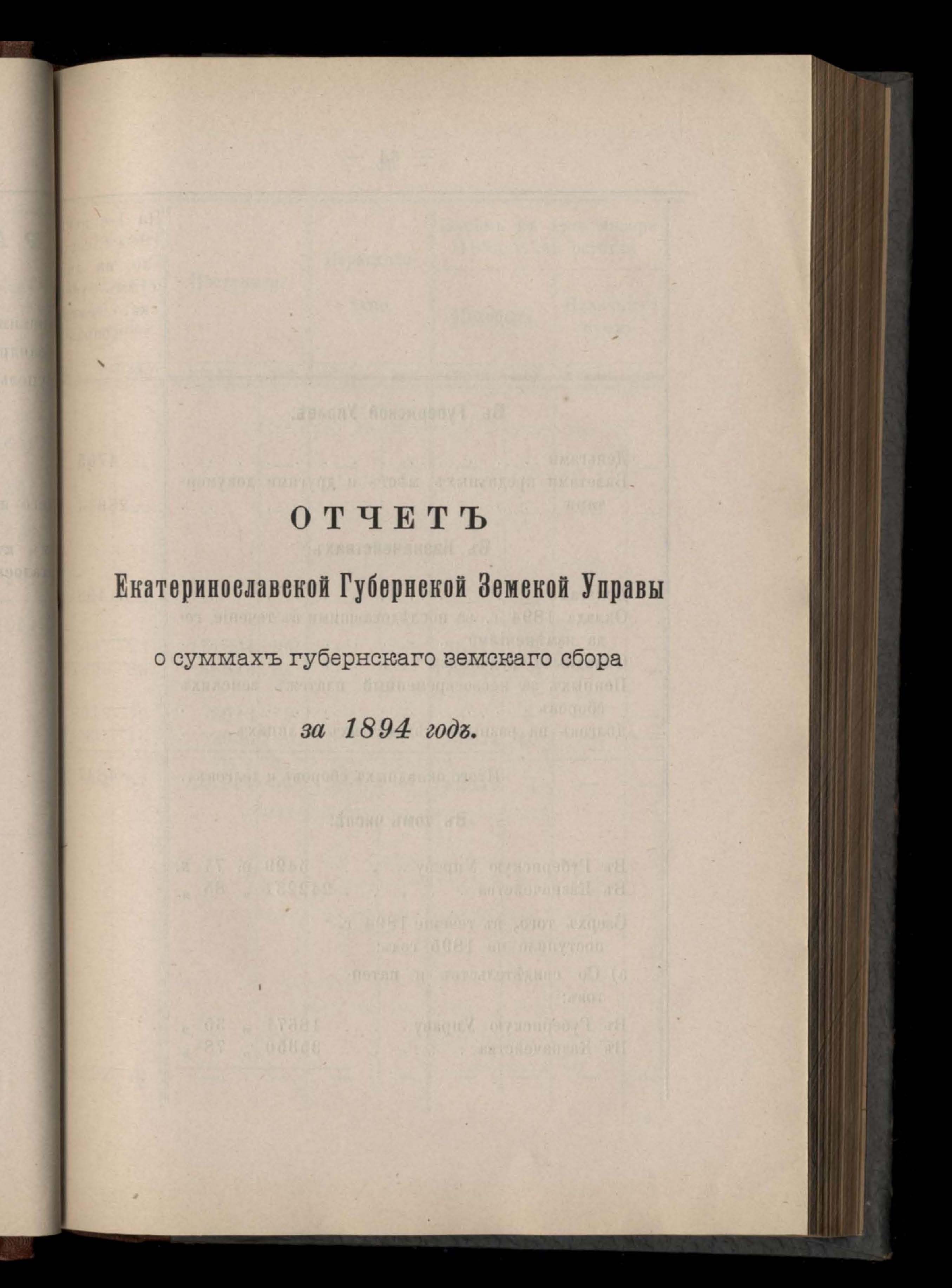 Отчетъ Екатеринославской Губернской Земской Управы о суммахъ губернскаго земскаго сбора за 1894 годъ