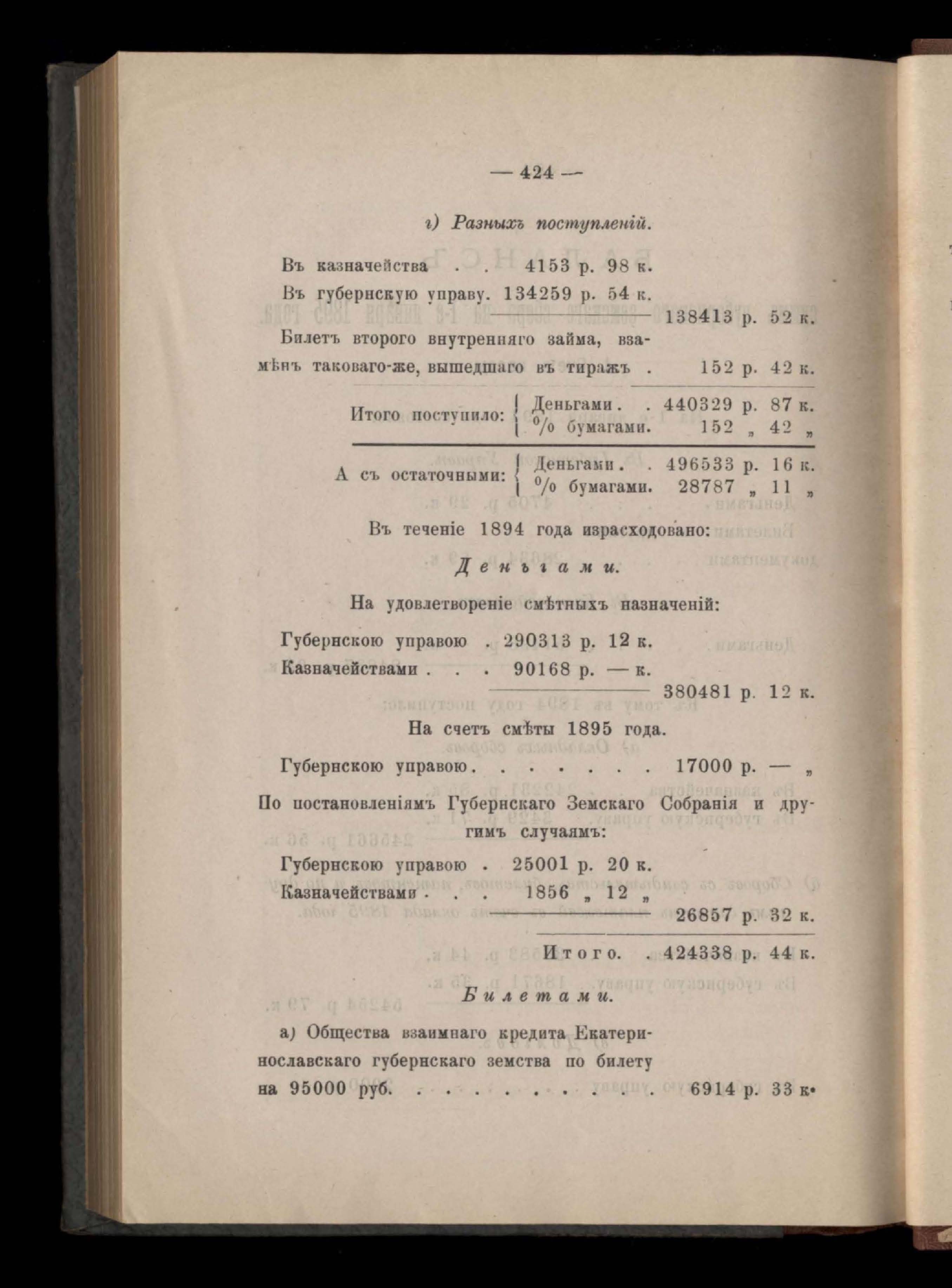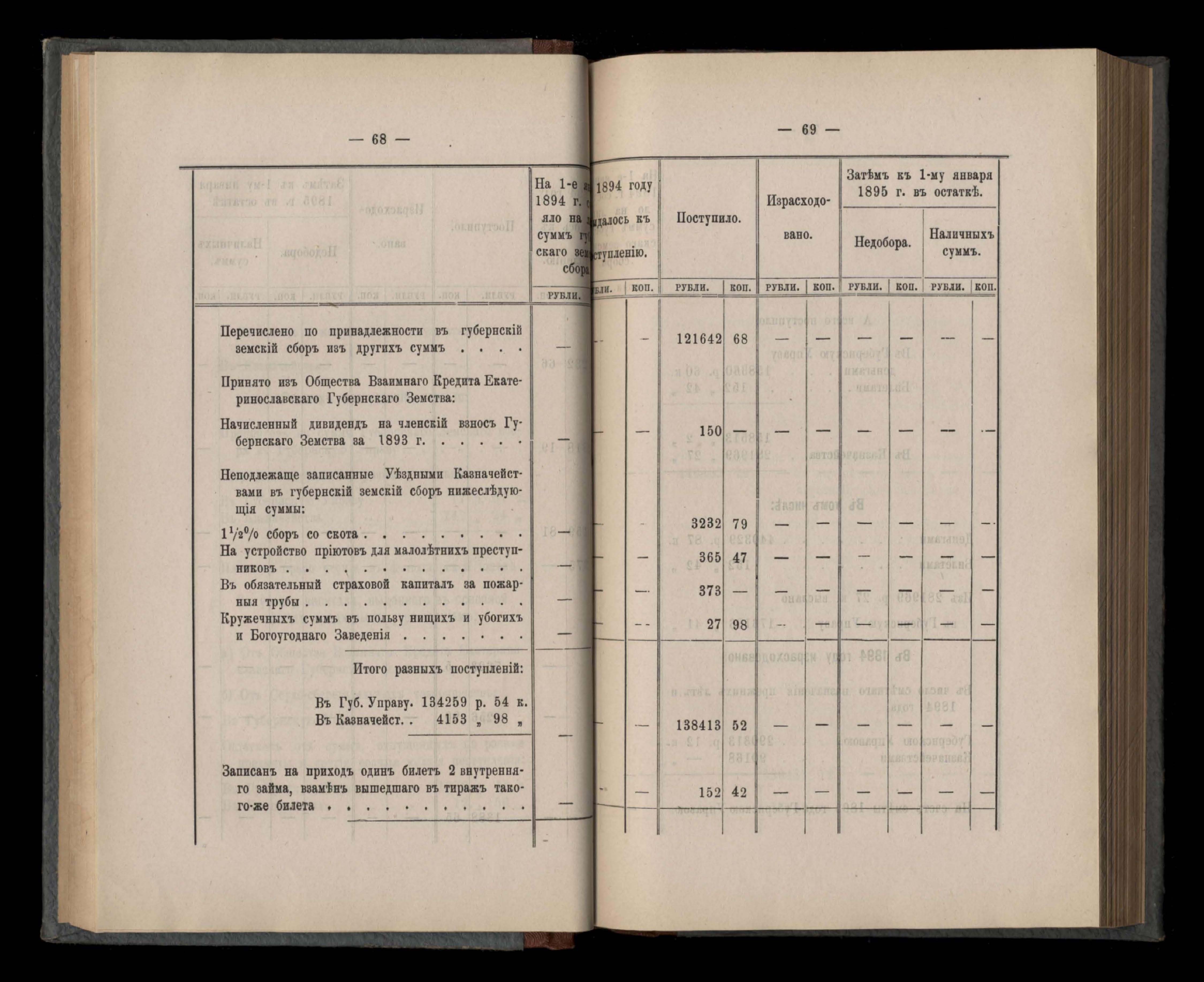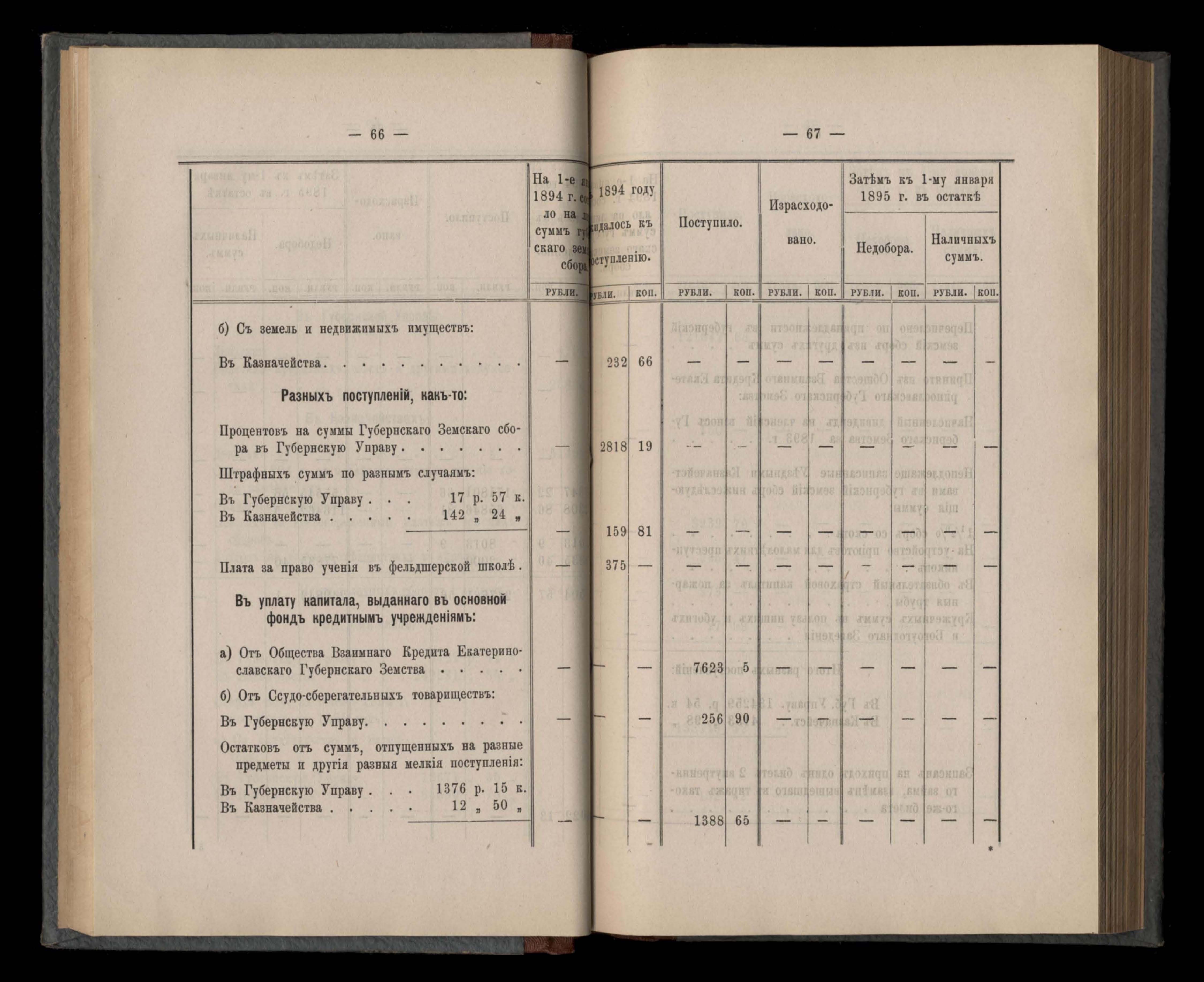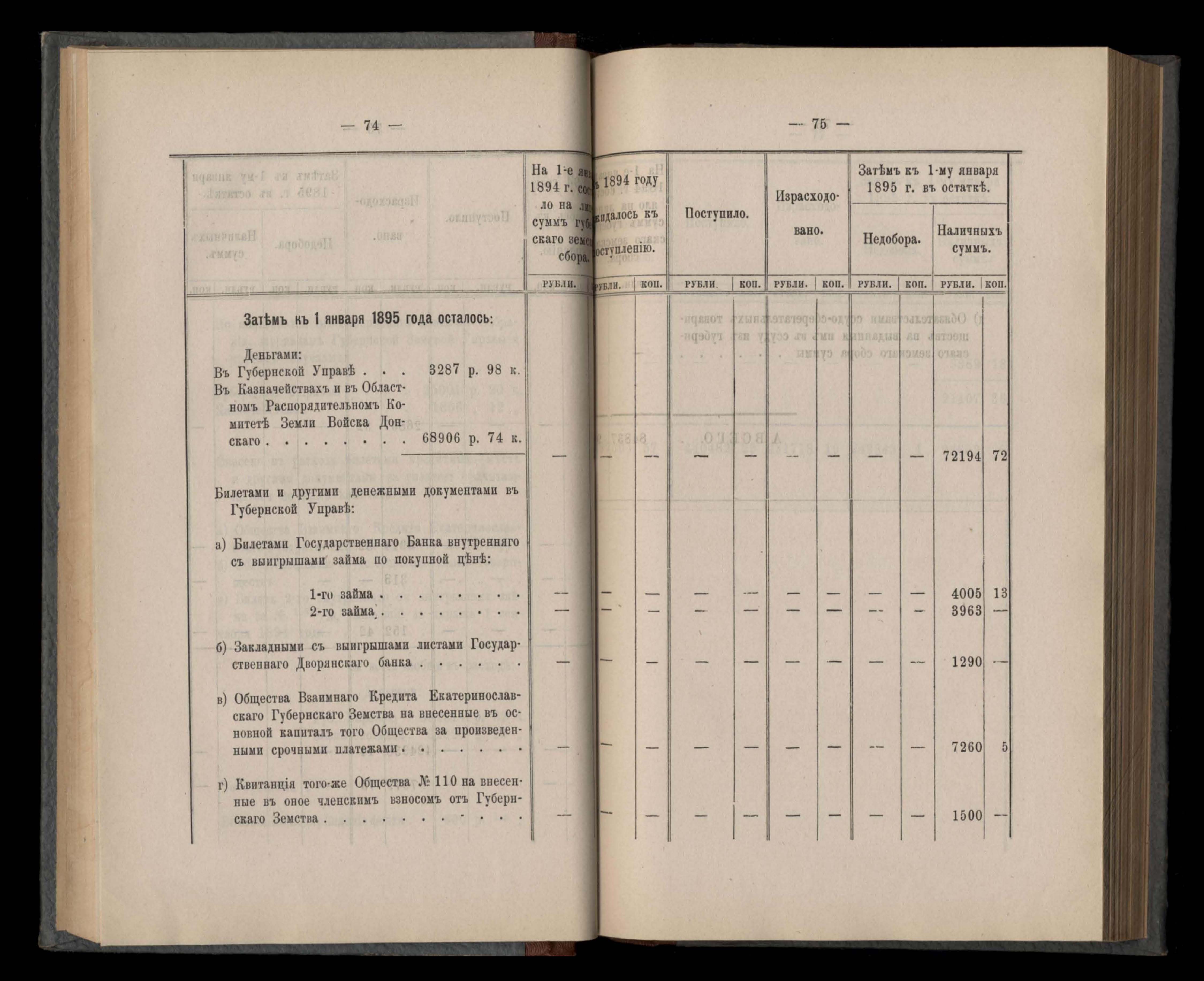 Денежный отчетъ Екатеринославской Губернской Земской Управы о движеніи суммъ губернскаго земскаго сбора за 1894 годъ