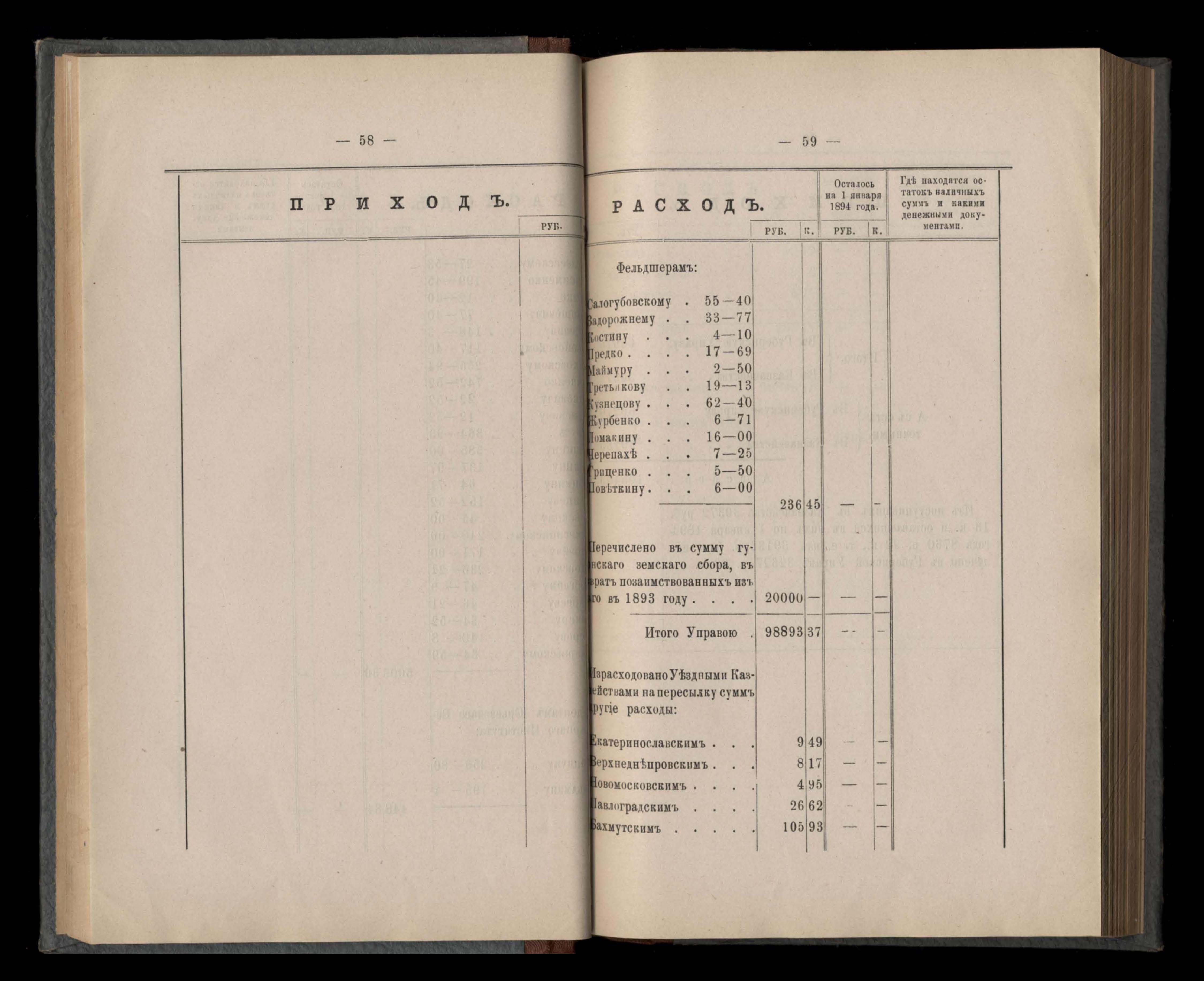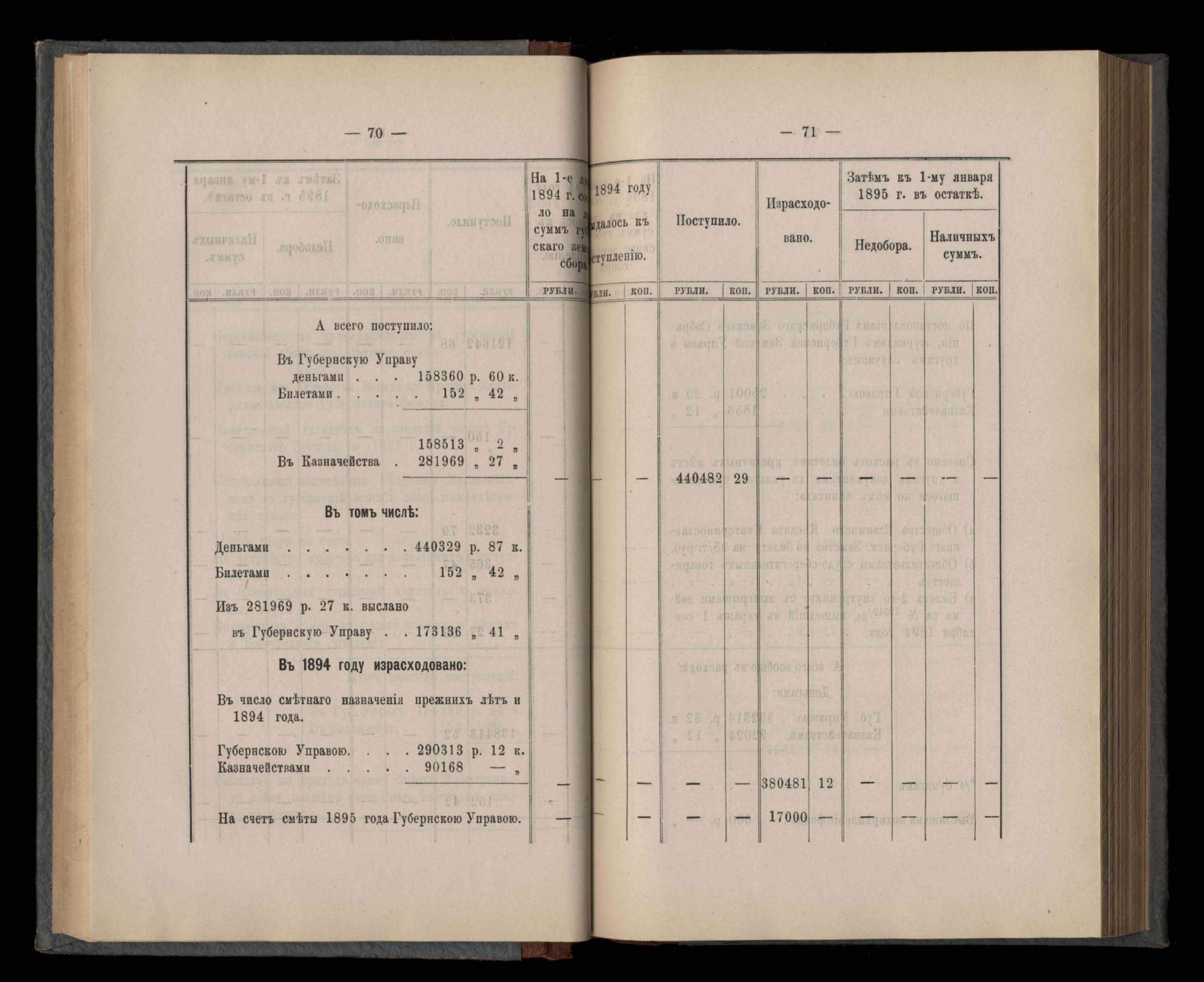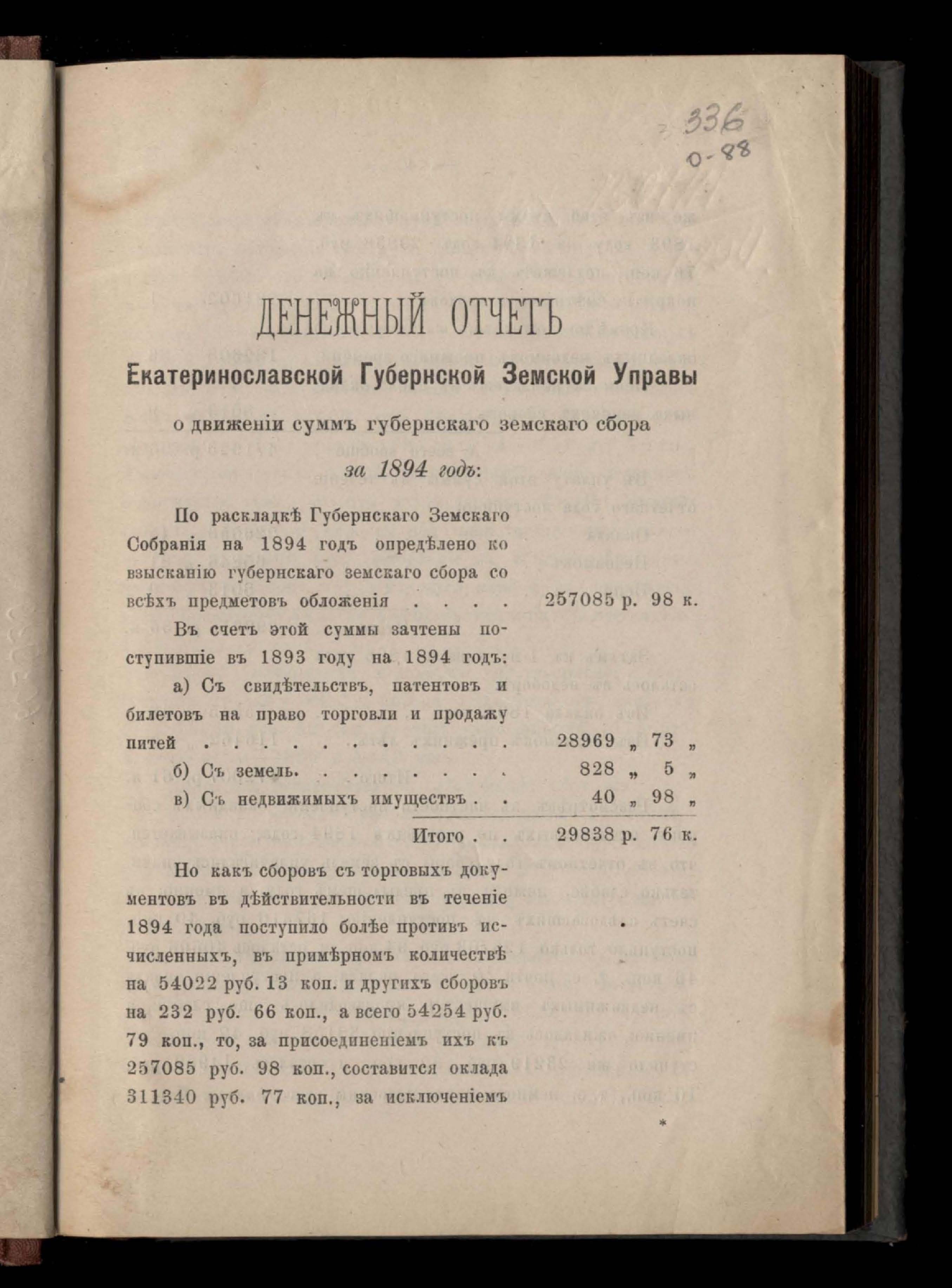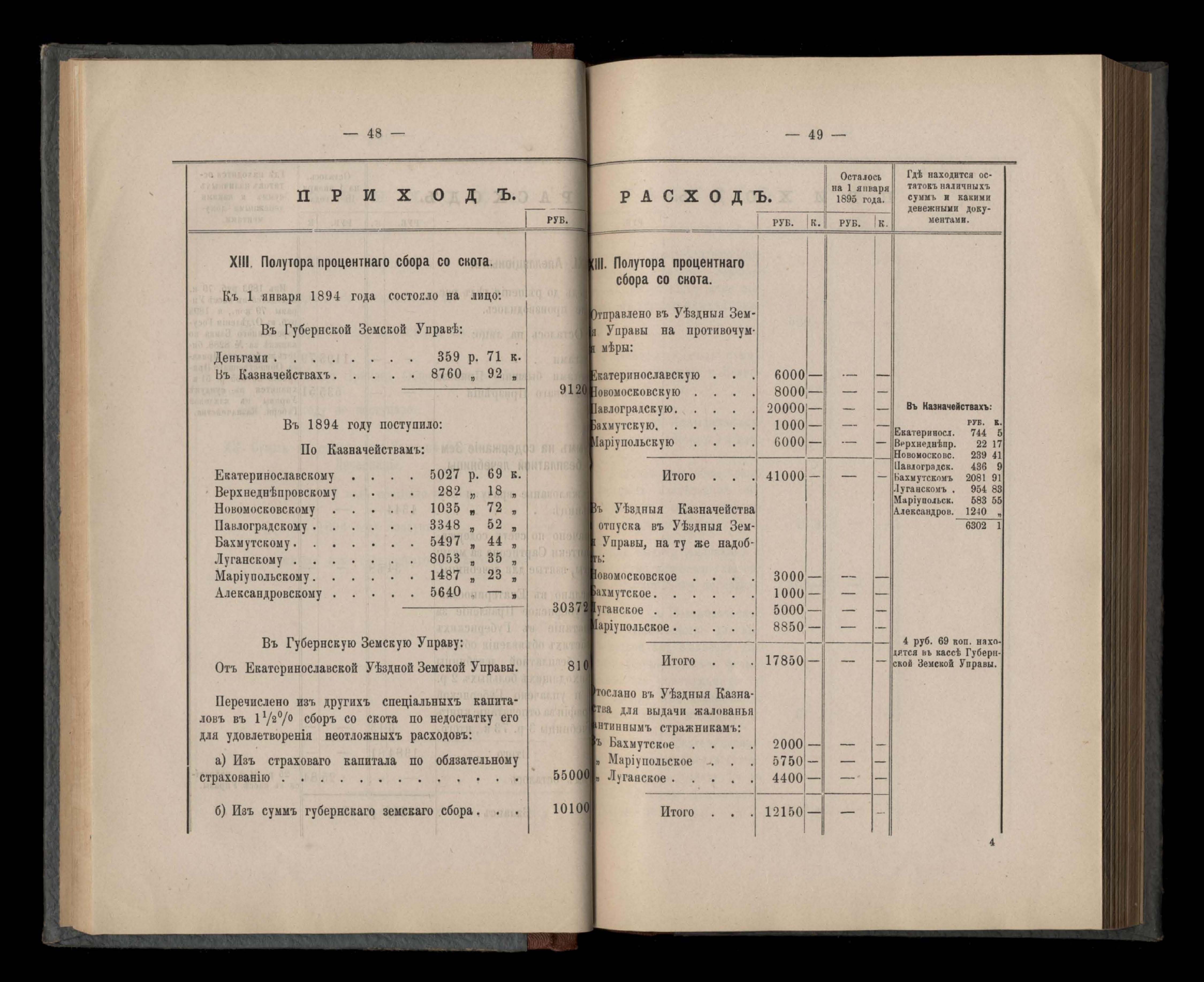 Денежный отчетъ Екатеринославской Губернской Земской Управы о движеніи суммъ губернскаго земскаго сбора за 1894 годъ