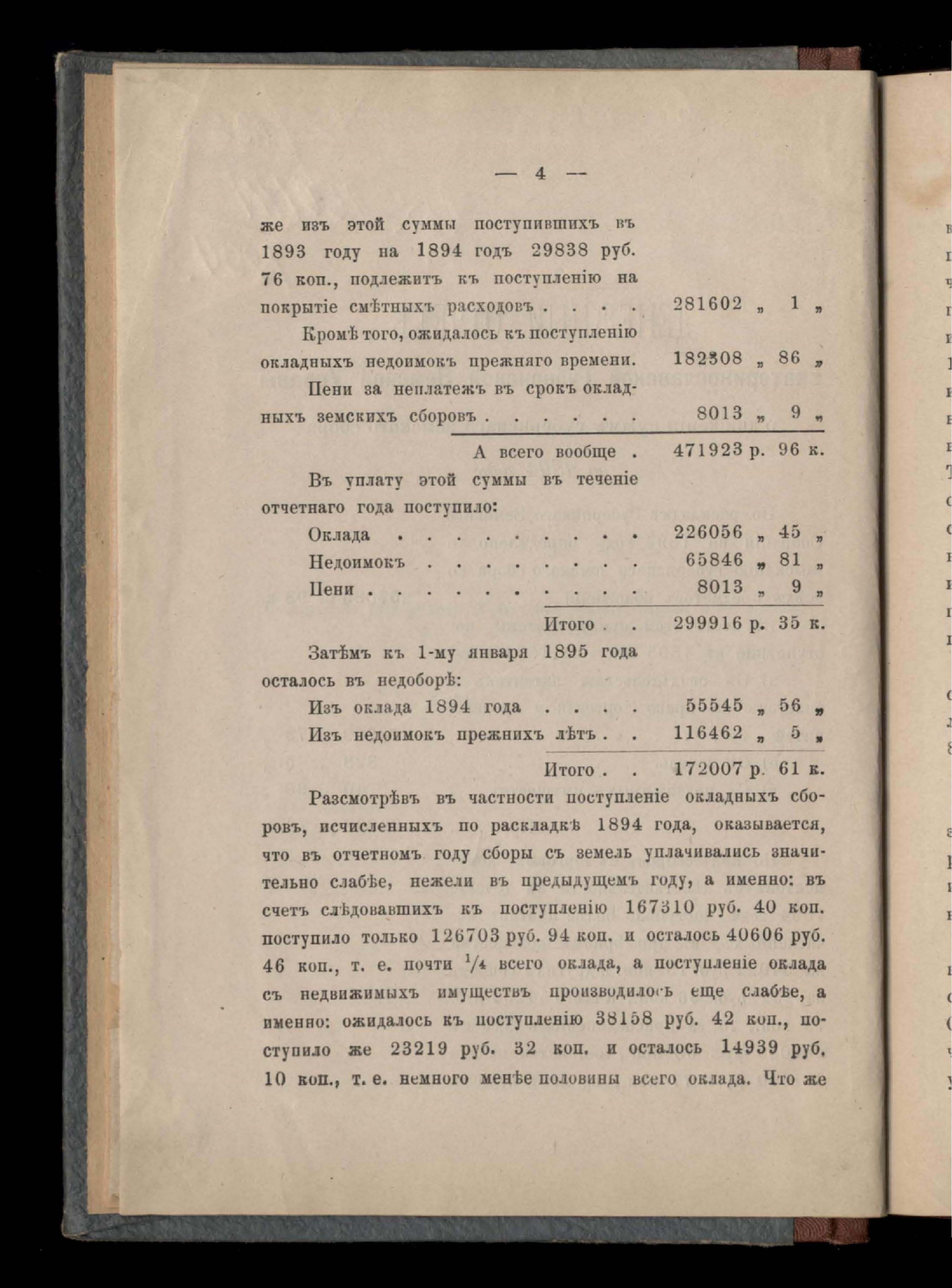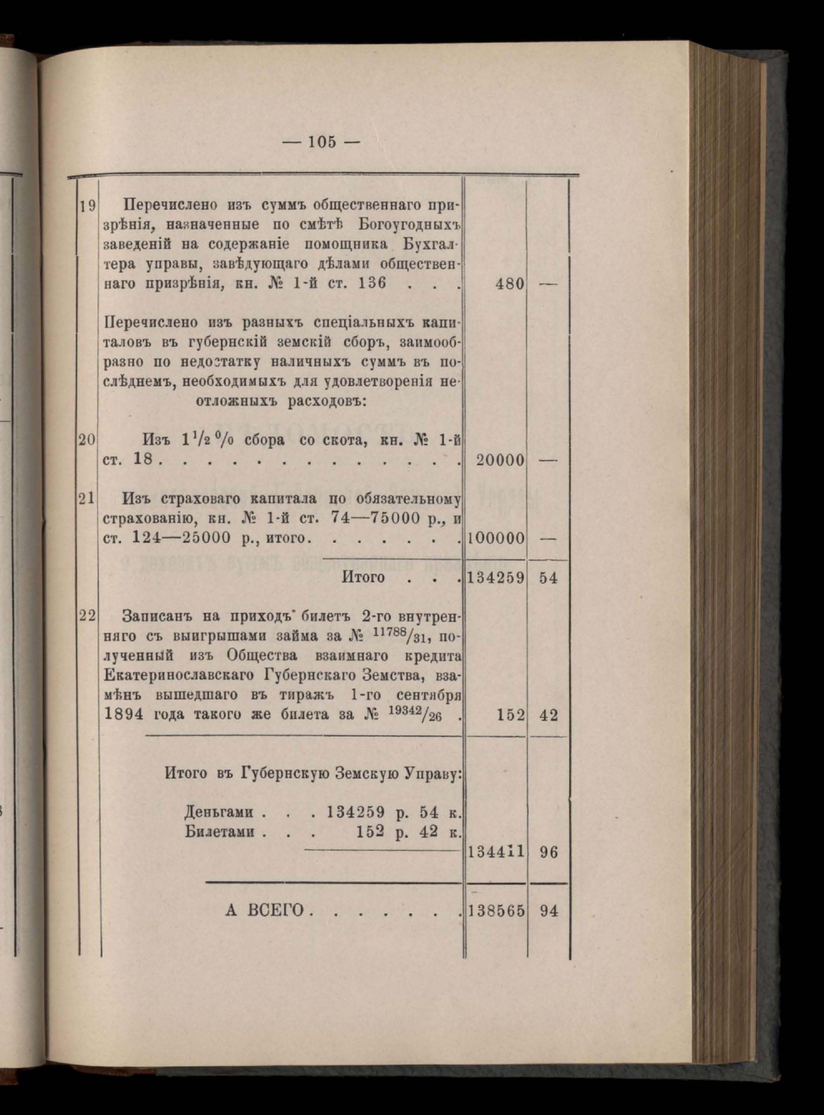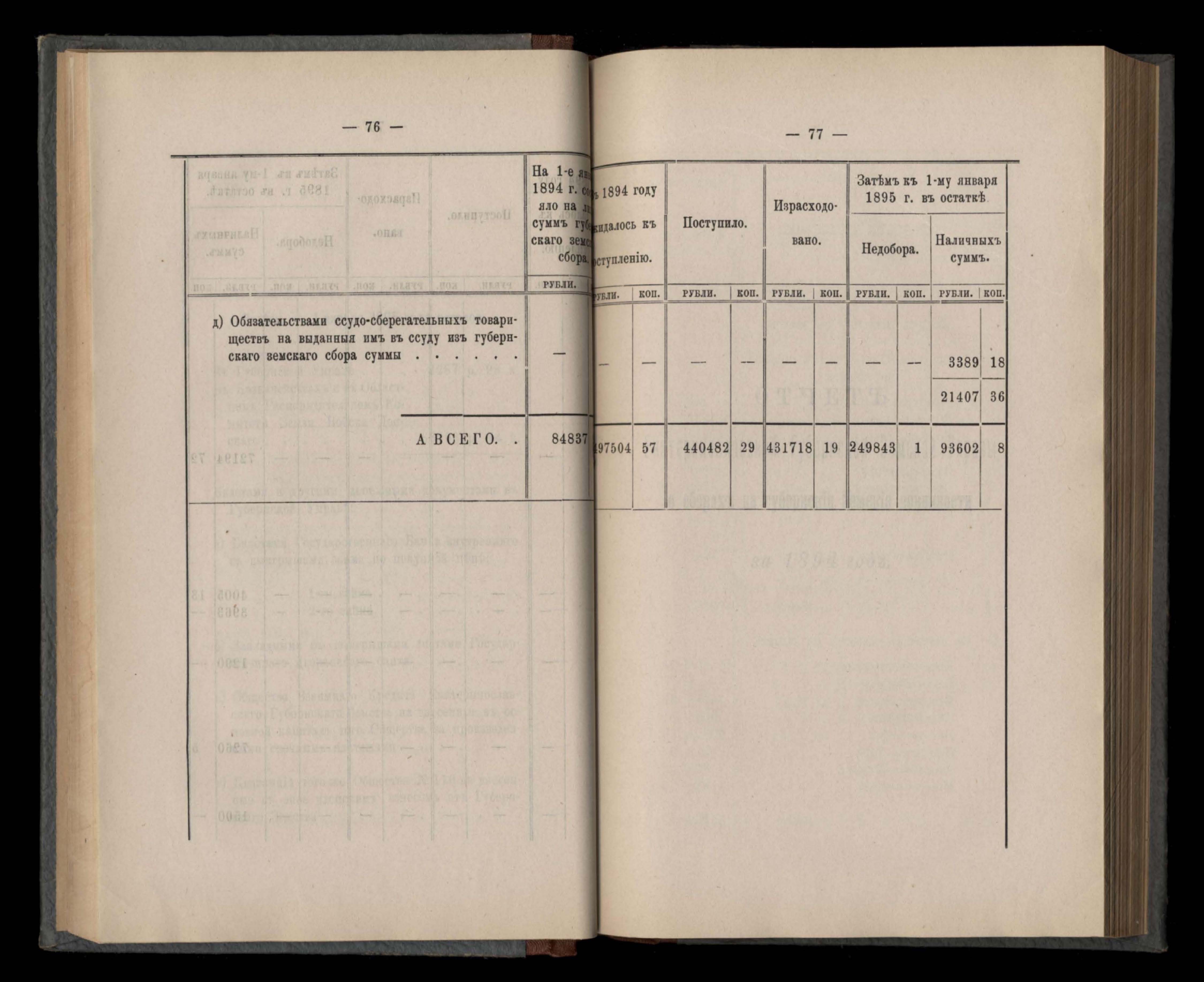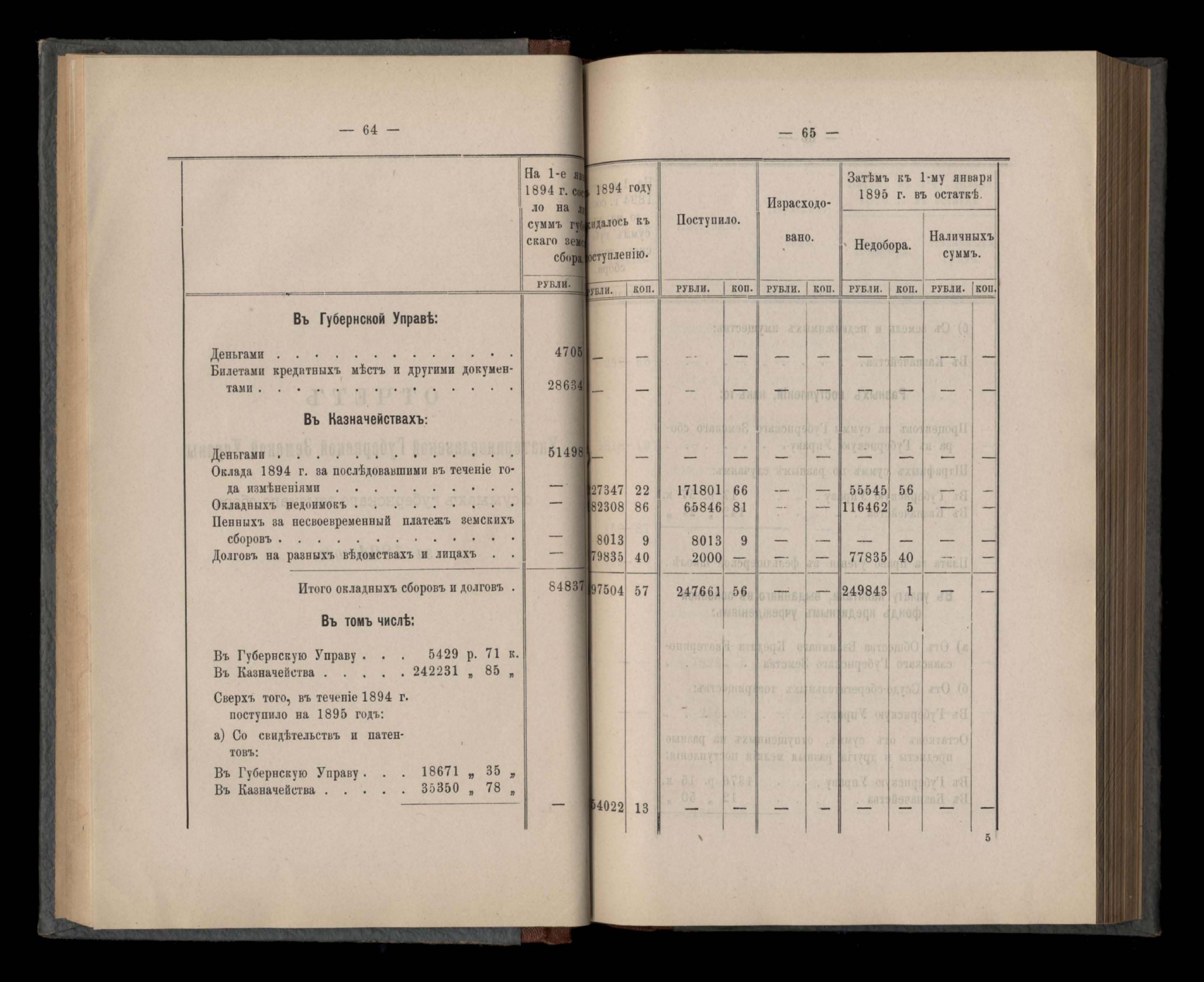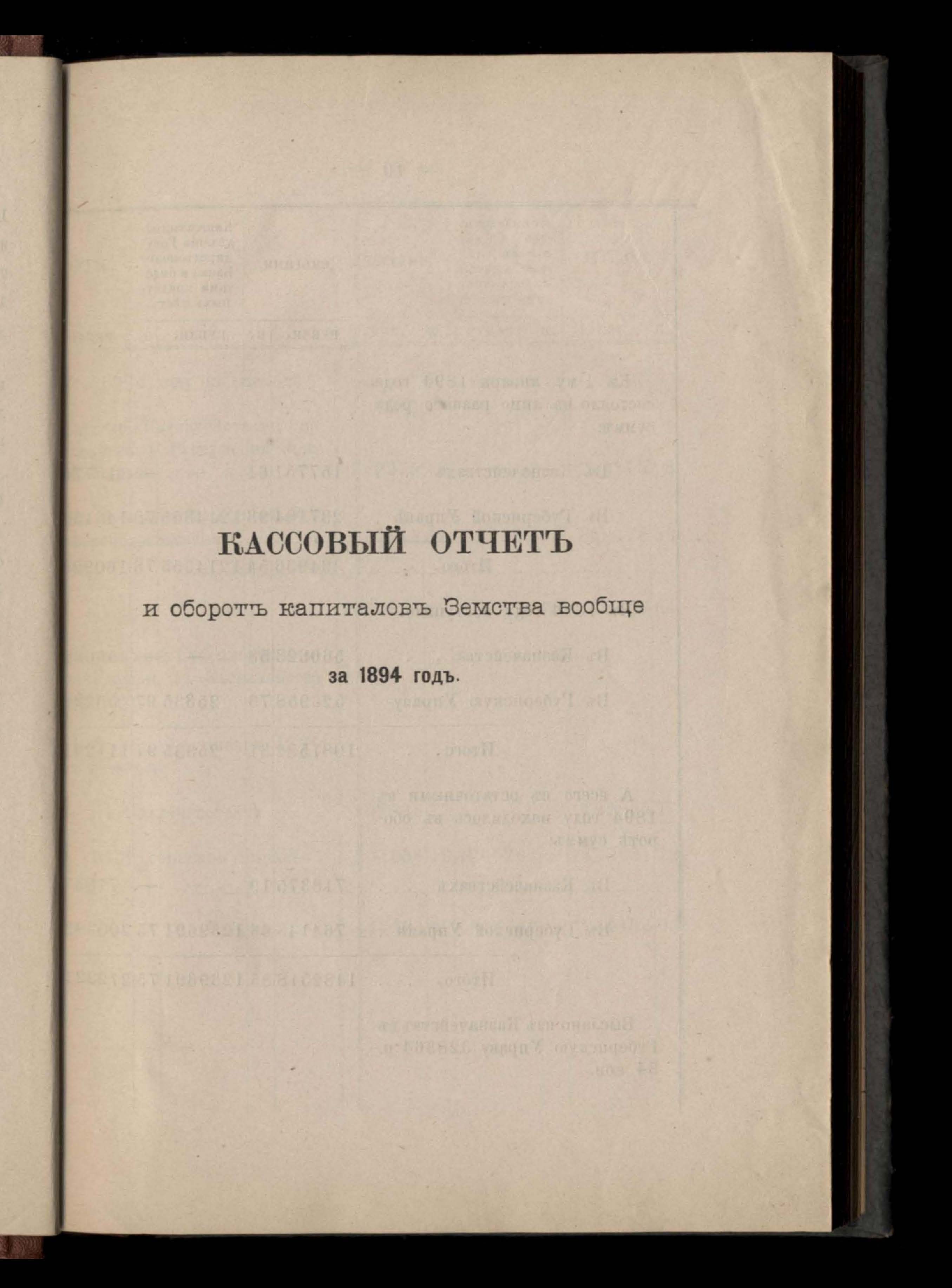 Кассовый отчетъ и оборотъ капиталовъ земства вообще за 1894 годъ